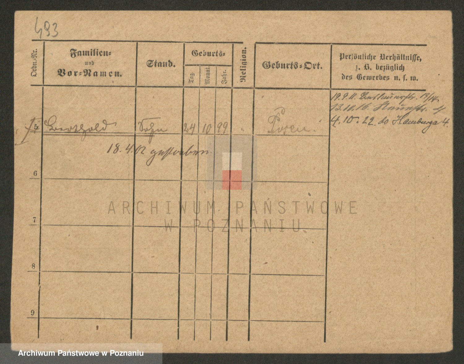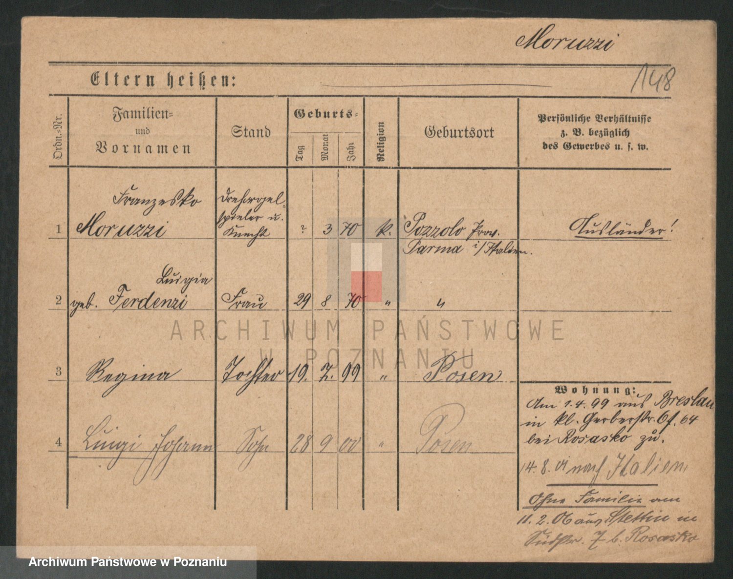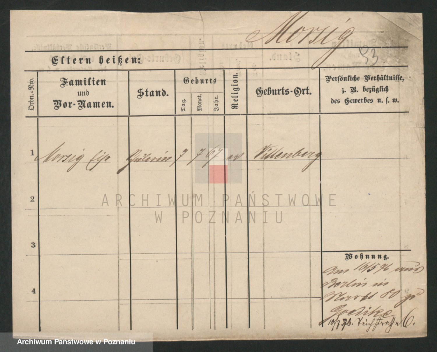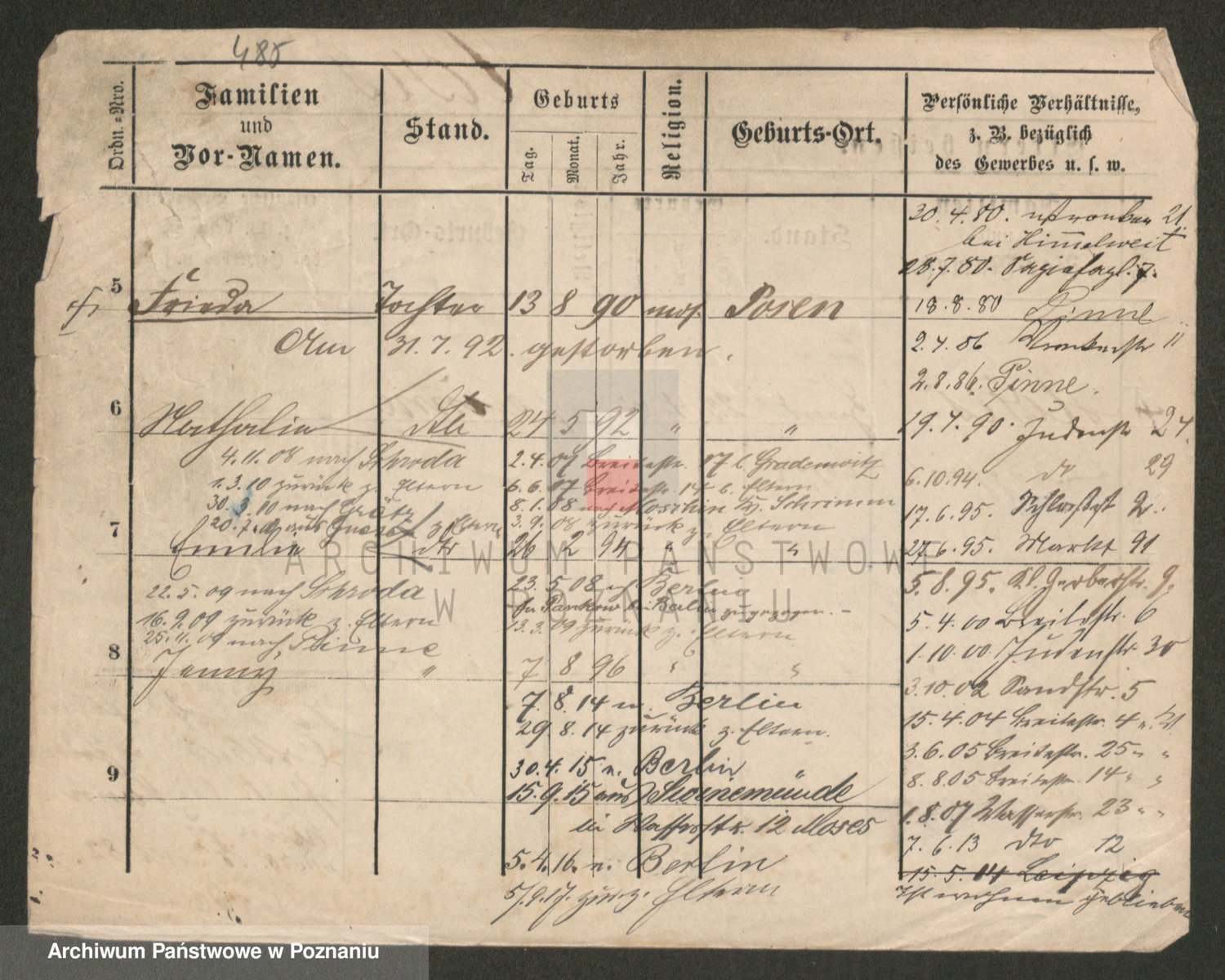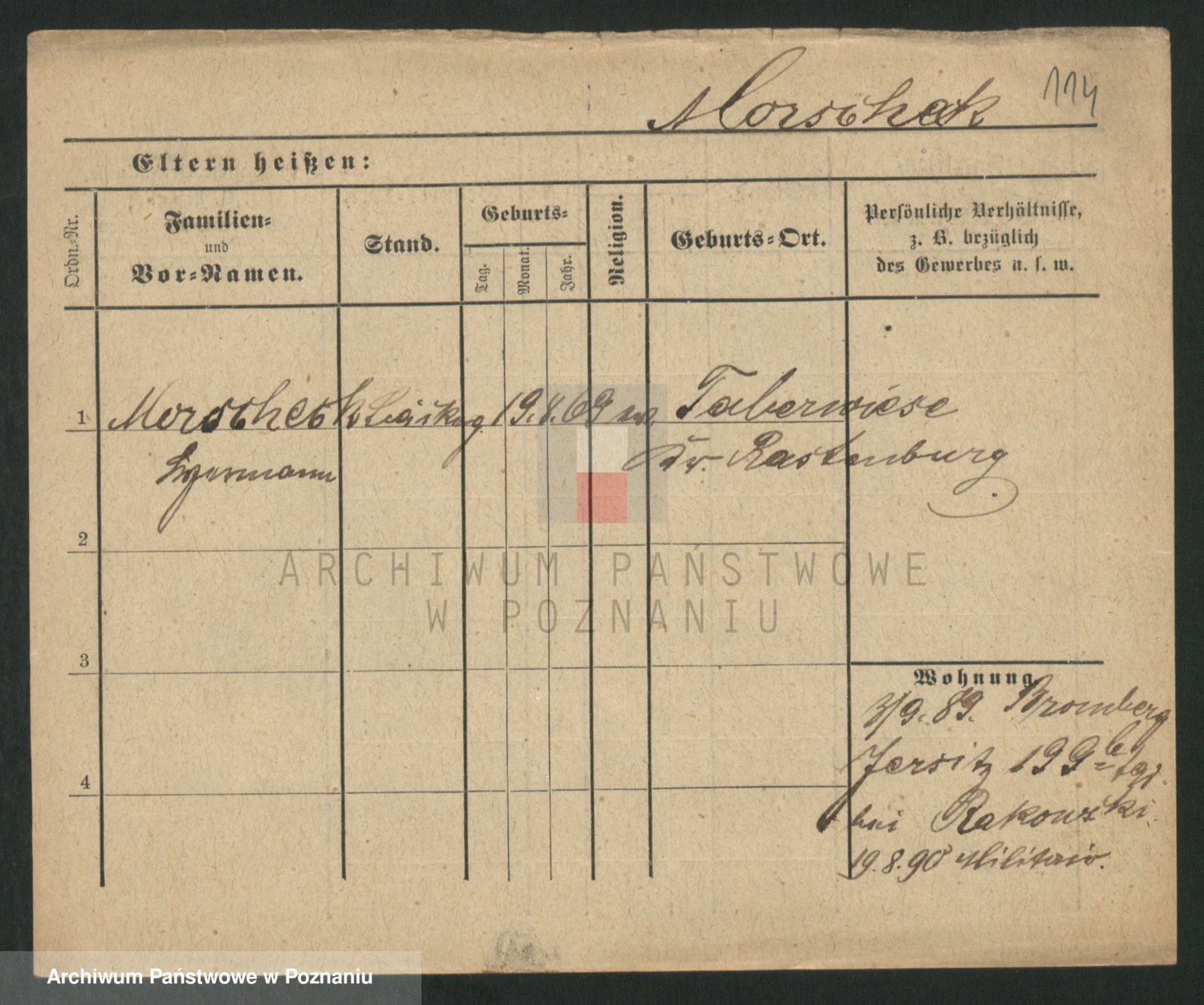 Podgląd karty osobowej dostępny jest po kliknięciu na nazwisko lub ikonkę karty. Można dokonywać powiększenia (ikony na górze) lub przechodzić między kolejnymi skanami (strzałki po bokach).