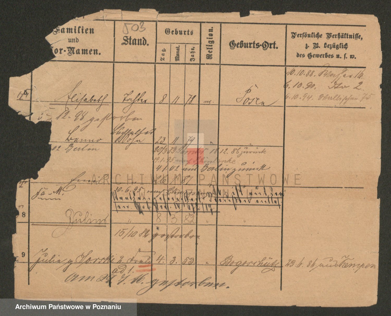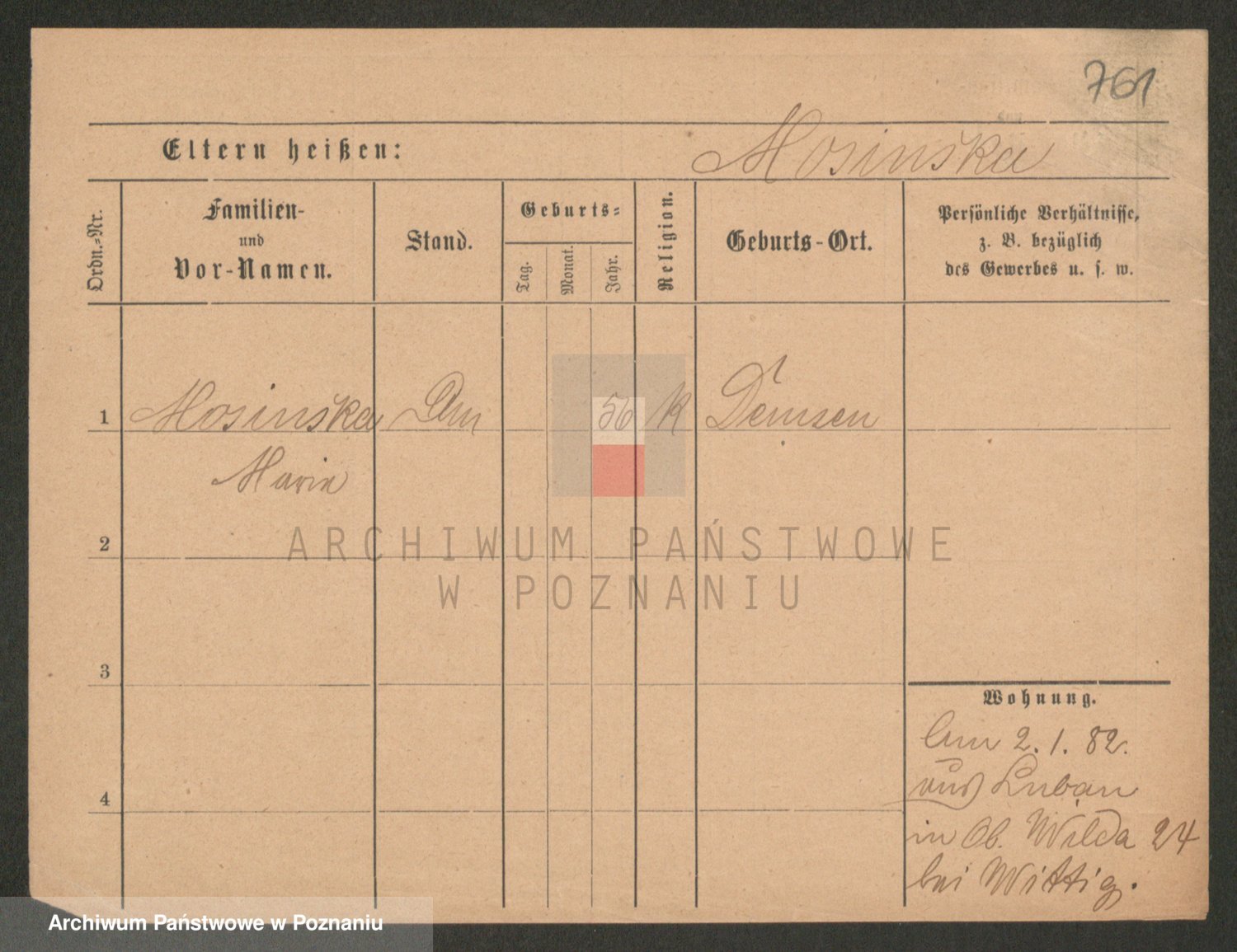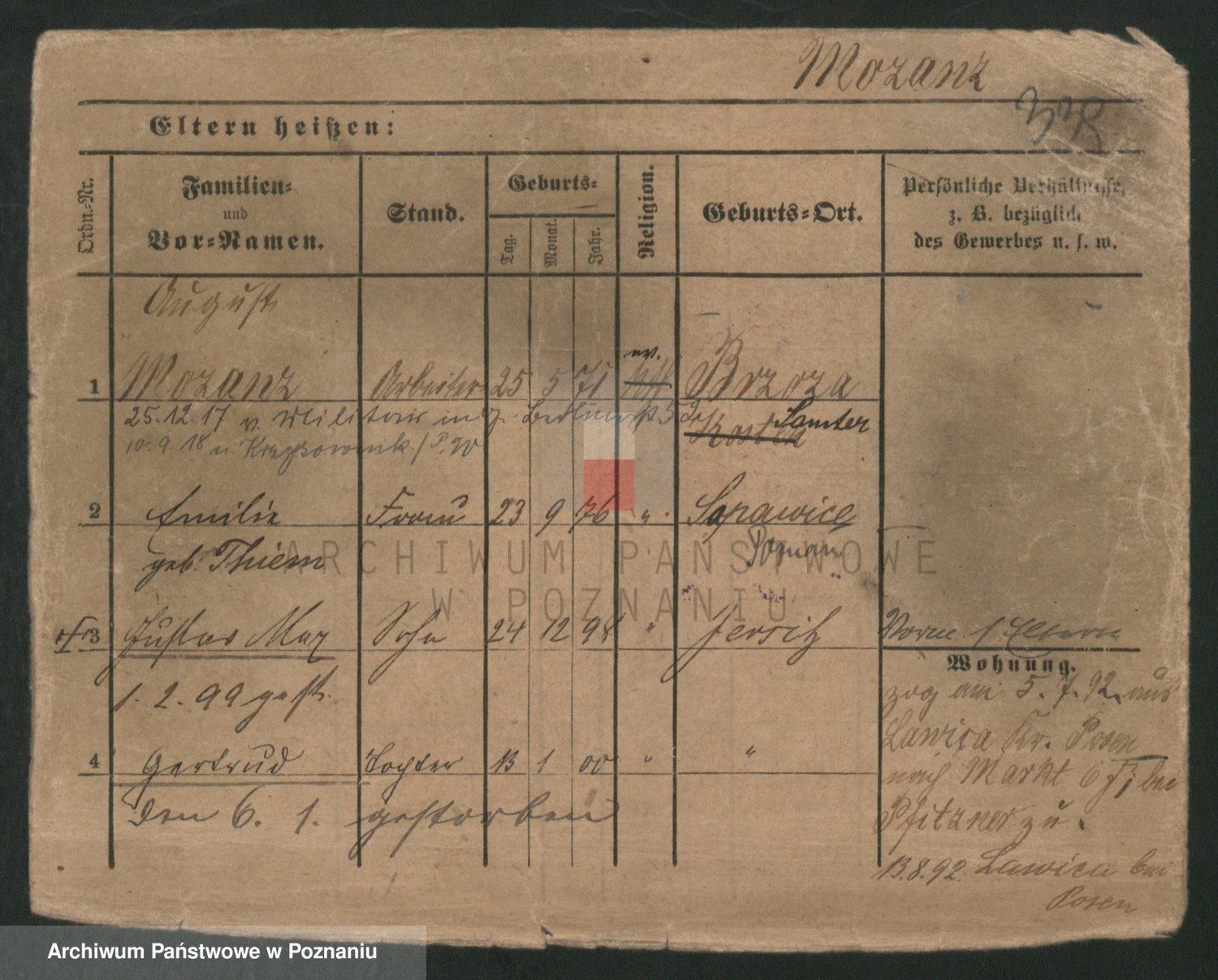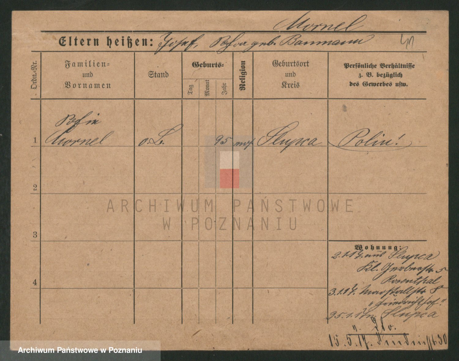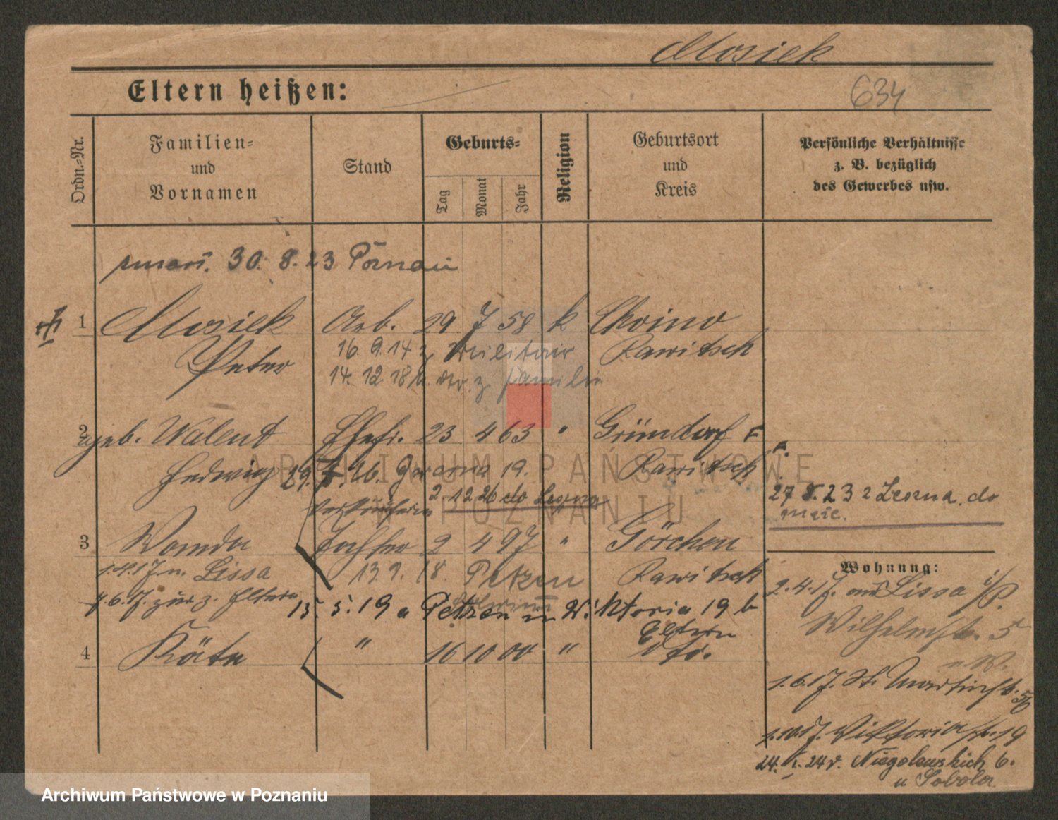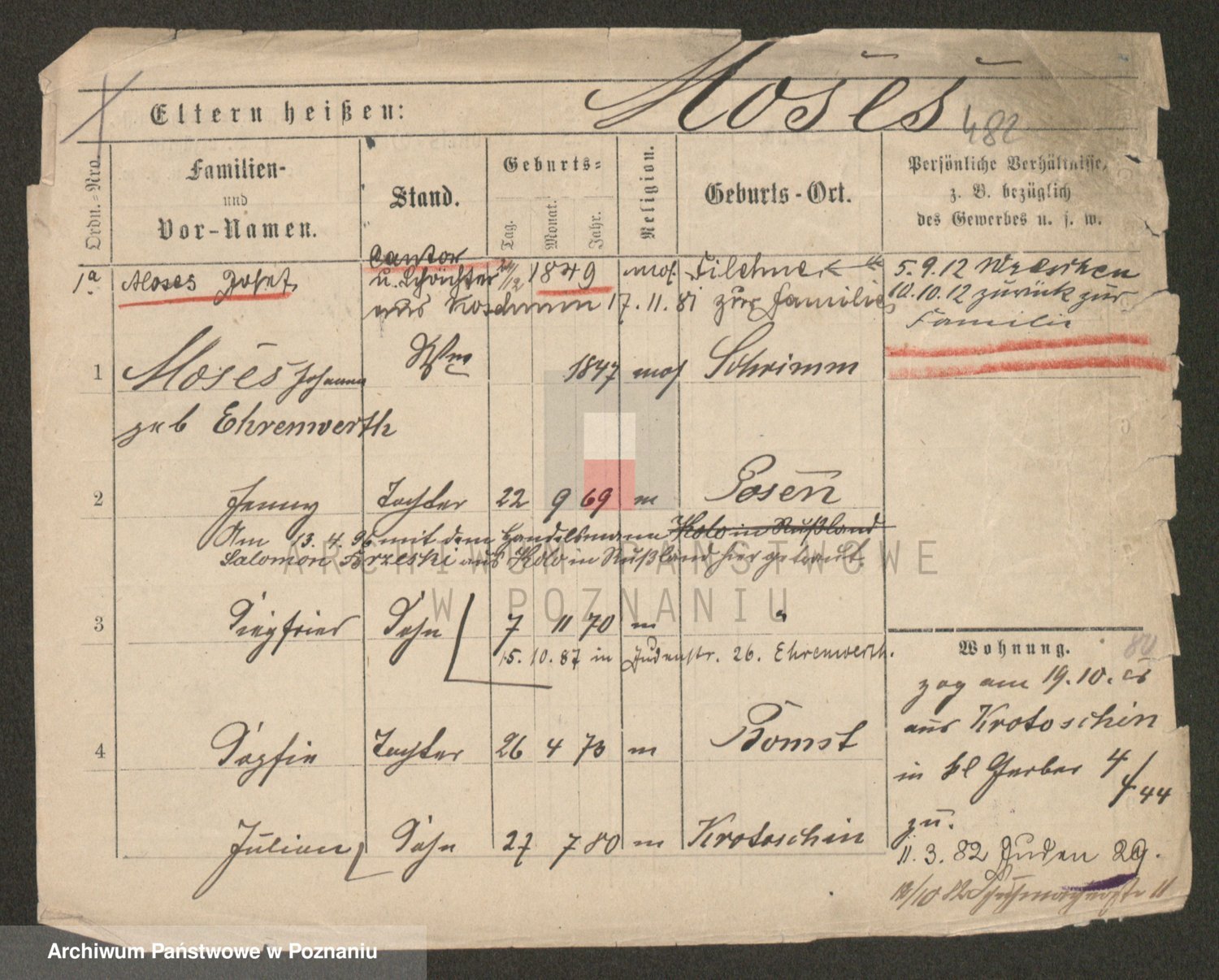 Podgląd karty osobowej dostępny jest po kliknięciu na nazwisko lub ikonkę karty. Można dokonywać powiększenia (ikony na górze) lub przechodzić między kolejnymi skanami (strzałki po bokach).
