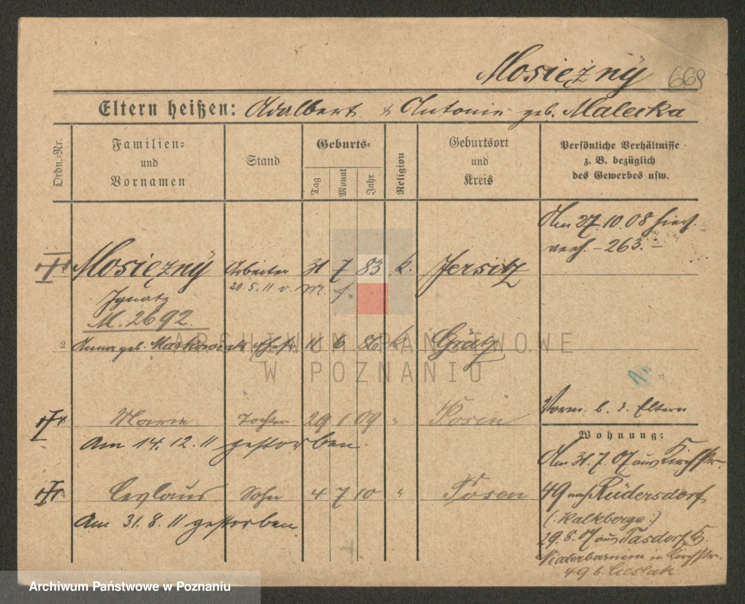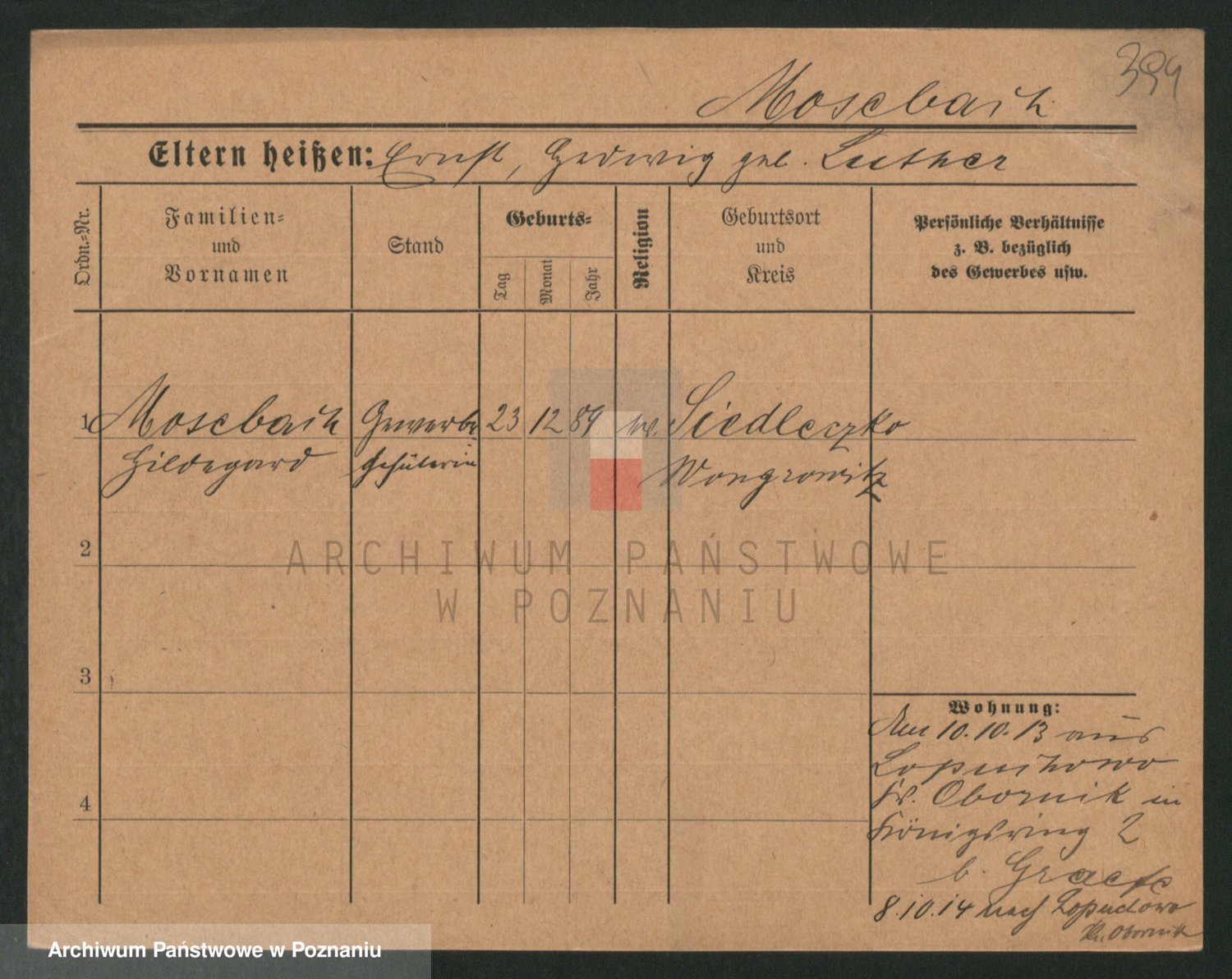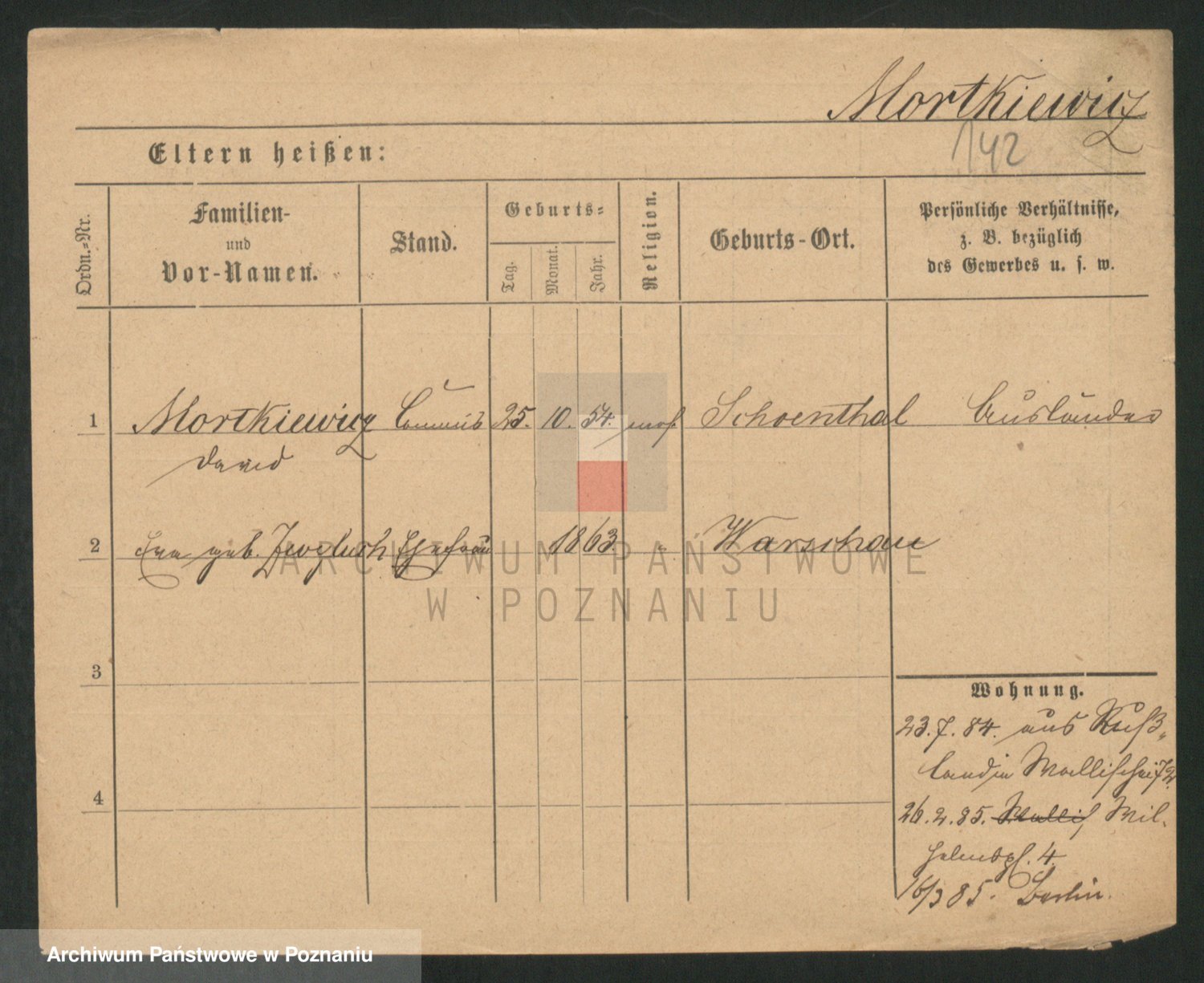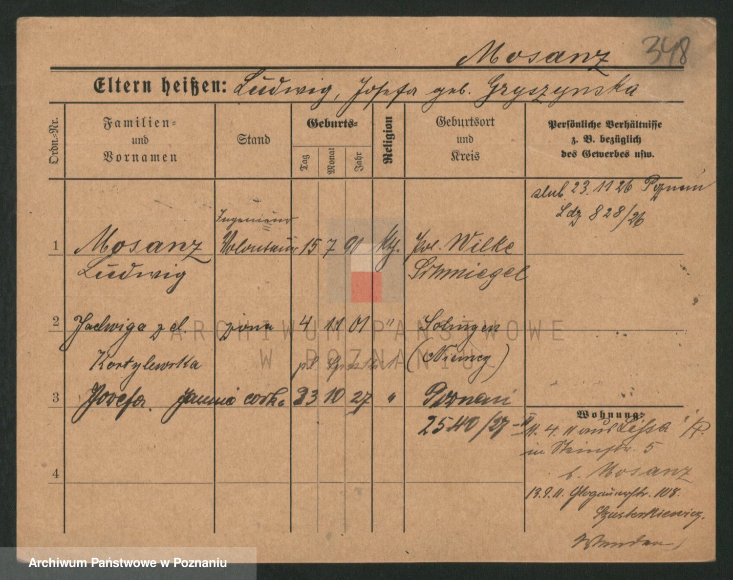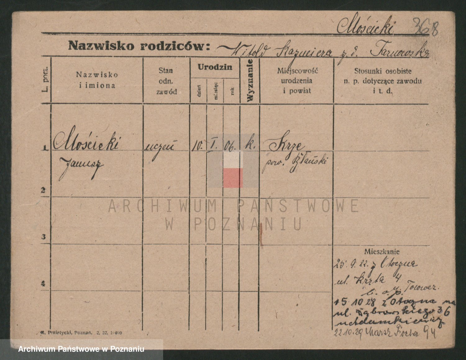 Podgląd karty osobowej dostępny jest po kliknięciu na nazwisko lub ikonkę karty. Można dokonywać powiększenia (ikony na górze) lub przechodzić między kolejnymi skanami (strzałki po bokach).