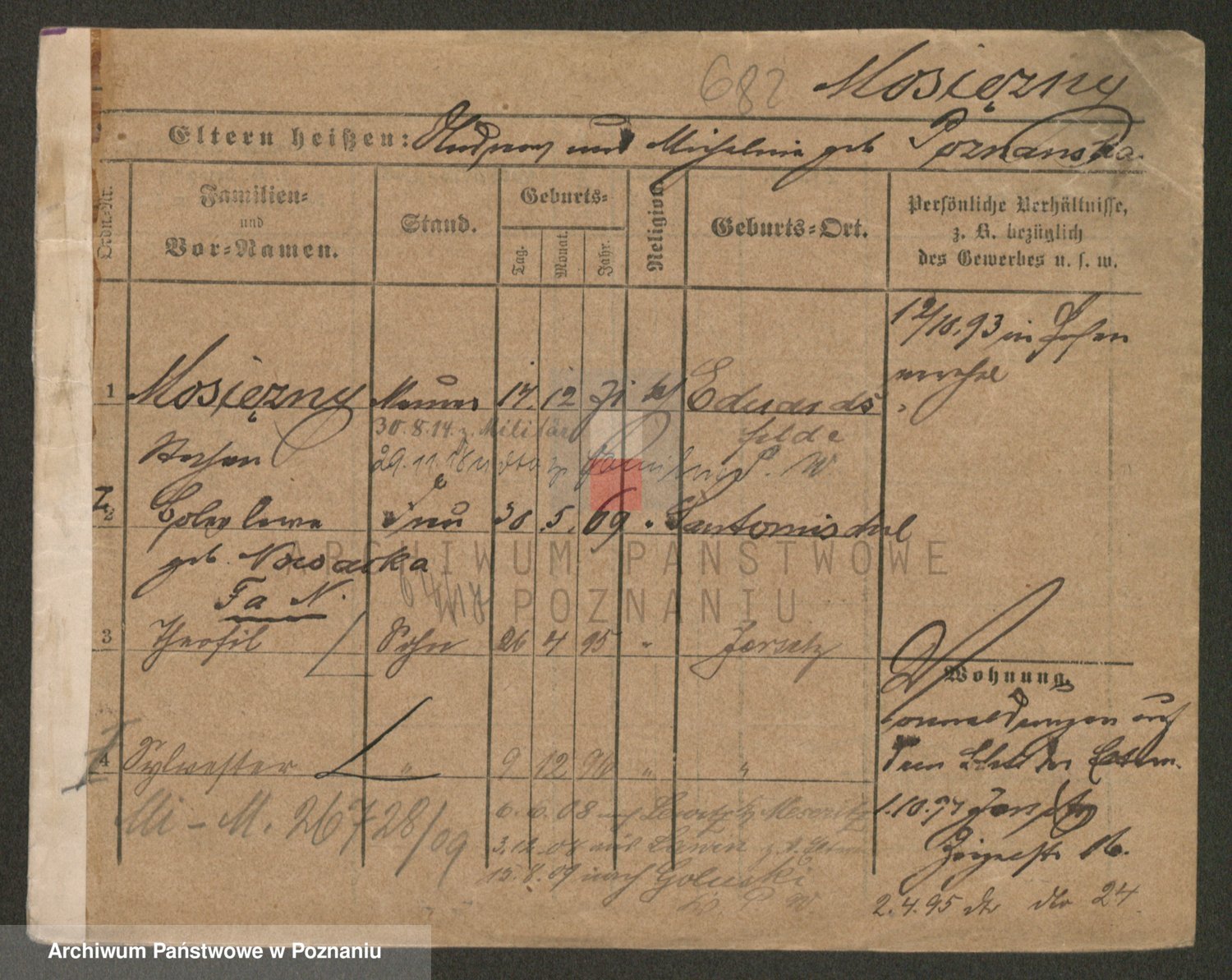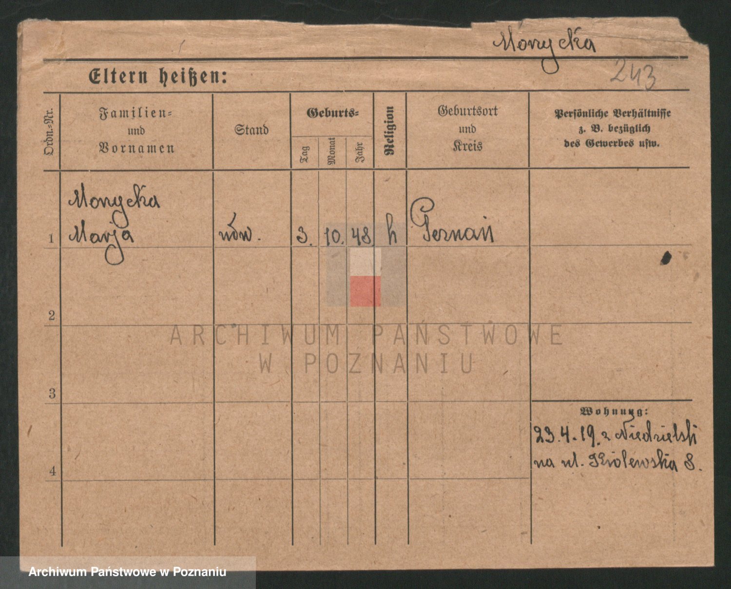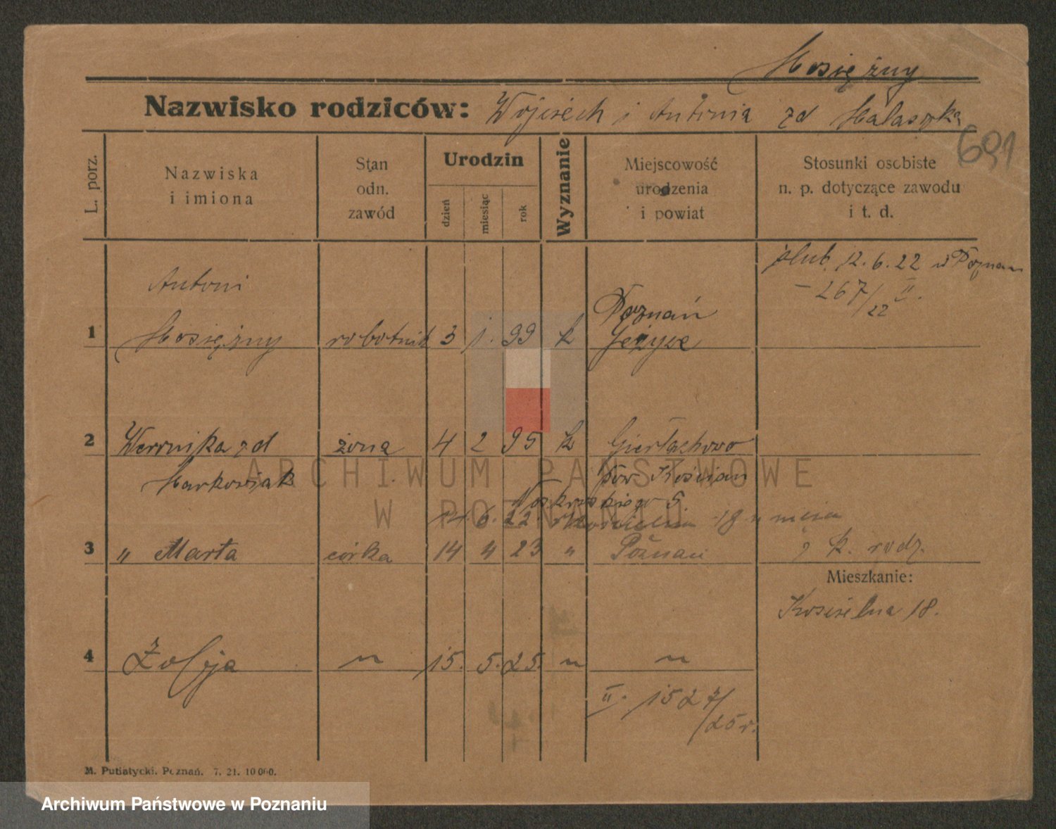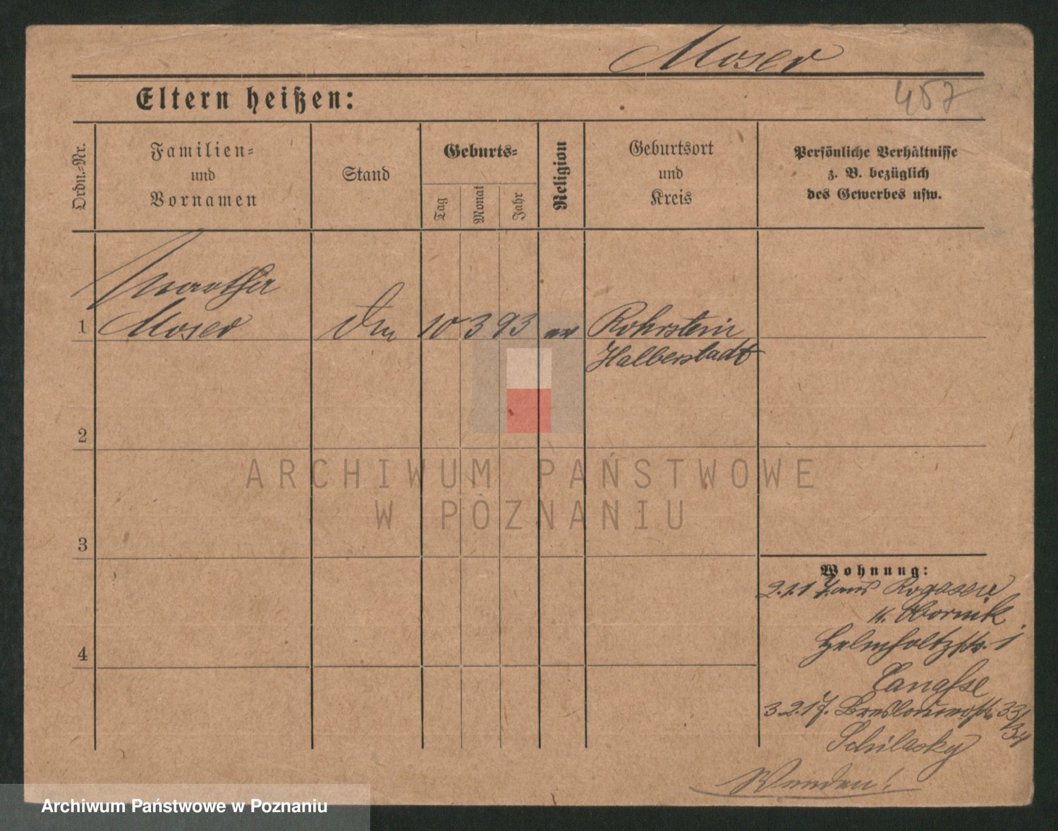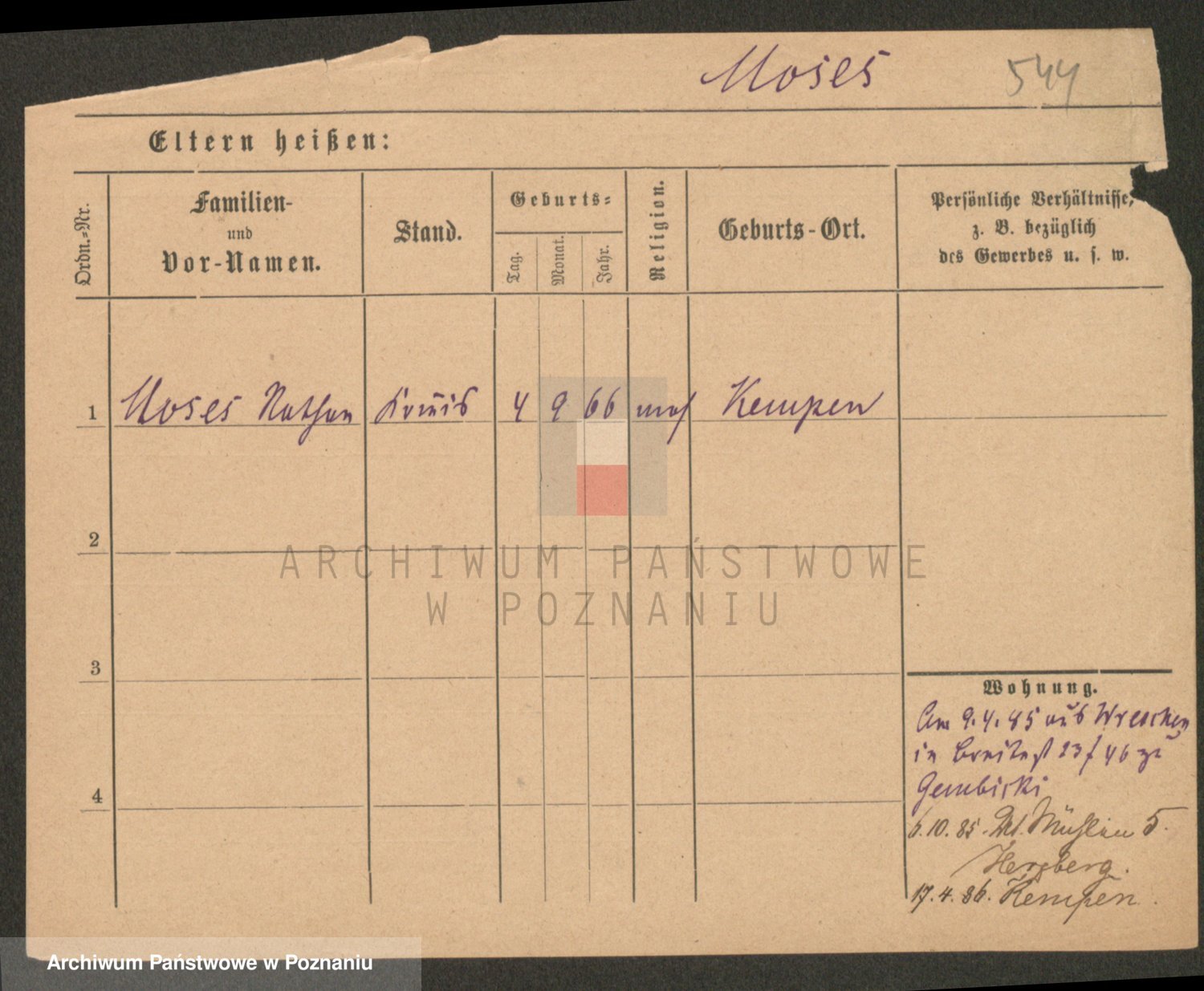 Podgląd karty osobowej dostępny jest po kliknięciu na nazwisko lub ikonkę karty. Można dokonywać powiększenia (ikony na górze) lub przechodzić między kolejnymi skanami (strzałki po bokach).