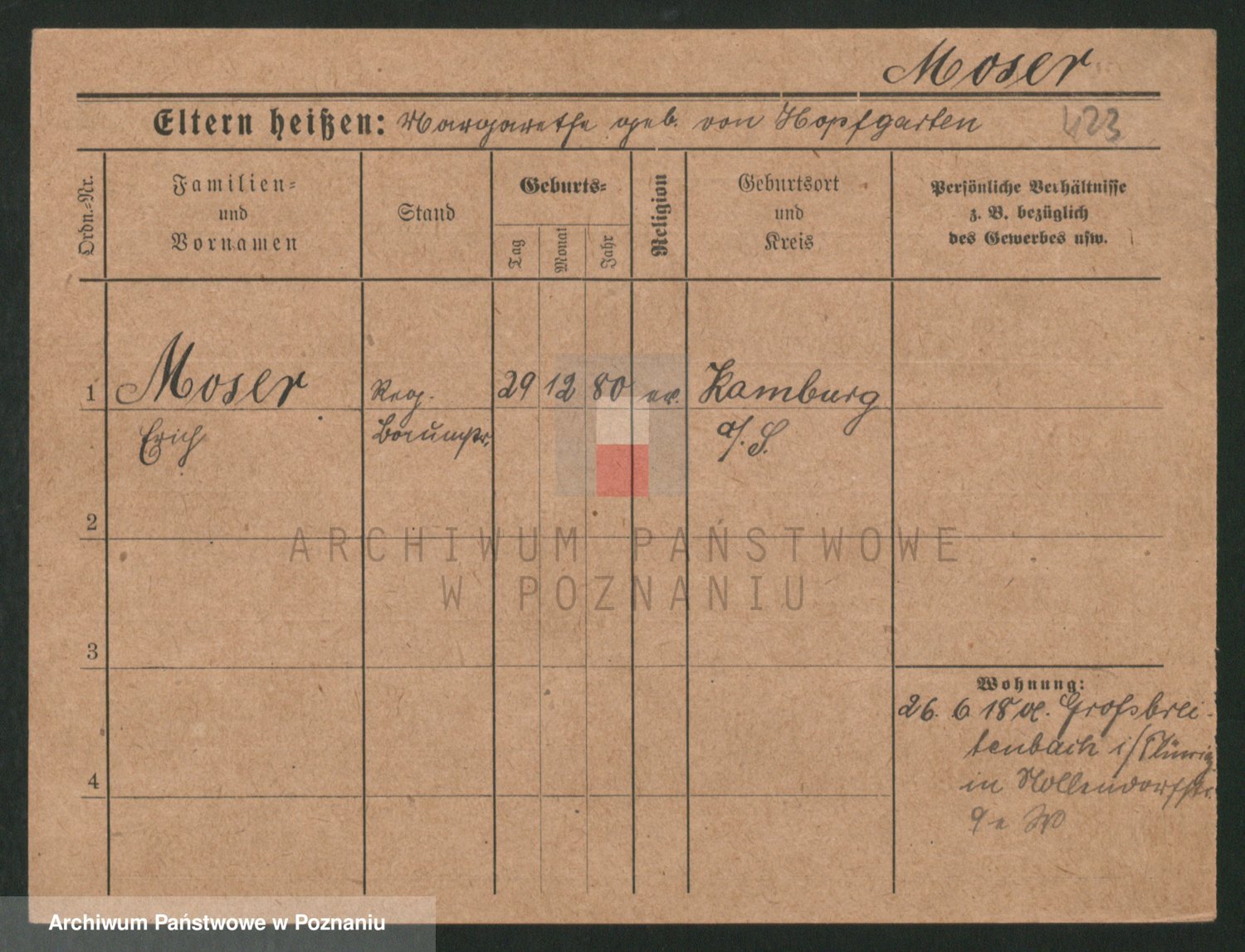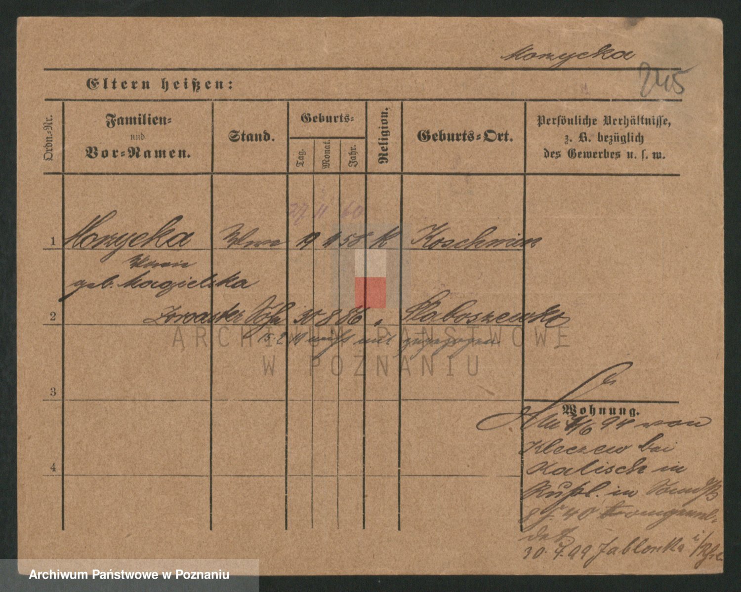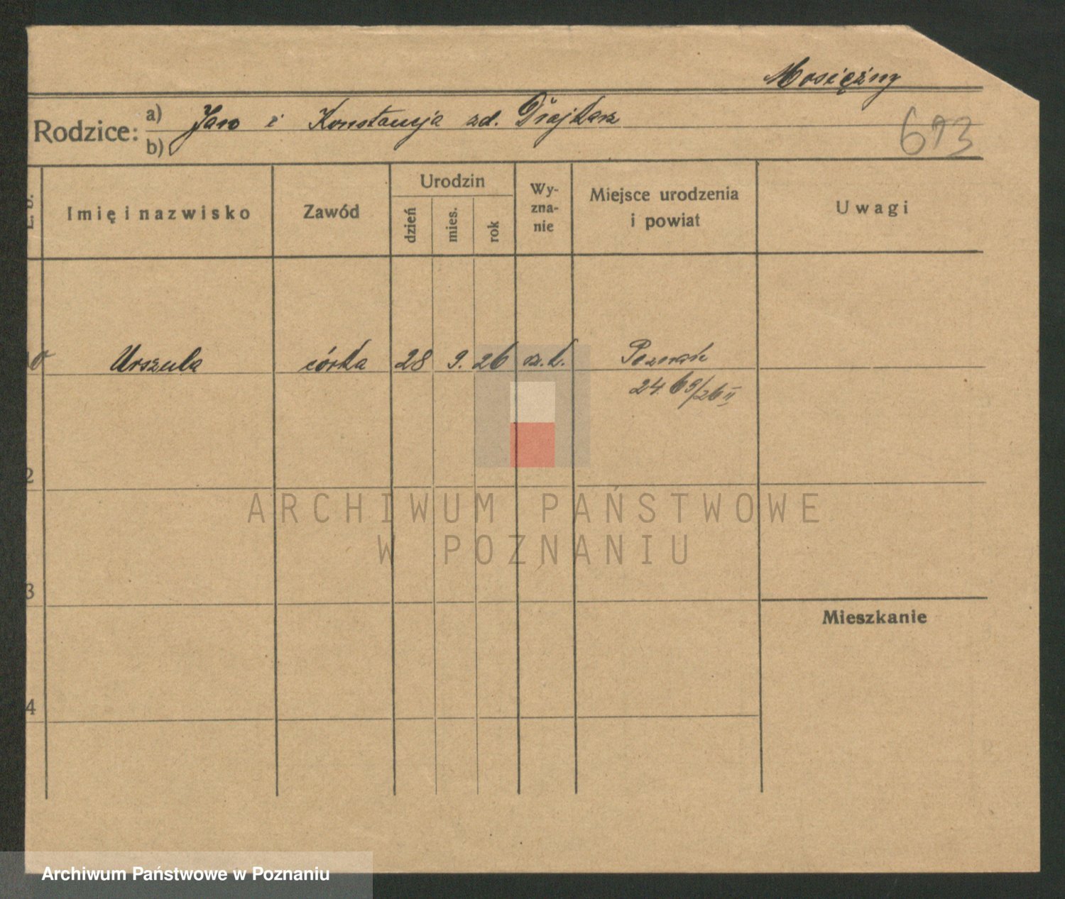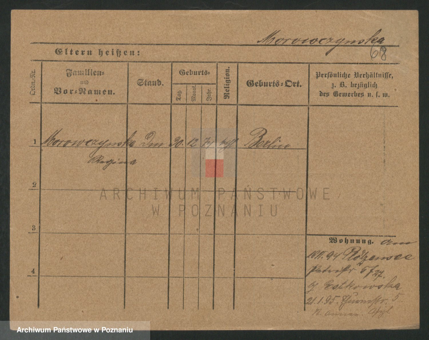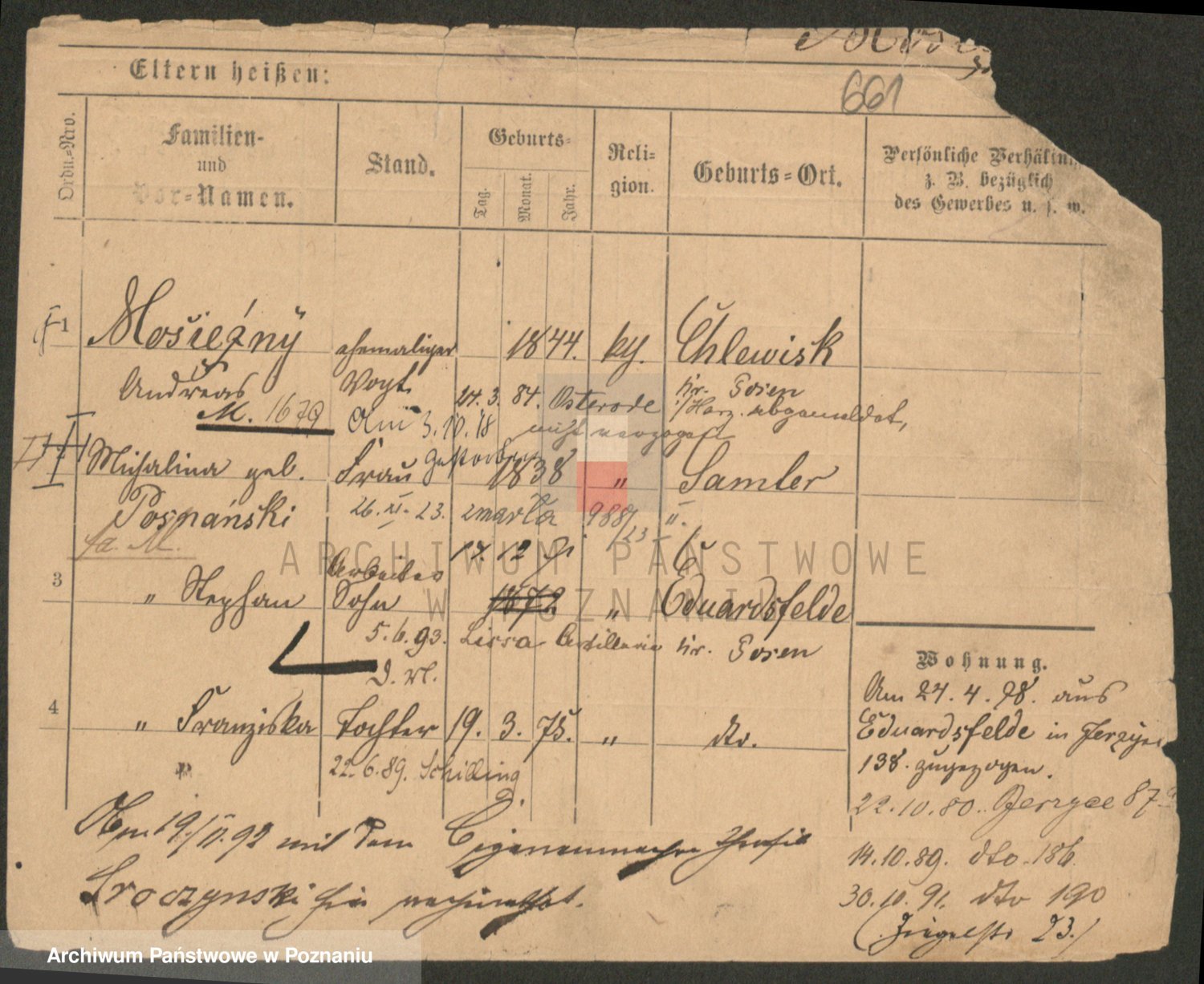 Podgląd karty osobowej dostępny jest po kliknięciu na nazwisko lub ikonkę karty. Można dokonywać powiększenia (ikony na górze) lub przechodzić między kolejnymi skanami (strzałki po bokach).