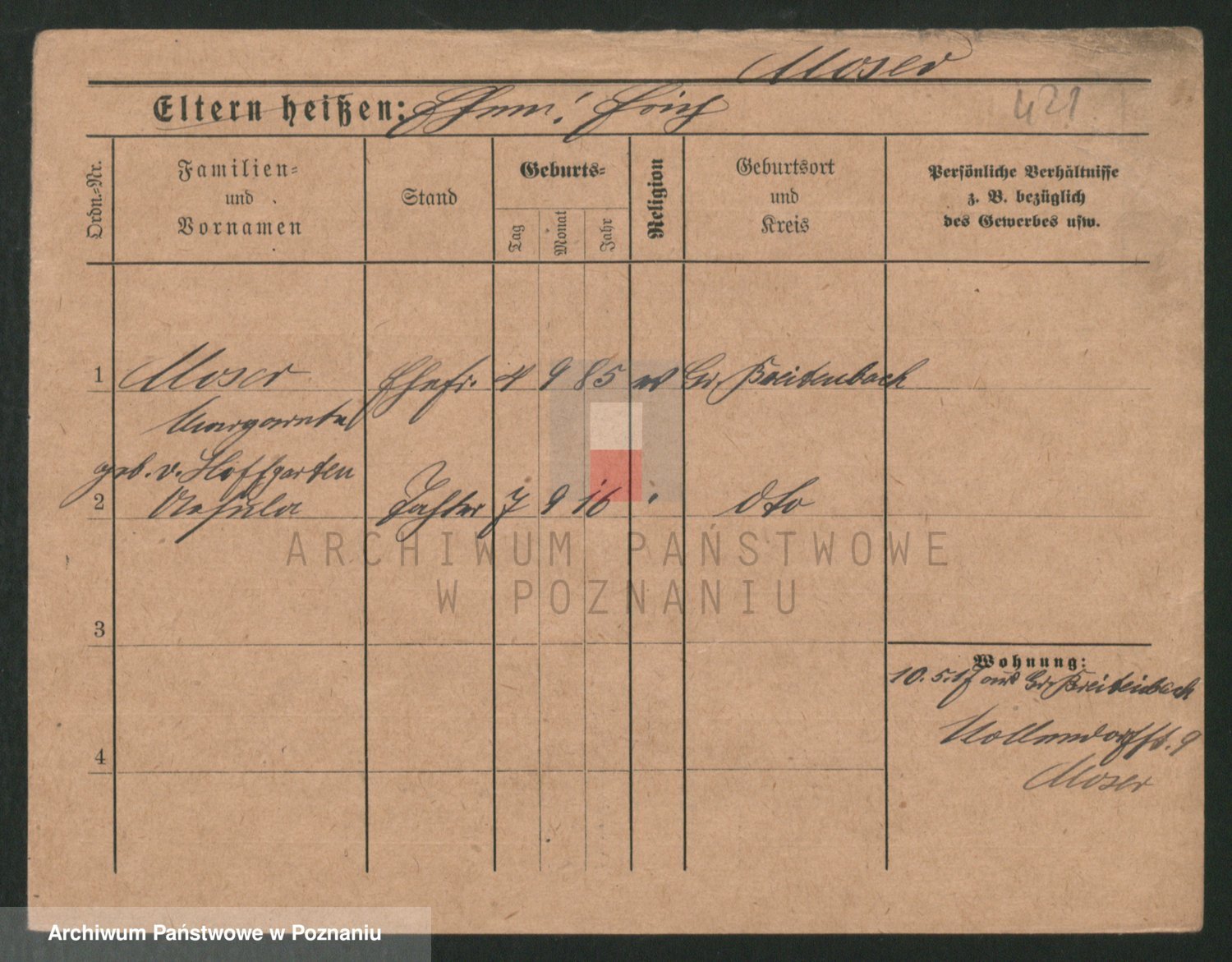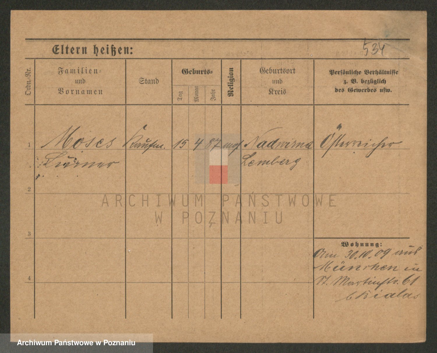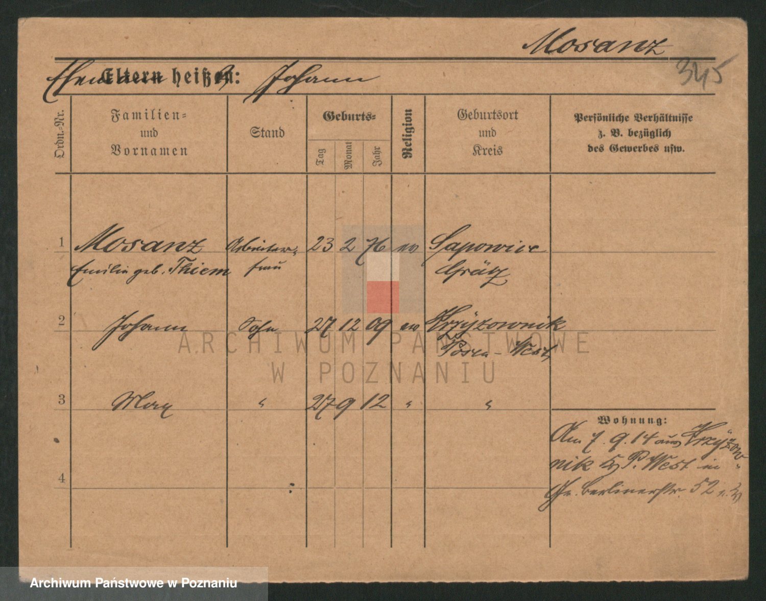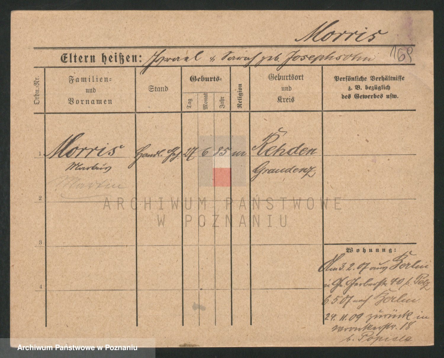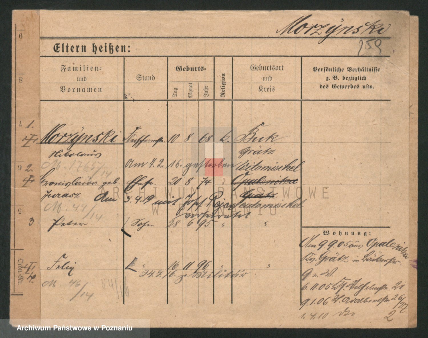 Podgląd karty osobowej dostępny jest po kliknięciu na nazwisko lub ikonkę karty. Można dokonywać powiększenia (ikony na górze) lub przechodzić między kolejnymi skanami (strzałki po bokach).