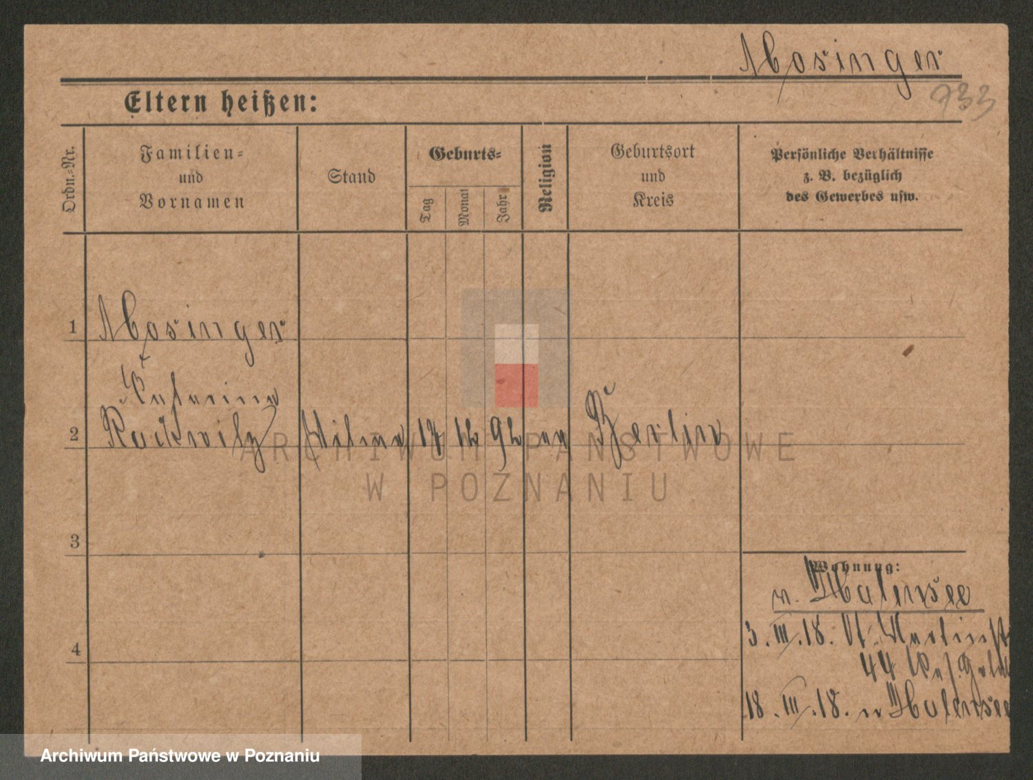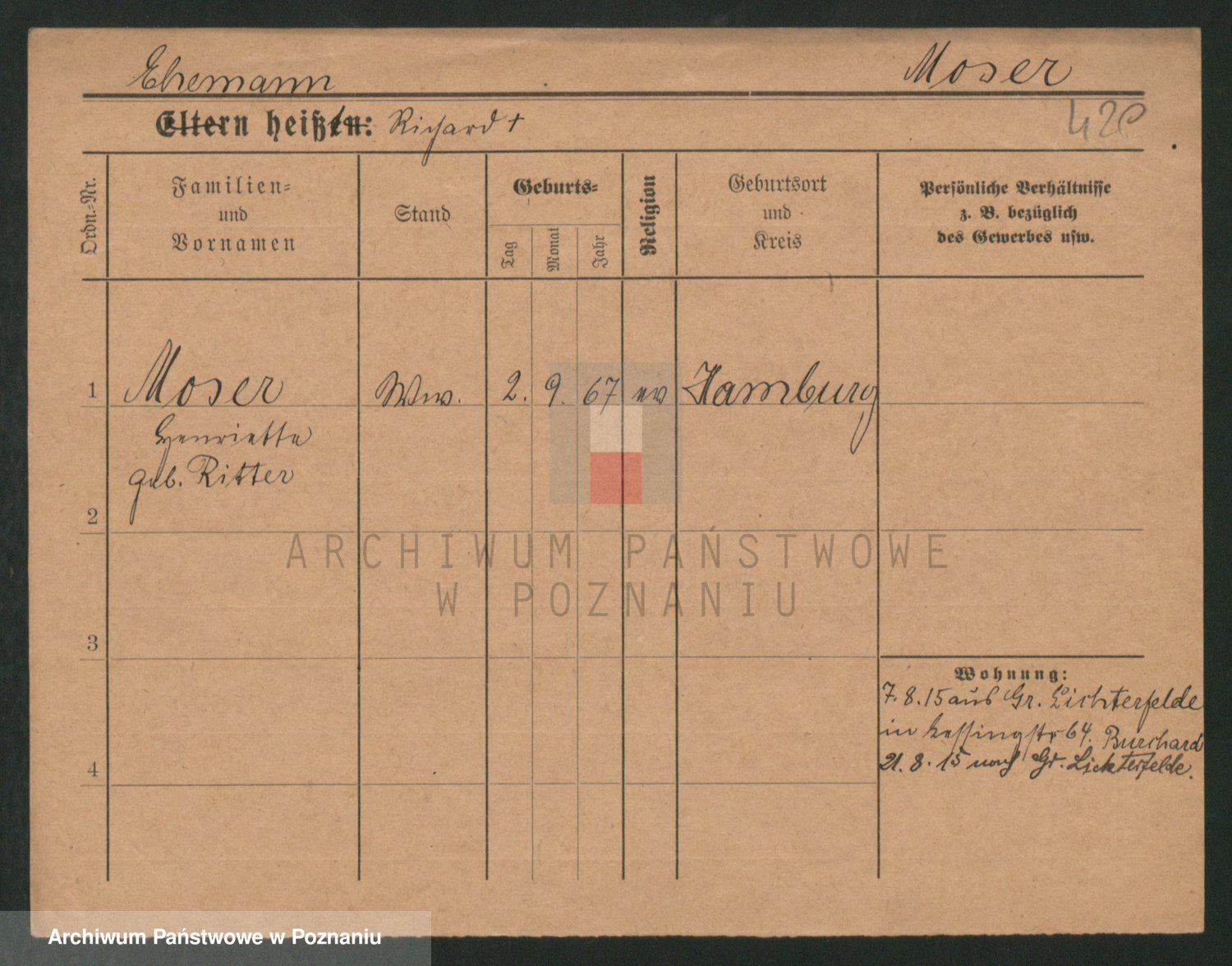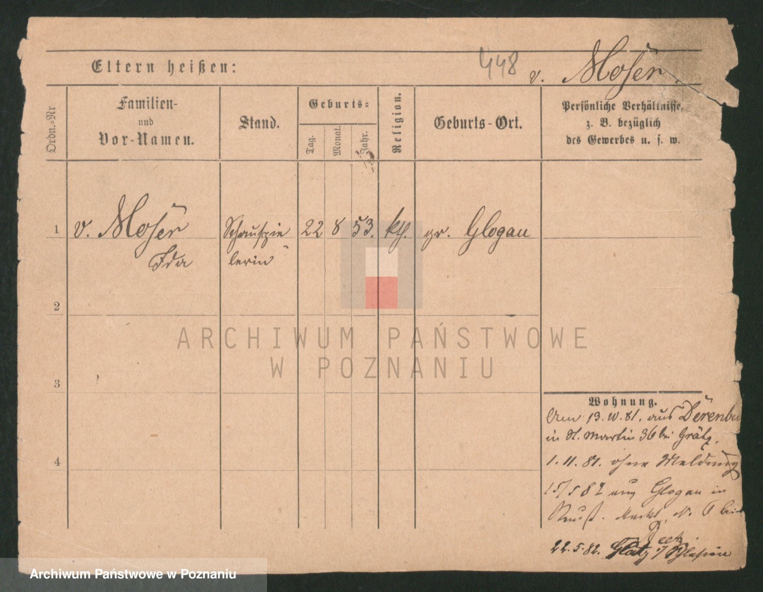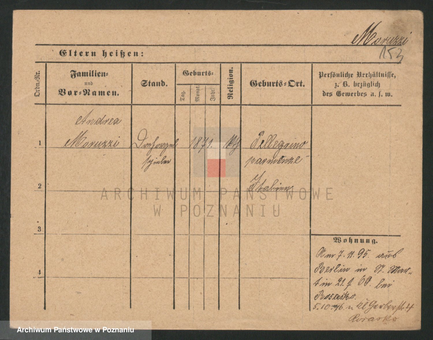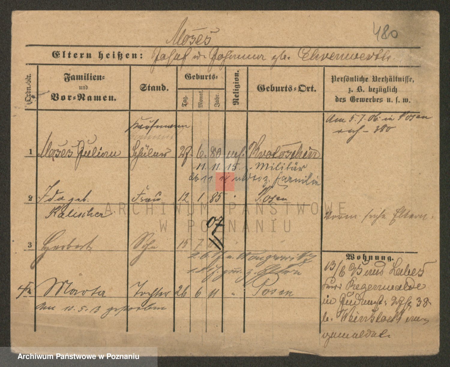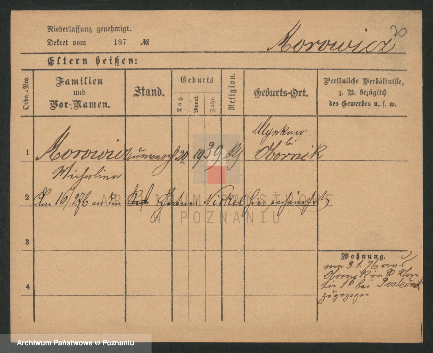 Podgląd karty osobowej dostępny jest po kliknięciu na nazwisko lub ikonkę karty. Można dokonywać powiększenia (ikony na górze) lub przechodzić między kolejnymi skanami (strzałki po bokach).