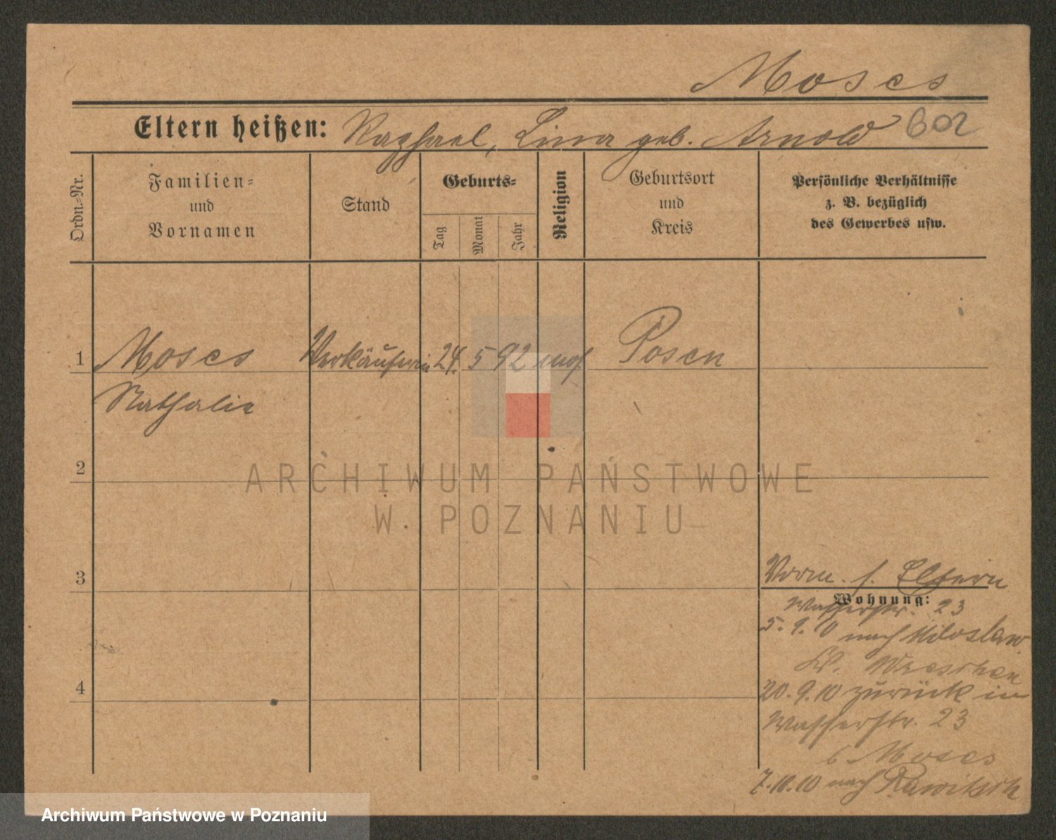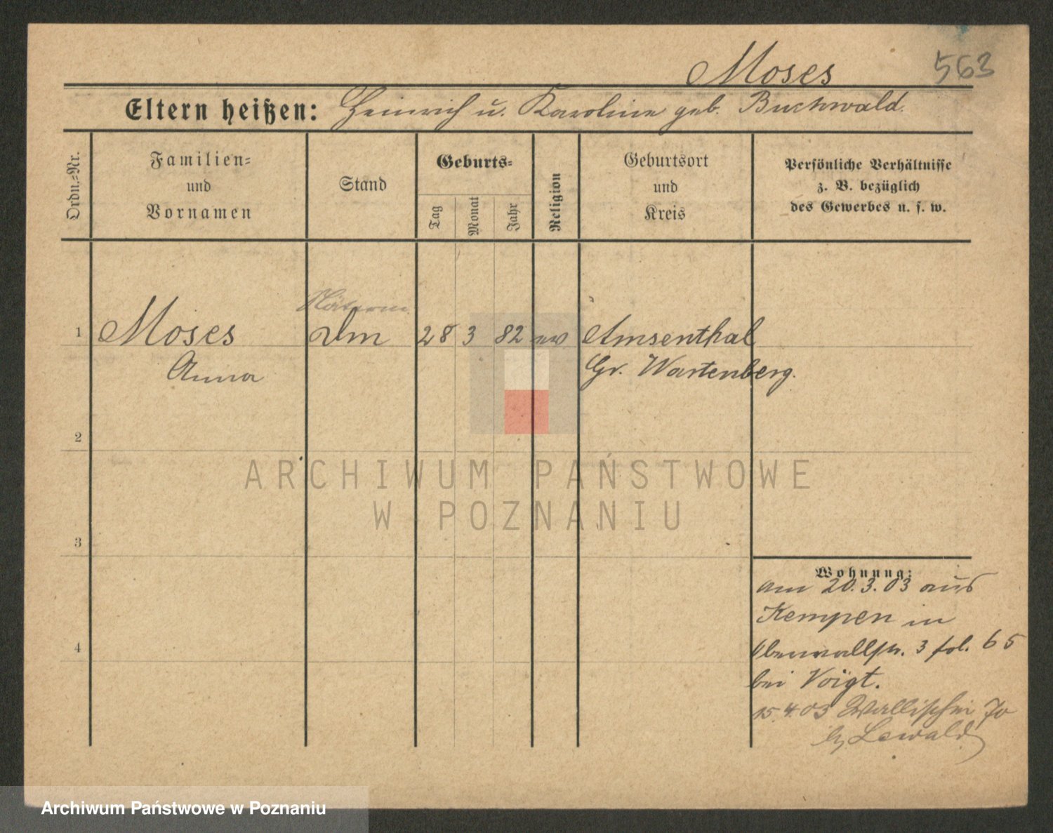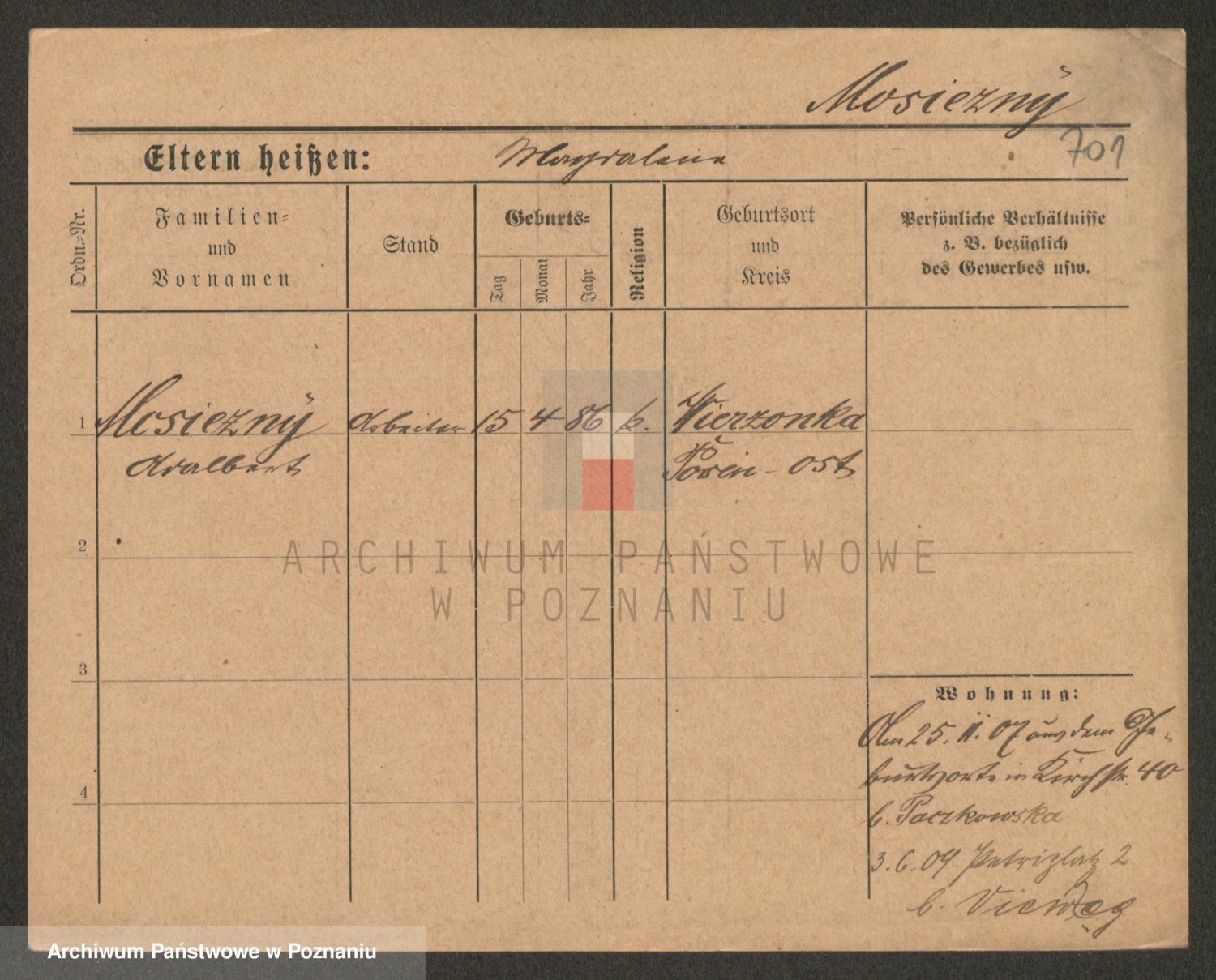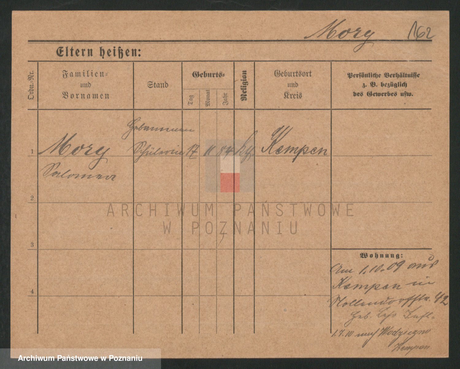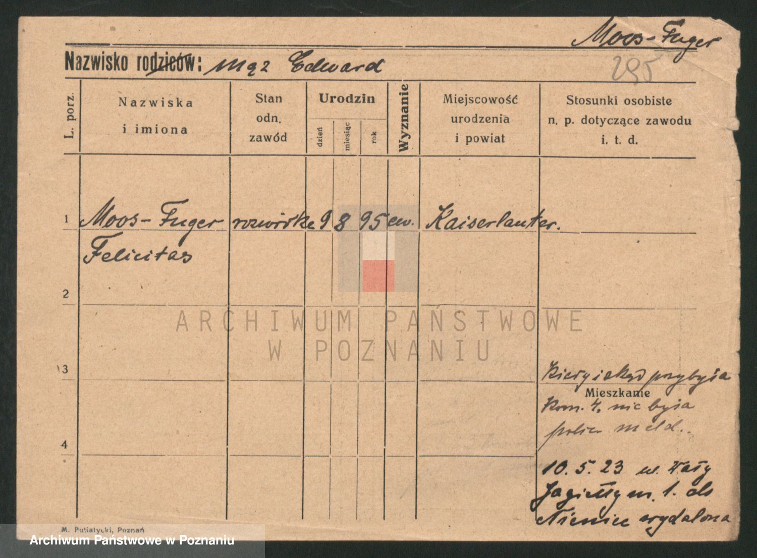 Podgląd karty osobowej dostępny jest po kliknięciu na nazwisko lub ikonkę karty. Można dokonywać powiększenia (ikony na górze) lub przechodzić między kolejnymi skanami (strzałki po bokach).