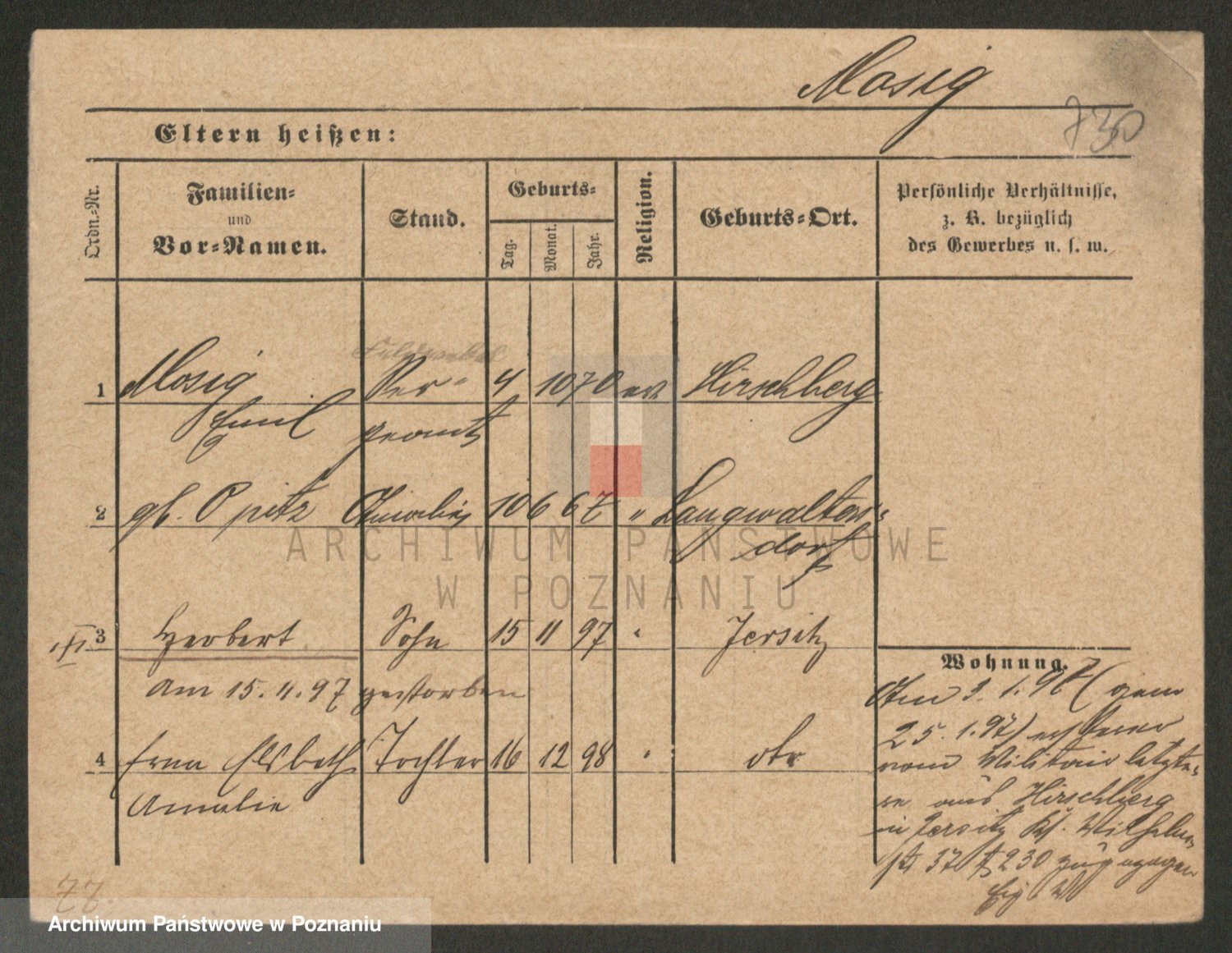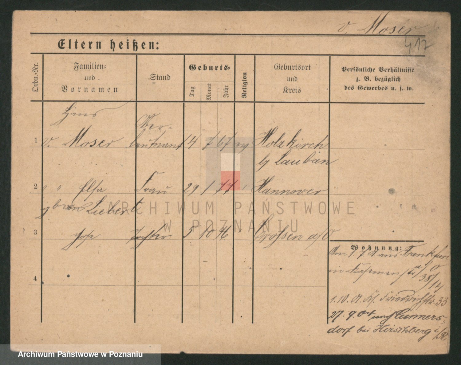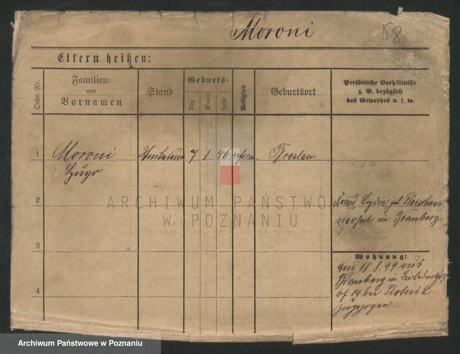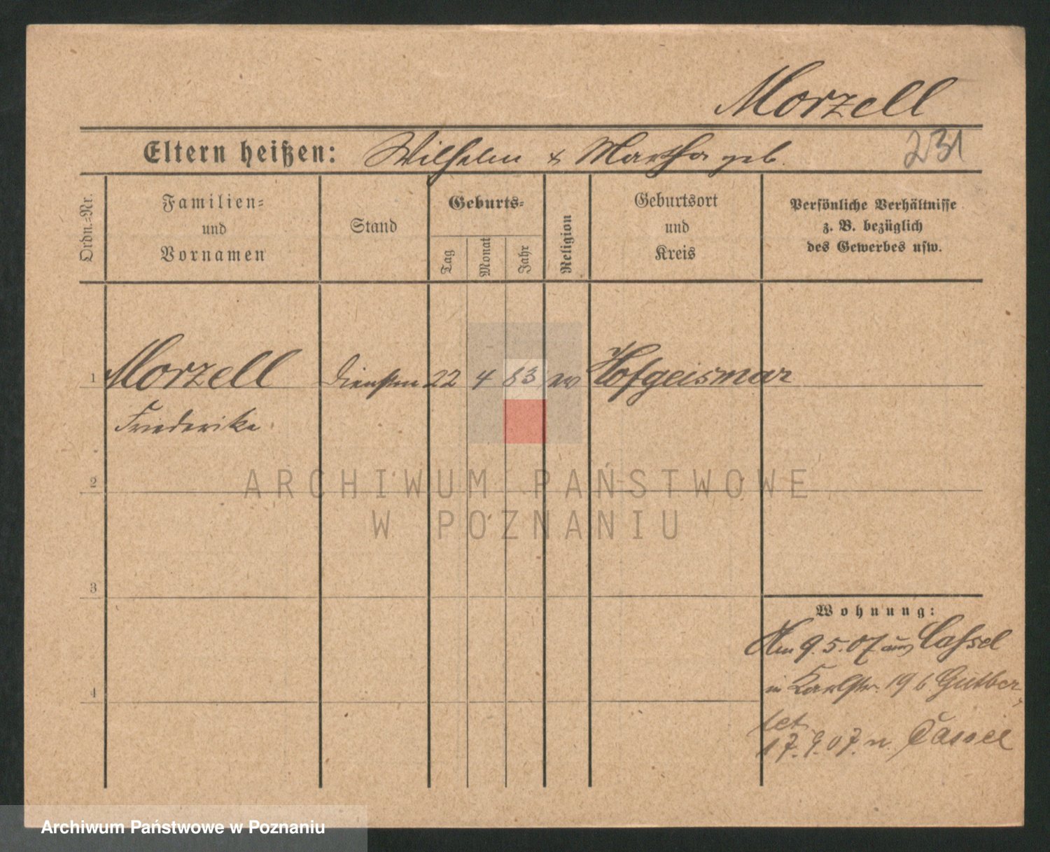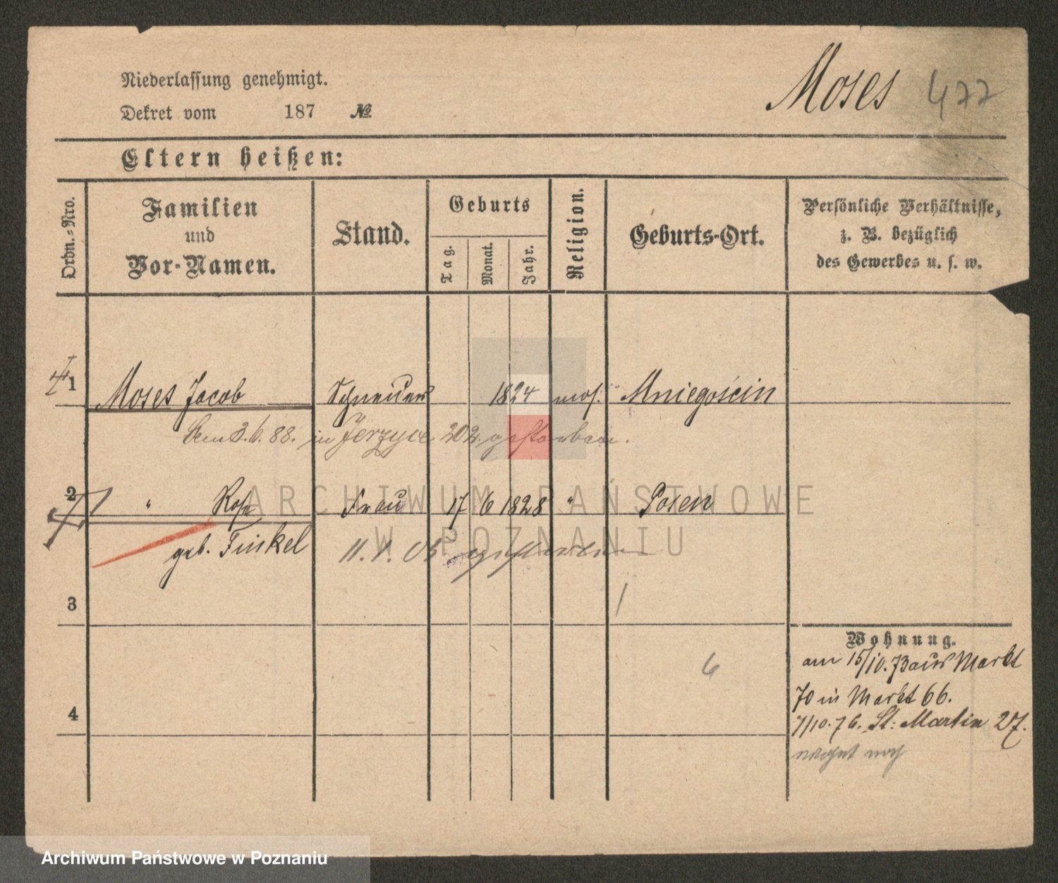 Podgląd karty osobowej dostępny jest po kliknięciu na nazwisko lub ikonkę karty. Można dokonywać powiększenia (ikony na górze) lub przechodzić między kolejnymi skanami (strzałki po bokach).