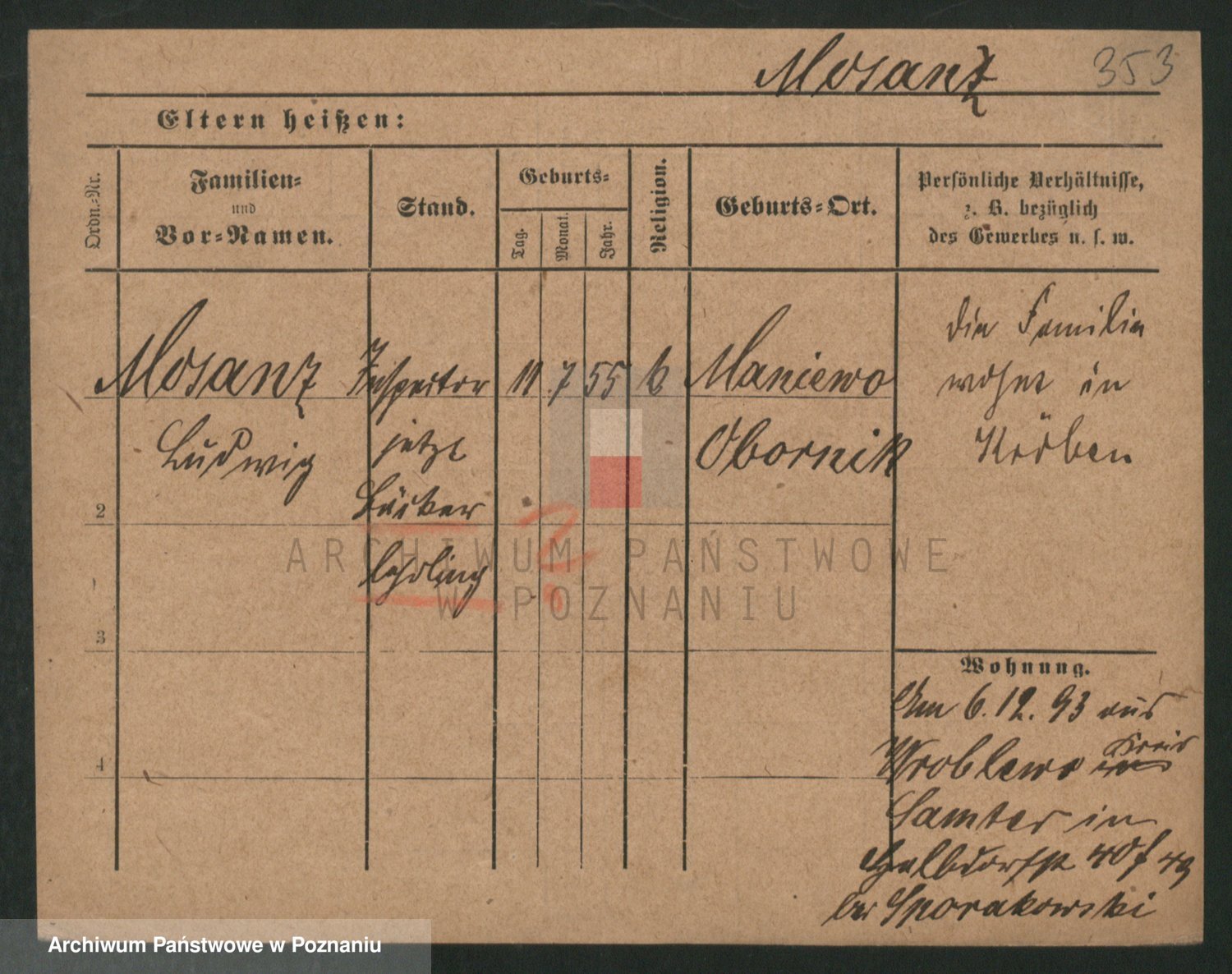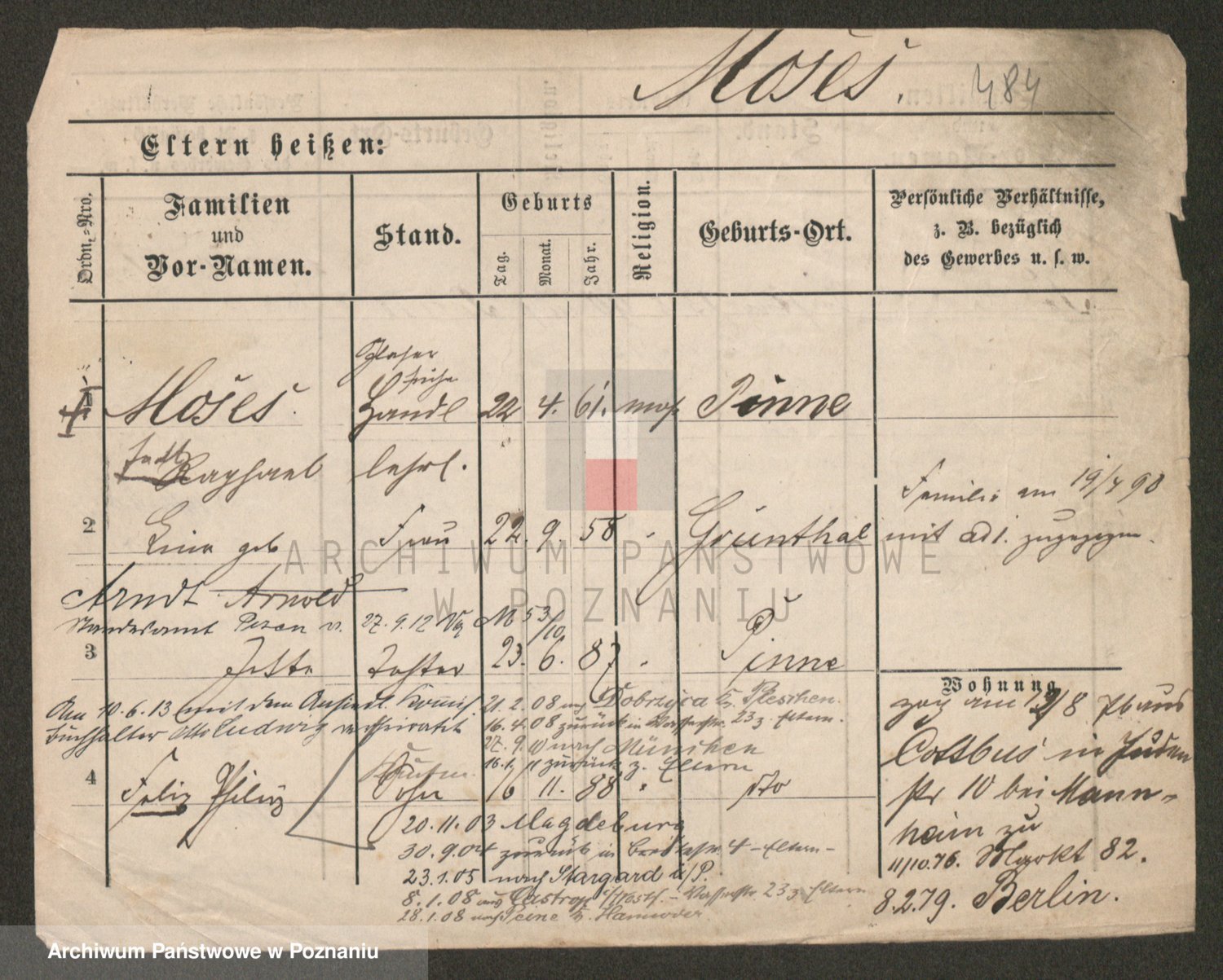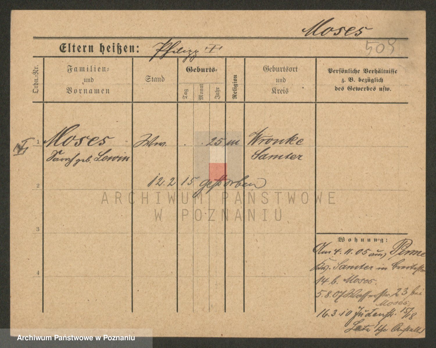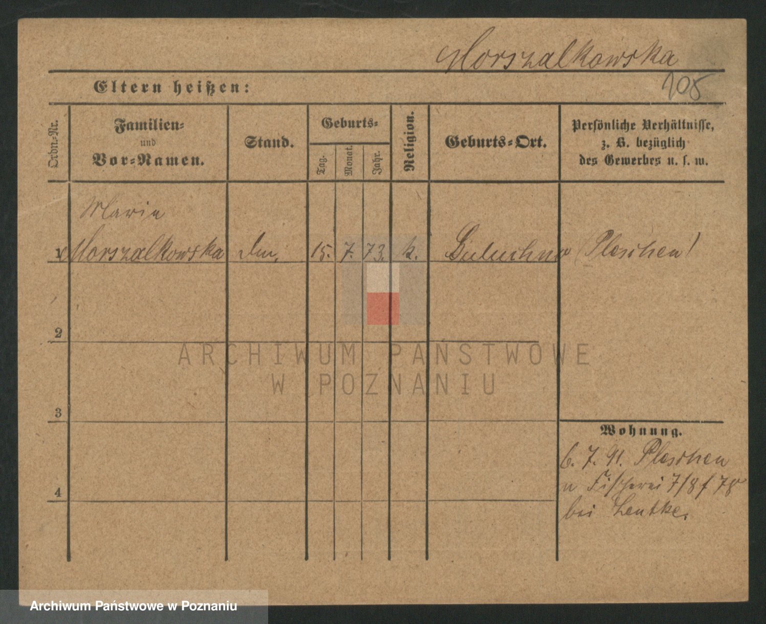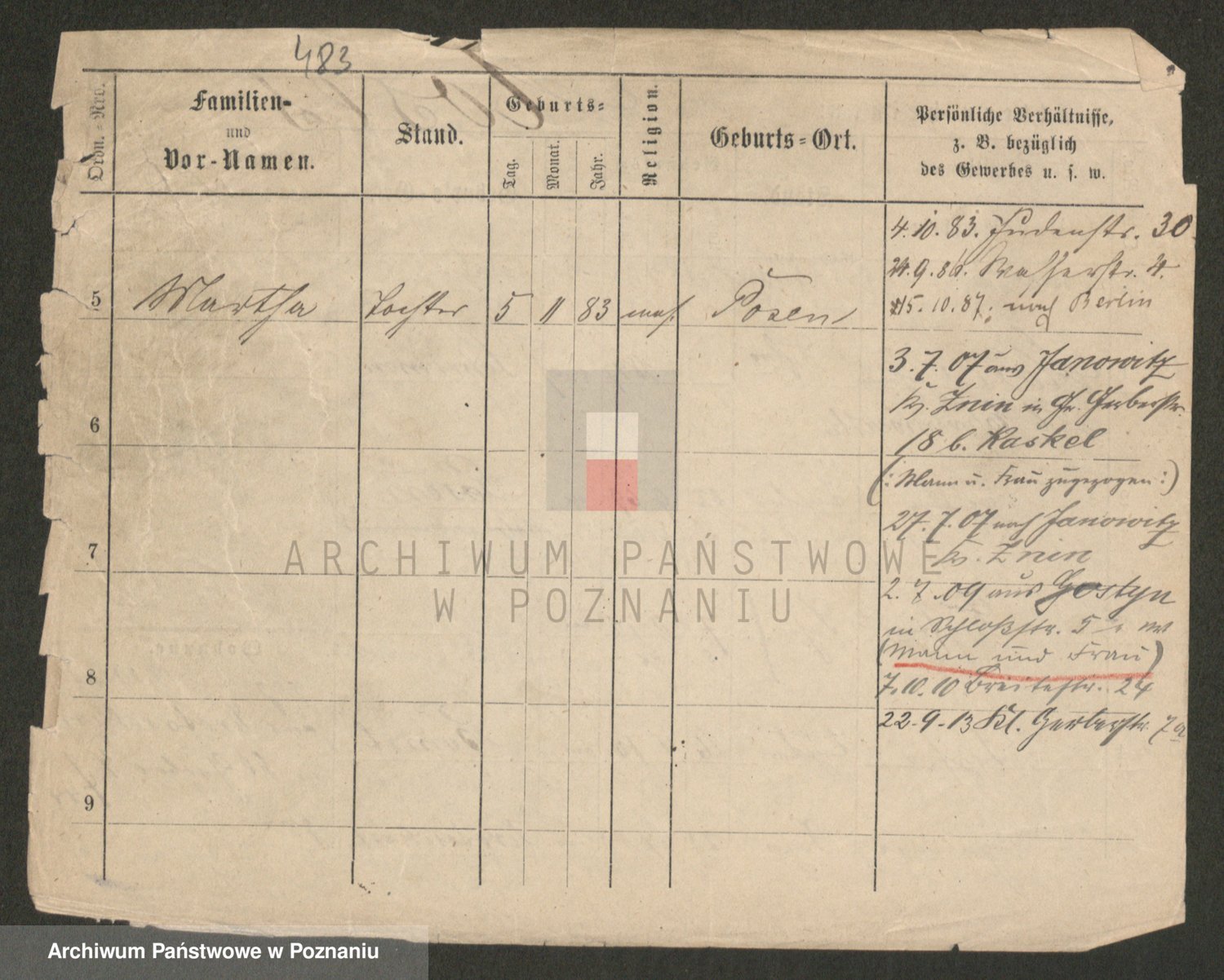 Podgląd karty osobowej dostępny jest po kliknięciu na nazwisko lub ikonkę karty. Można dokonywać powiększenia (ikony na górze) lub przechodzić między kolejnymi skanami (strzałki po bokach).