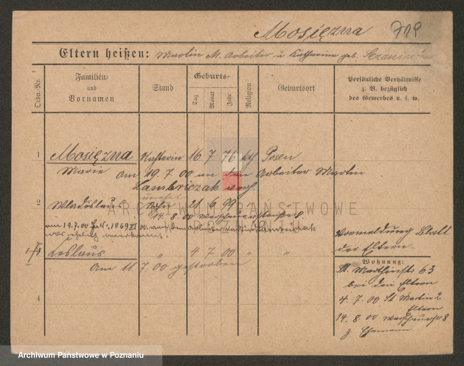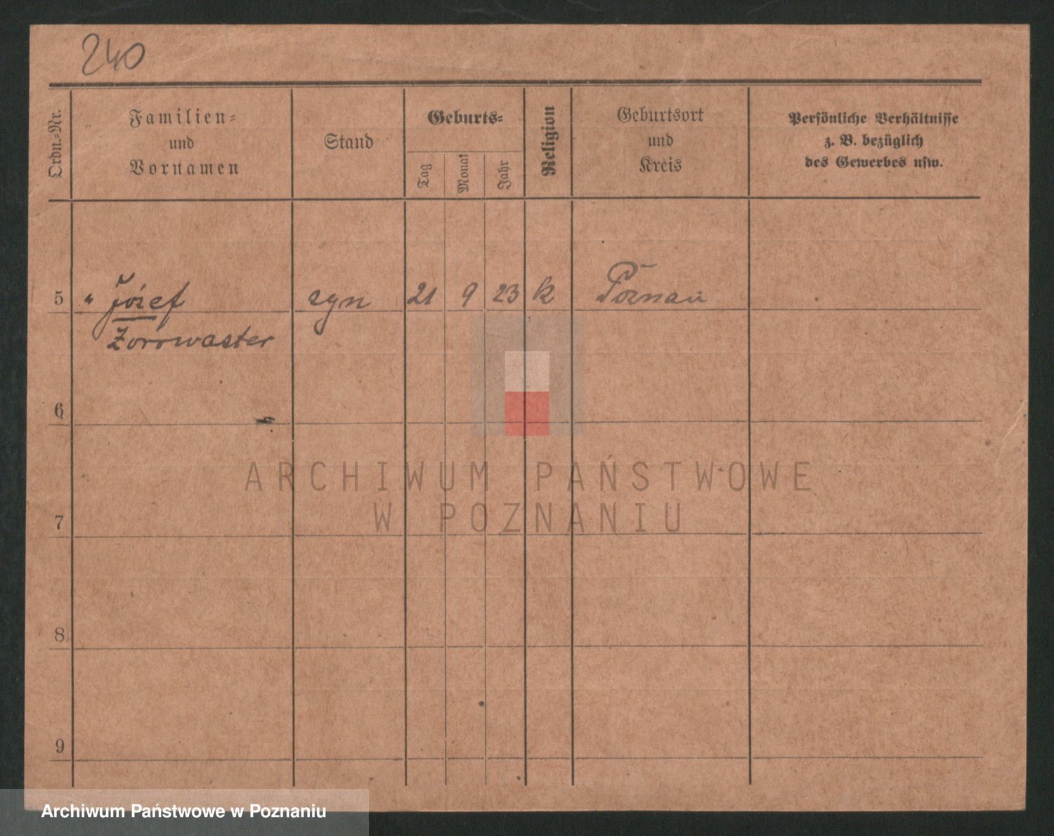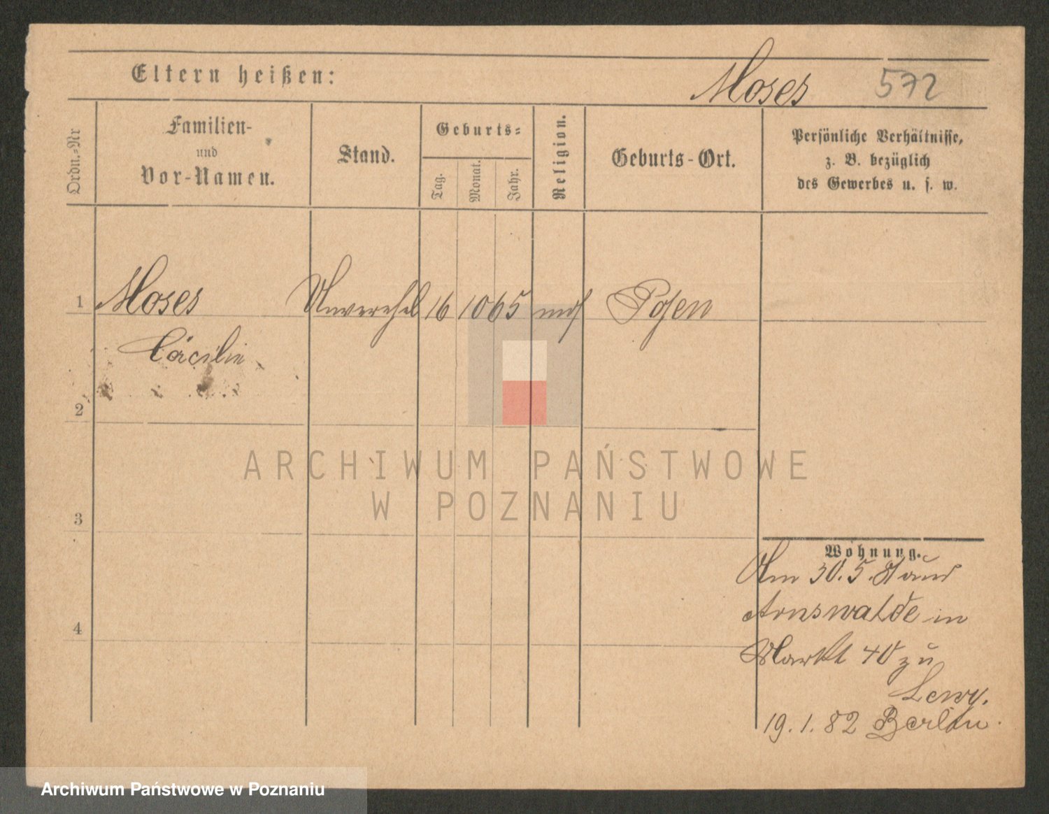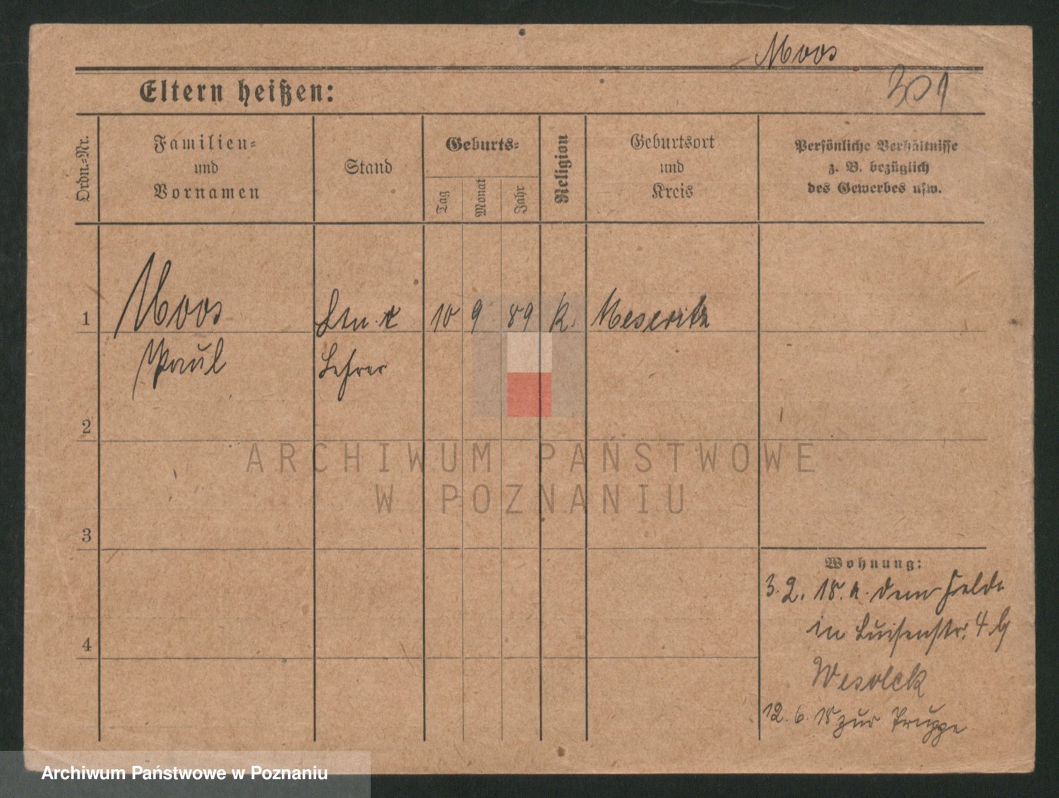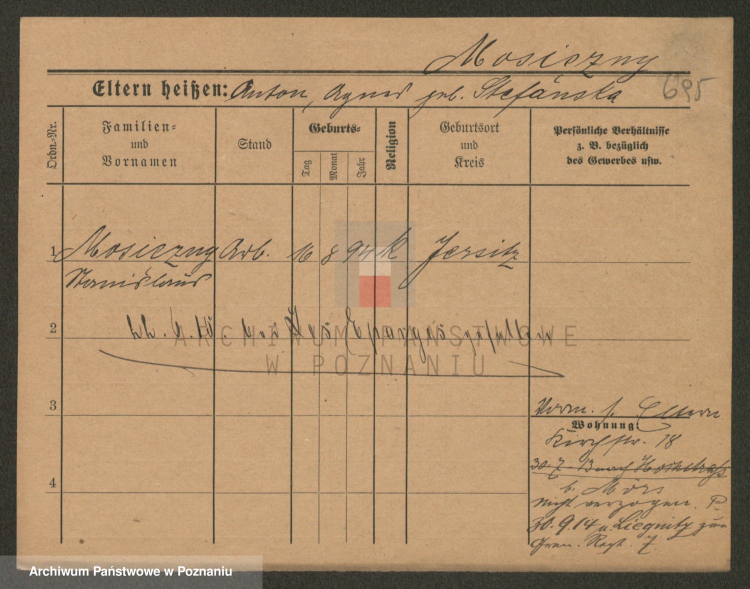 Podgląd karty osobowej dostępny jest po kliknięciu na nazwisko lub ikonkę karty. Można dokonywać powiększenia (ikony na górze) lub przechodzić między kolejnymi skanami (strzałki po bokach).