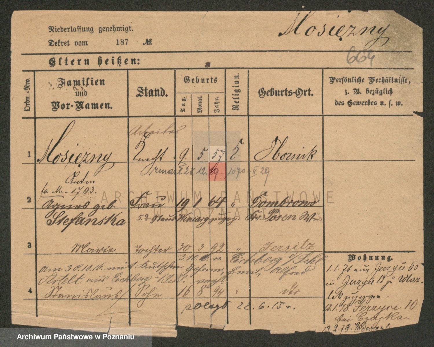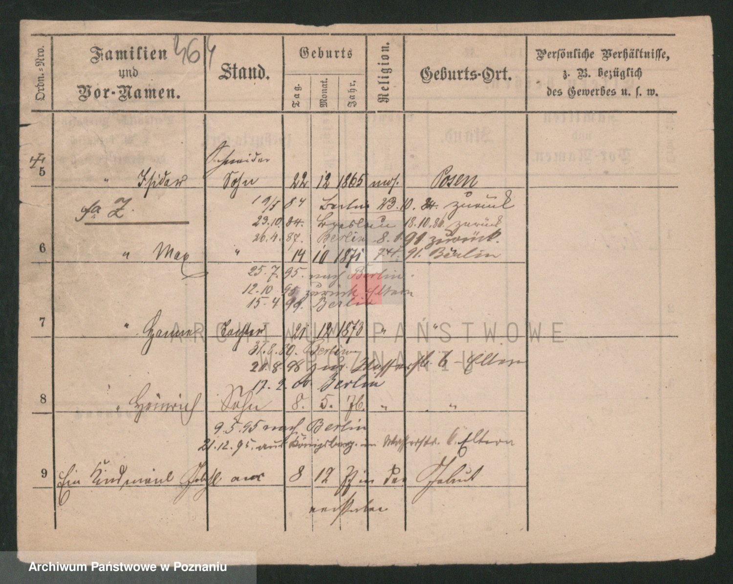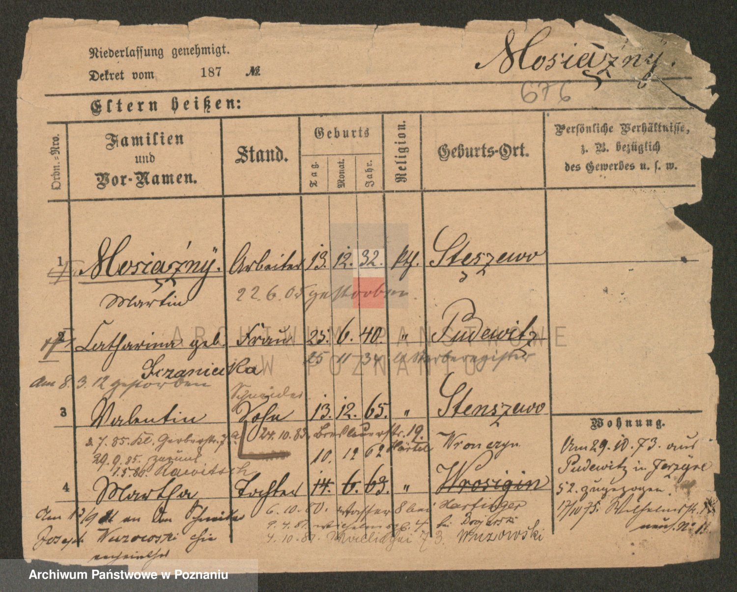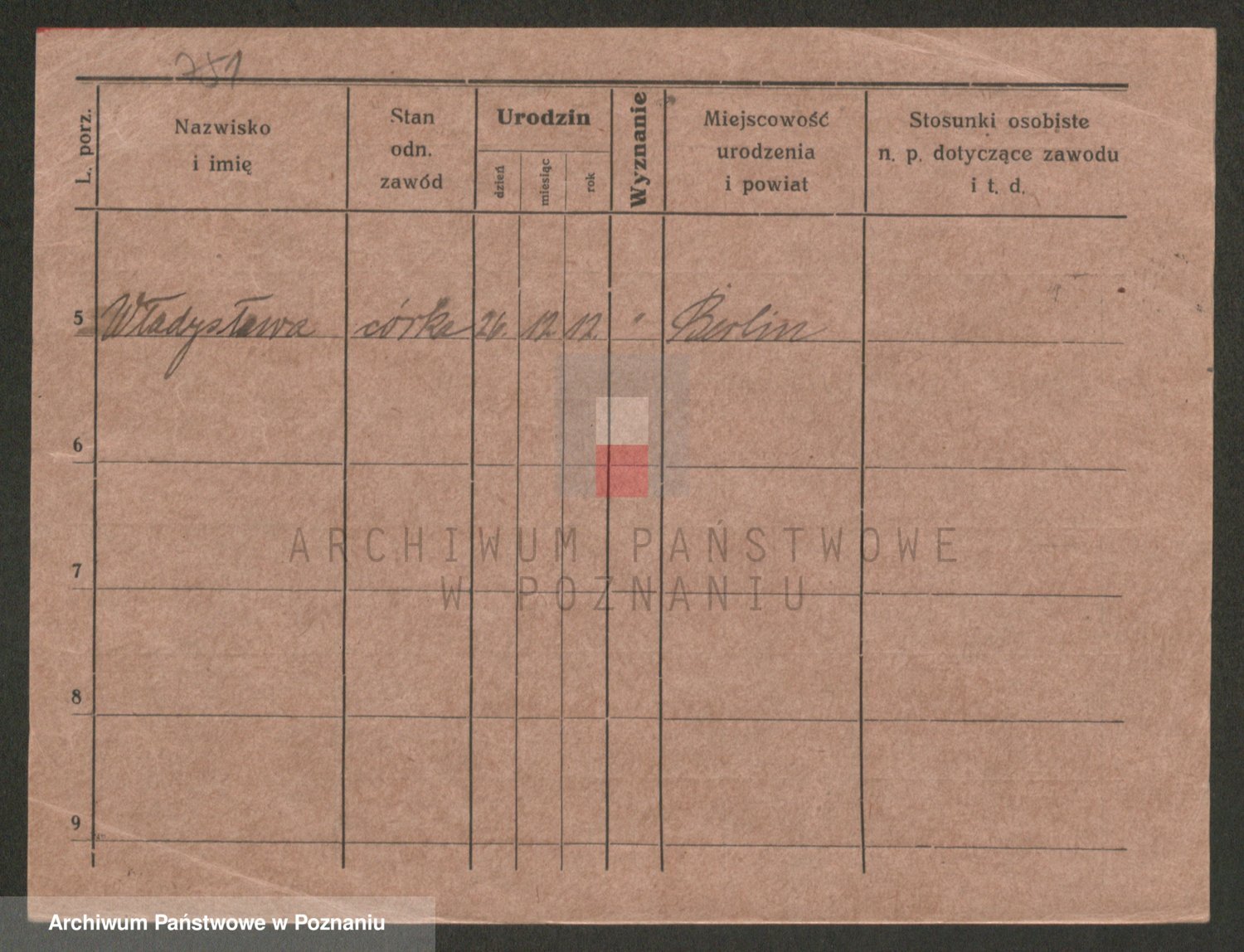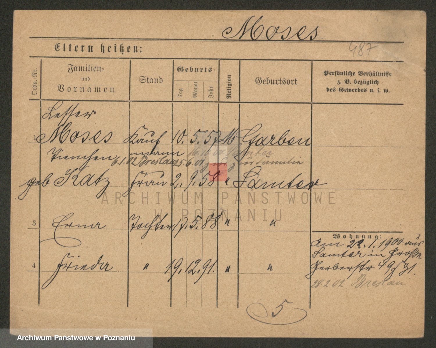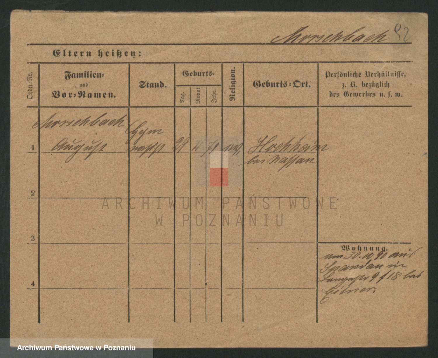 Podgląd karty osobowej dostępny jest po kliknięciu na nazwisko lub ikonkę karty. Można dokonywać powiększenia (ikony na górze) lub przechodzić między kolejnymi skanami (strzałki po bokach).