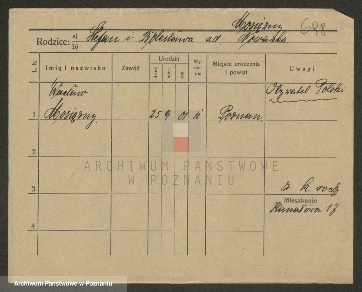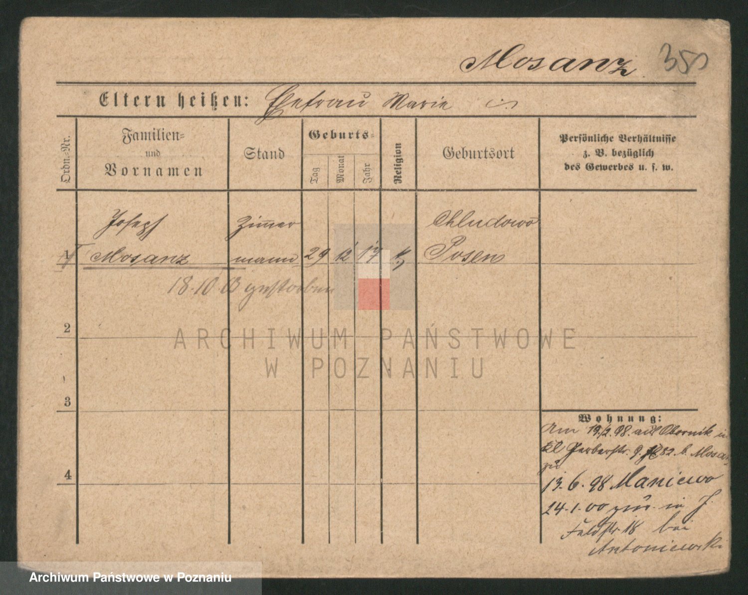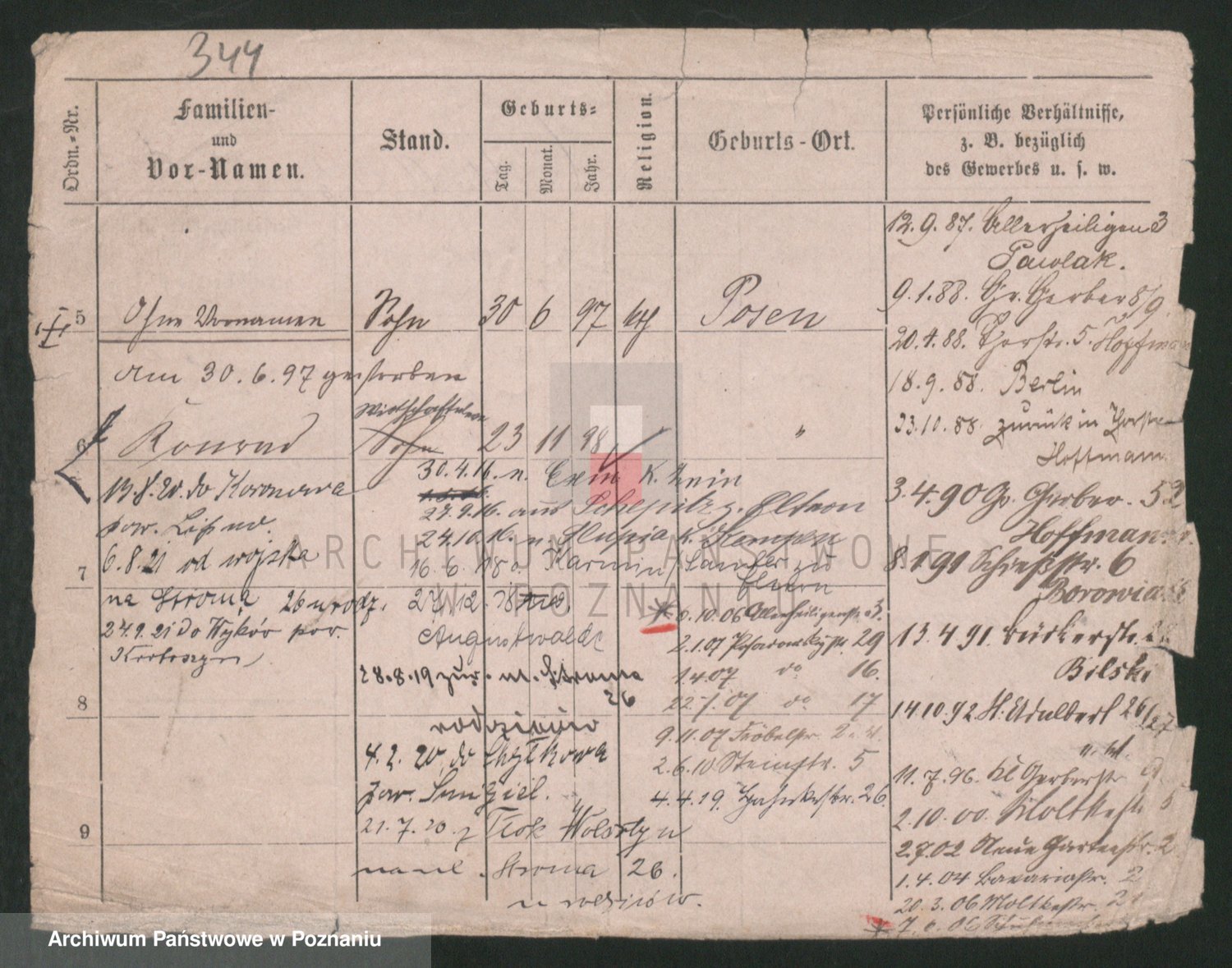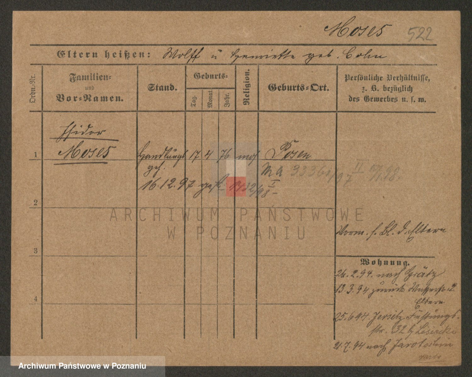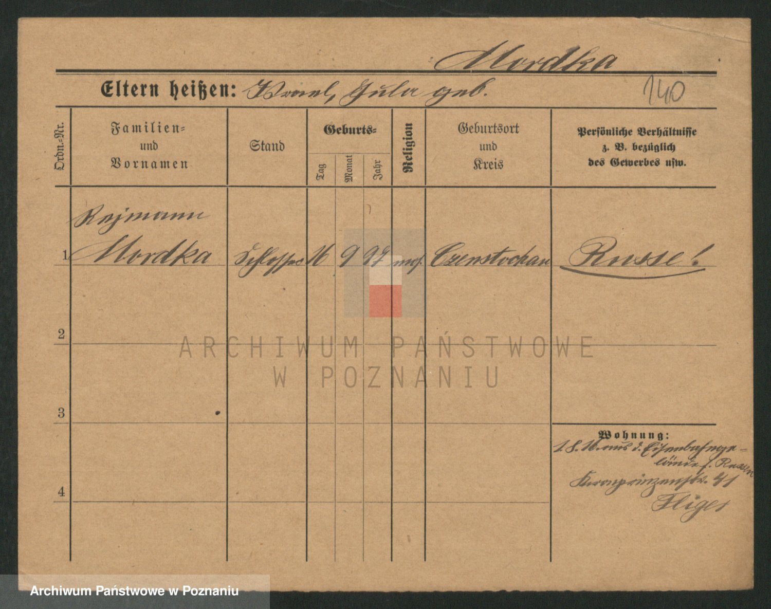 Podgląd karty osobowej dostępny jest po kliknięciu na nazwisko lub ikonkę karty. Można dokonywać powiększenia (ikony na górze) lub przechodzić między kolejnymi skanami (strzałki po bokach).