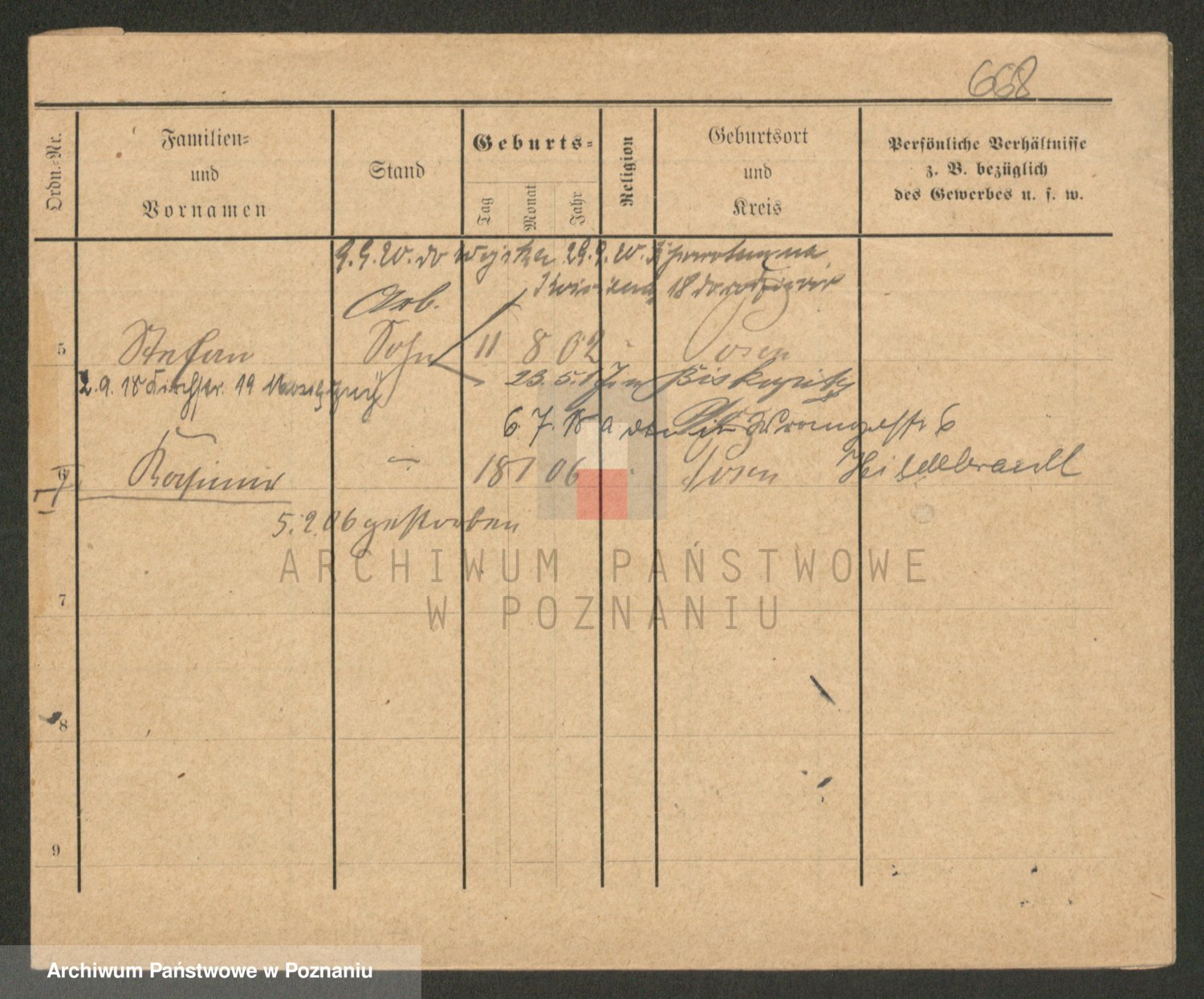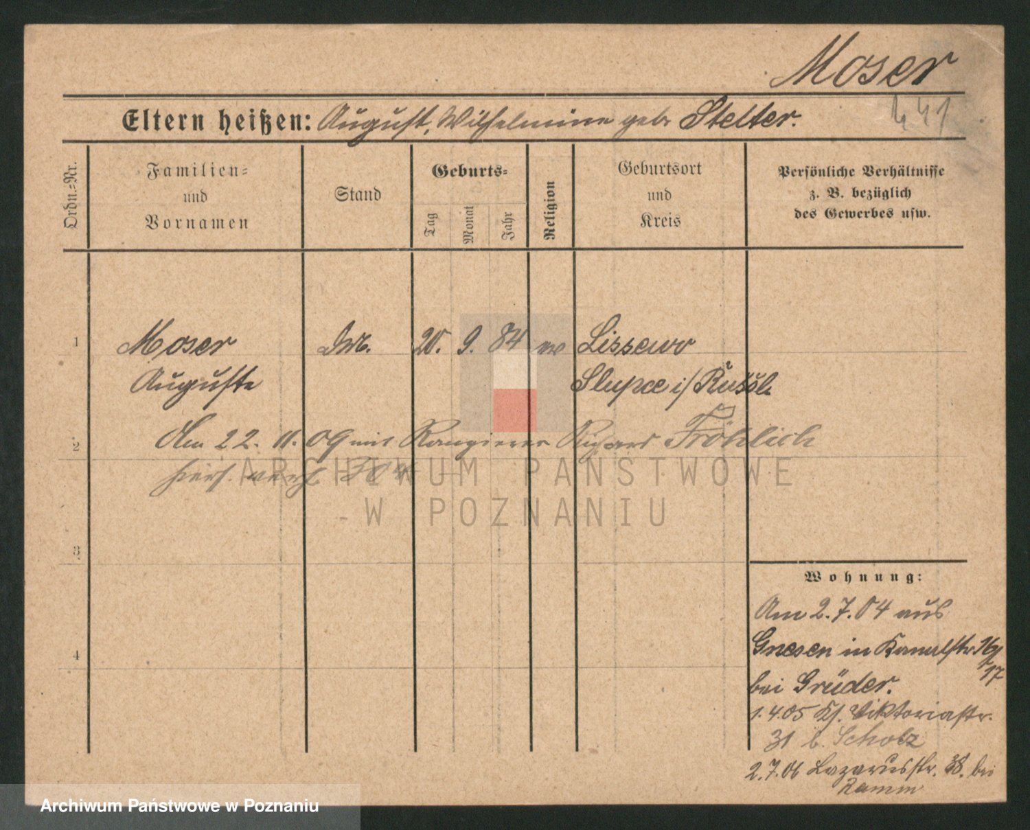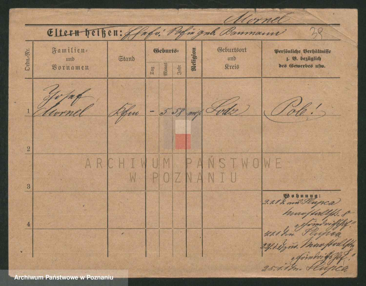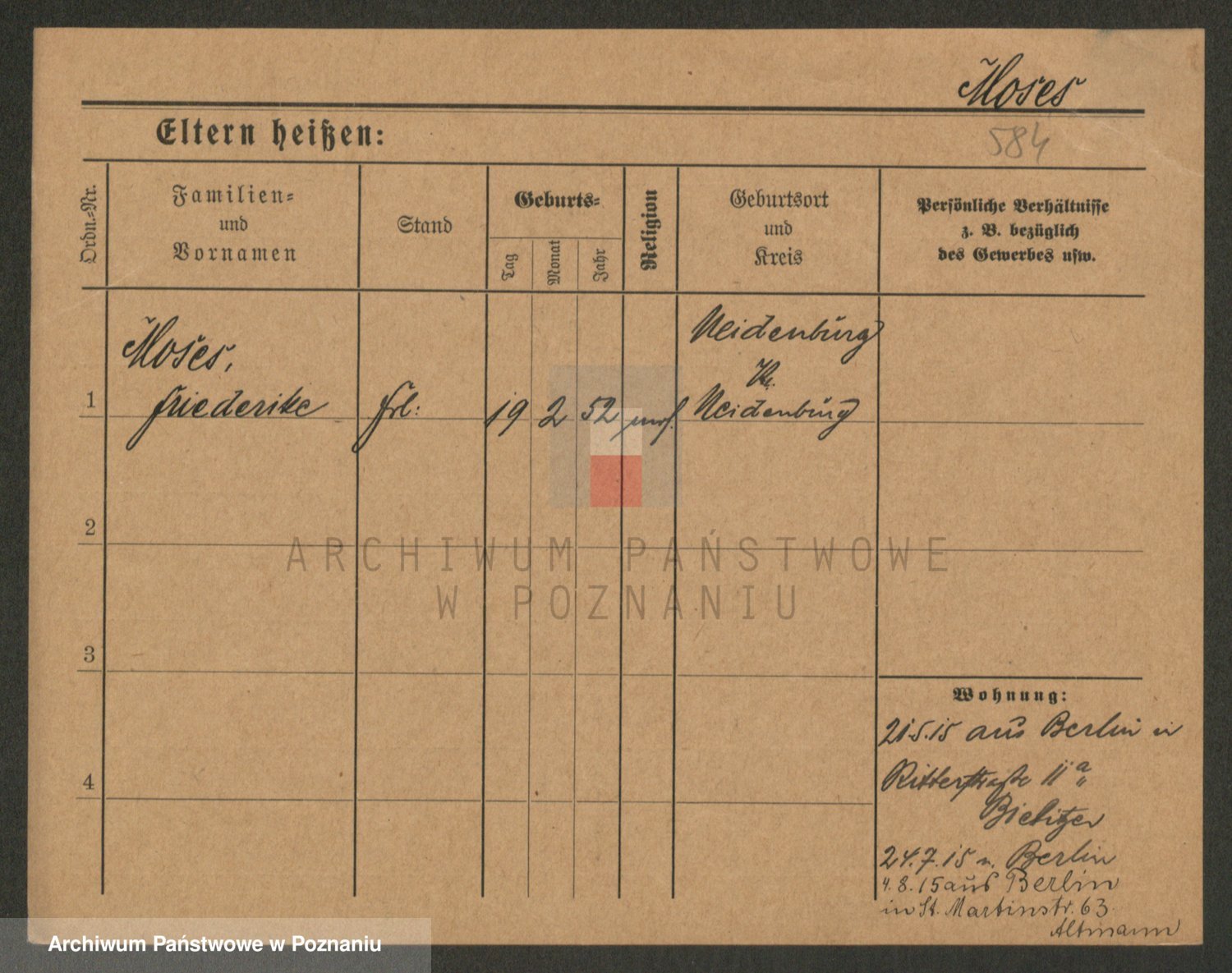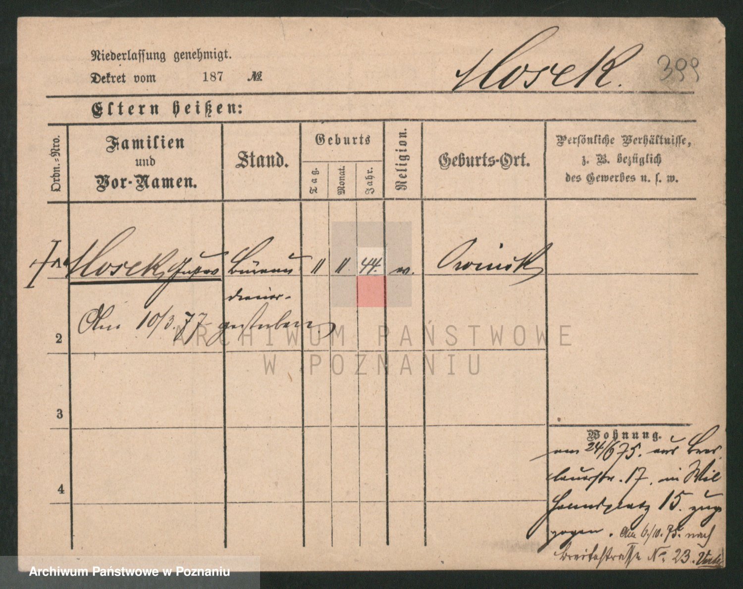 Podgląd karty osobowej dostępny jest po kliknięciu na nazwisko lub ikonkę karty. Można dokonywać powiększenia (ikony na górze) lub przechodzić między kolejnymi skanami (strzałki po bokach).