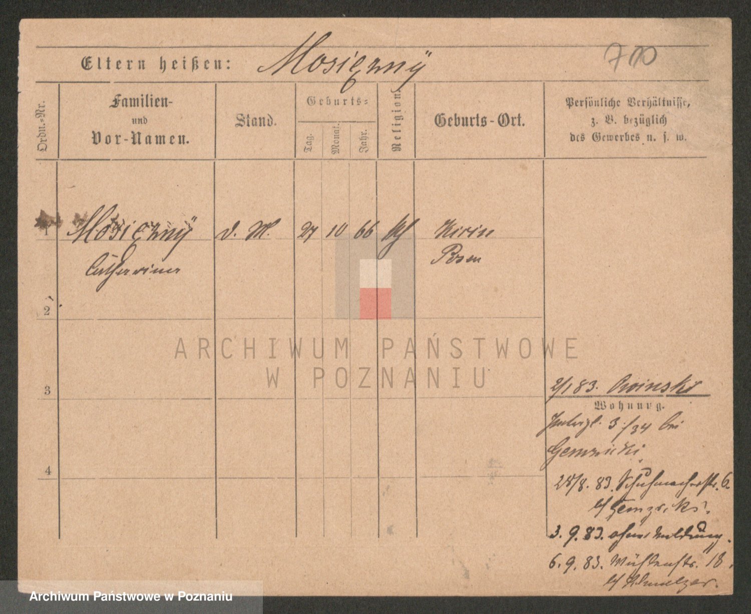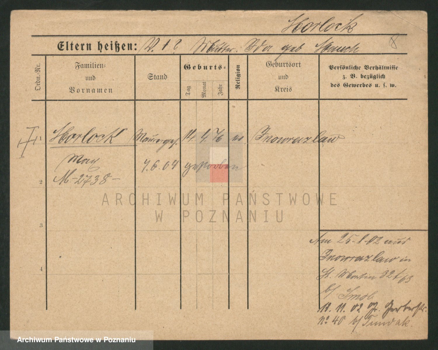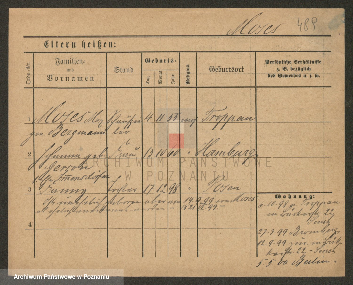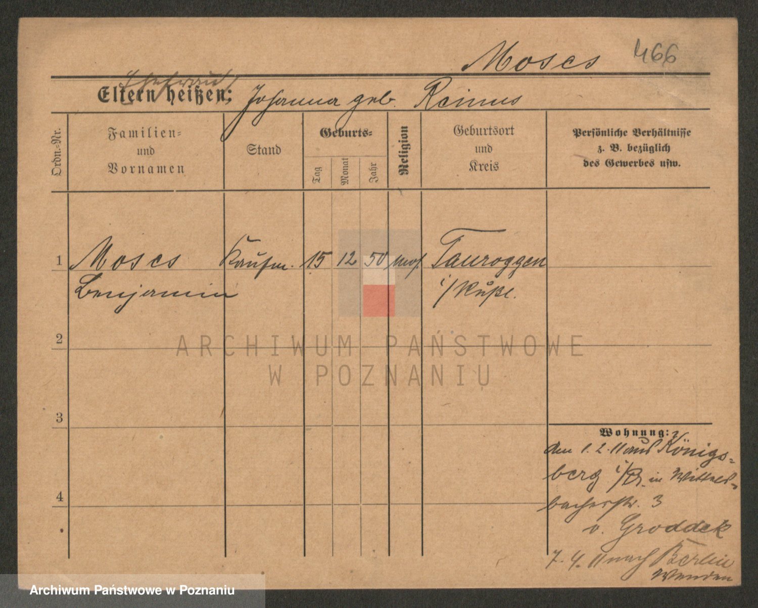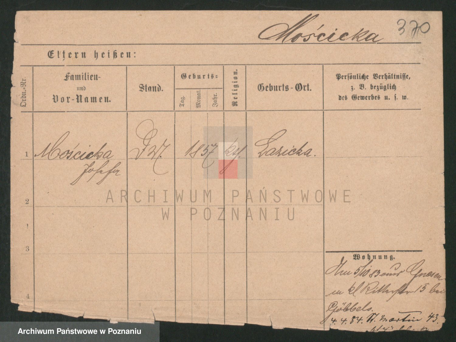 Podgląd karty osobowej dostępny jest po kliknięciu na nazwisko lub ikonkę karty. Można dokonywać powiększenia (ikony na górze) lub przechodzić między kolejnymi skanami (strzałki po bokach).
