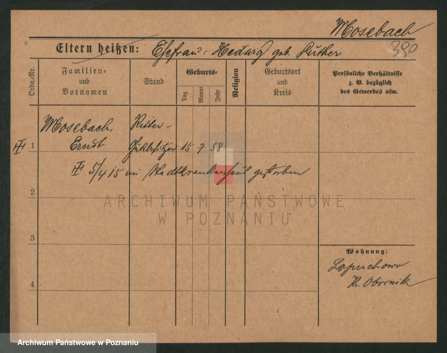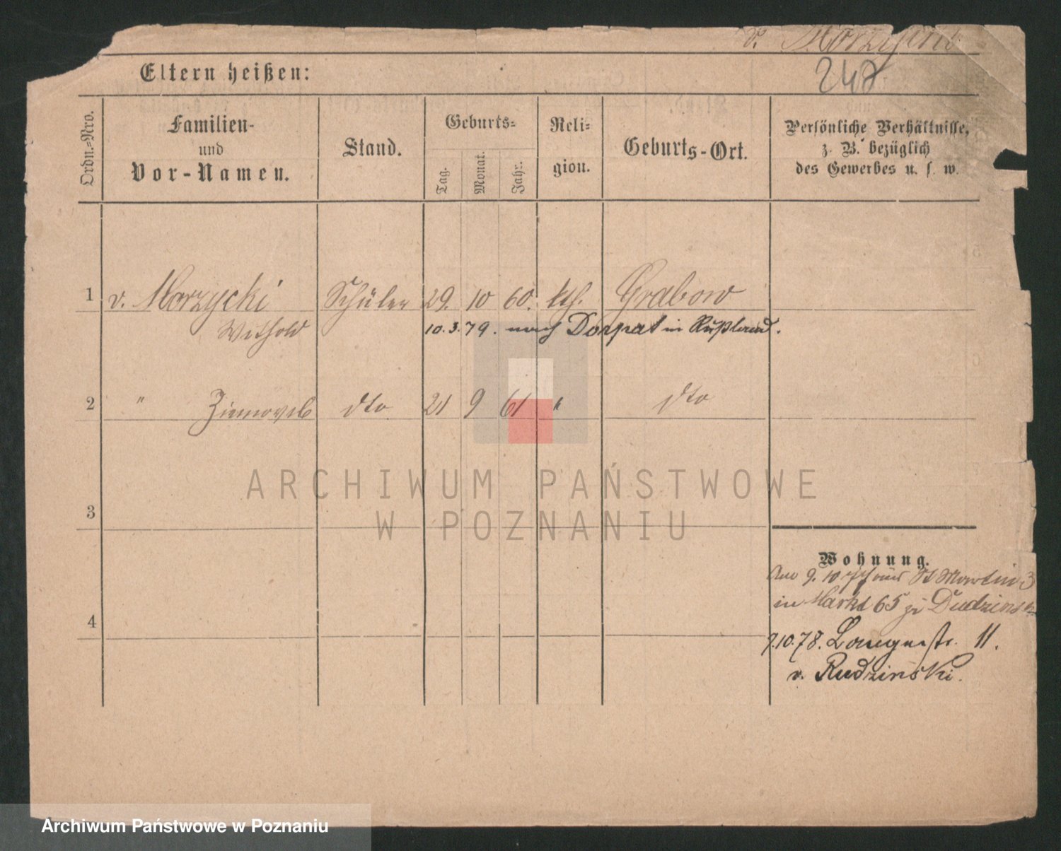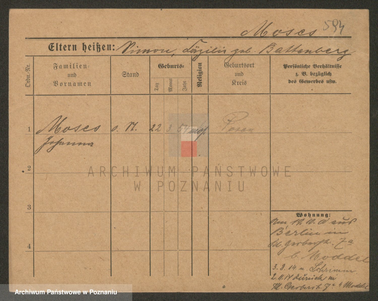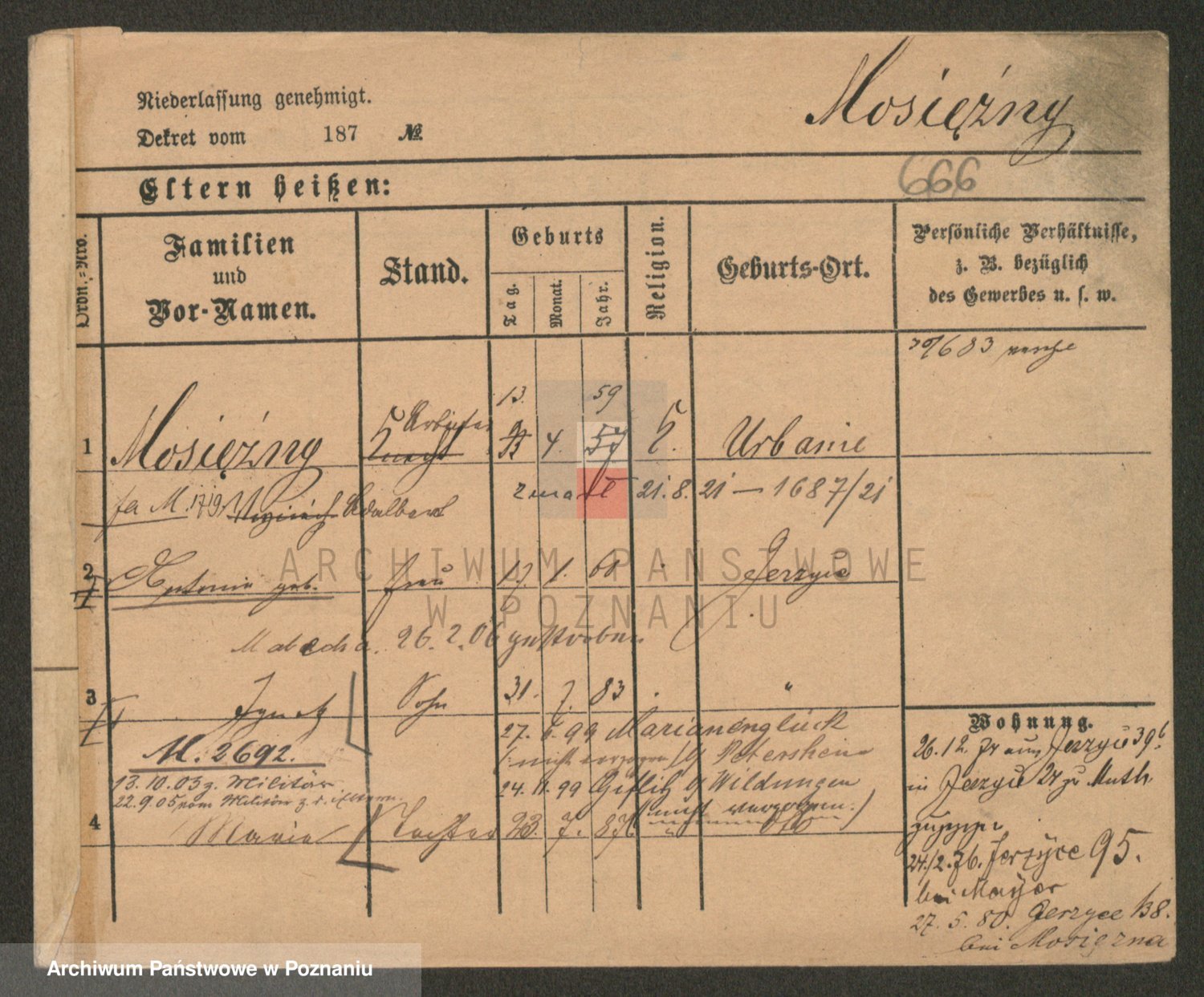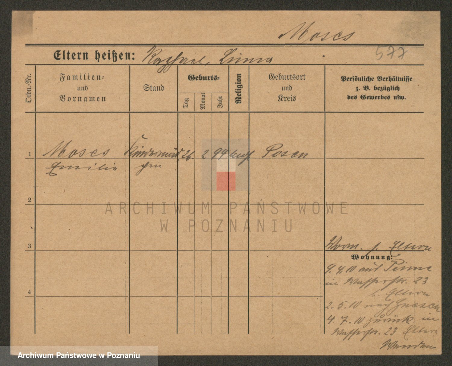 Podgląd karty osobowej dostępny jest po kliknięciu na nazwisko lub ikonkę karty. Można dokonywać powiększenia (ikony na górze) lub przechodzić między kolejnymi skanami (strzałki po bokach).