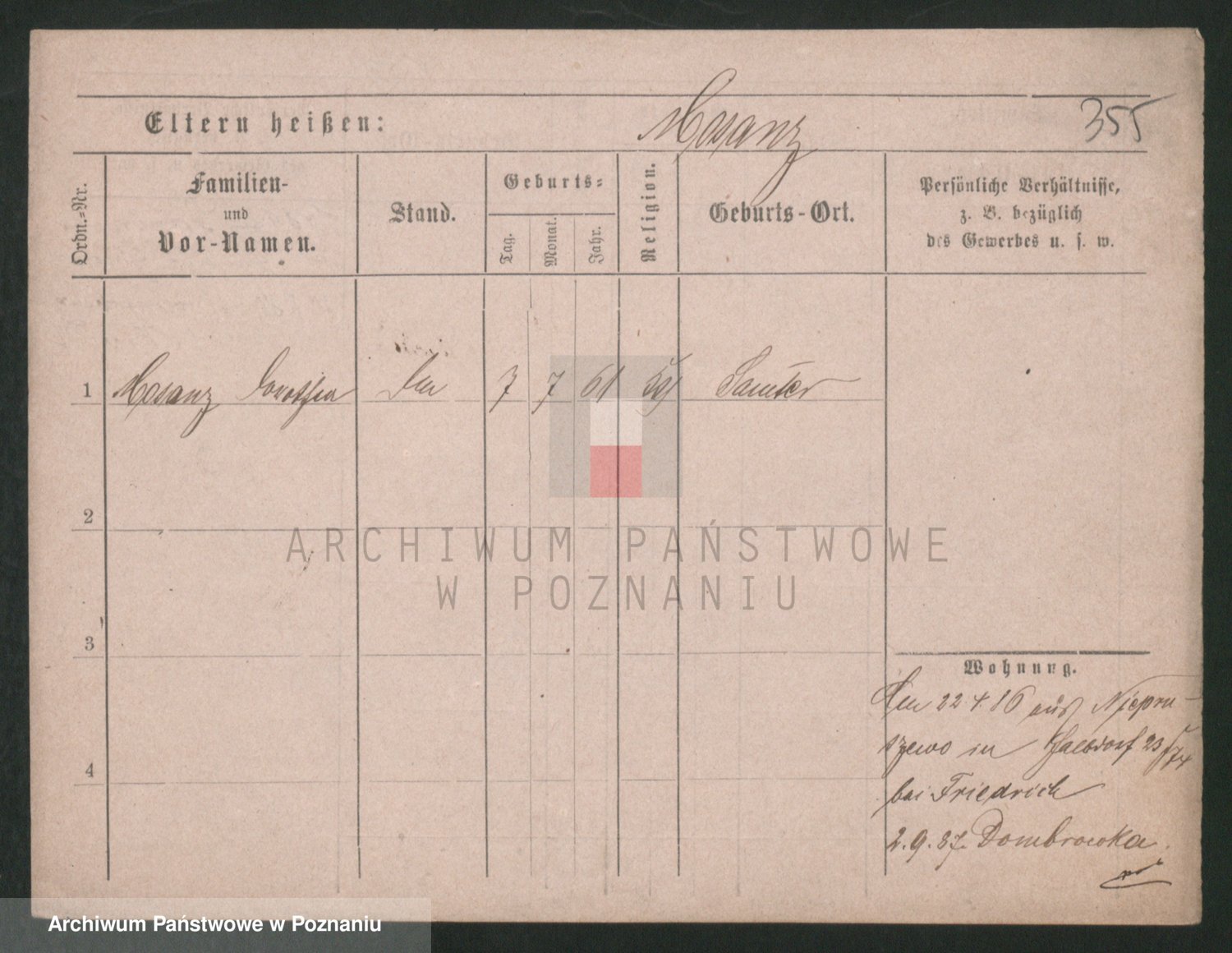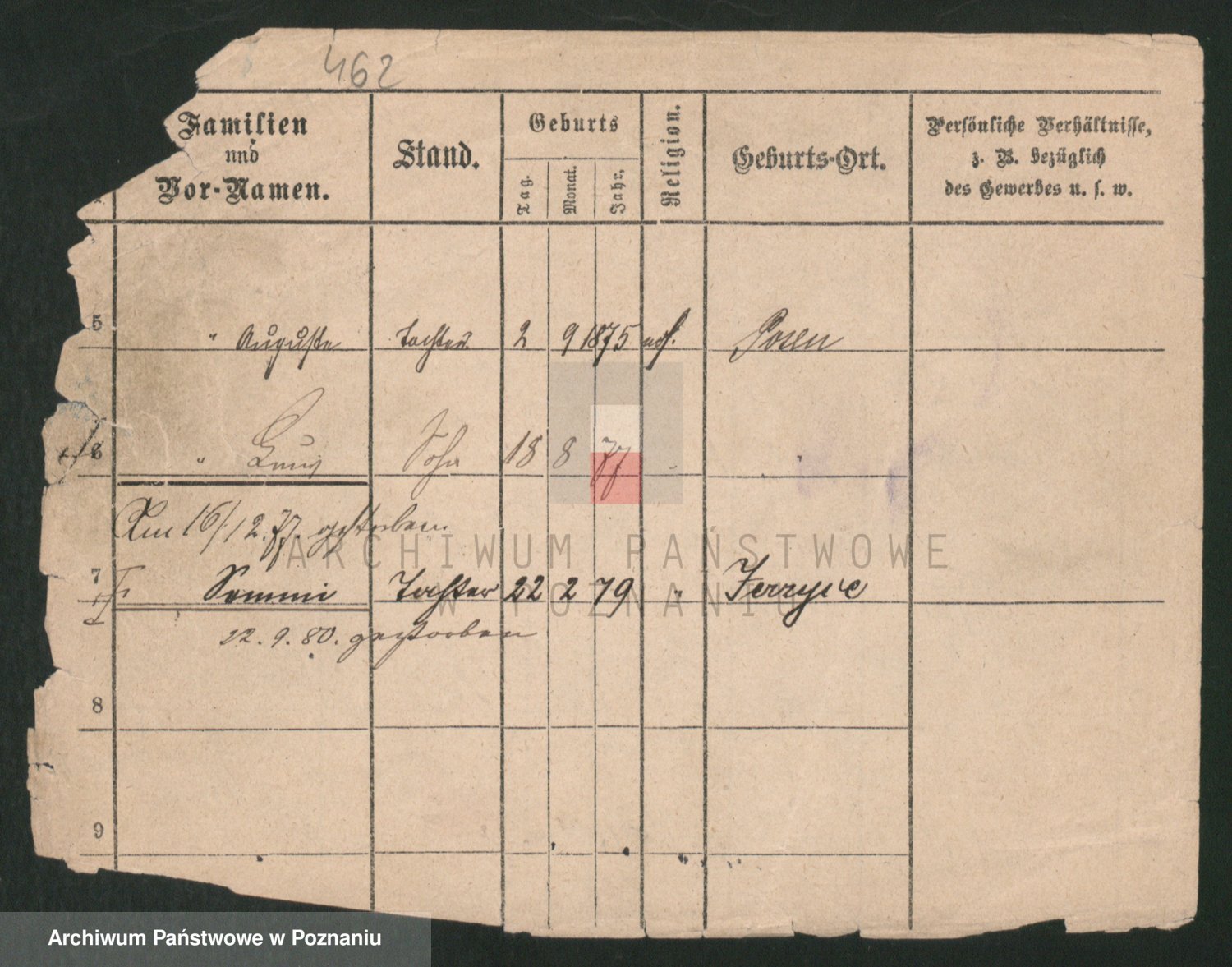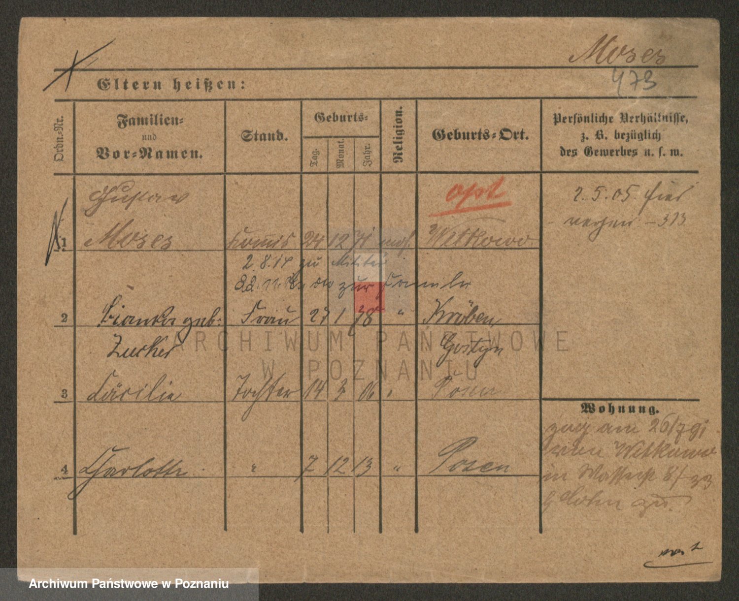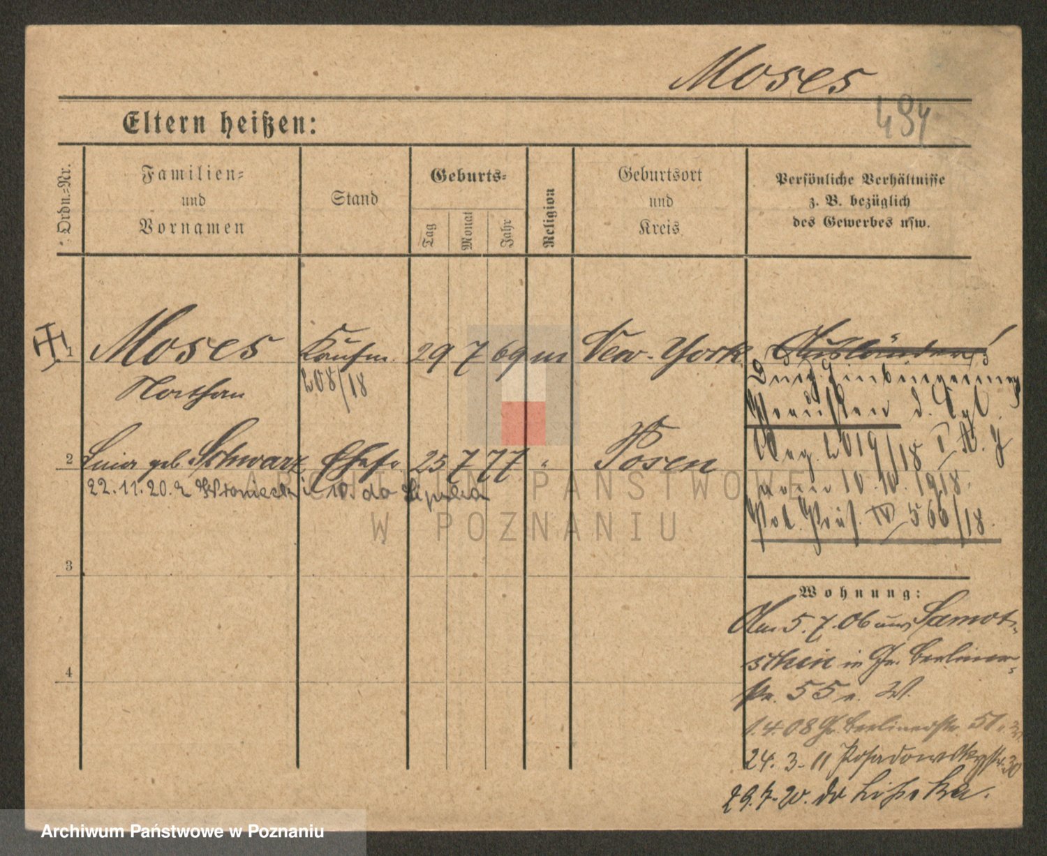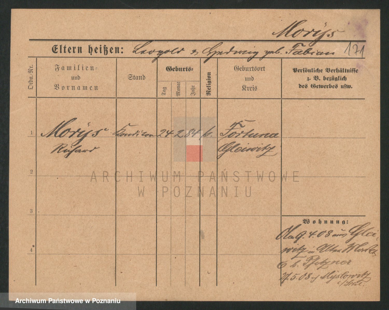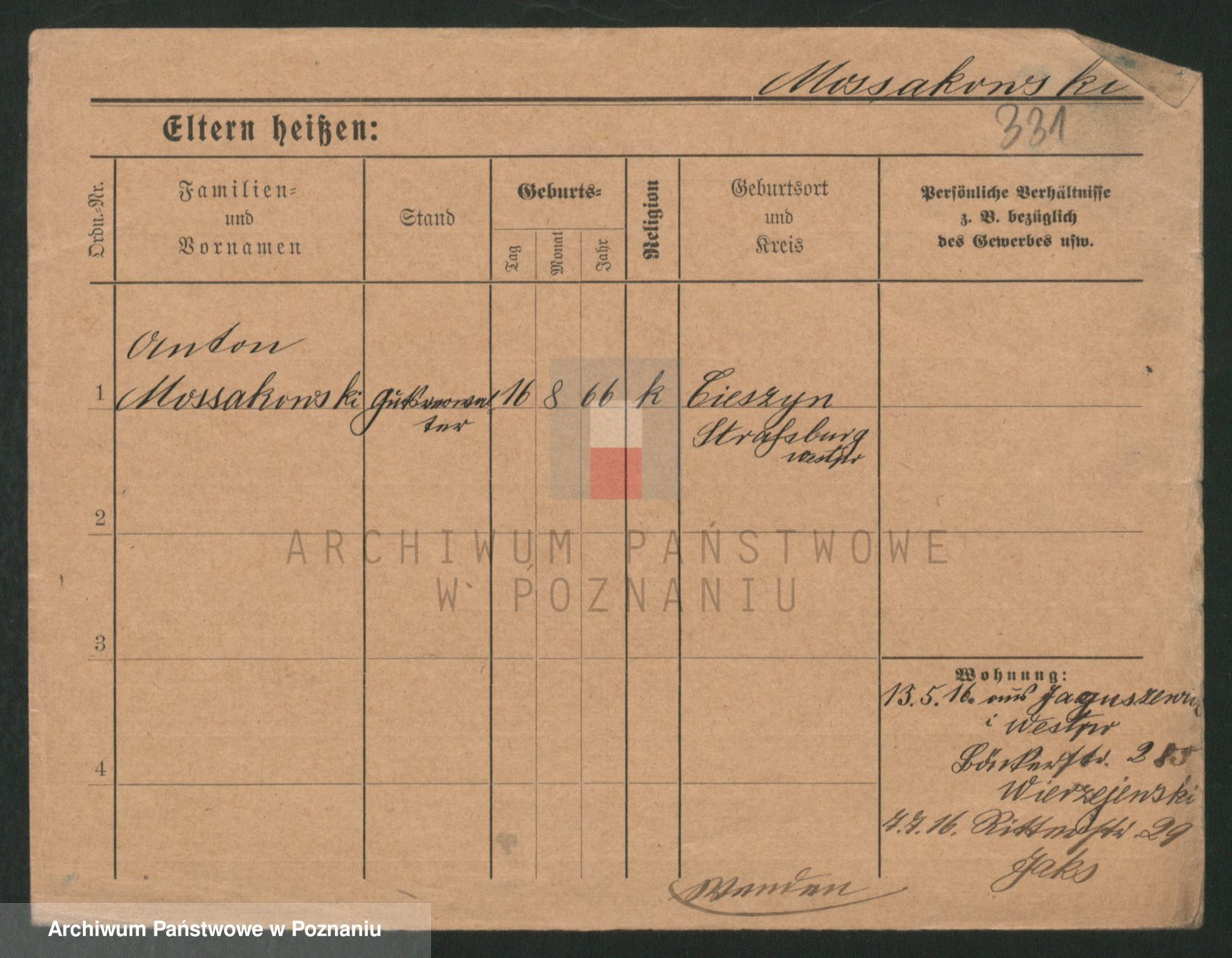 Podgląd karty osobowej dostępny jest po kliknięciu na nazwisko lub ikonkę karty. Można dokonywać powiększenia (ikony na górze) lub przechodzić między kolejnymi skanami (strzałki po bokach).