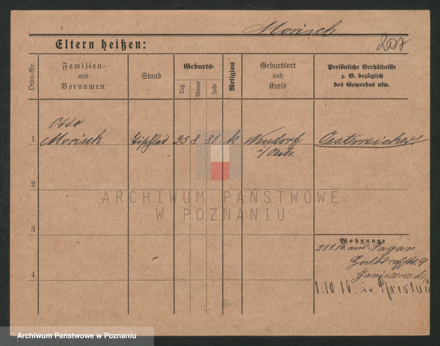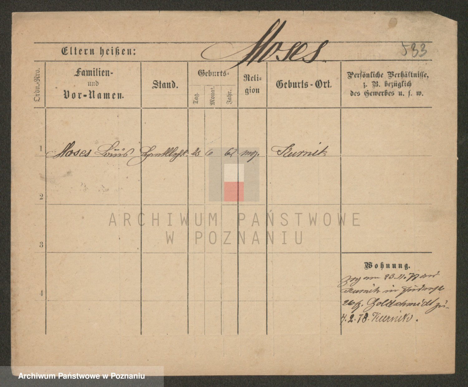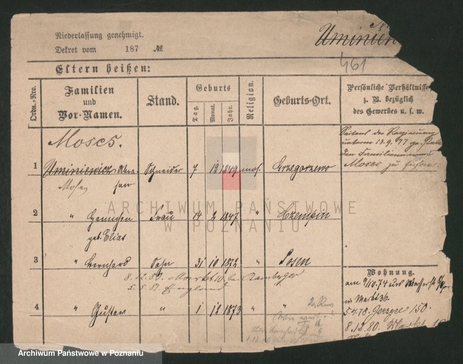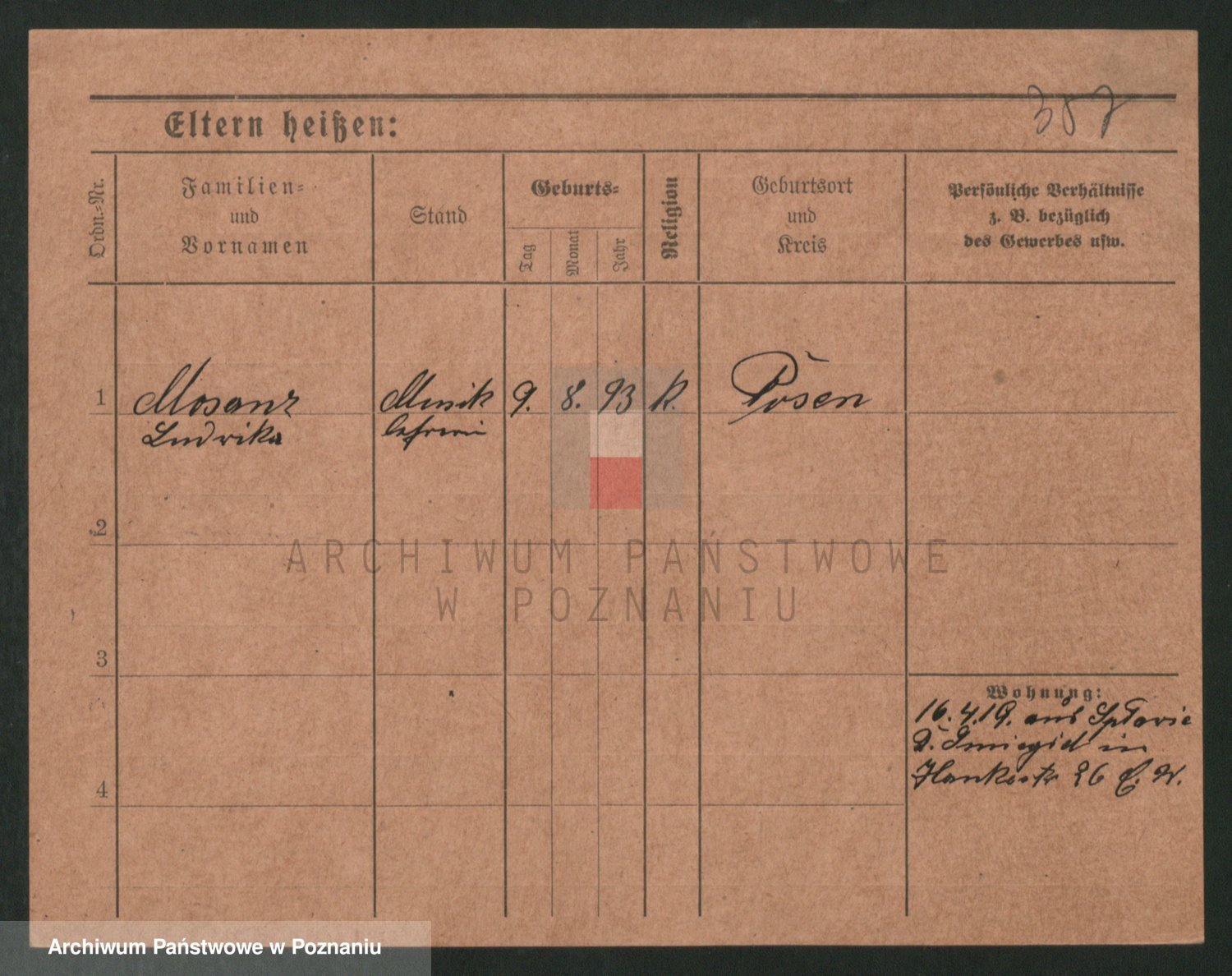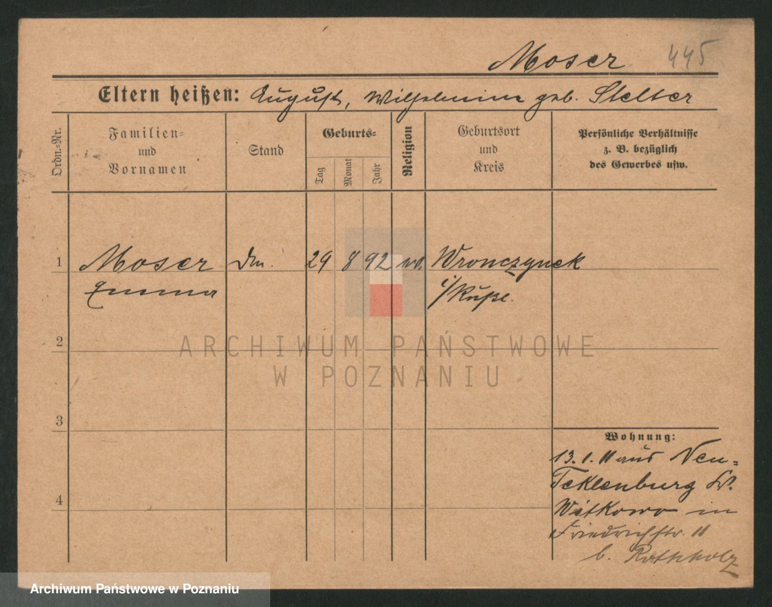 Podgląd karty osobowej dostępny jest po kliknięciu na nazwisko lub ikonkę karty. Można dokonywać powiększenia (ikony na górze) lub przechodzić między kolejnymi skanami (strzałki po bokach).