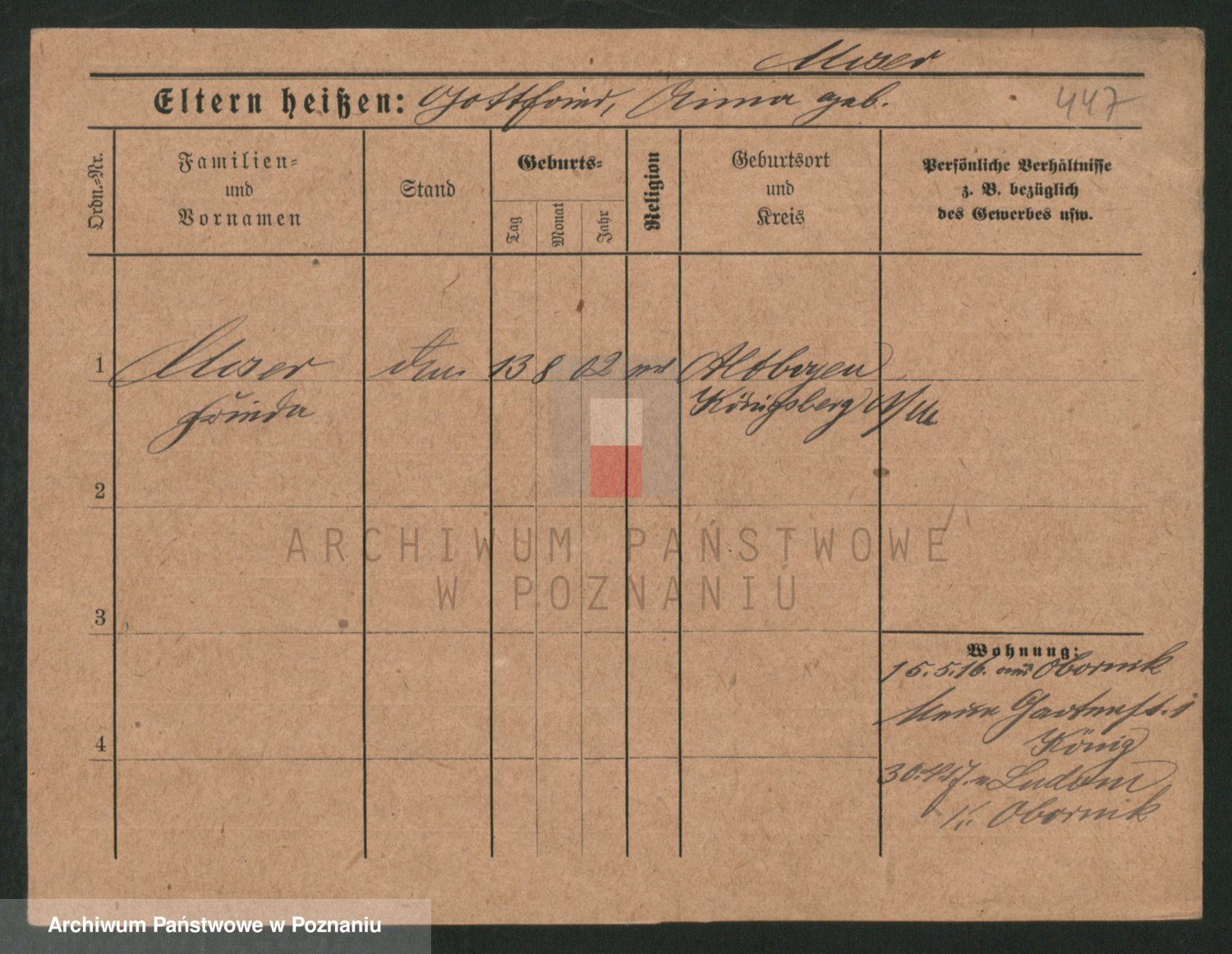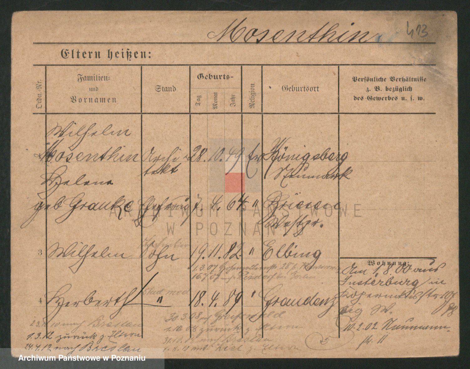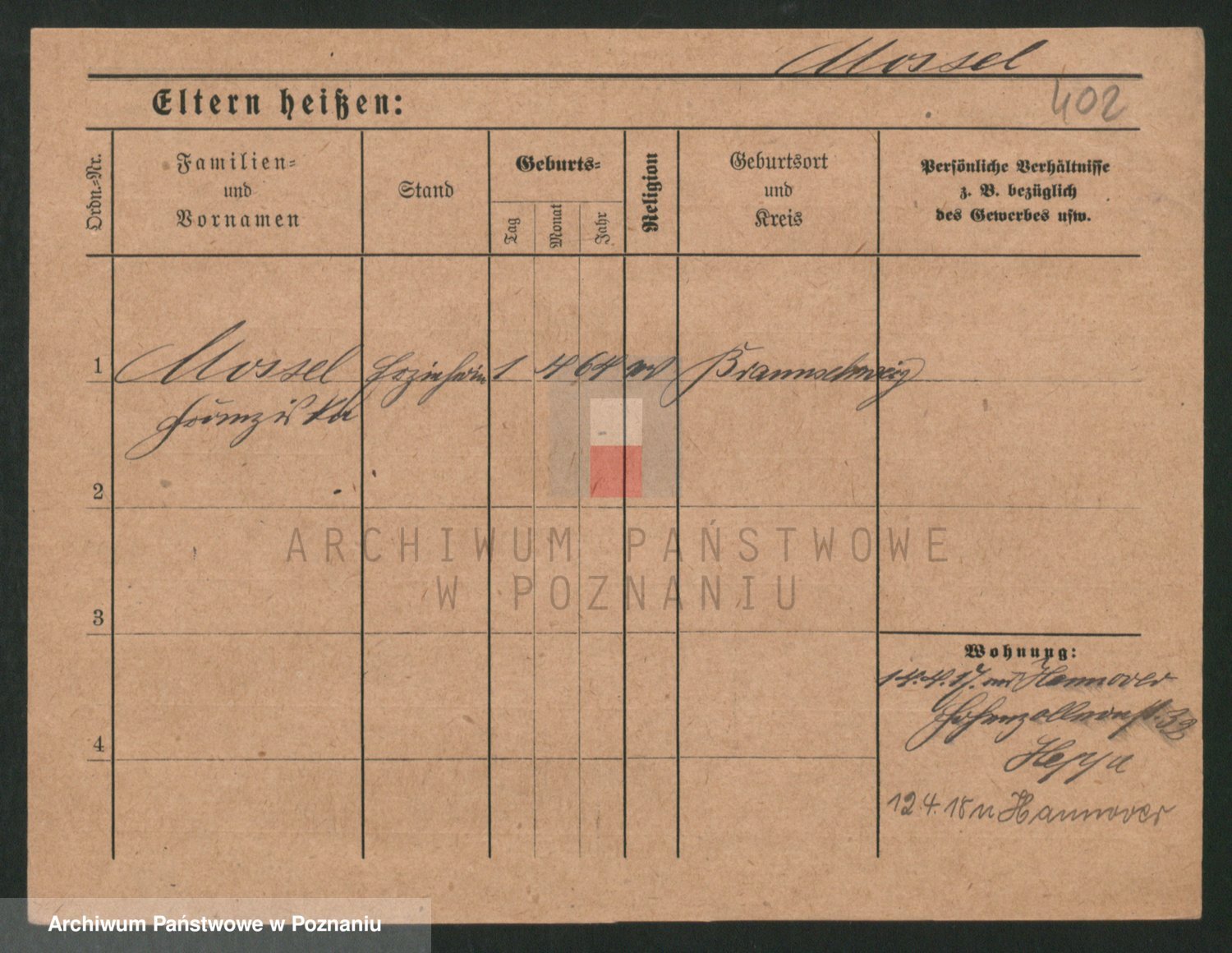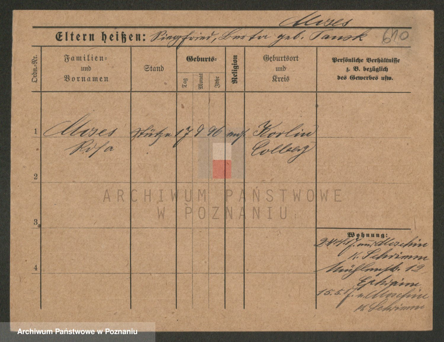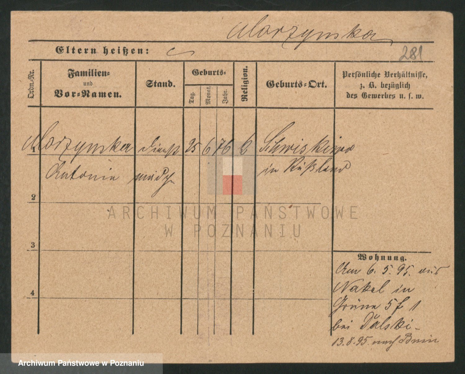 Podgląd karty osobowej dostępny jest po kliknięciu na nazwisko lub ikonkę karty. Można dokonywać powiększenia (ikony na górze) lub przechodzić między kolejnymi skanami (strzałki po bokach).