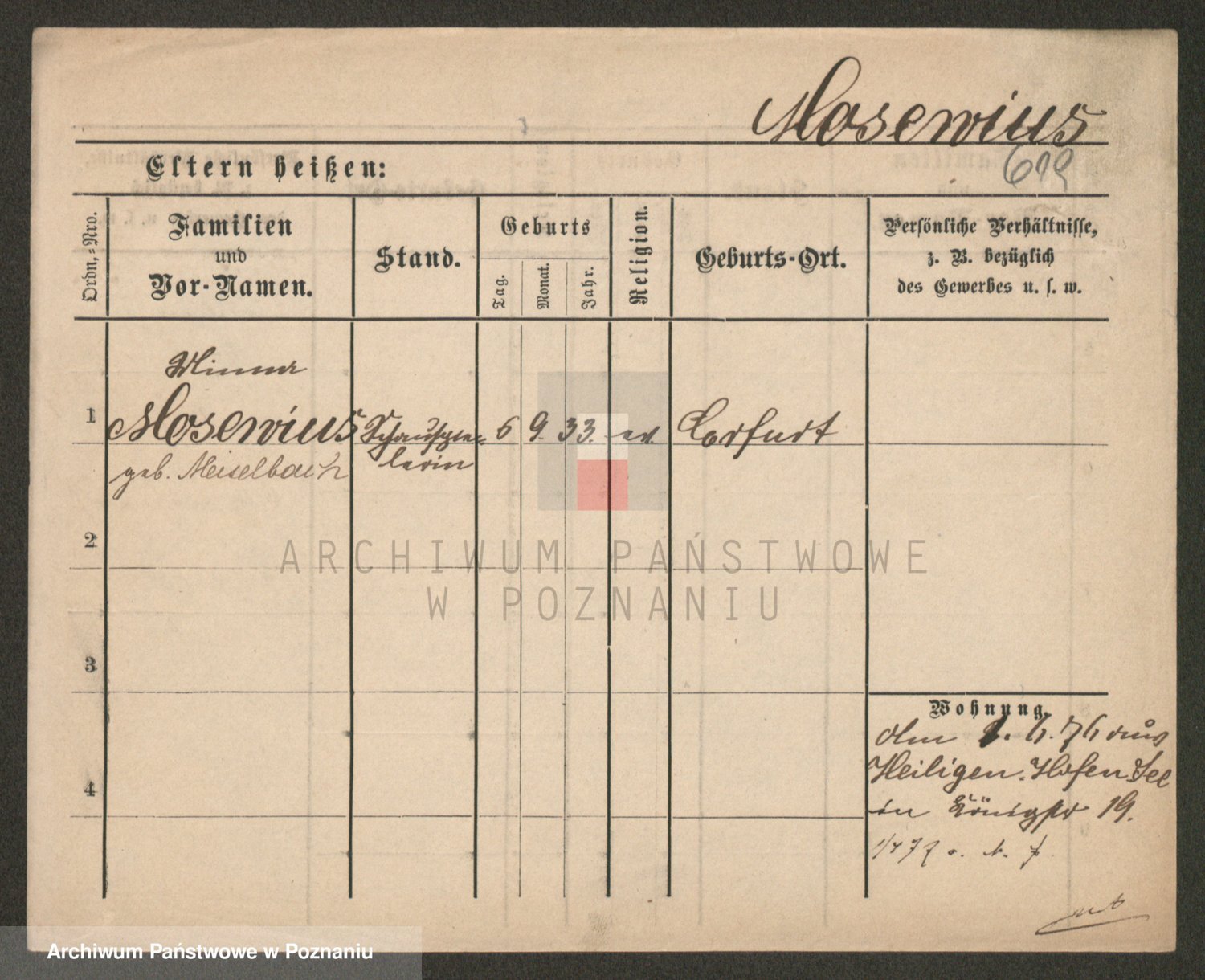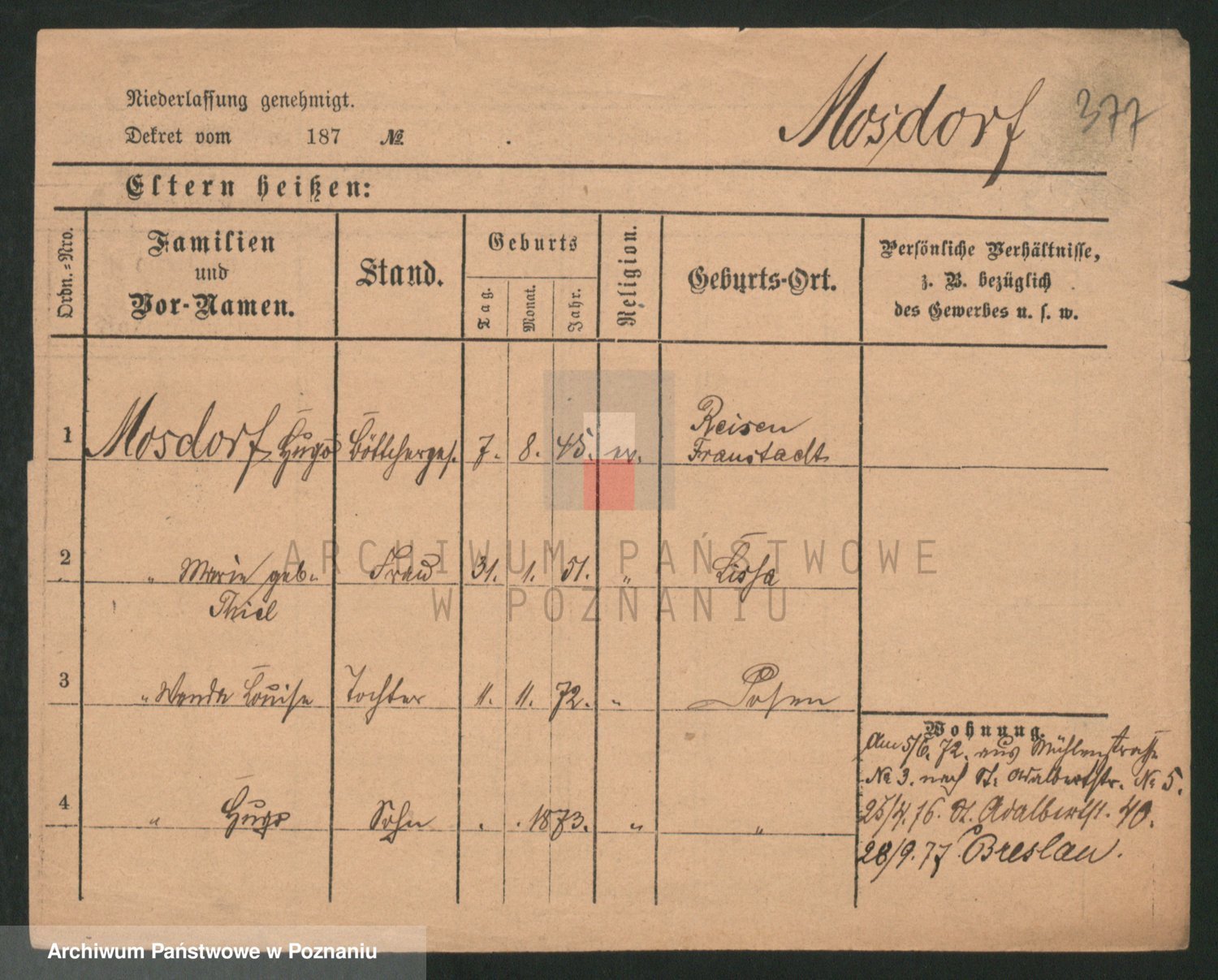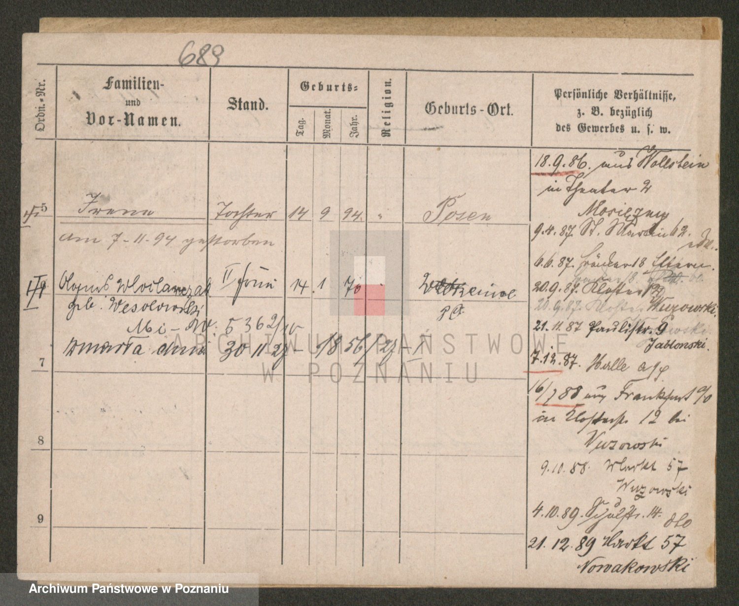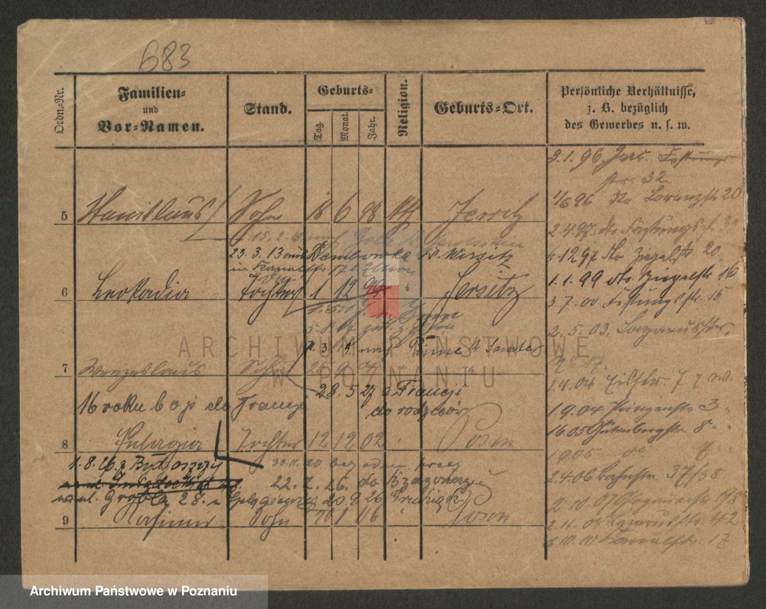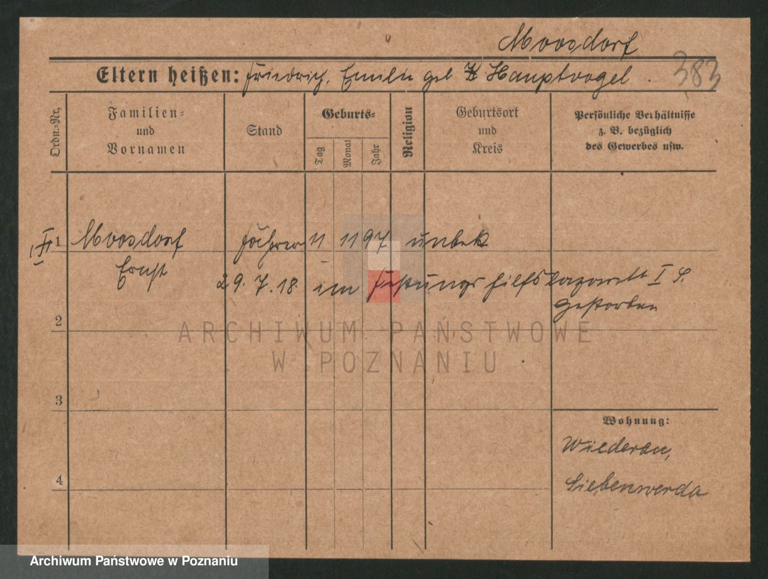 Podgląd karty osobowej dostępny jest po kliknięciu na nazwisko lub ikonkę karty. Można dokonywać powiększenia (ikony na górze) lub przechodzić między kolejnymi skanami (strzałki po bokach).