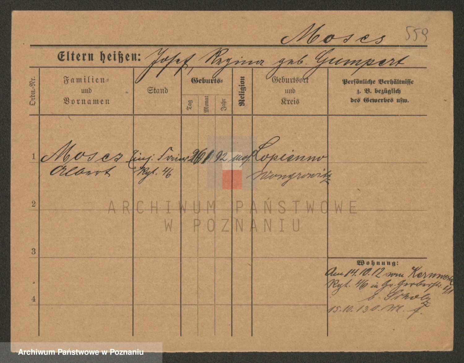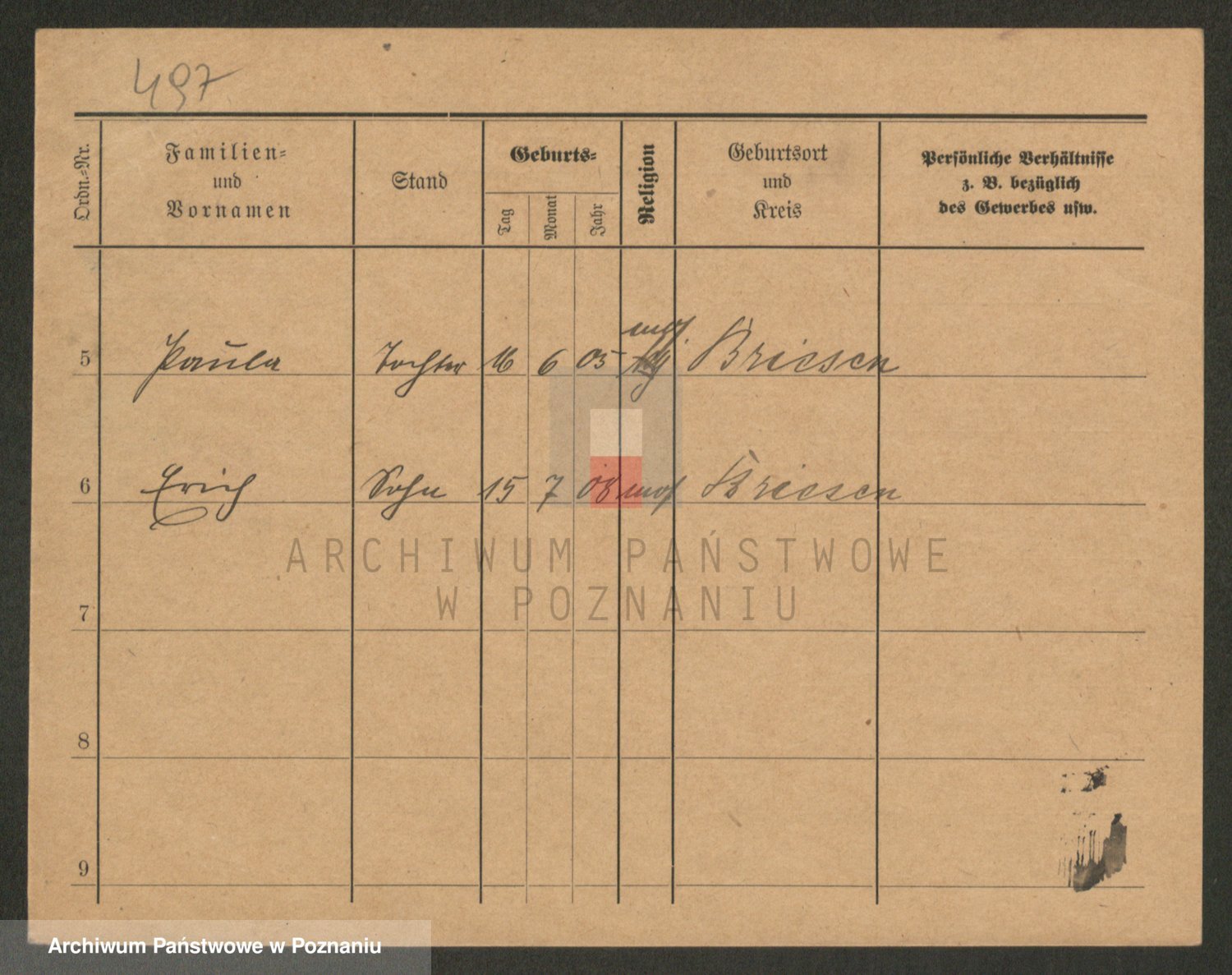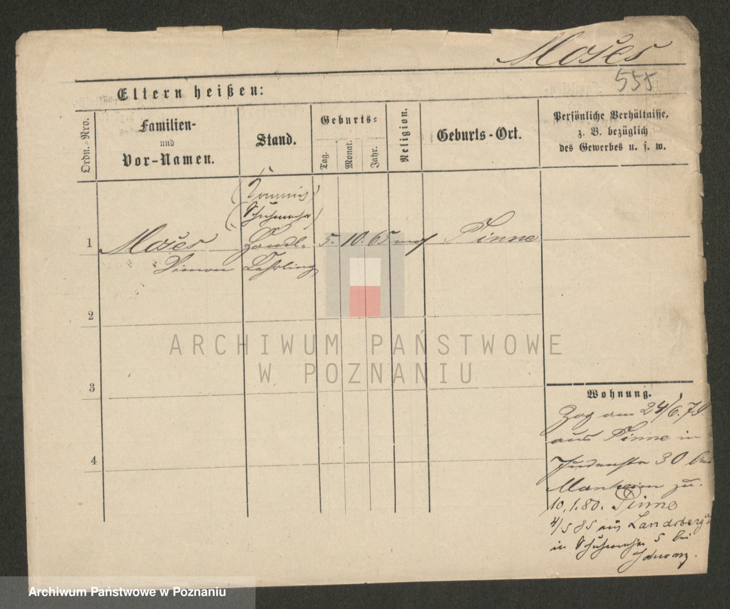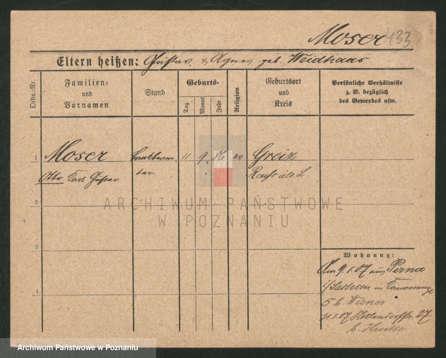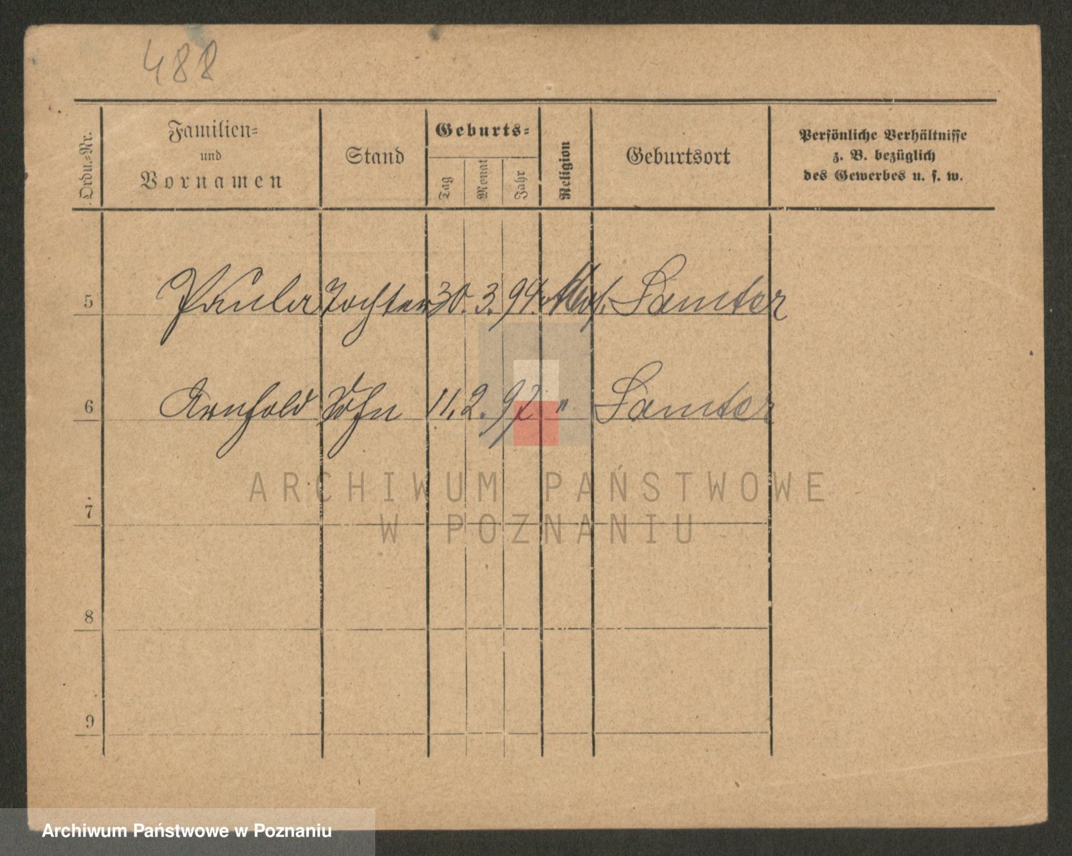 Podgląd karty osobowej dostępny jest po kliknięciu na nazwisko lub ikonkę karty. Można dokonywać powiększenia (ikony na górze) lub przechodzić między kolejnymi skanami (strzałki po bokach).