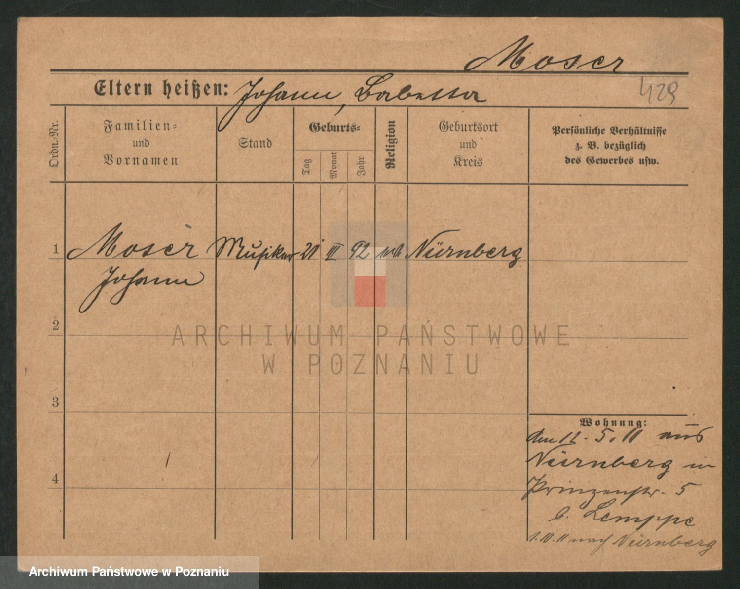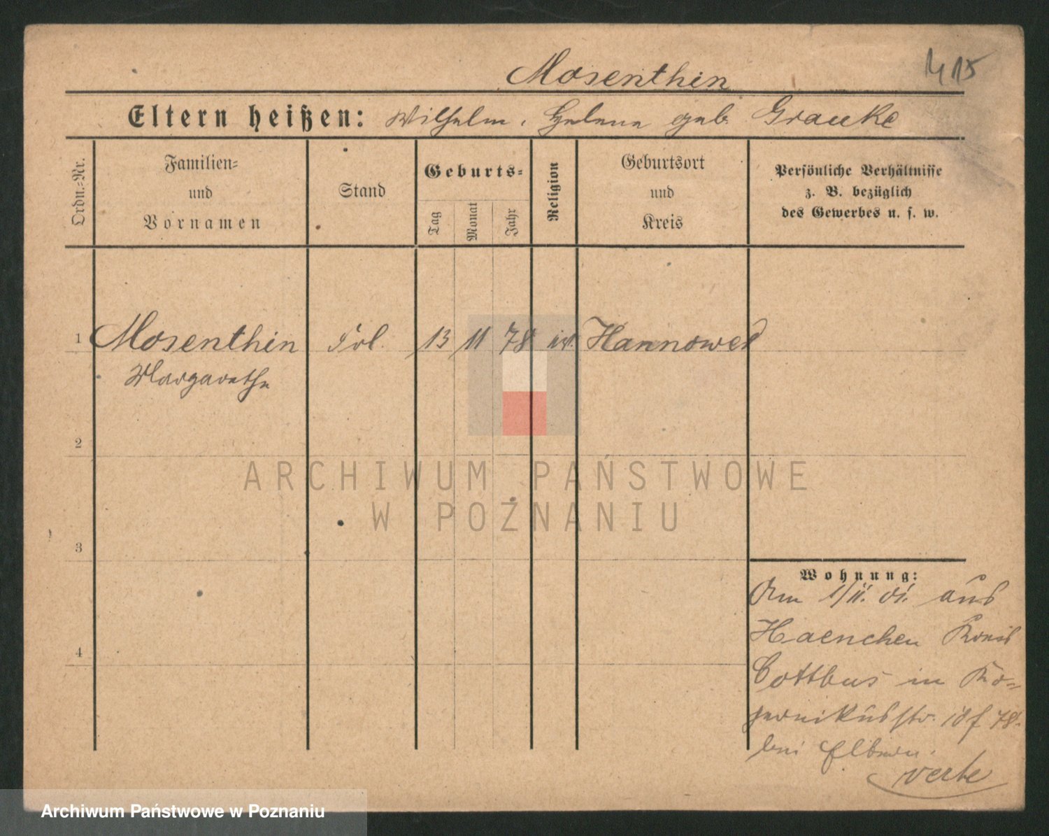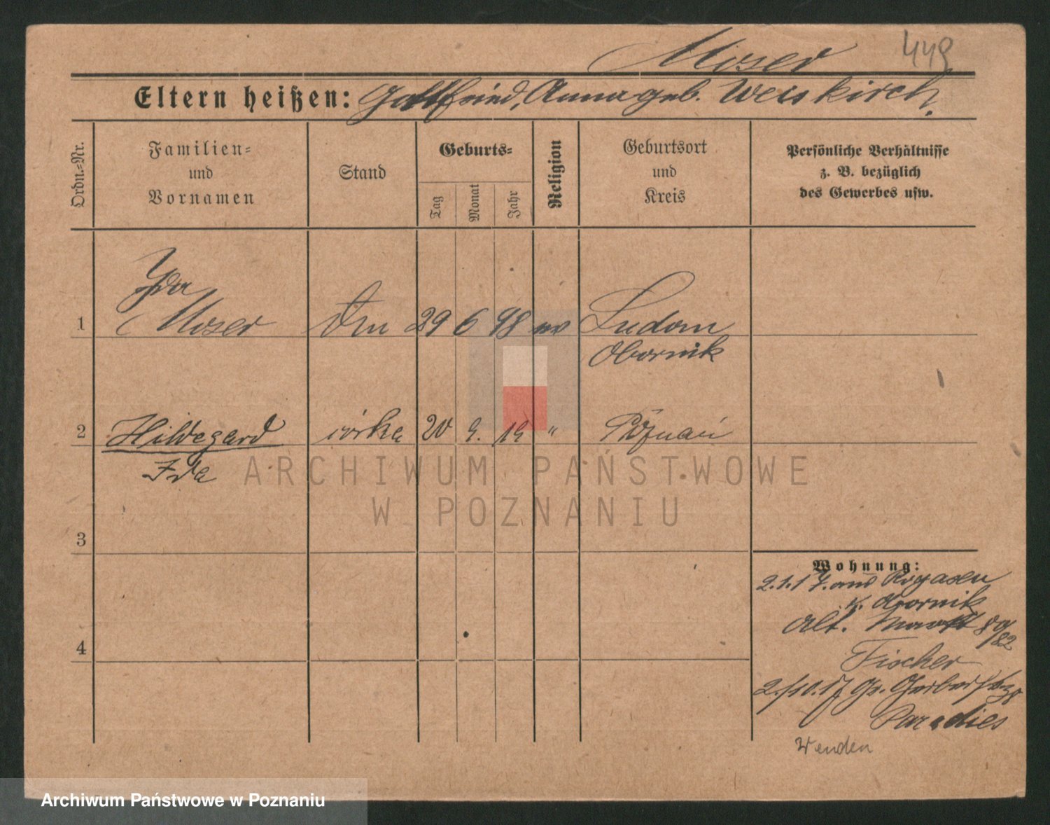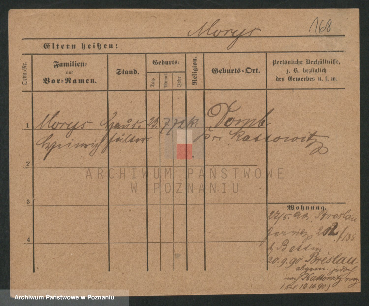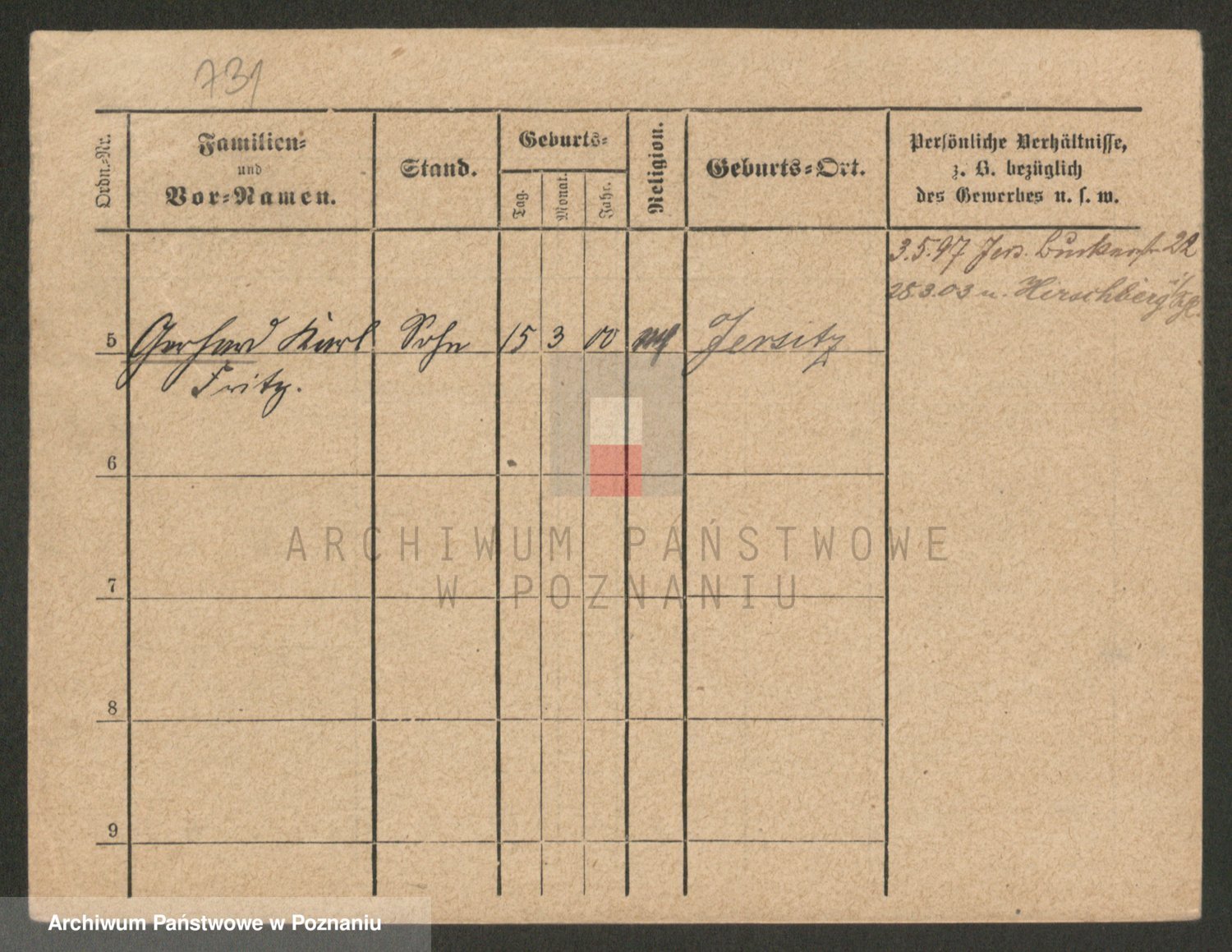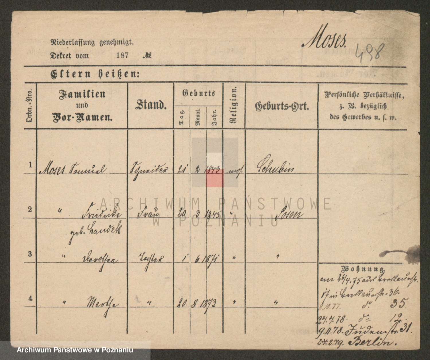 Podgląd karty osobowej dostępny jest po kliknięciu na nazwisko lub ikonkę karty. Można dokonywać powiększenia (ikony na górze) lub przechodzić między kolejnymi skanami (strzałki po bokach).