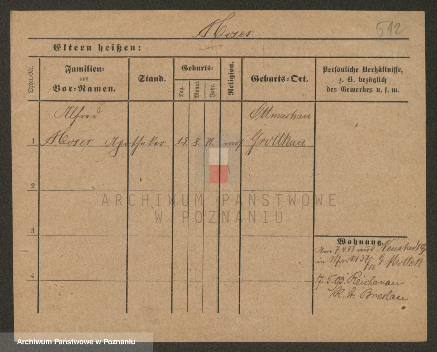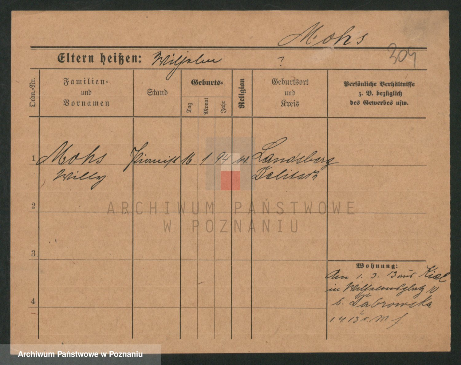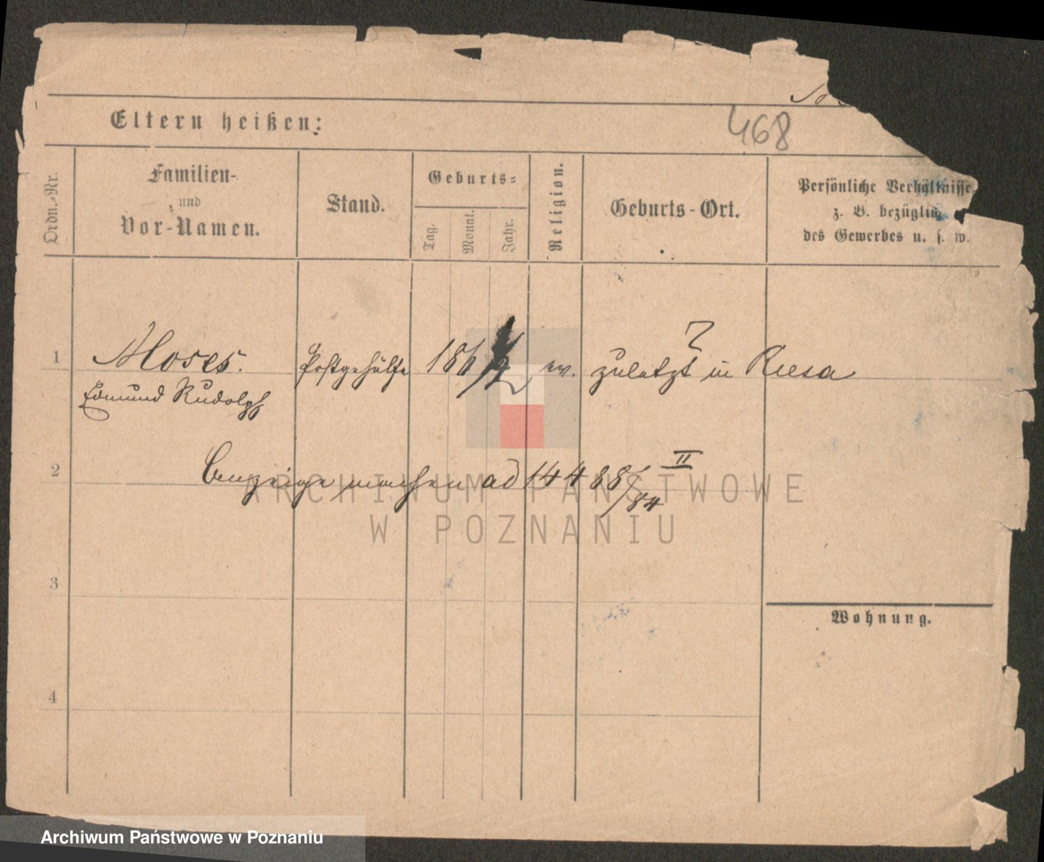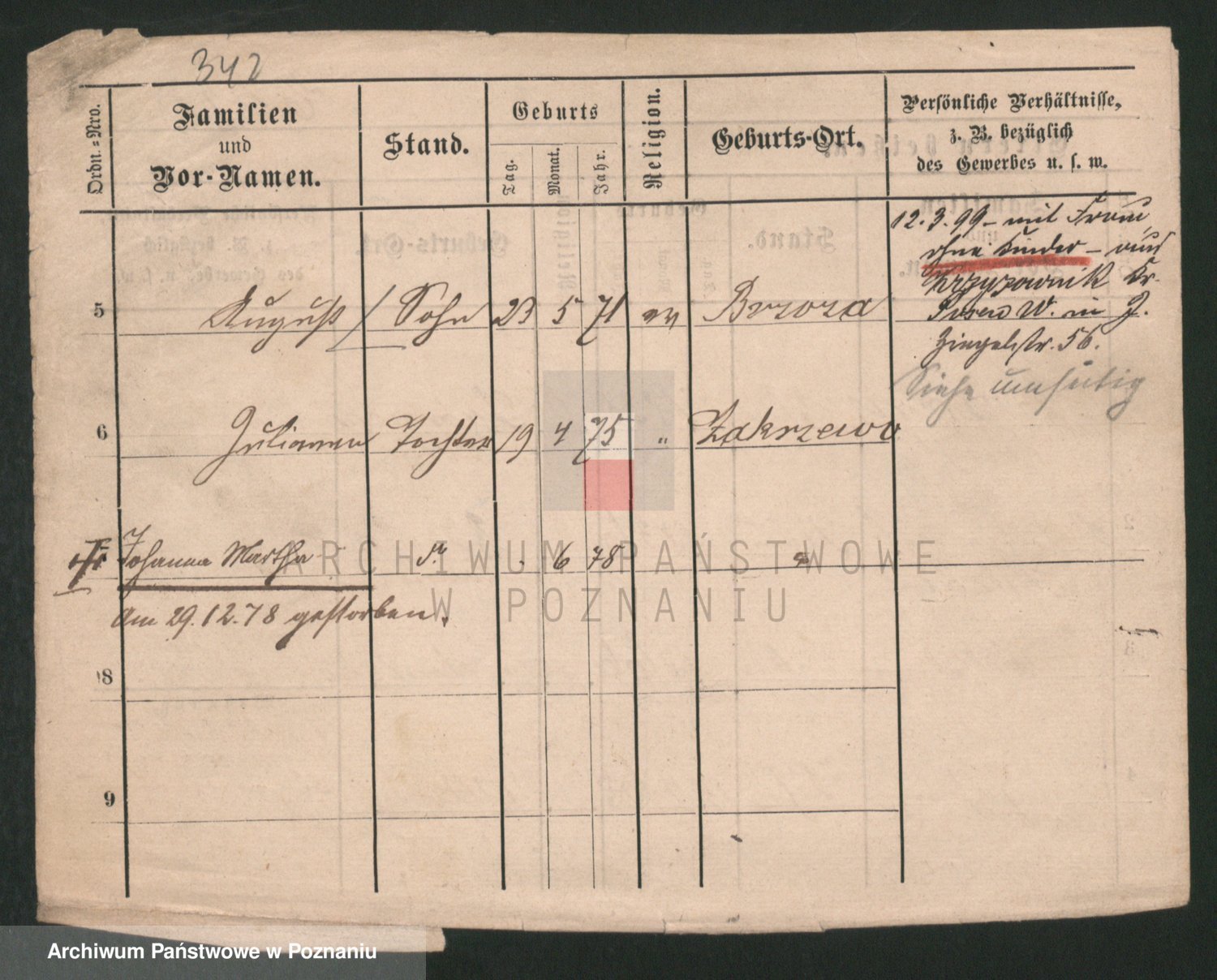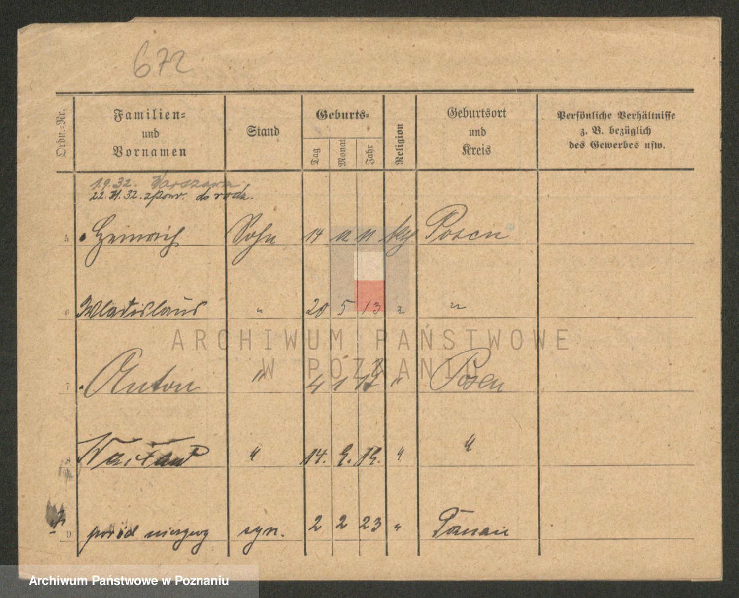 Podgląd karty osobowej dostępny jest po kliknięciu na nazwisko lub ikonkę karty. Można dokonywać powiększenia (ikony na górze) lub przechodzić między kolejnymi skanami (strzałki po bokach).
