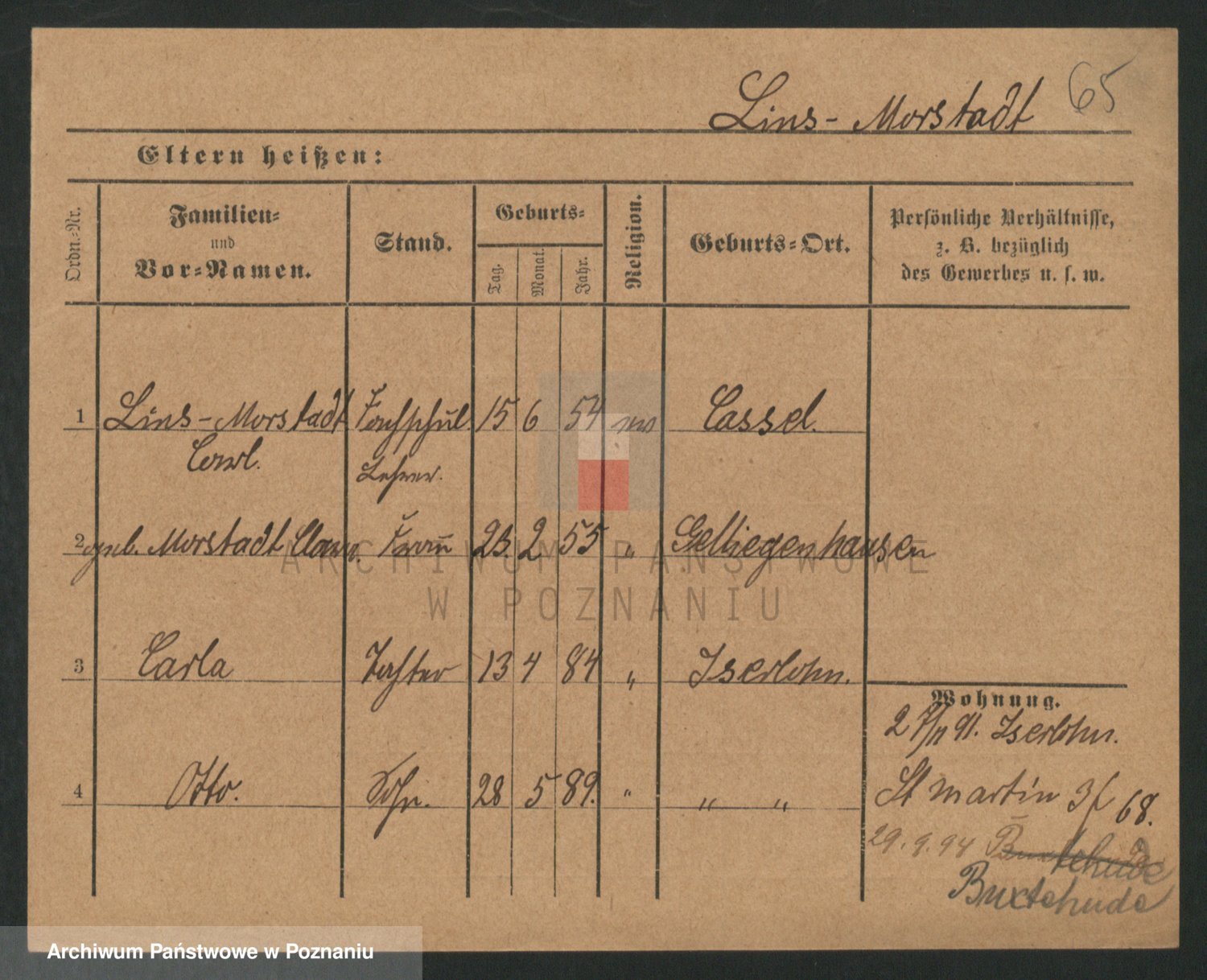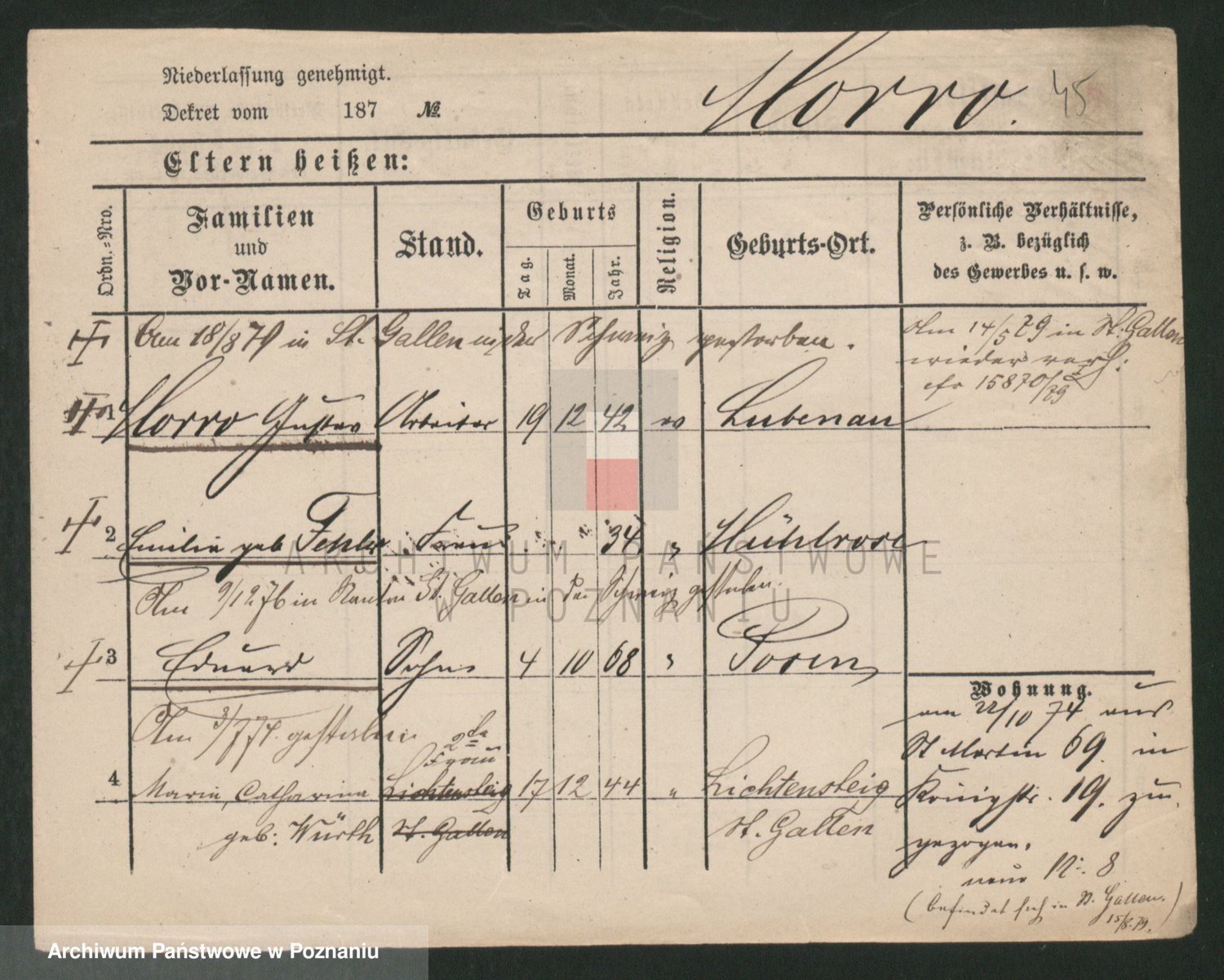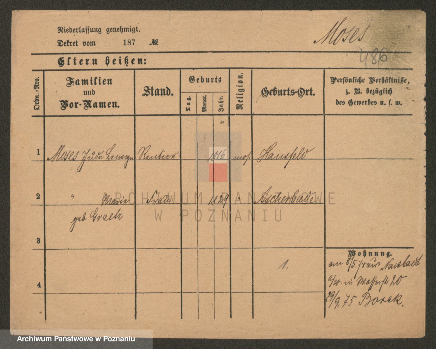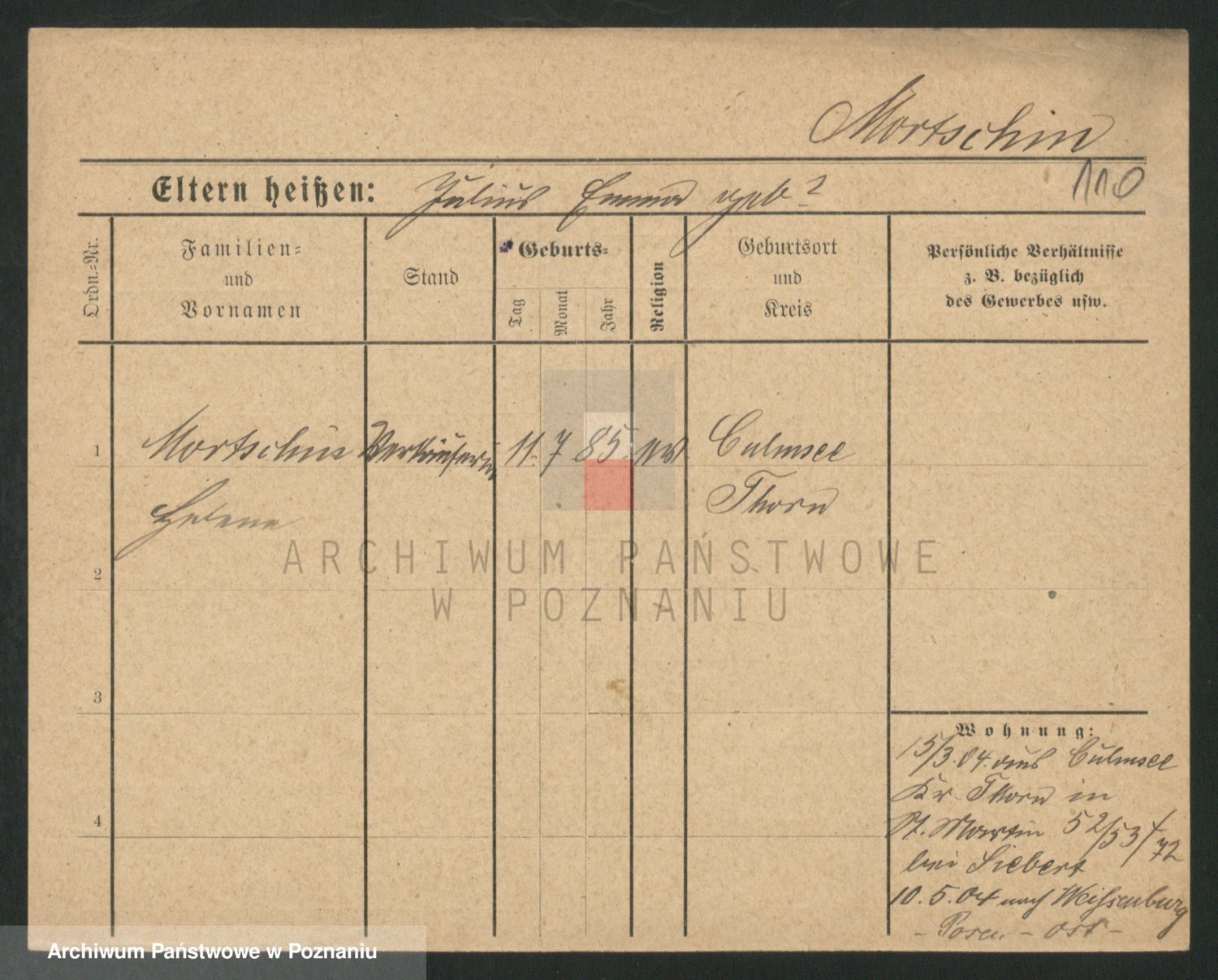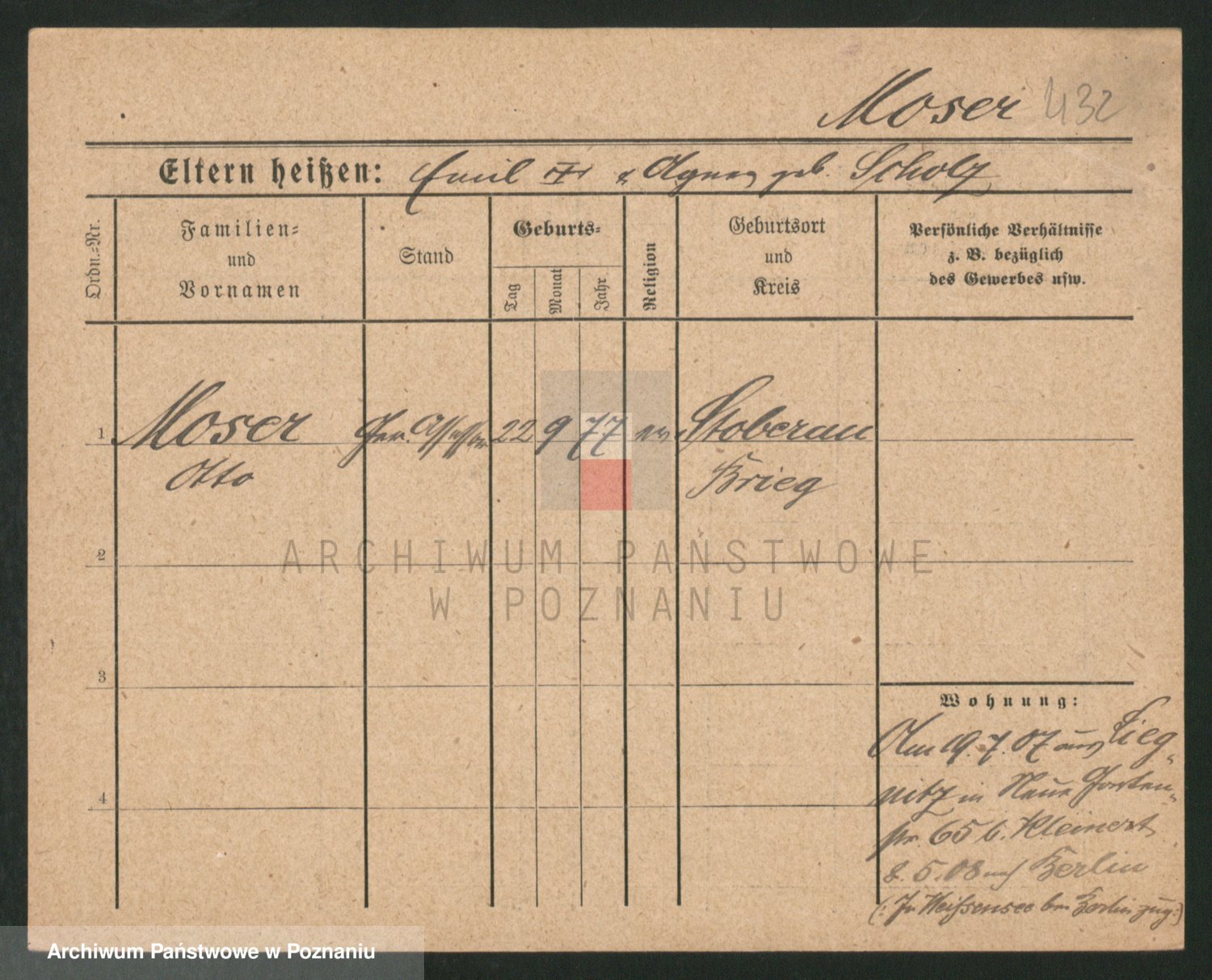 Podgląd karty osobowej dostępny jest po kliknięciu na nazwisko lub ikonkę karty. Można dokonywać powiększenia (ikony na górze) lub przechodzić między kolejnymi skanami (strzałki po bokach).