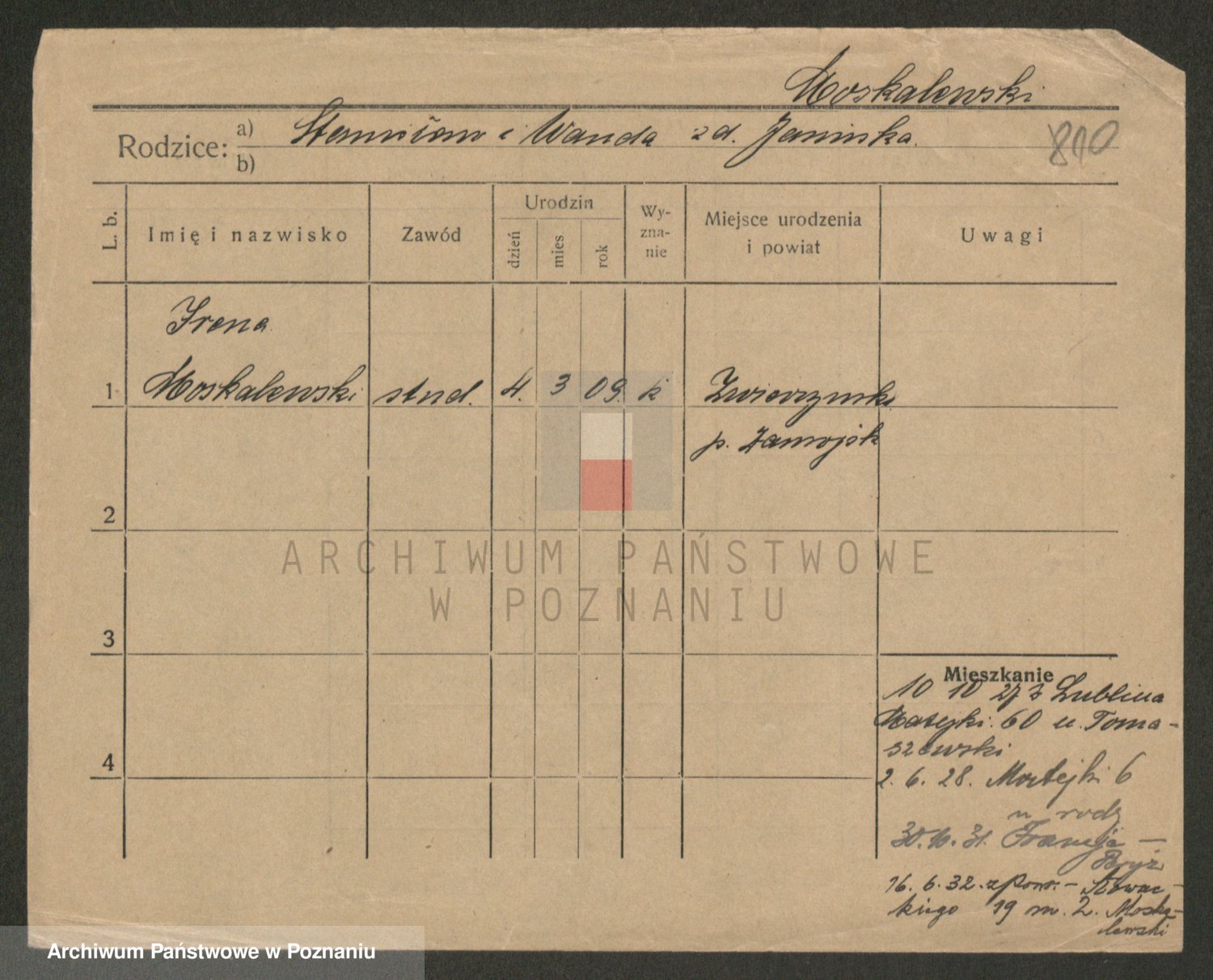 Moskalewski zd. Jasinska, Wanda