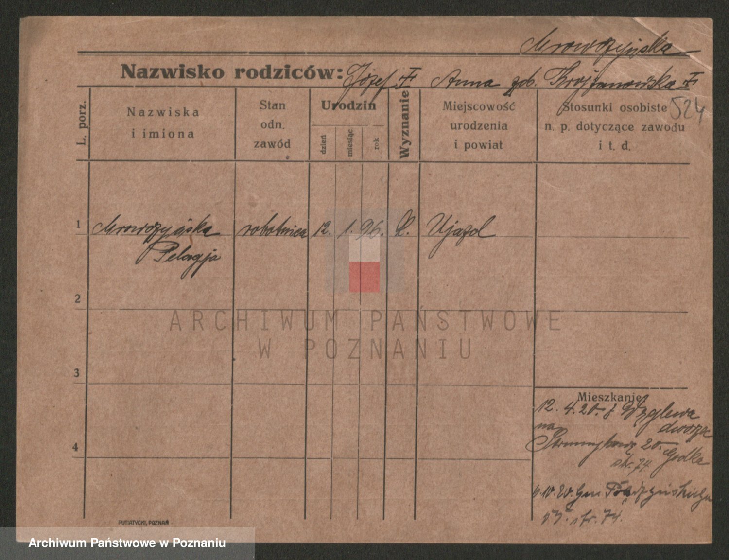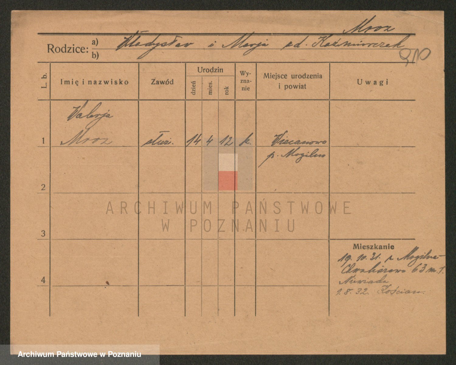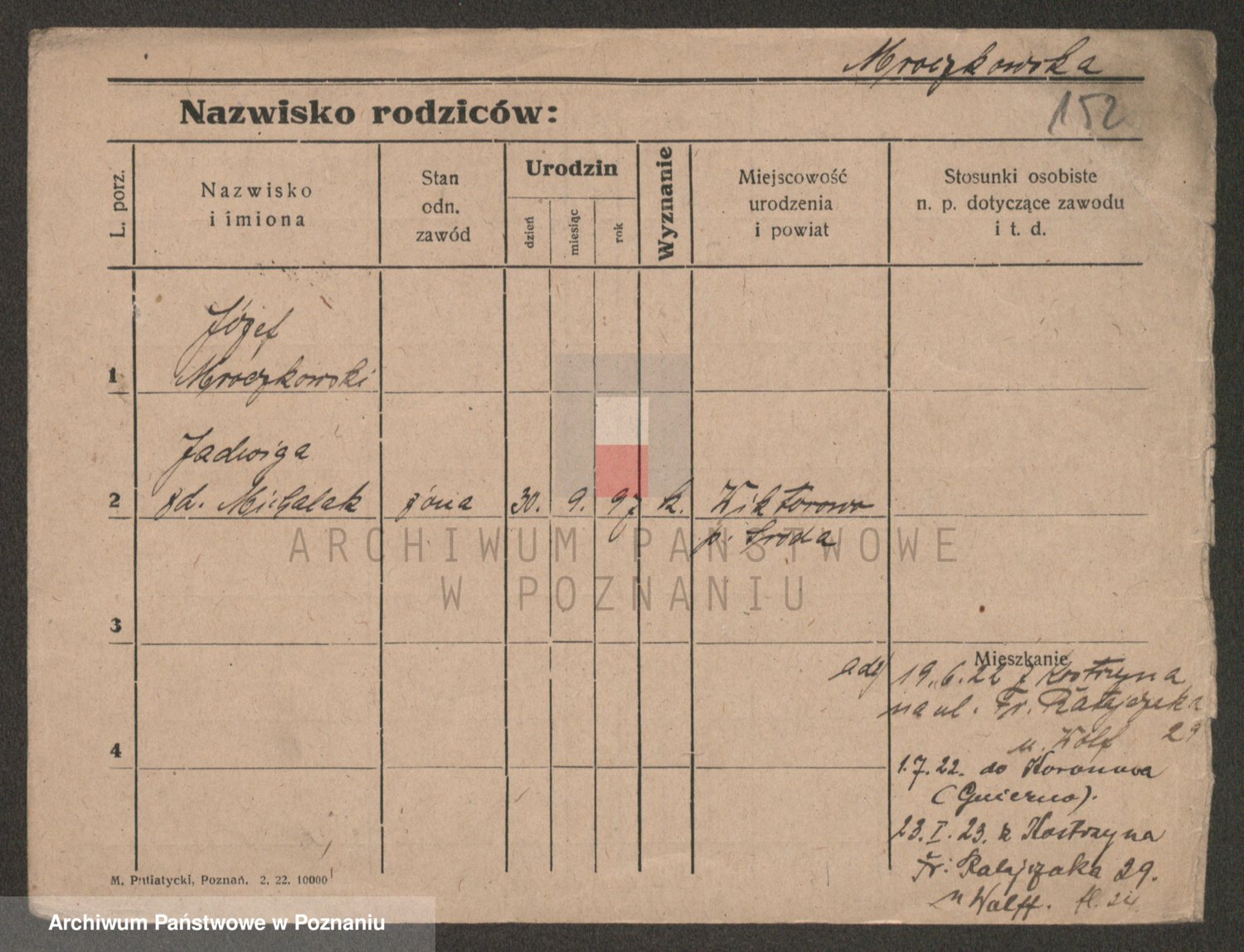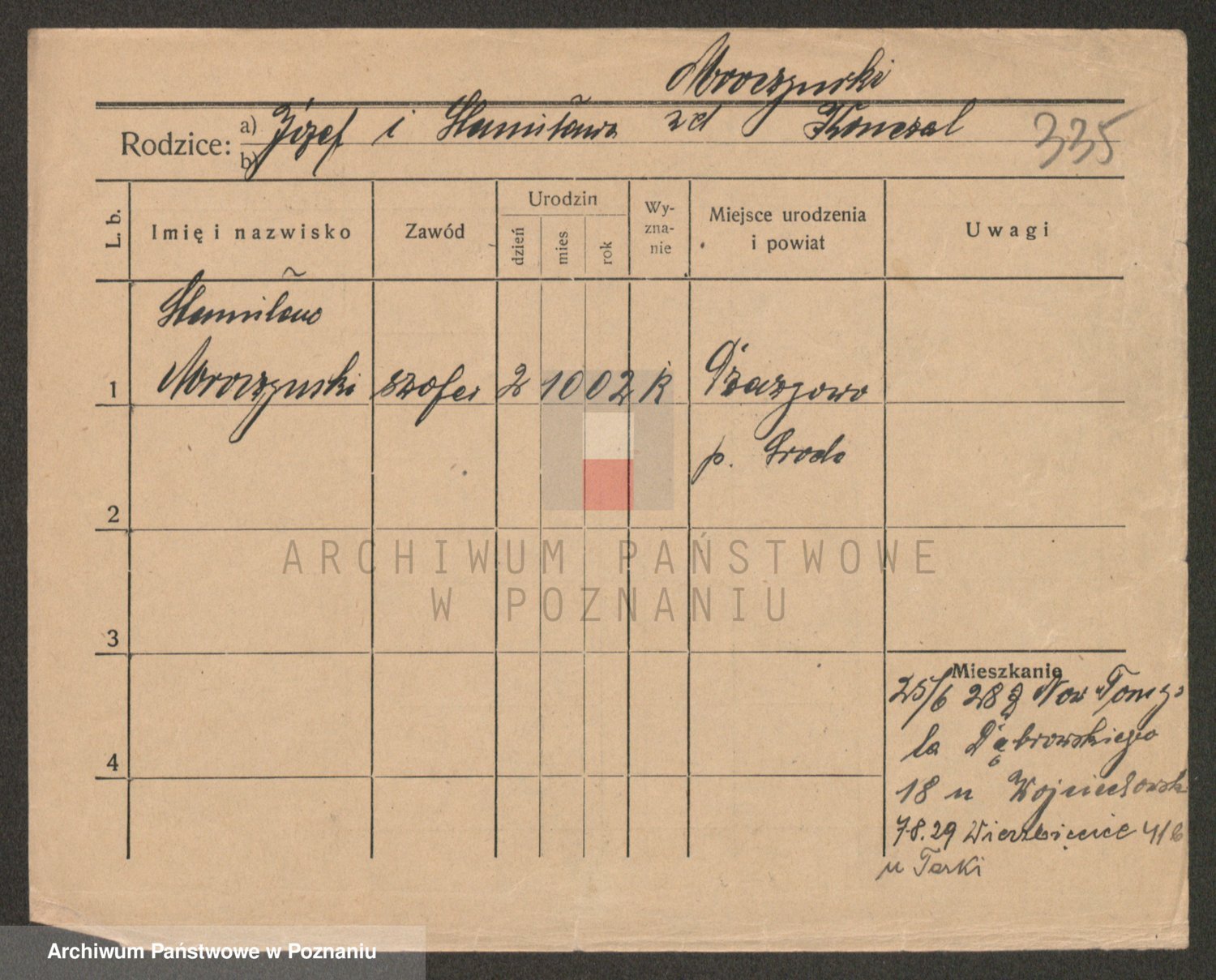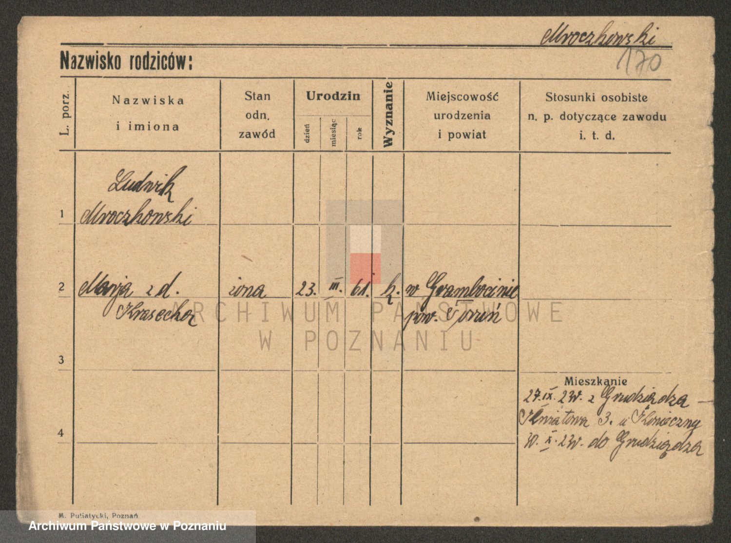Podgląd karty osobowej dostępny jest po kliknięciu na nazwisko lub ikonkę karty. Można dokonywać powiększenia (ikony na górze) lub przechodzić między kolejnymi skanami (strzałki po bokach).