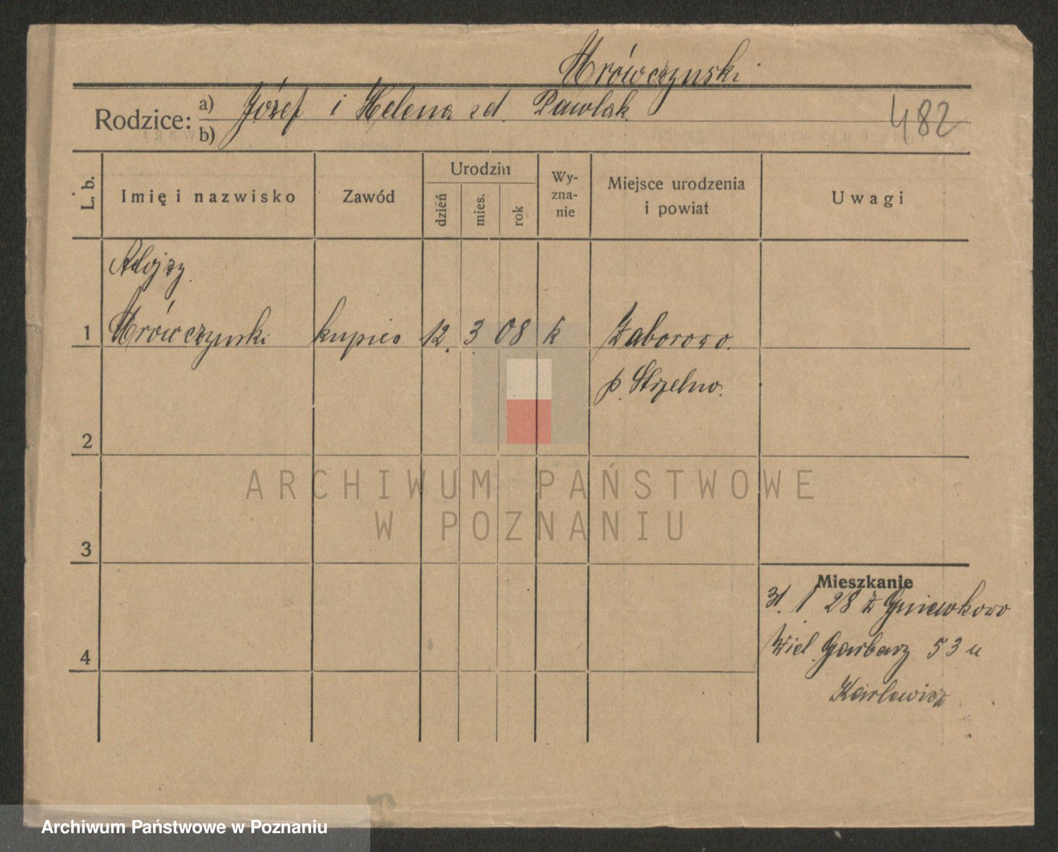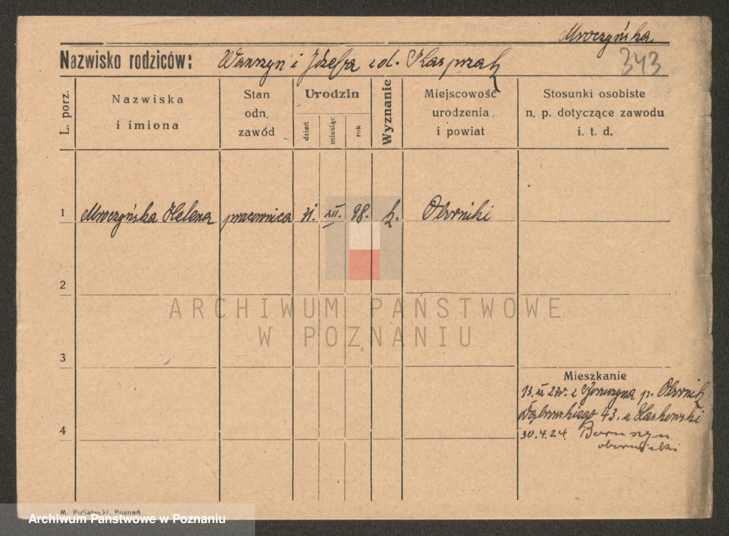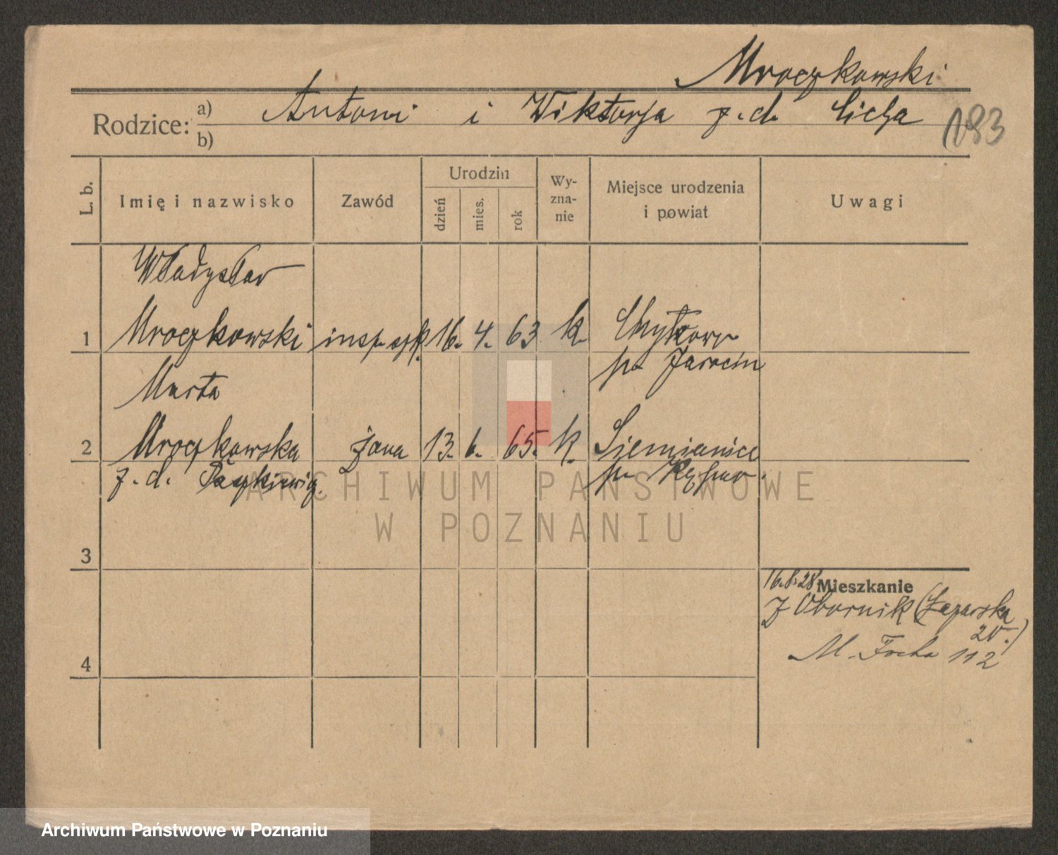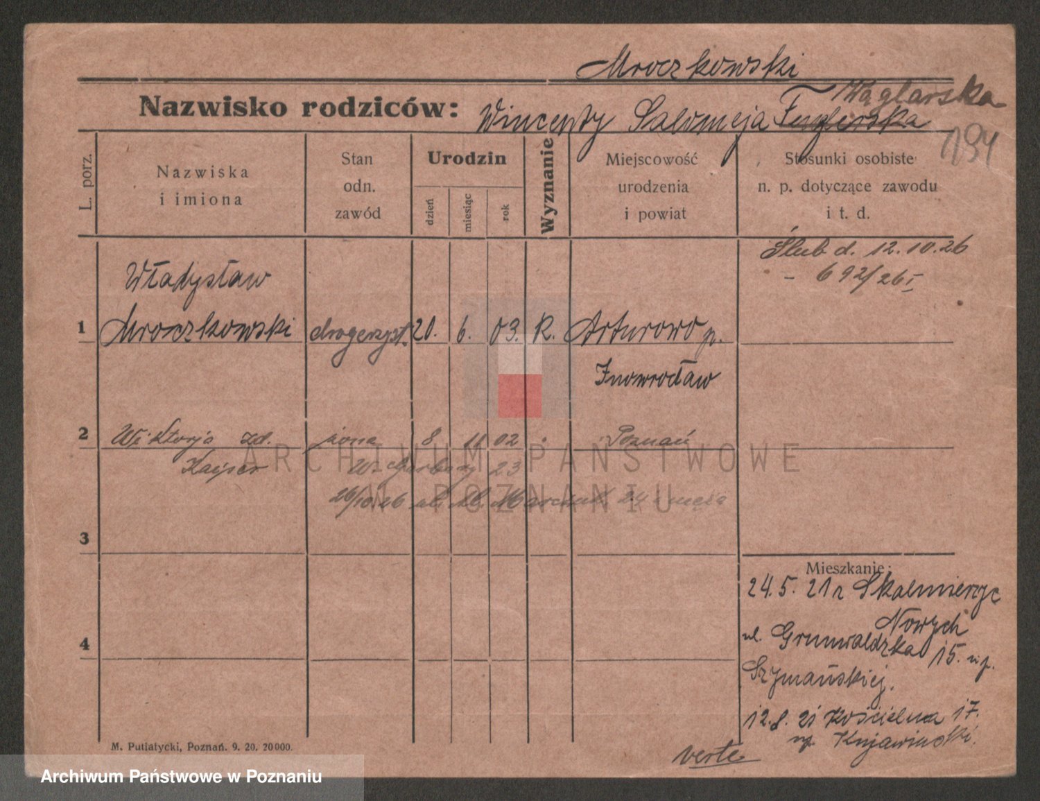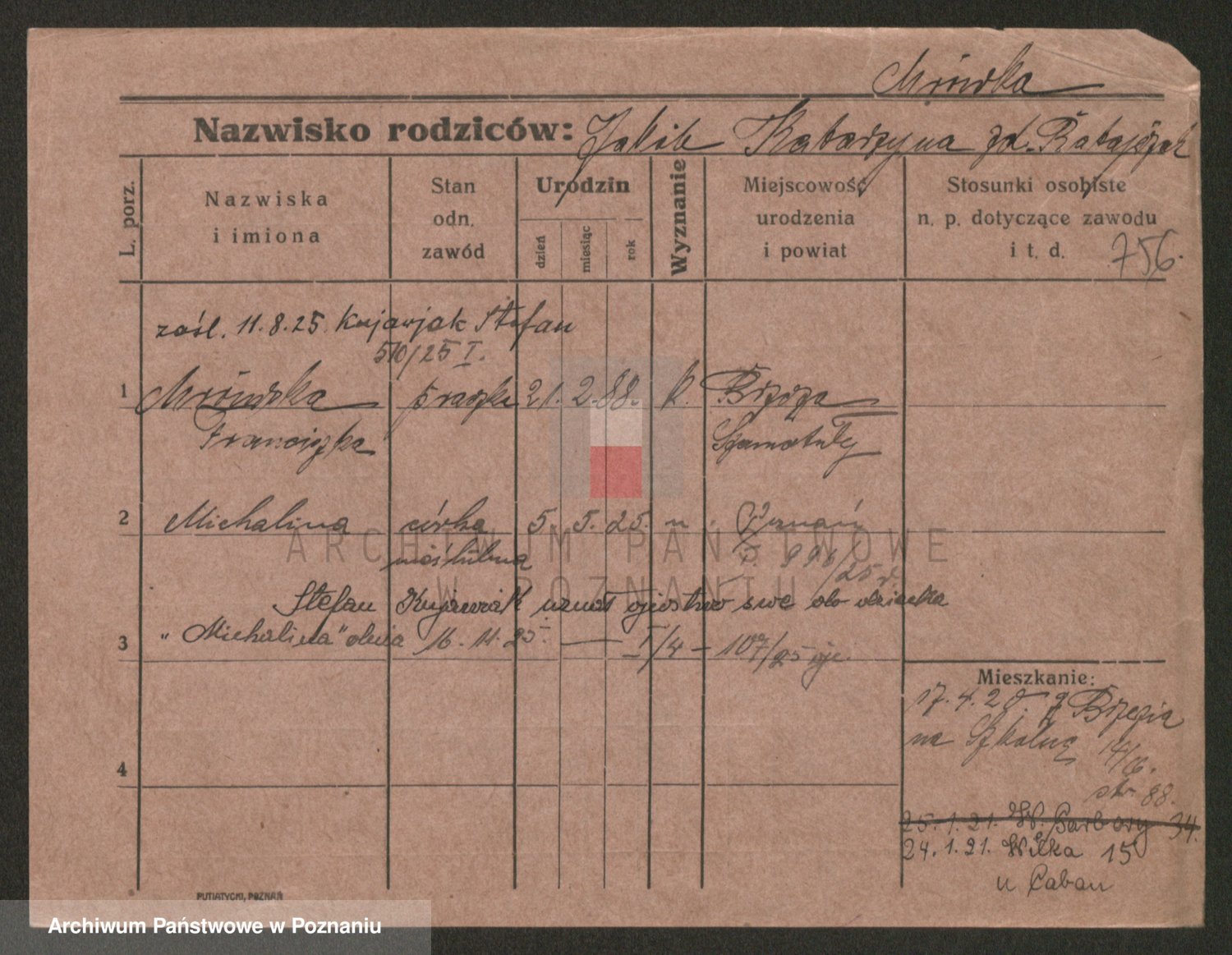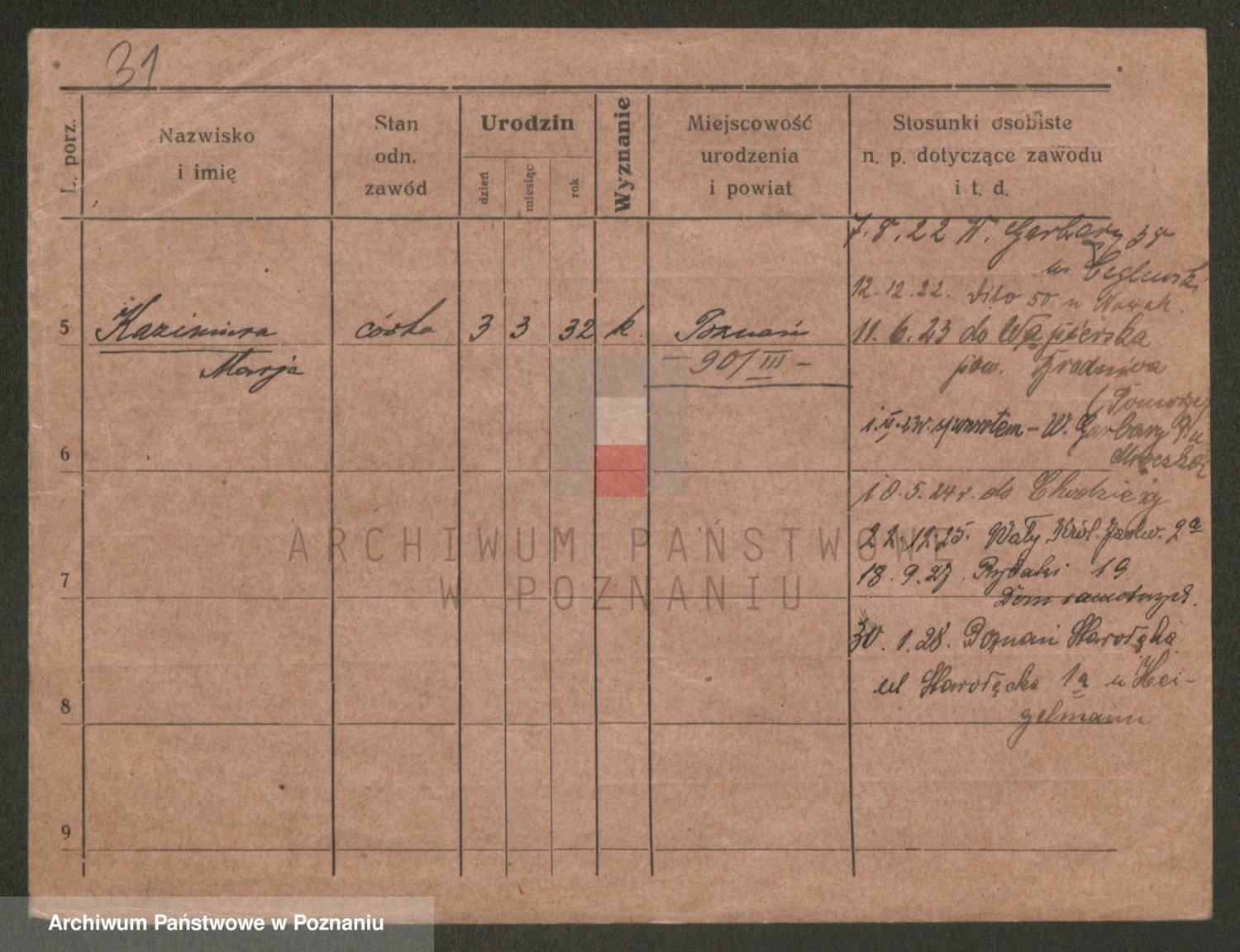 Podgląd karty osobowej dostępny jest po kliknięciu na nazwisko lub ikonkę karty. Można dokonywać powiększenia (ikony na górze) lub przechodzić między kolejnymi skanami (strzałki po bokach).