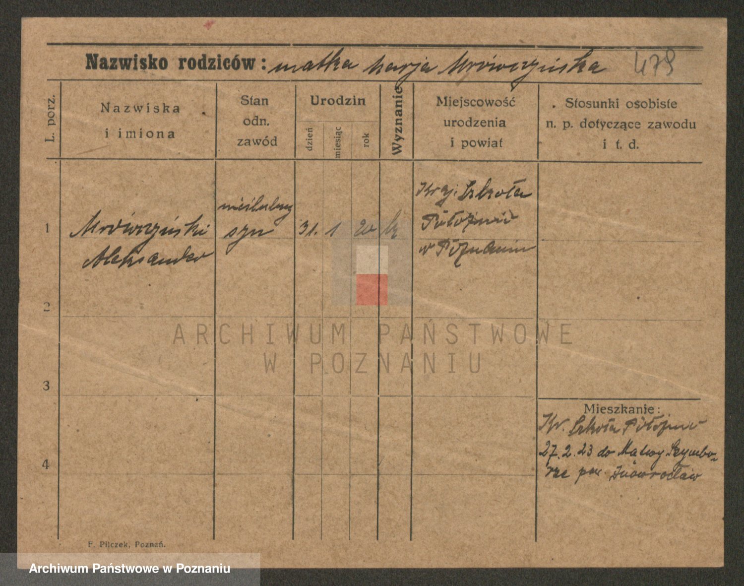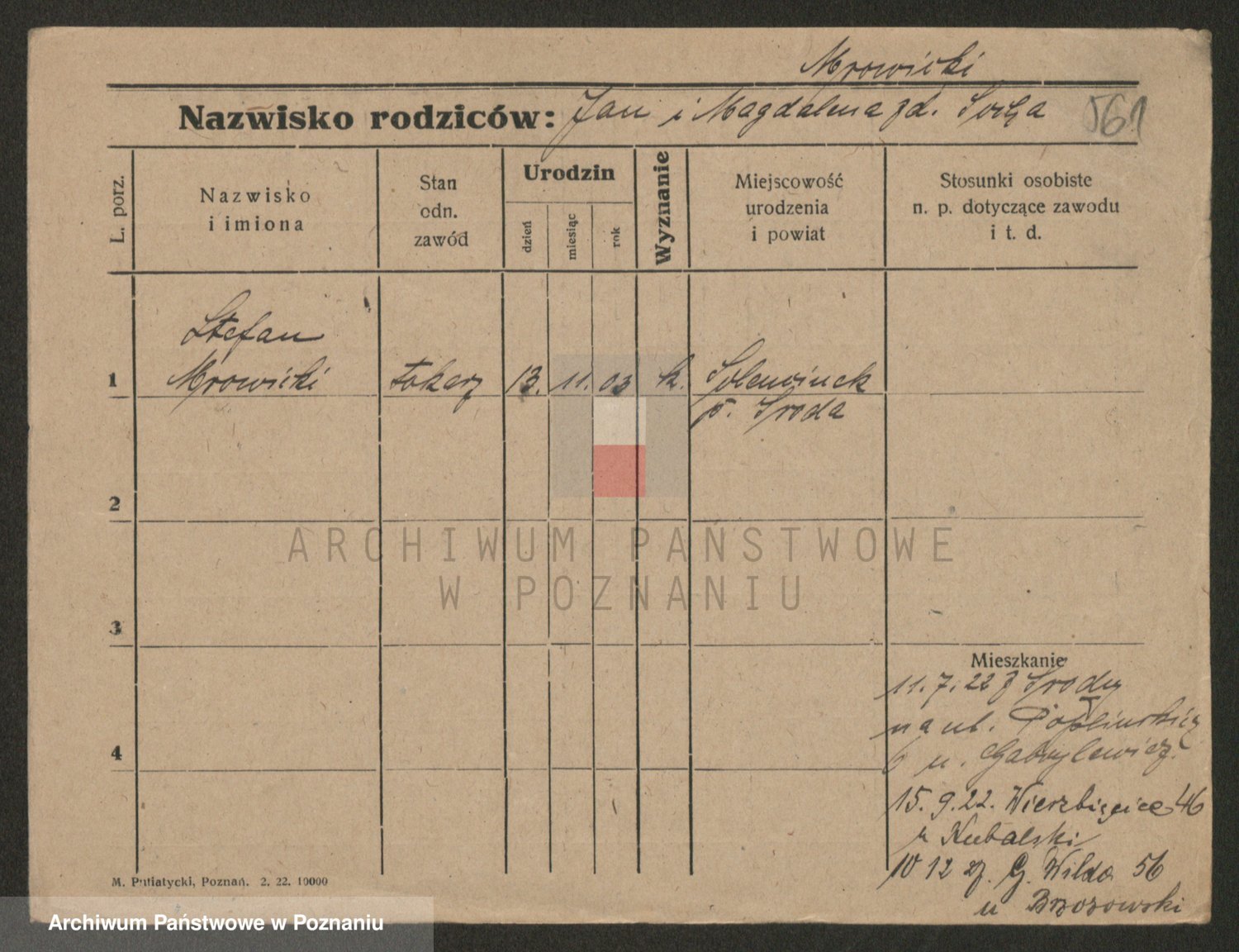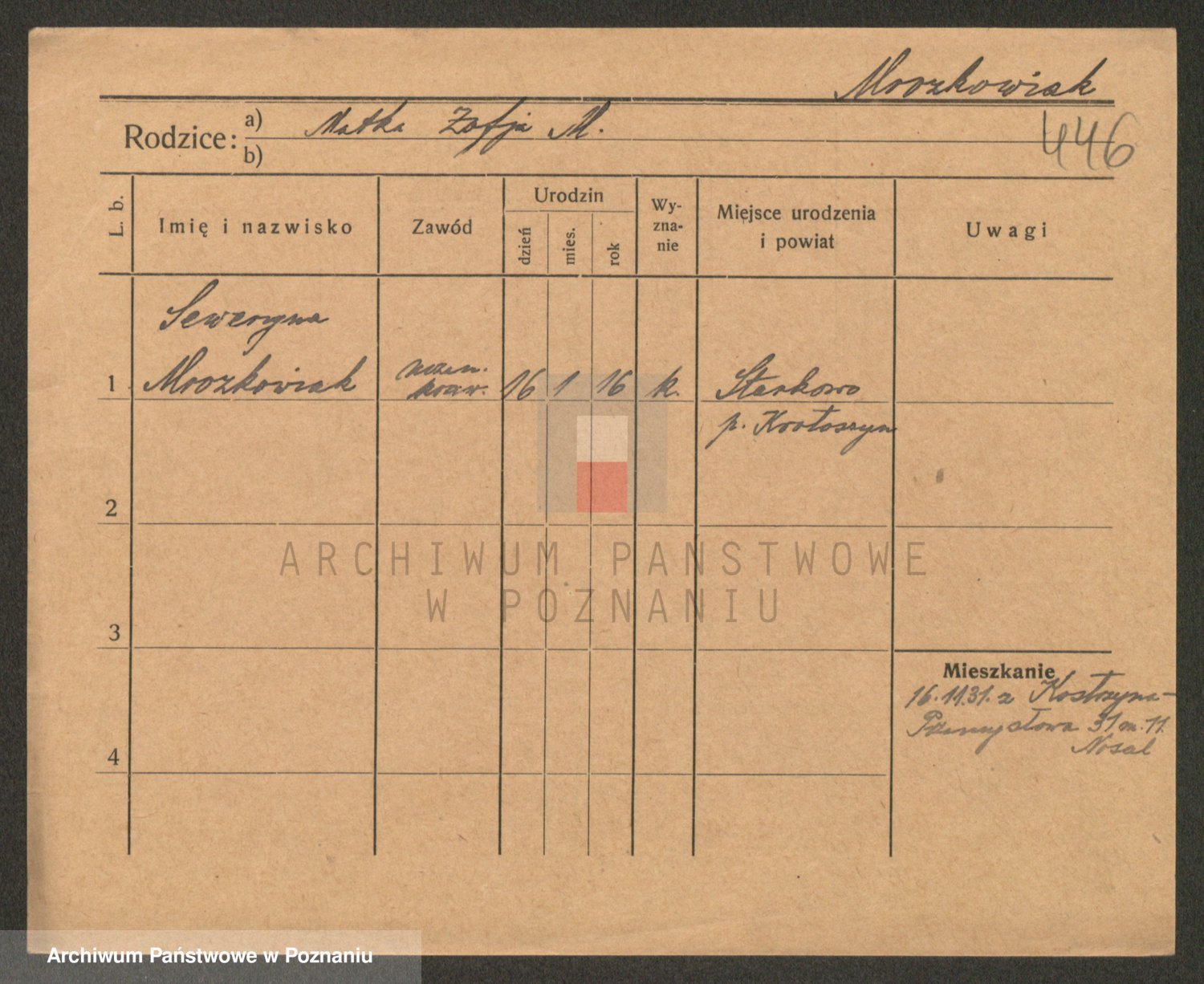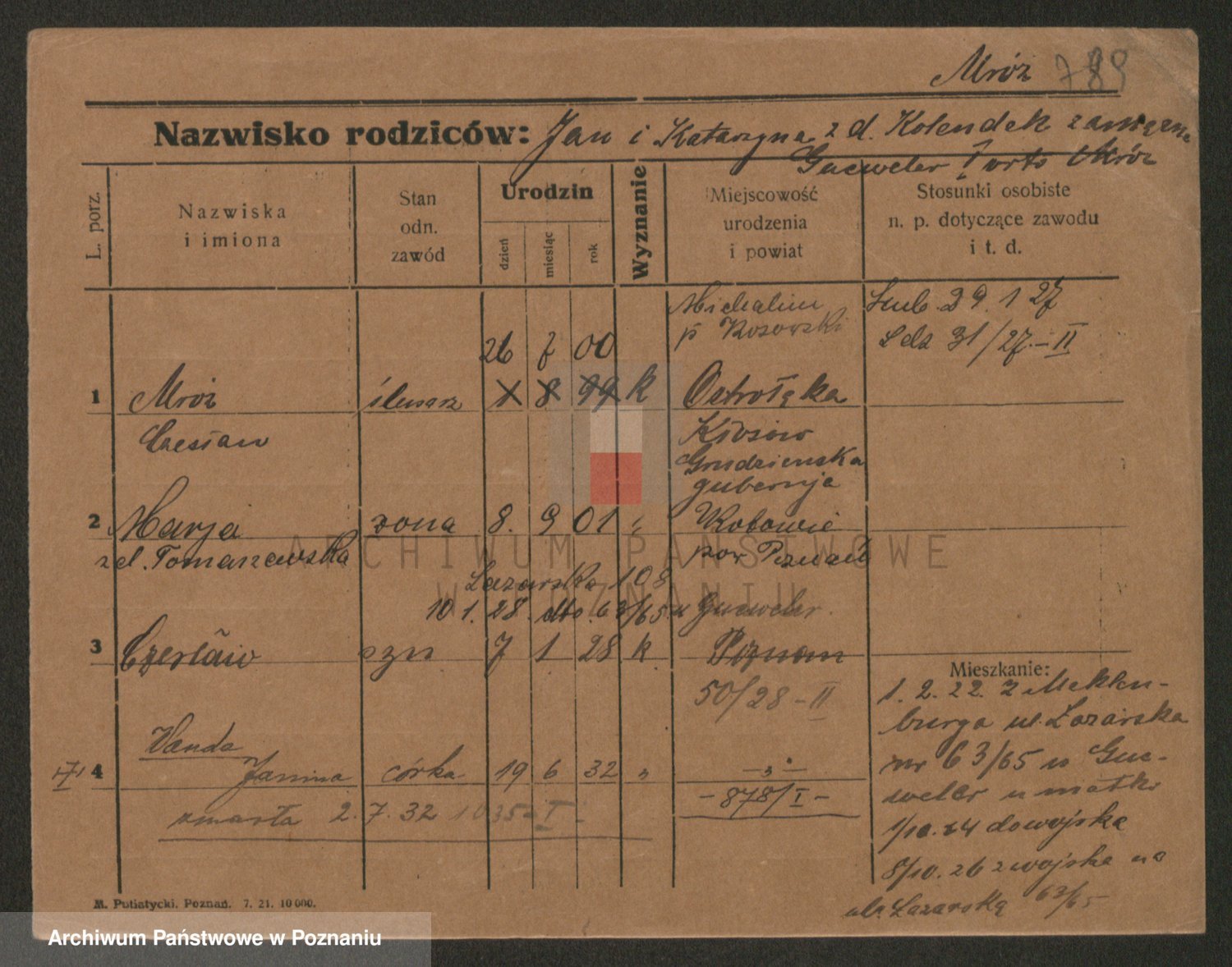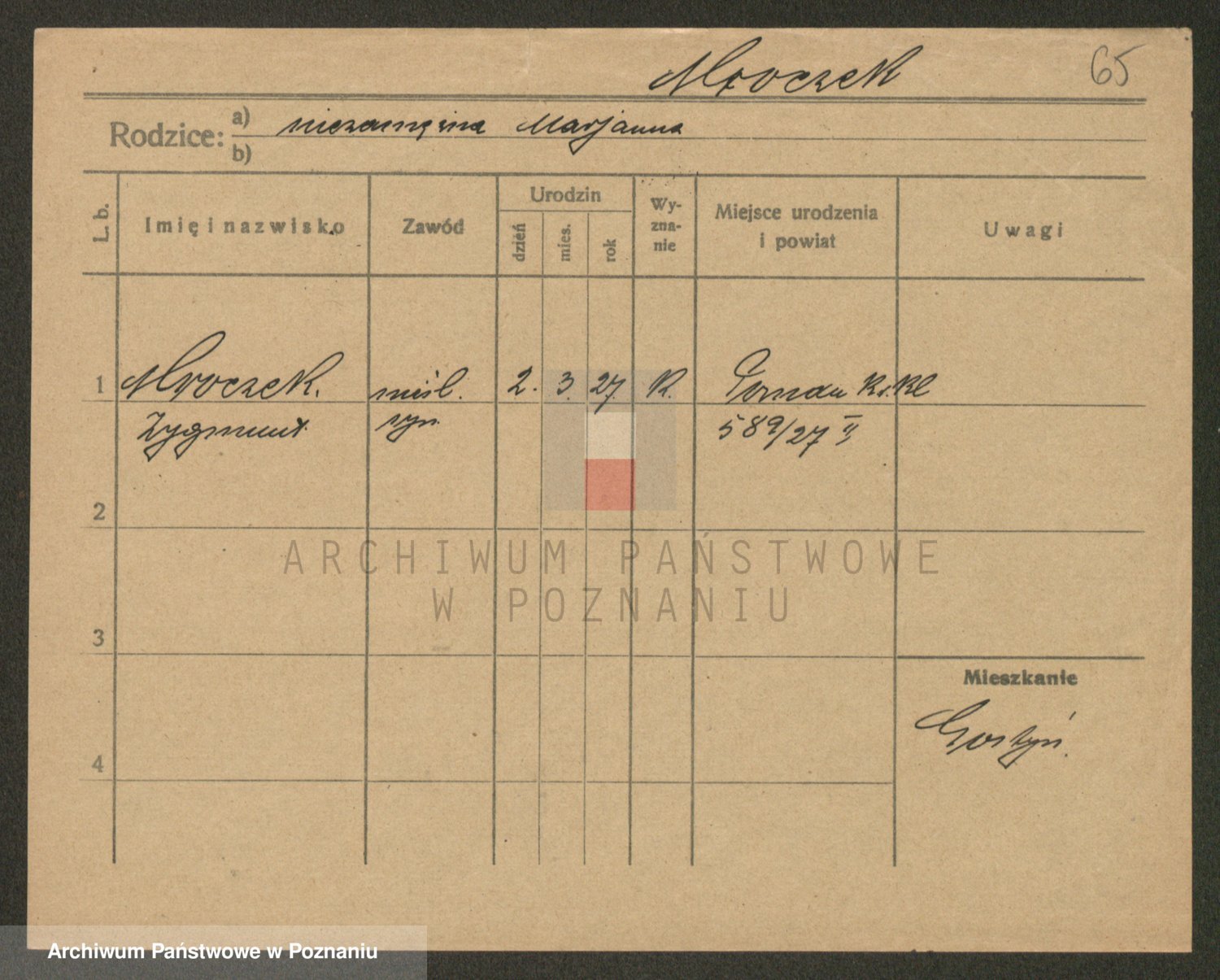 Podgląd karty osobowej dostępny jest po kliknięciu na nazwisko lub ikonkę karty. Można dokonywać powiększenia (ikony na górze) lub przechodzić między kolejnymi skanami (strzałki po bokach).