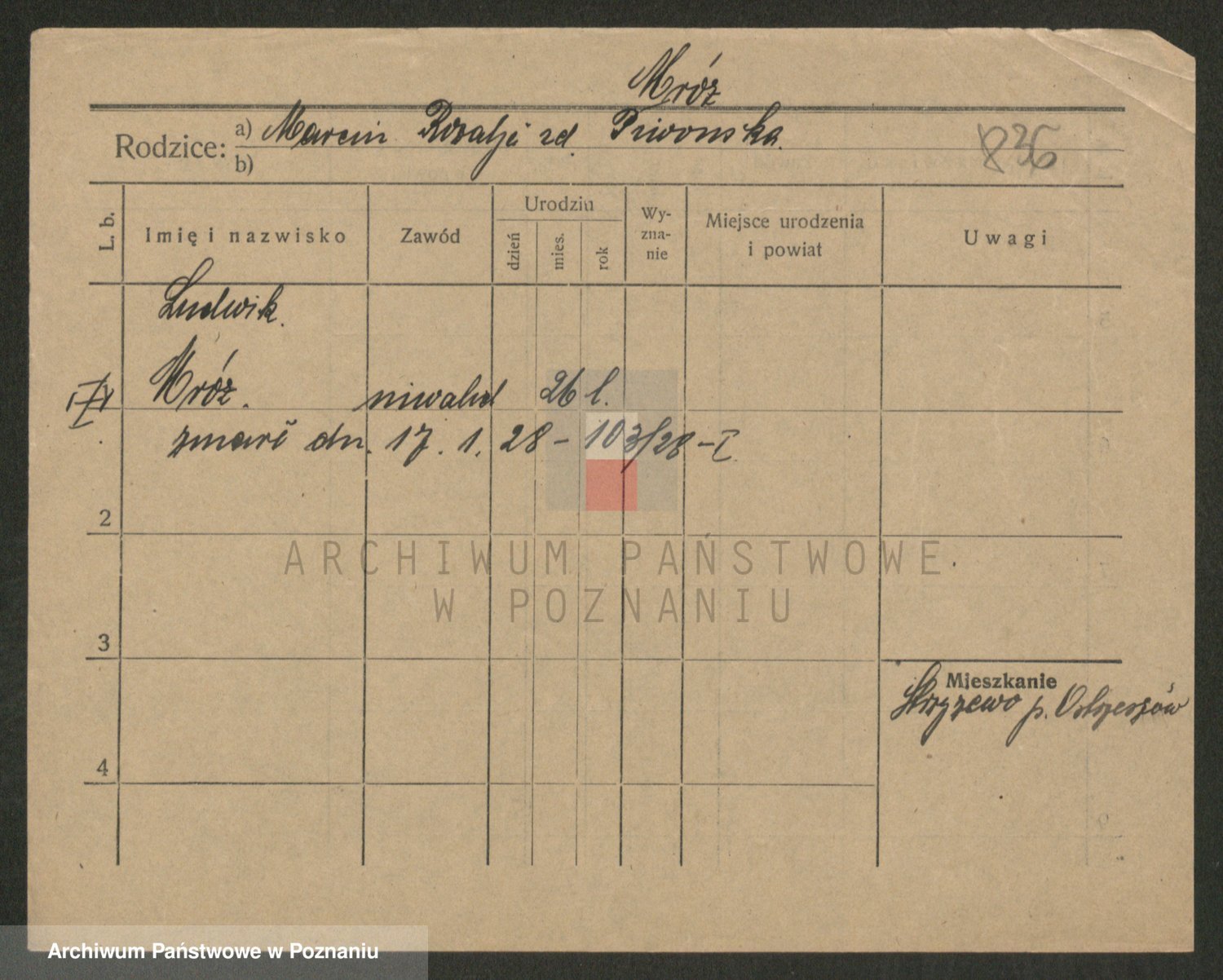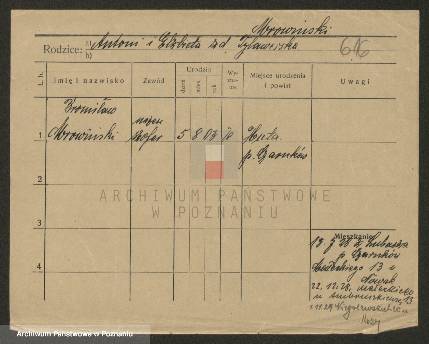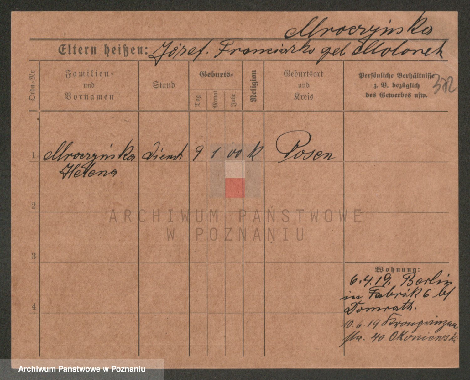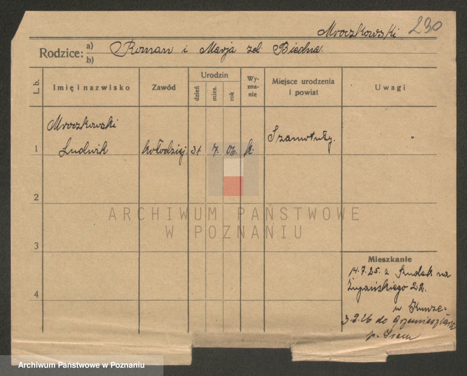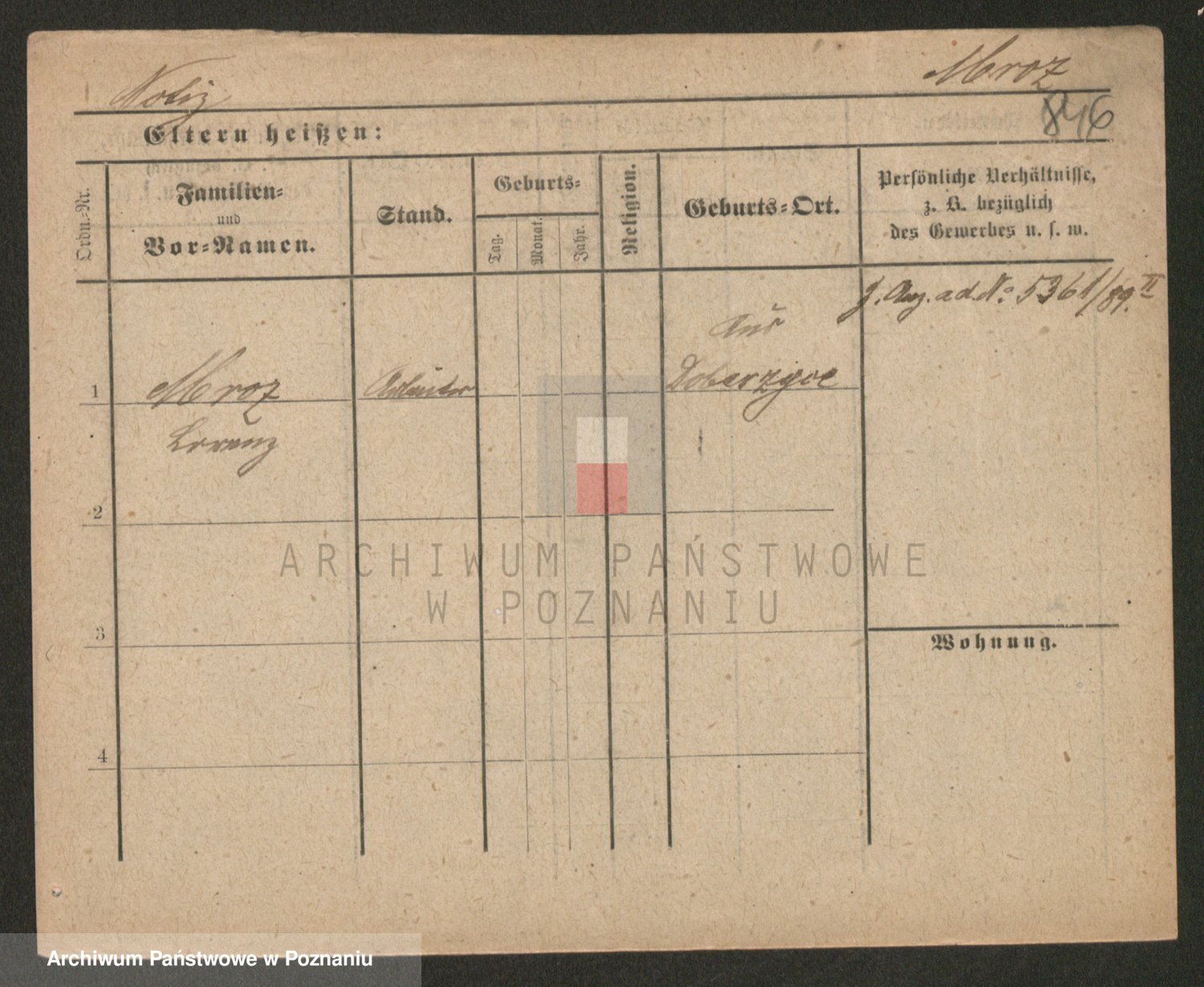 Podgląd karty osobowej dostępny jest po kliknięciu na nazwisko lub ikonkę karty. Można dokonywać powiększenia (ikony na górze) lub przechodzić między kolejnymi skanami (strzałki po bokach).