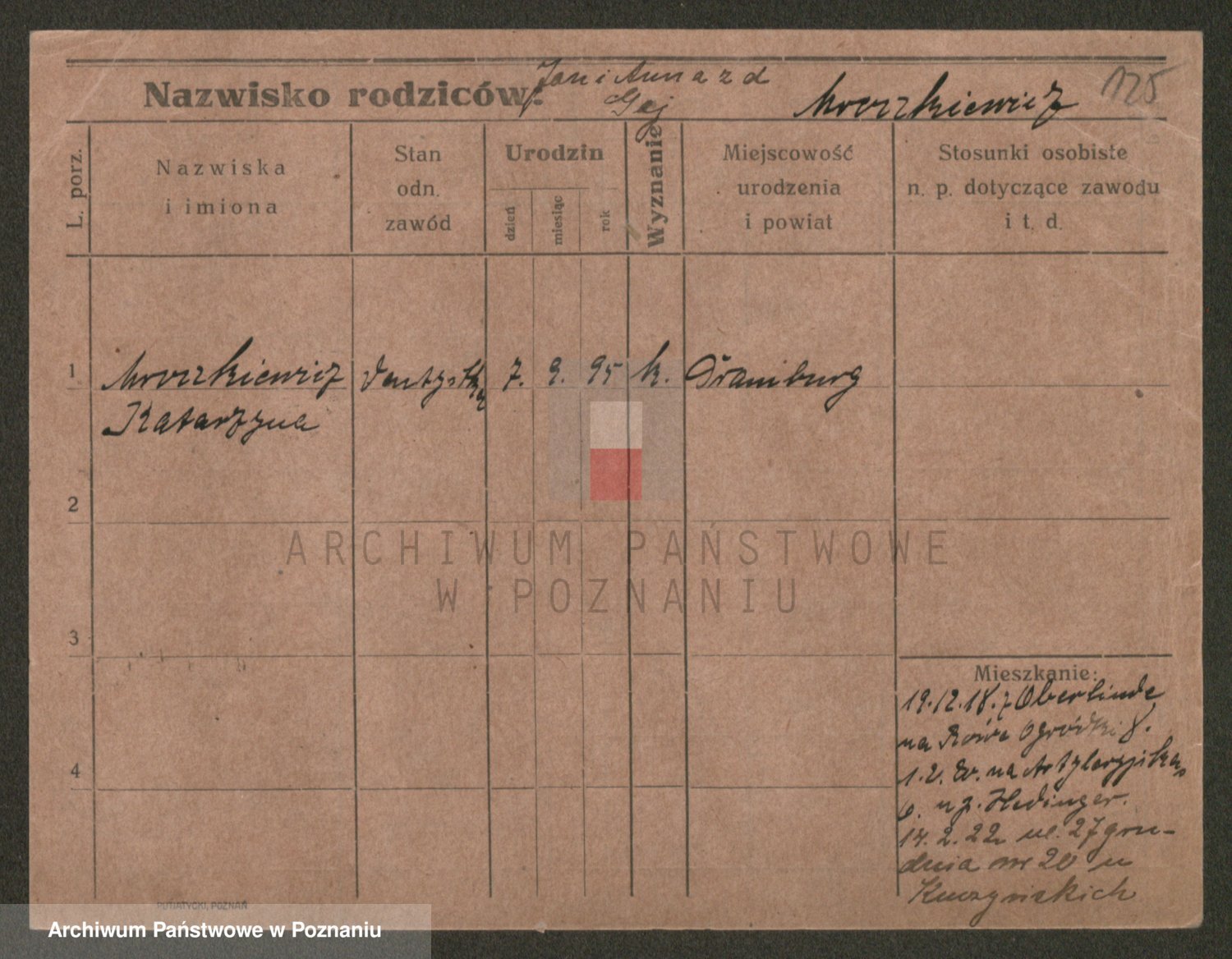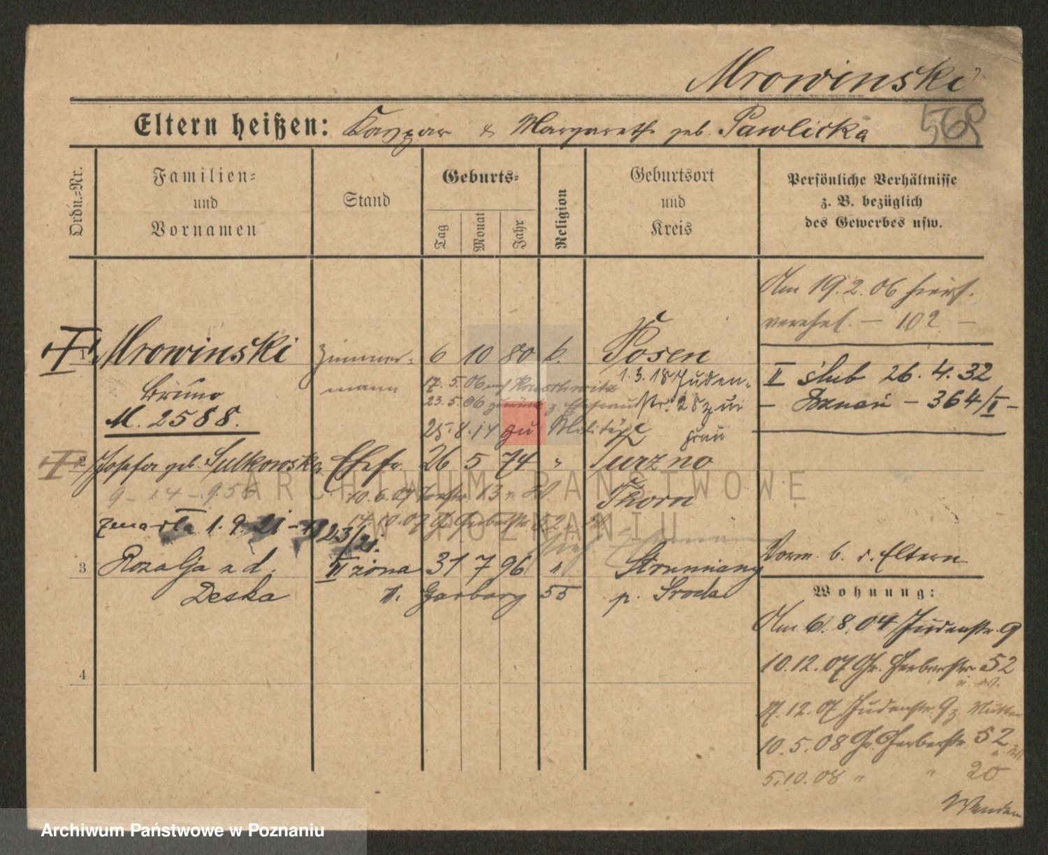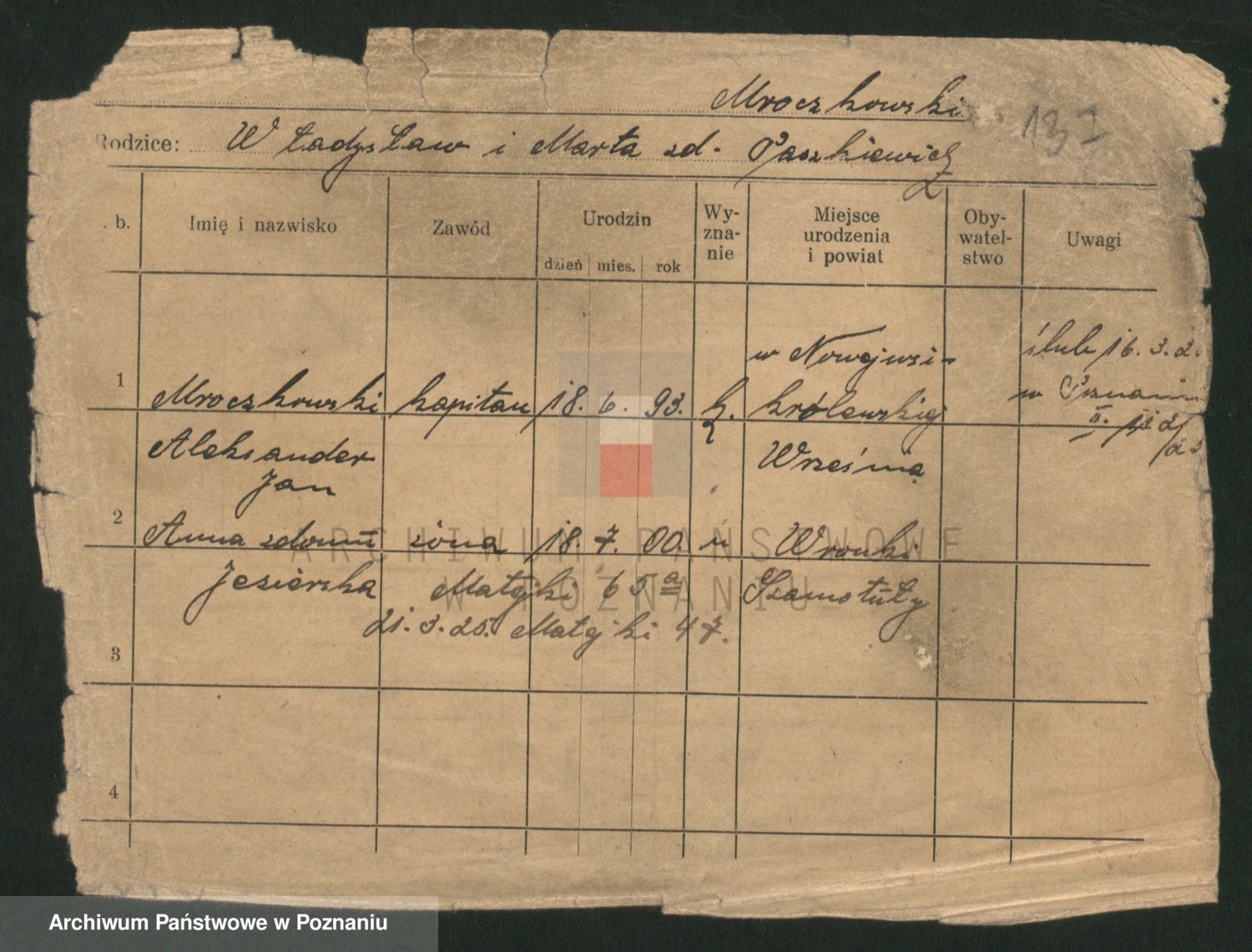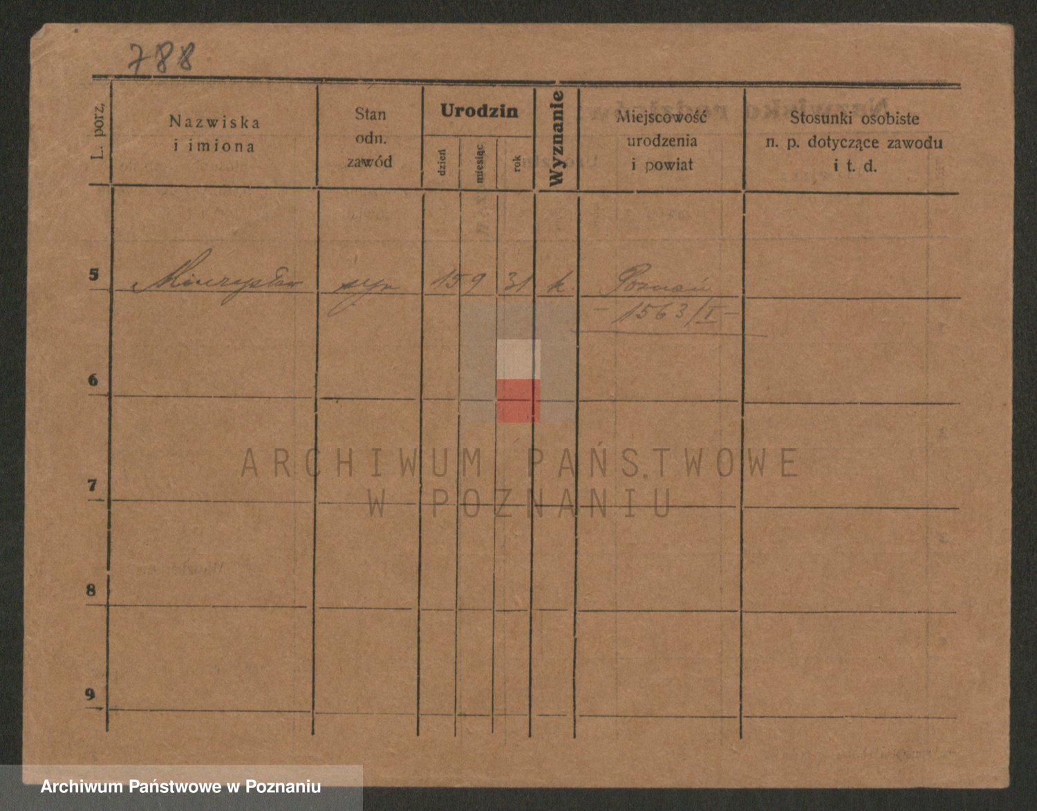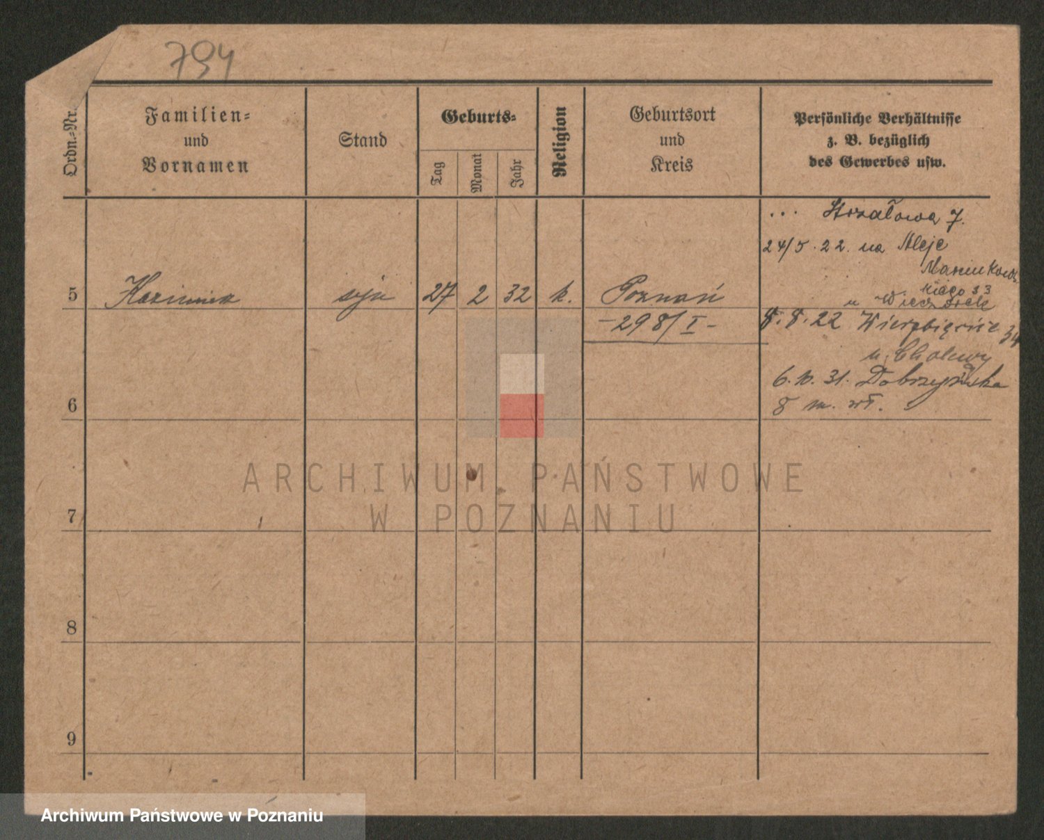 Podgląd karty osobowej dostępny jest po kliknięciu na nazwisko lub ikonkę karty. Można dokonywać powiększenia (ikony na górze) lub przechodzić między kolejnymi skanami (strzałki po bokach).