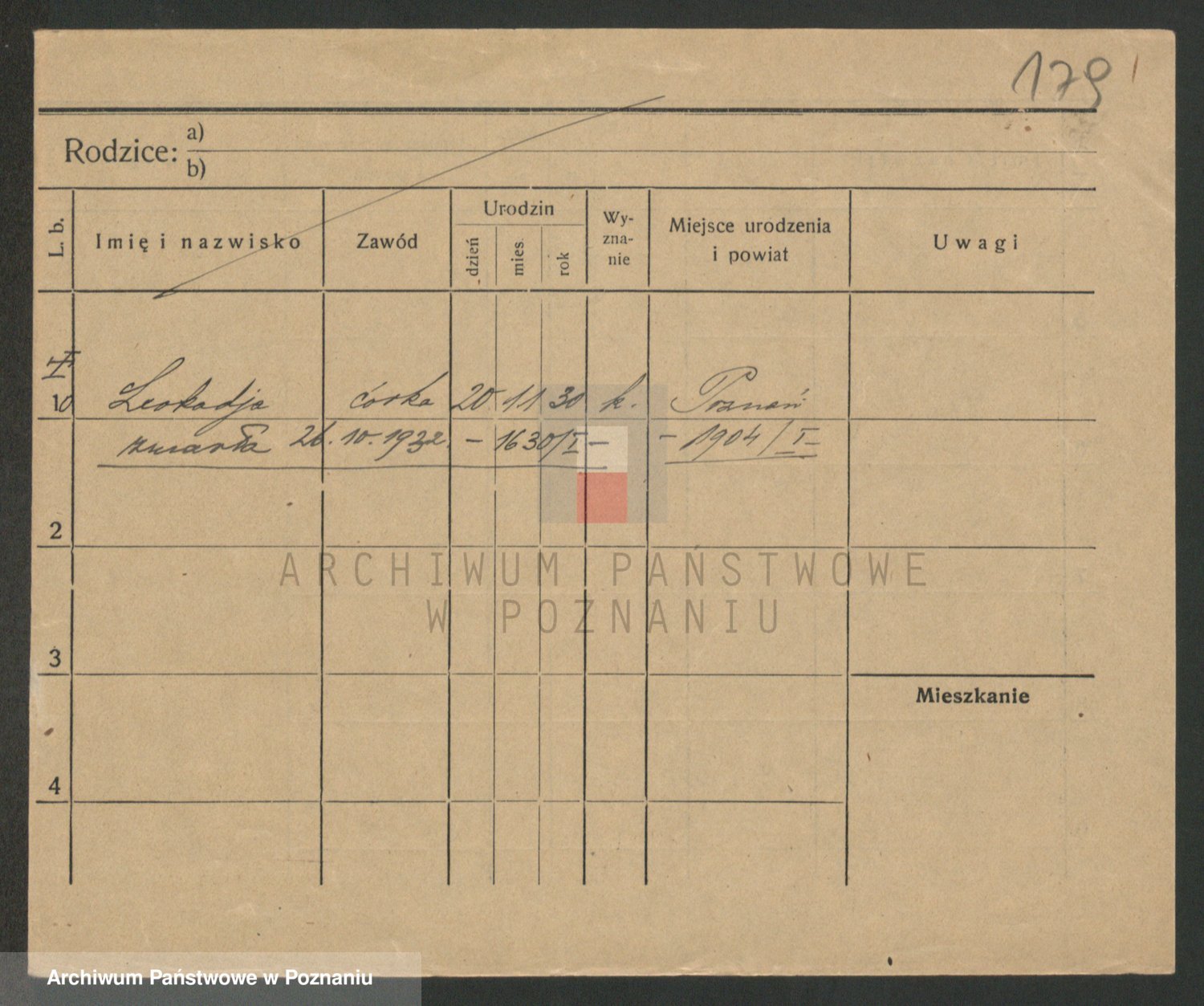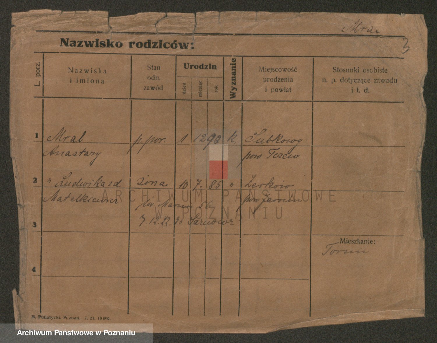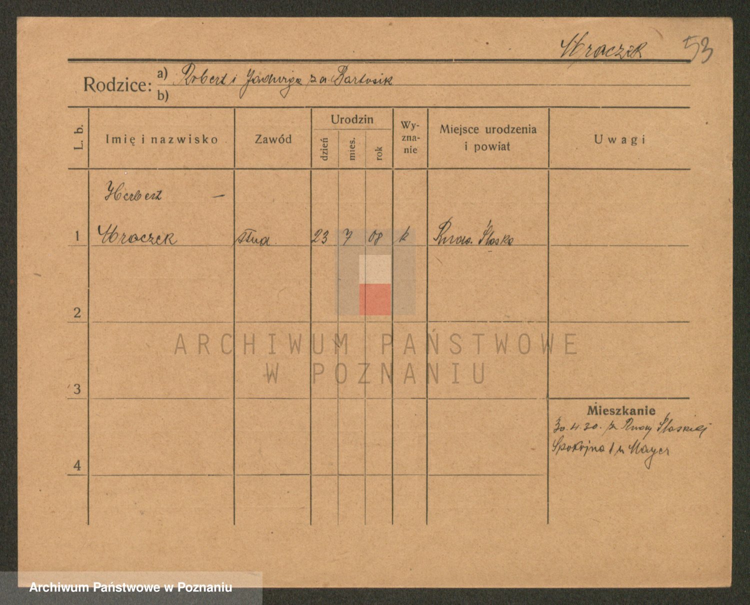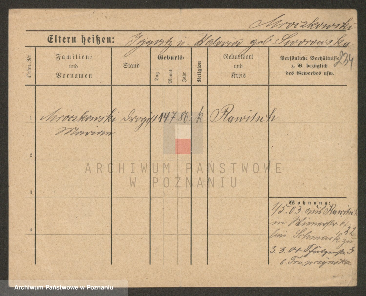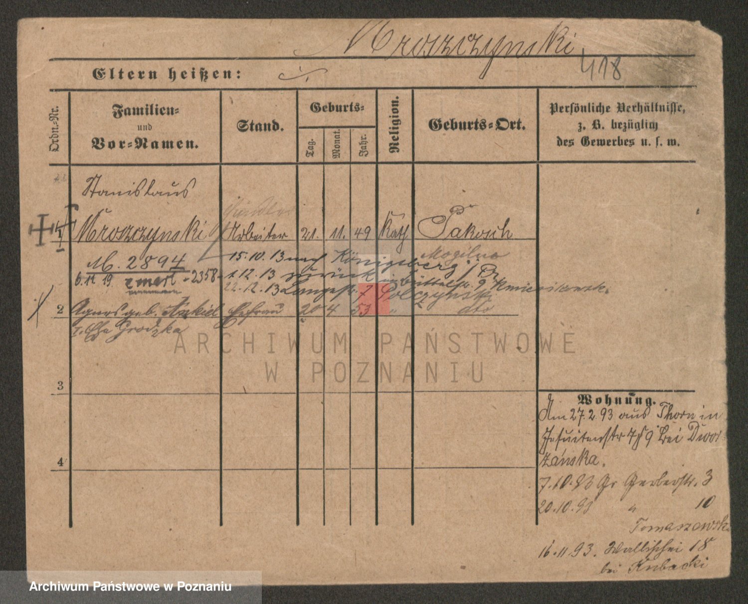 Podgląd karty osobowej dostępny jest po kliknięciu na nazwisko lub ikonkę karty. Można dokonywać powiększenia (ikony na górze) lub przechodzić między kolejnymi skanami (strzałki po bokach).