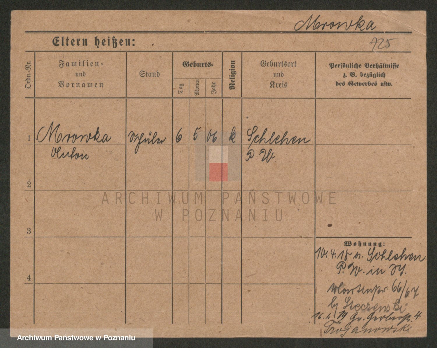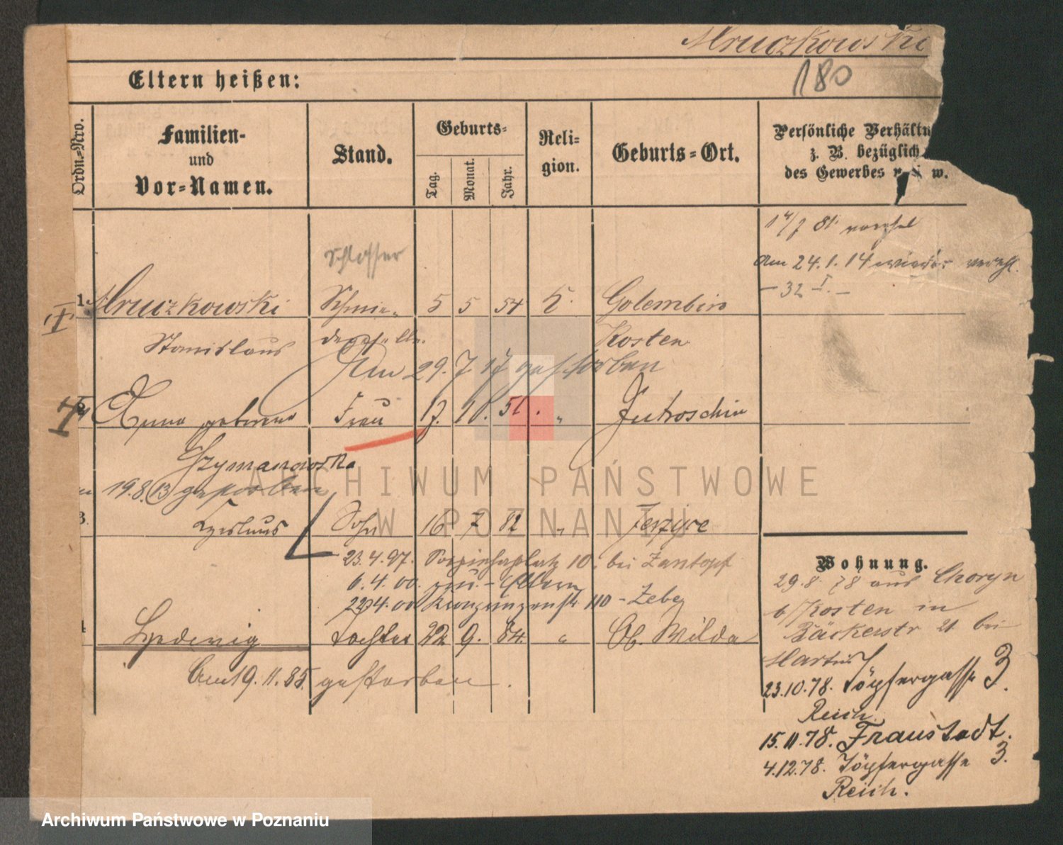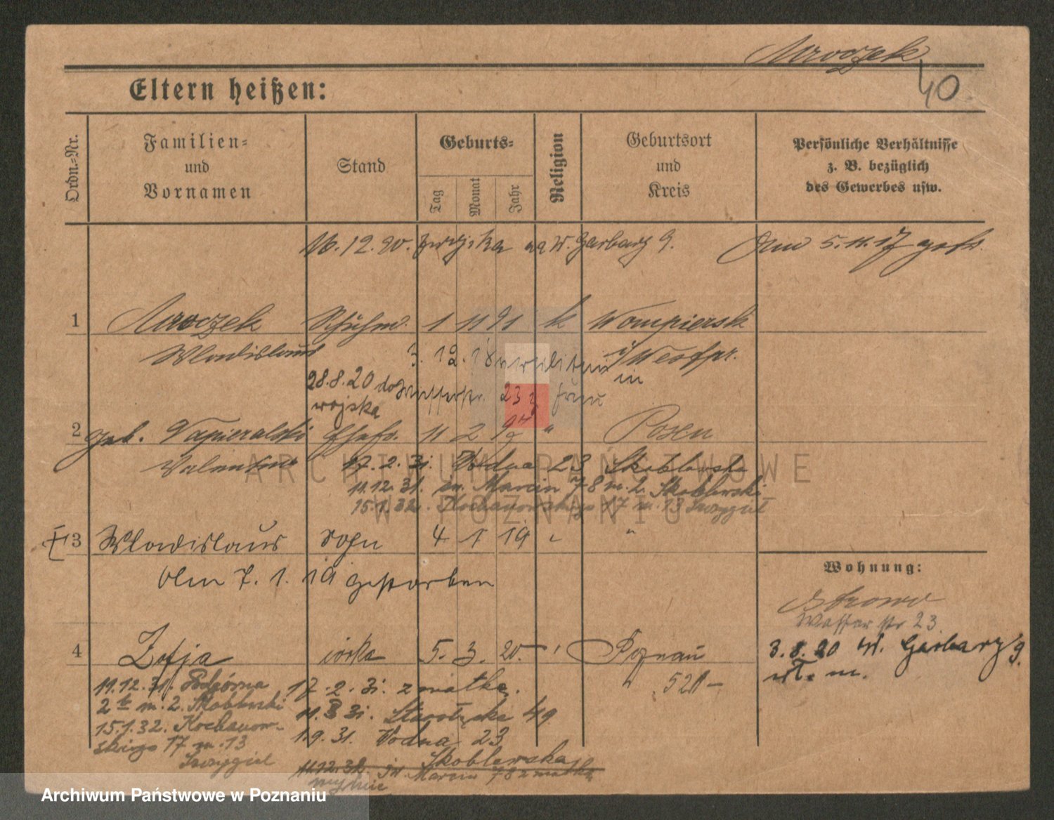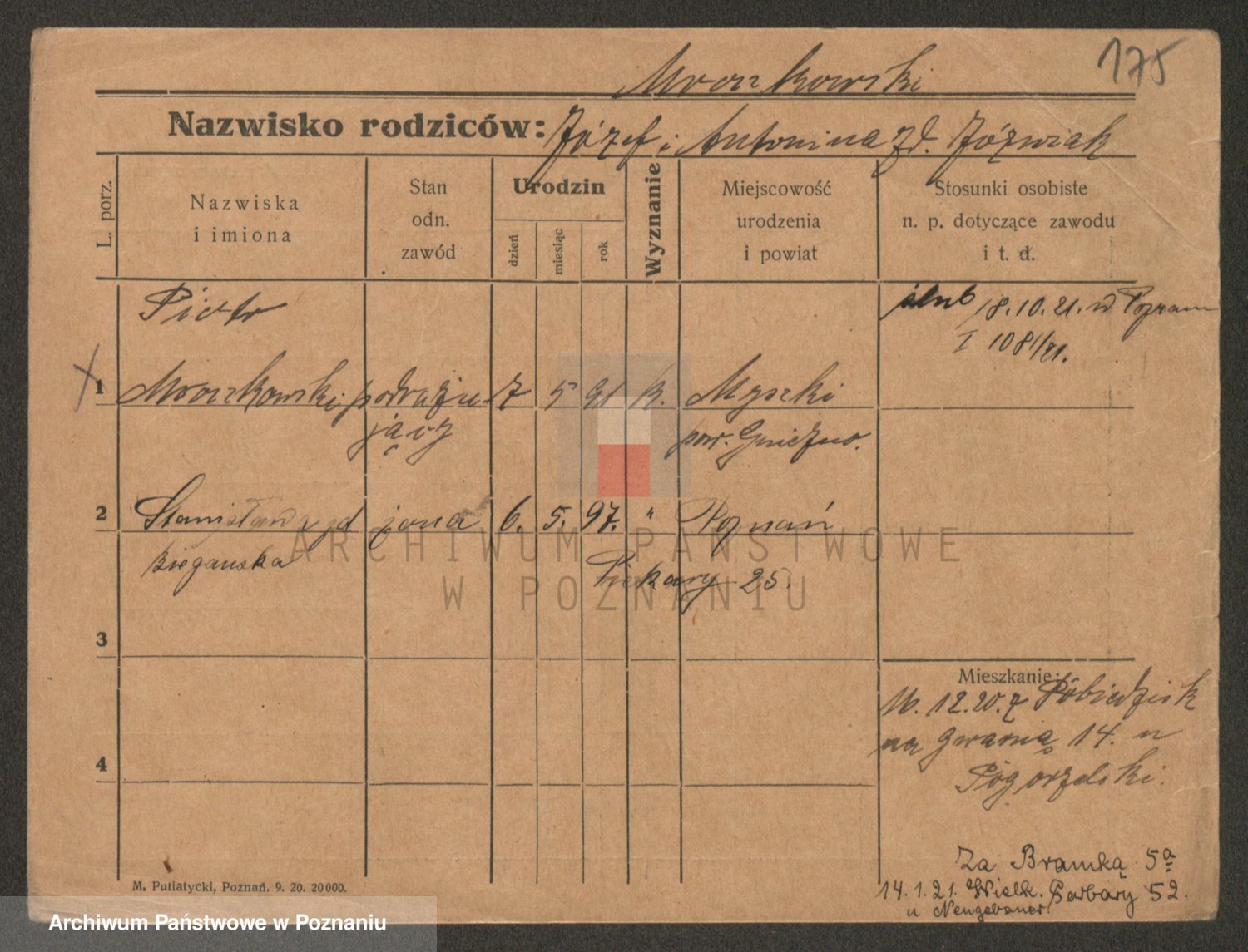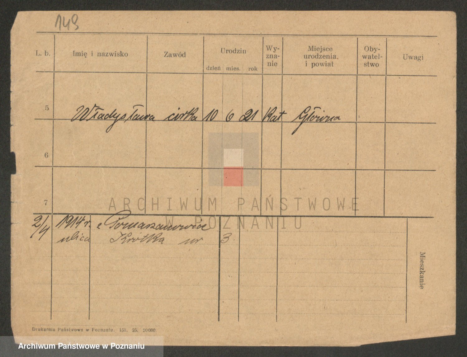 Podgląd karty osobowej dostępny jest po kliknięciu na nazwisko lub ikonkę karty. Można dokonywać powiększenia (ikony na górze) lub przechodzić między kolejnymi skanami (strzałki po bokach).
