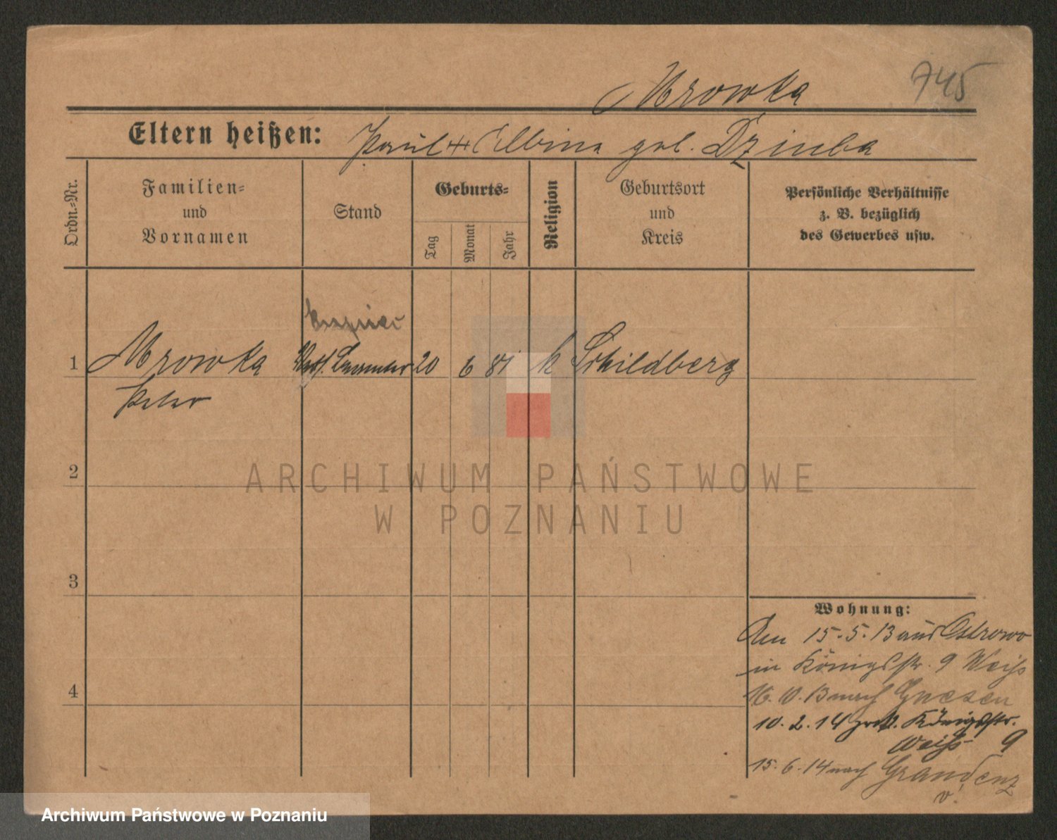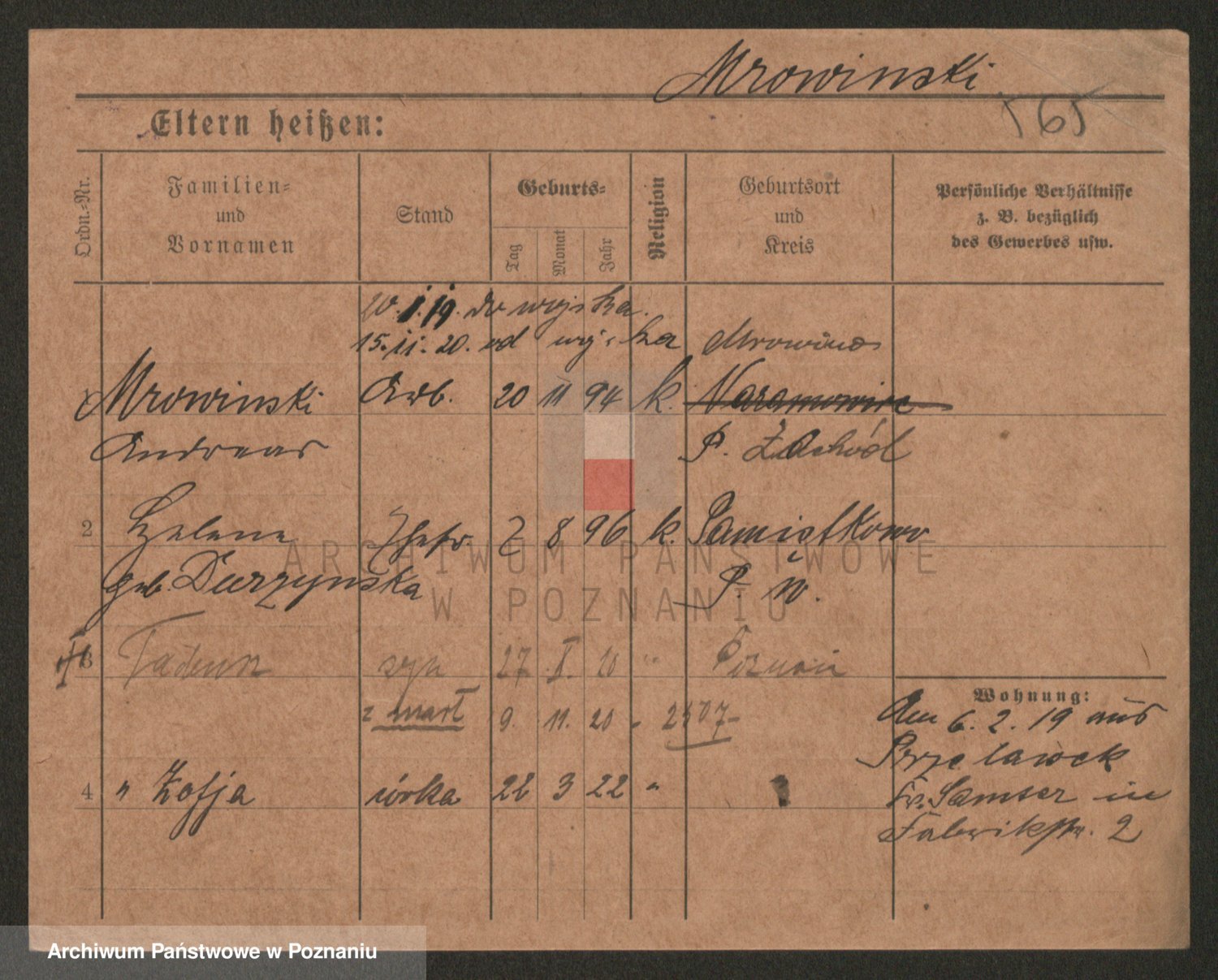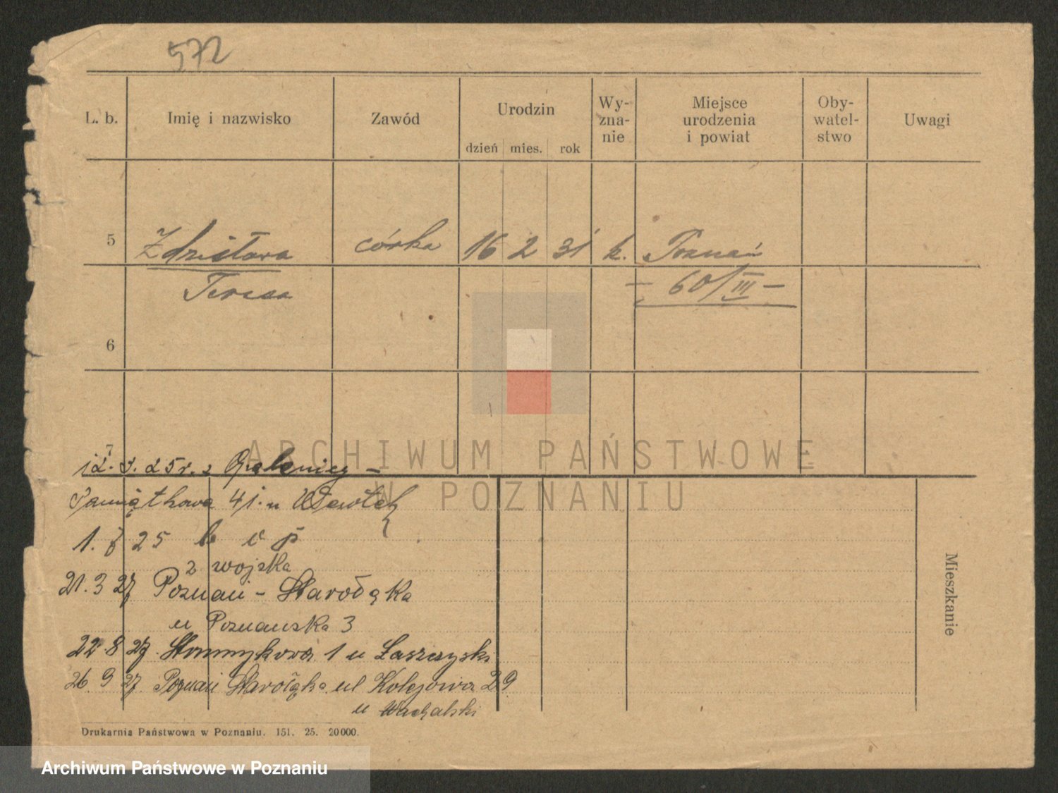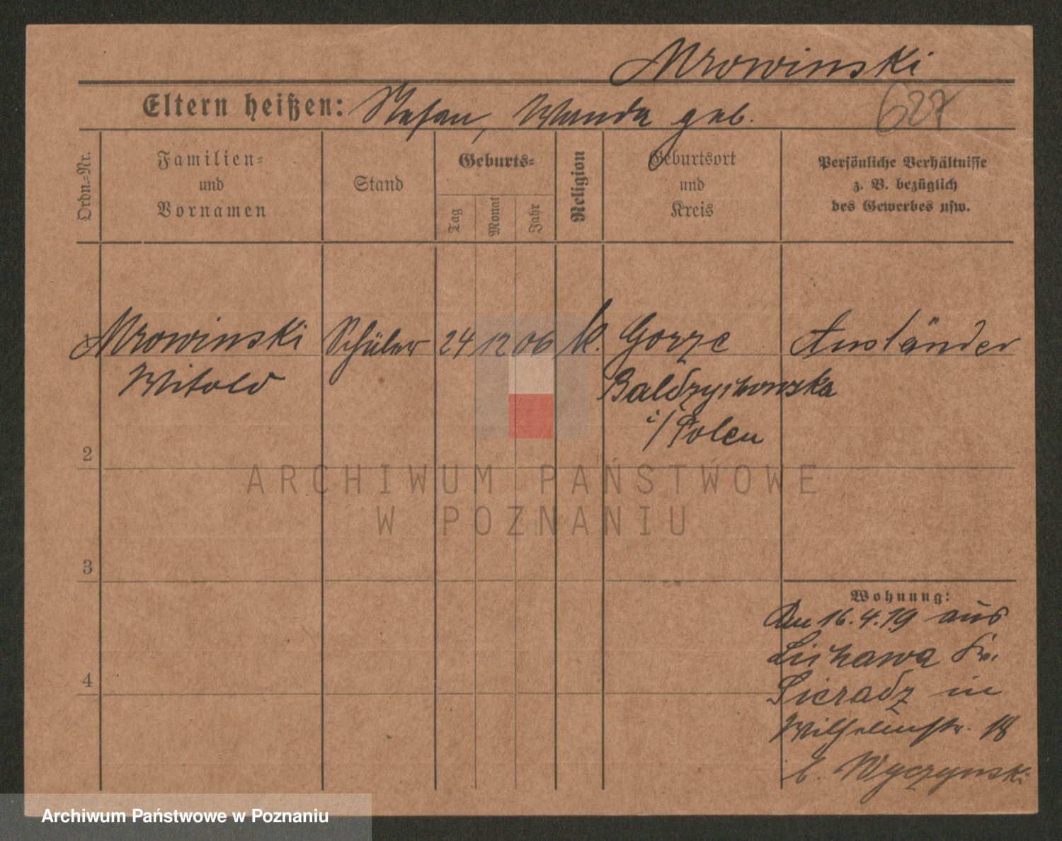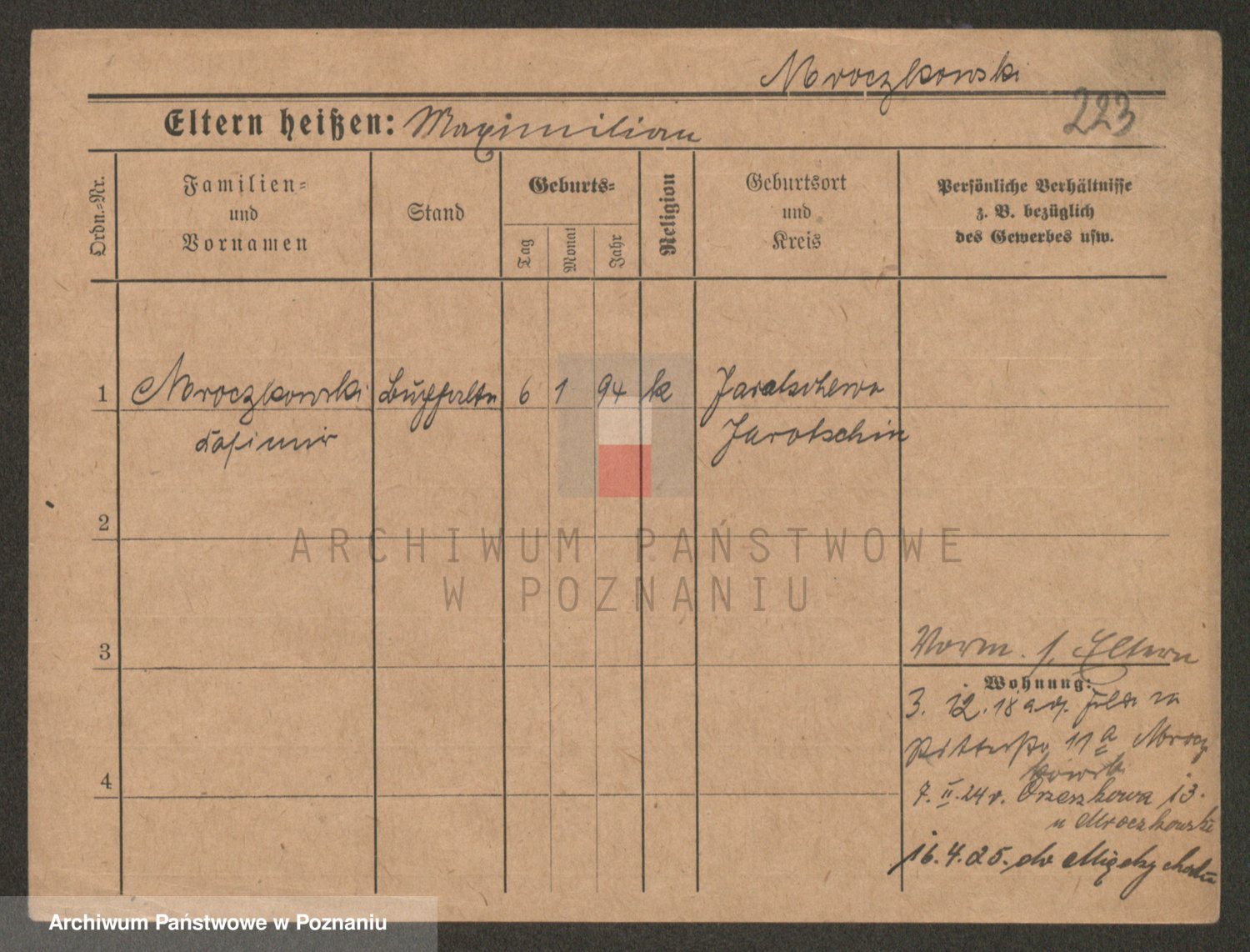 Podgląd karty osobowej dostępny jest po kliknięciu na nazwisko lub ikonkę karty. Można dokonywać powiększenia (ikony na górze) lub przechodzić między kolejnymi skanami (strzałki po bokach).