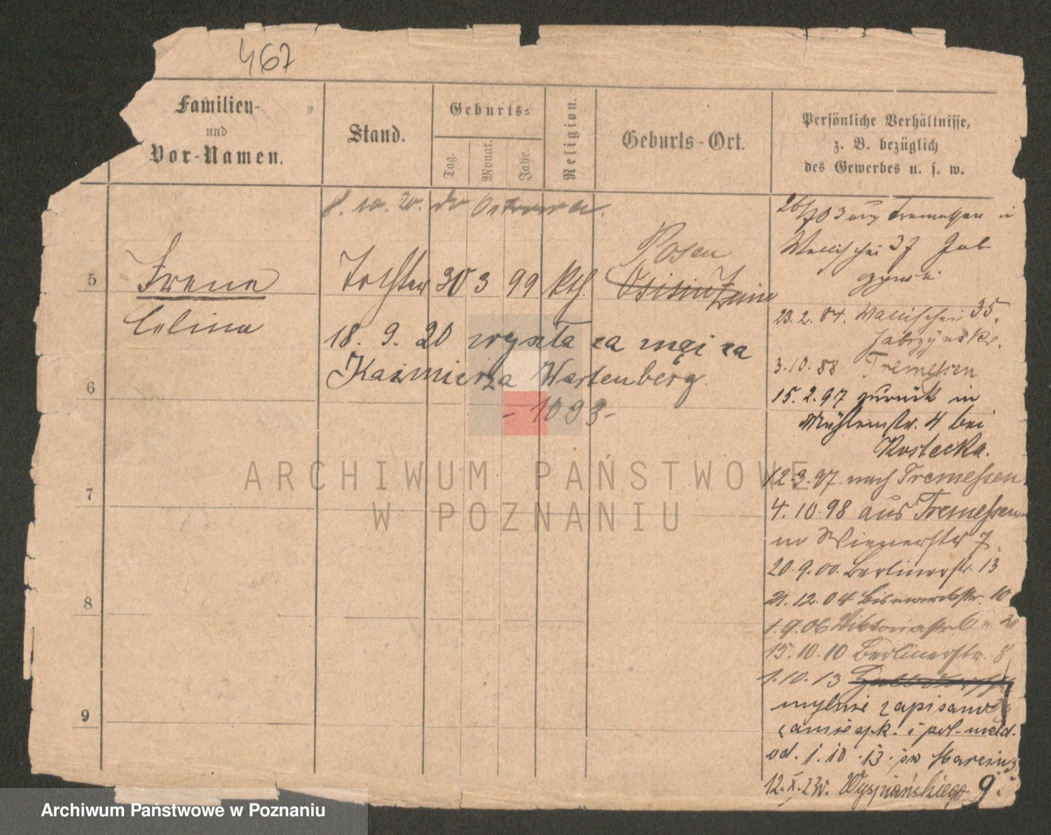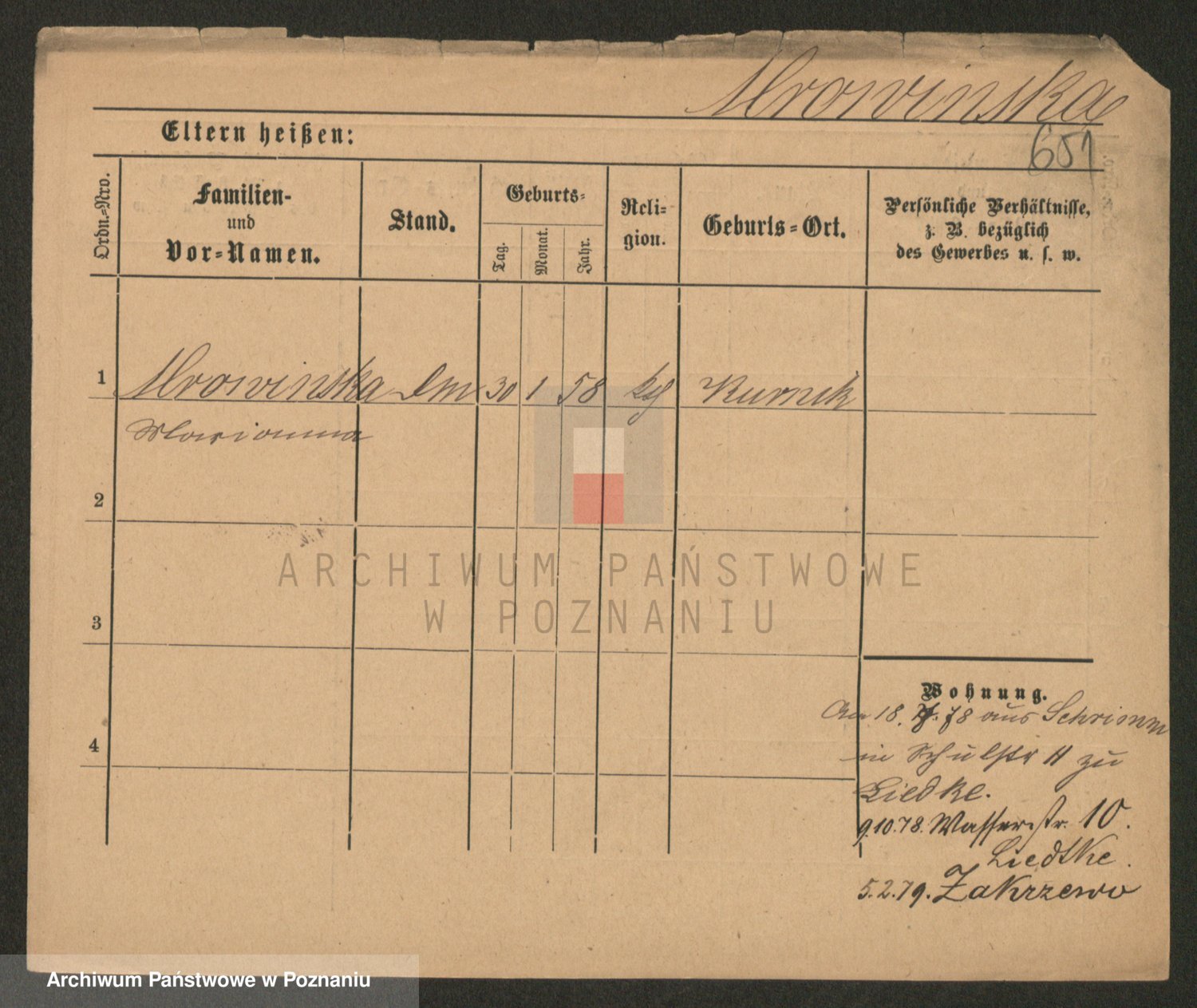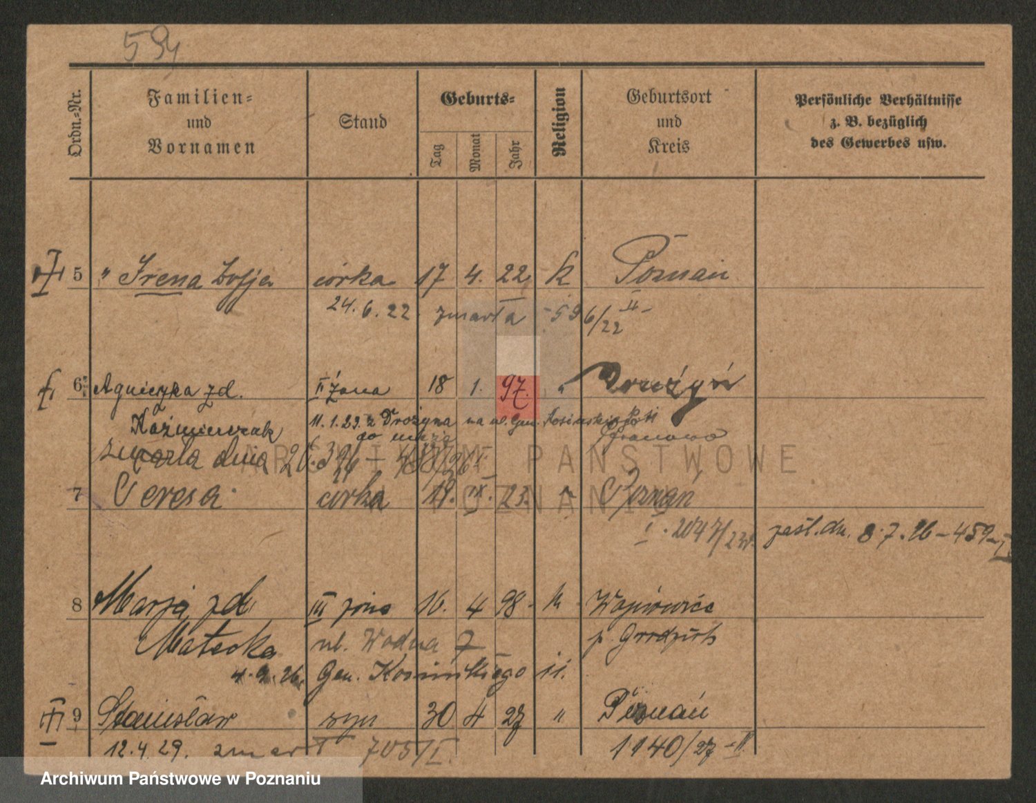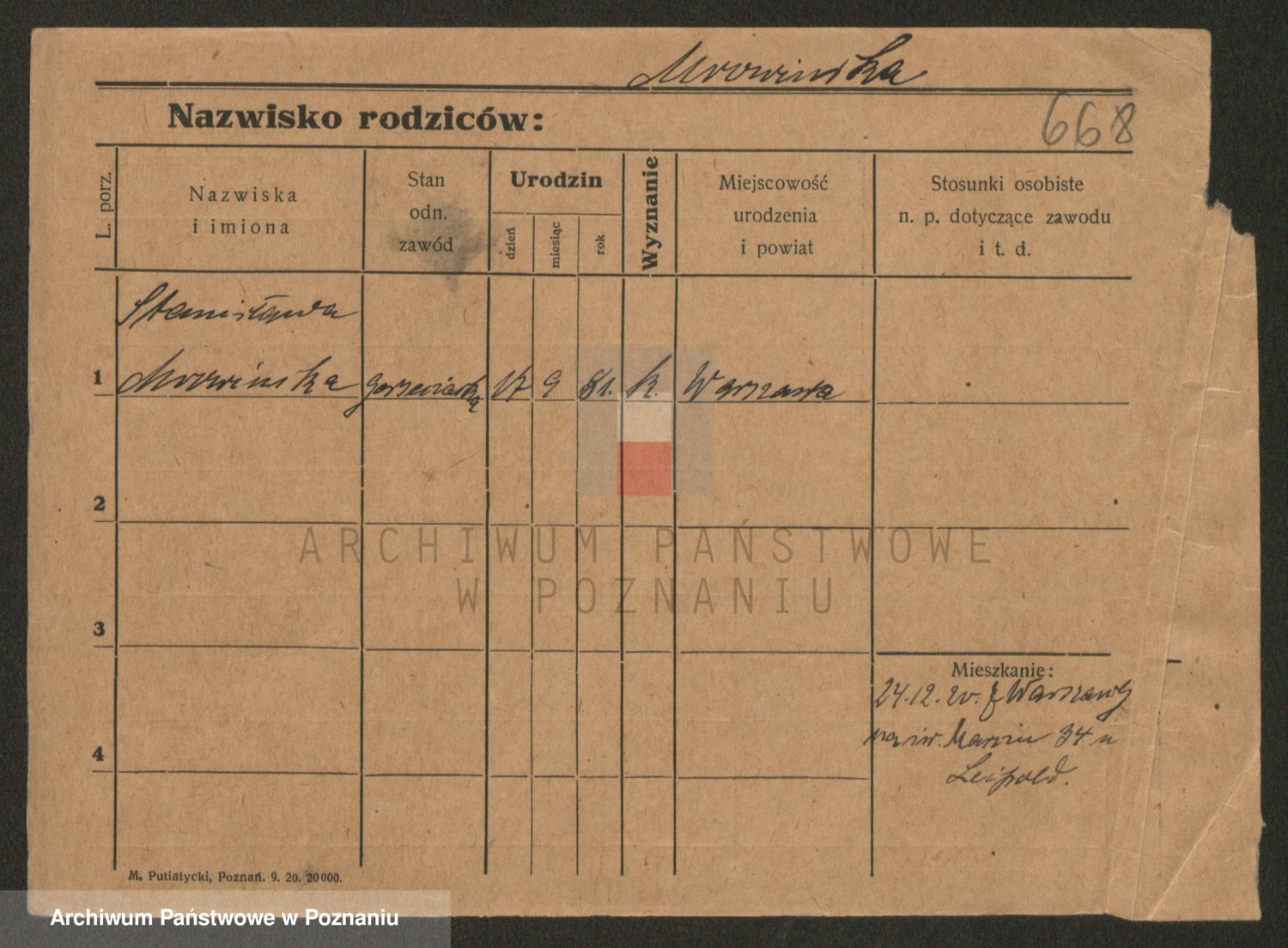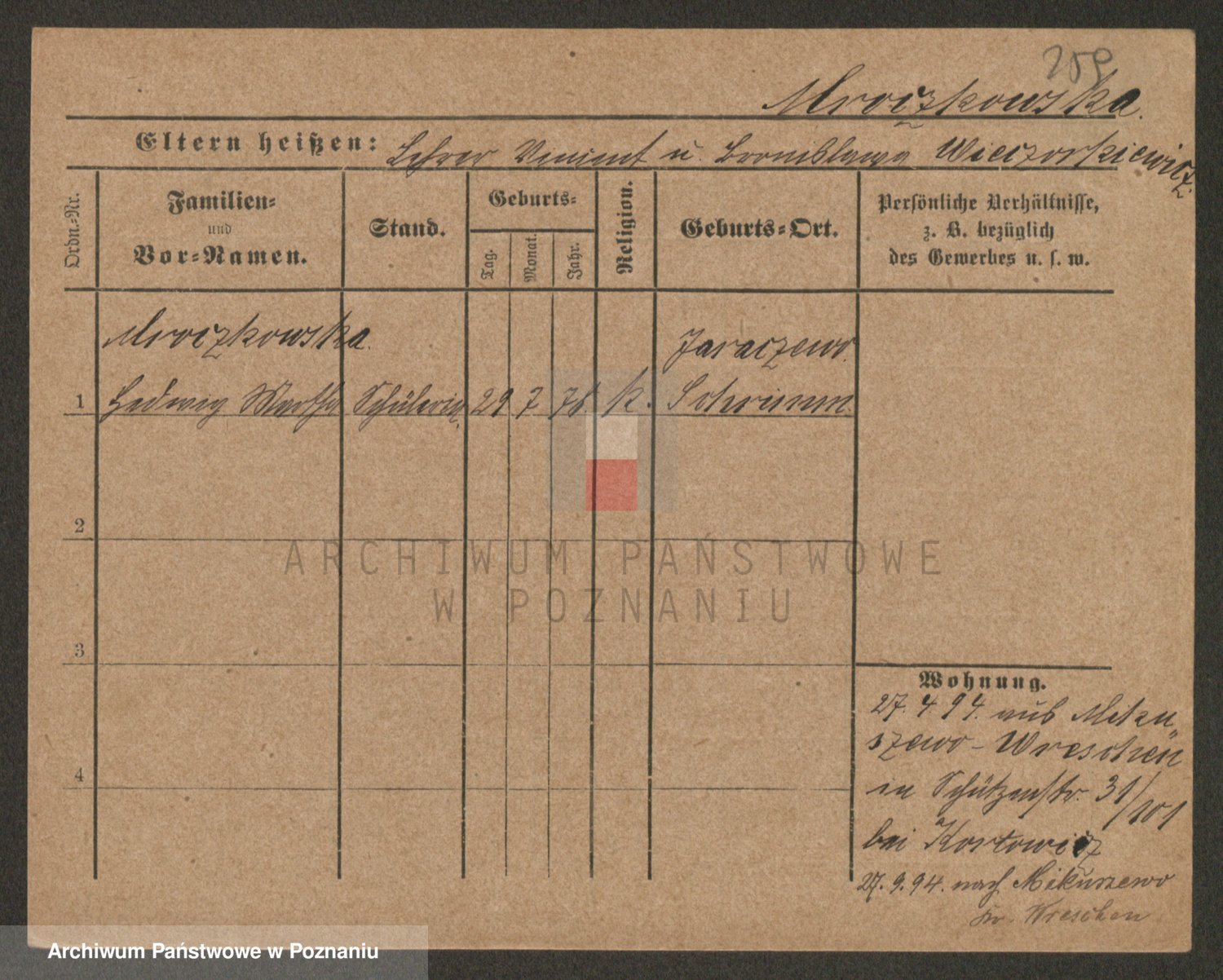 Podgląd karty osobowej dostępny jest po kliknięciu na nazwisko lub ikonkę karty. Można dokonywać powiększenia (ikony na górze) lub przechodzić między kolejnymi skanami (strzałki po bokach).