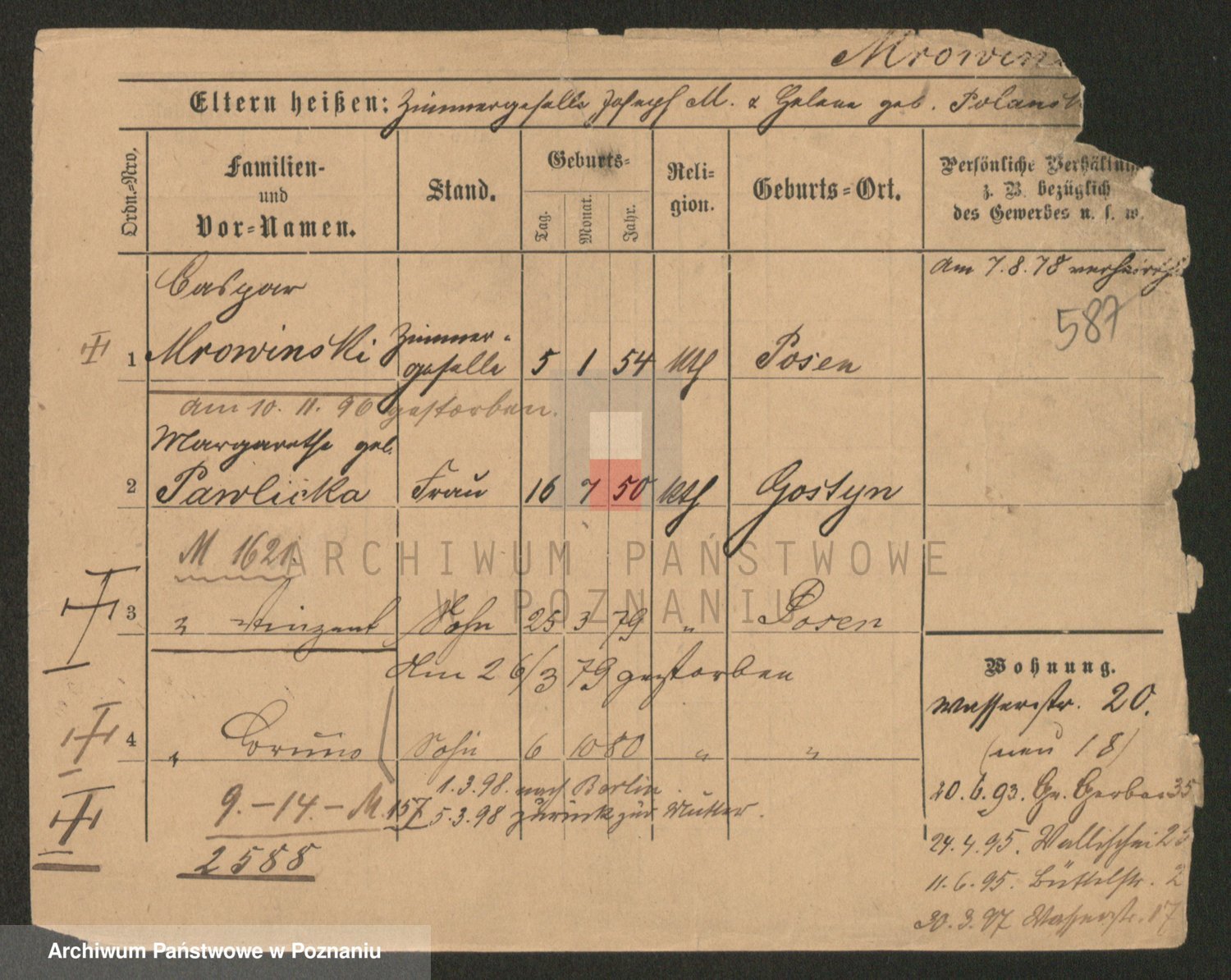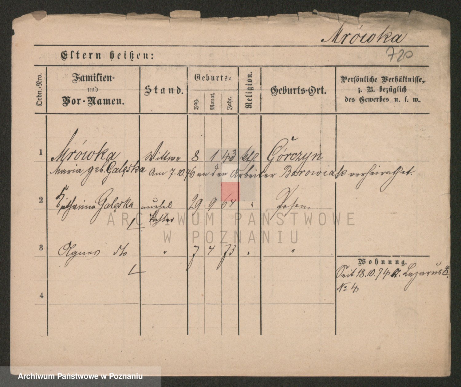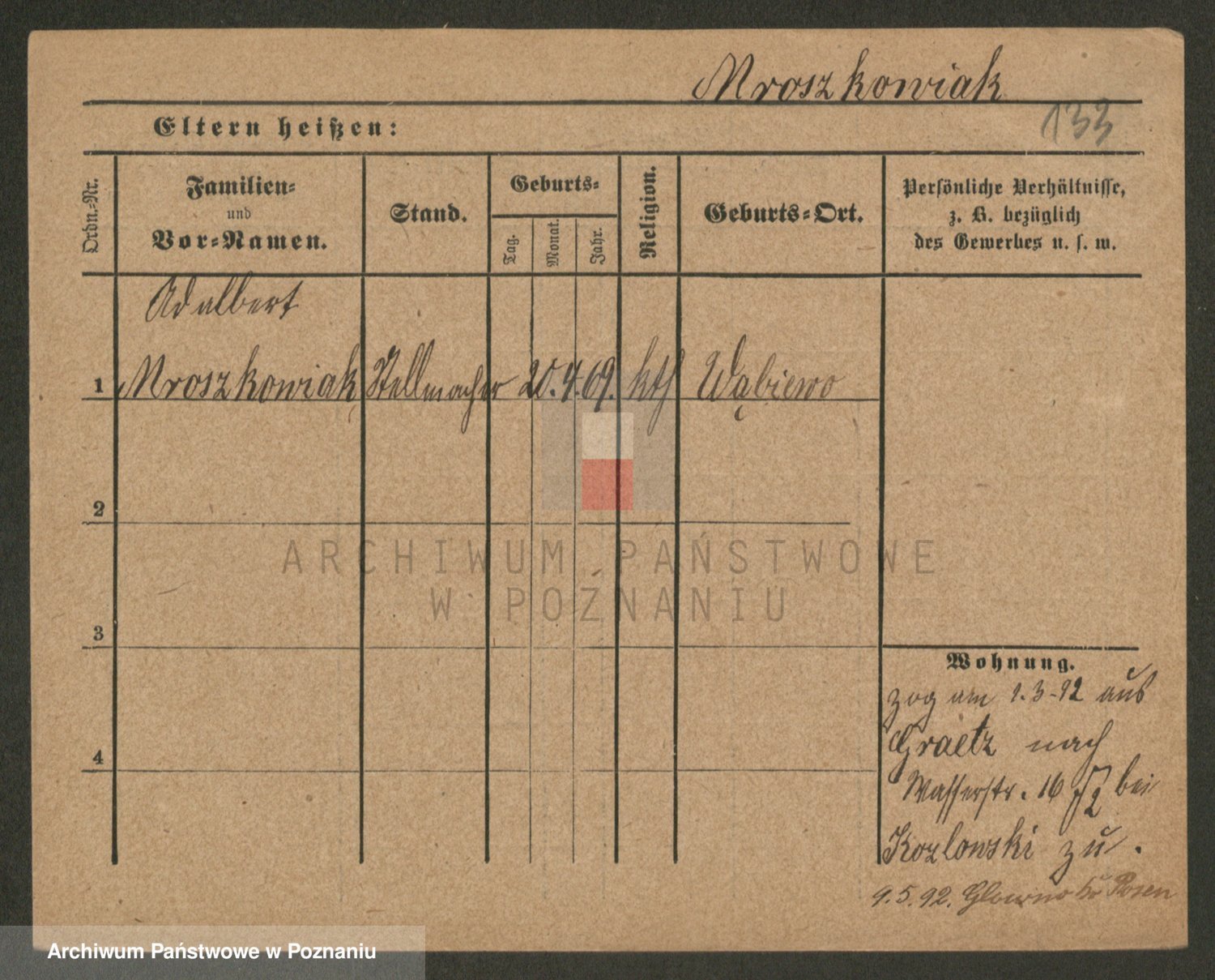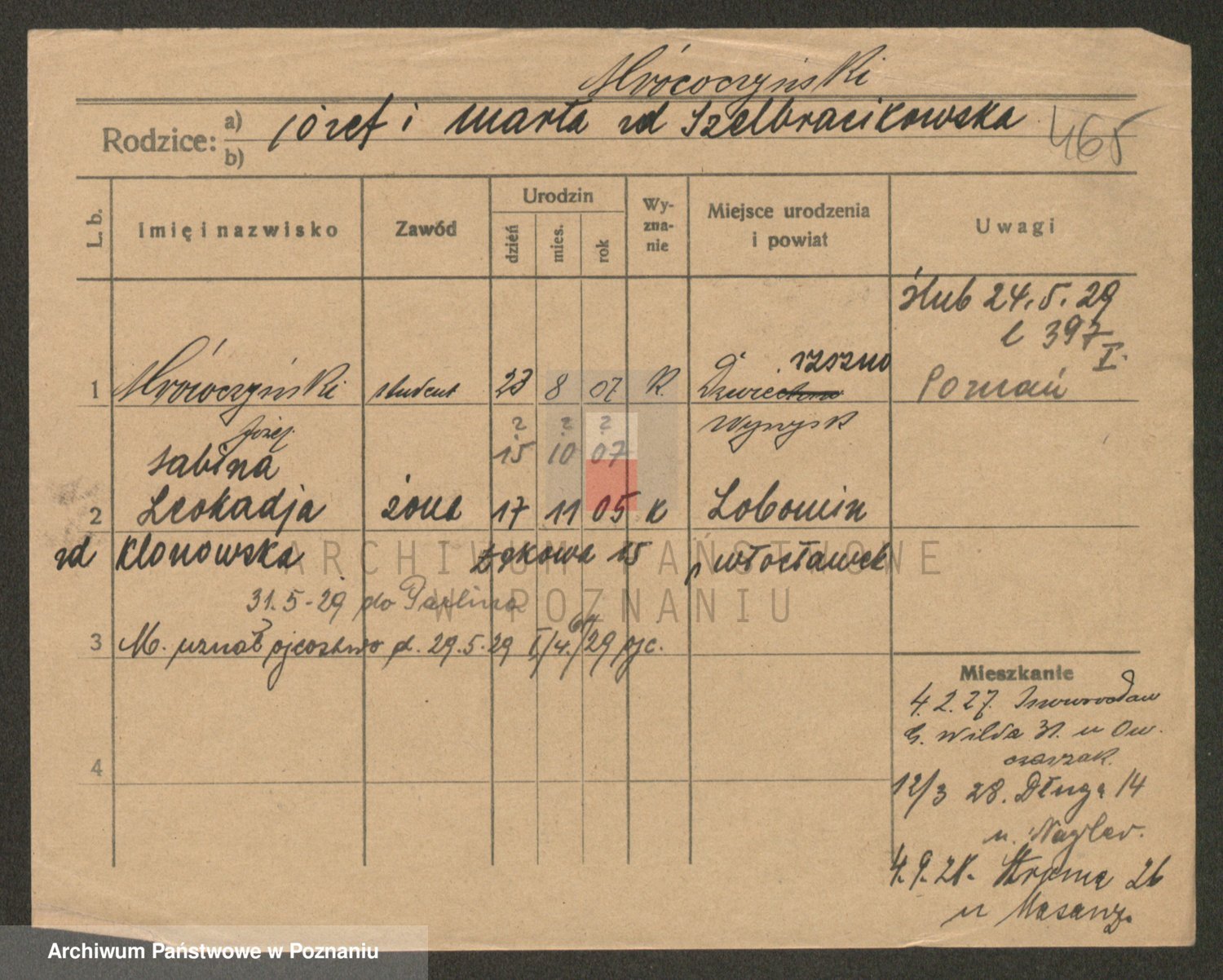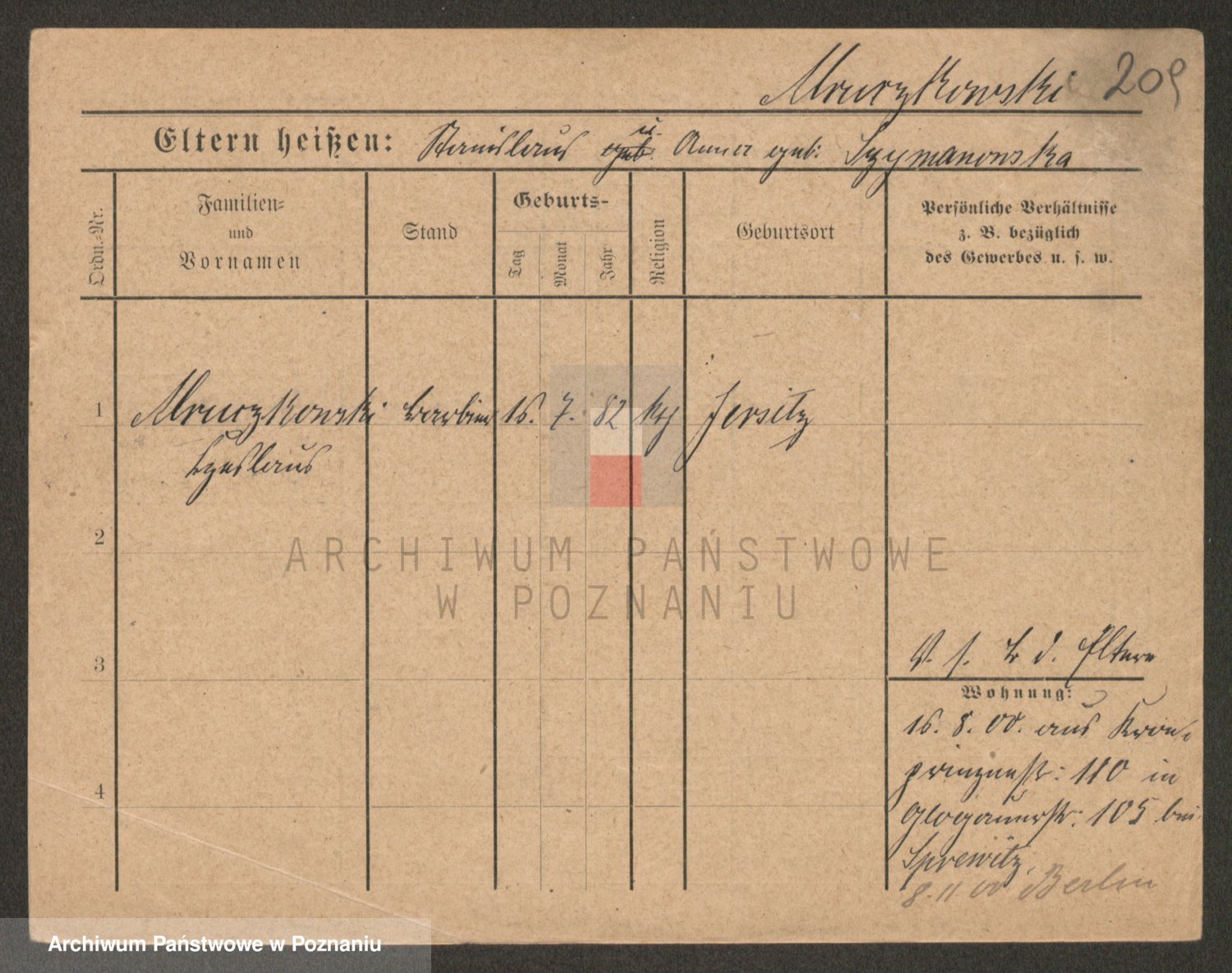 Podgląd karty osobowej dostępny jest po kliknięciu na nazwisko lub ikonkę karty. Można dokonywać powiększenia (ikony na górze) lub przechodzić między kolejnymi skanami (strzałki po bokach).