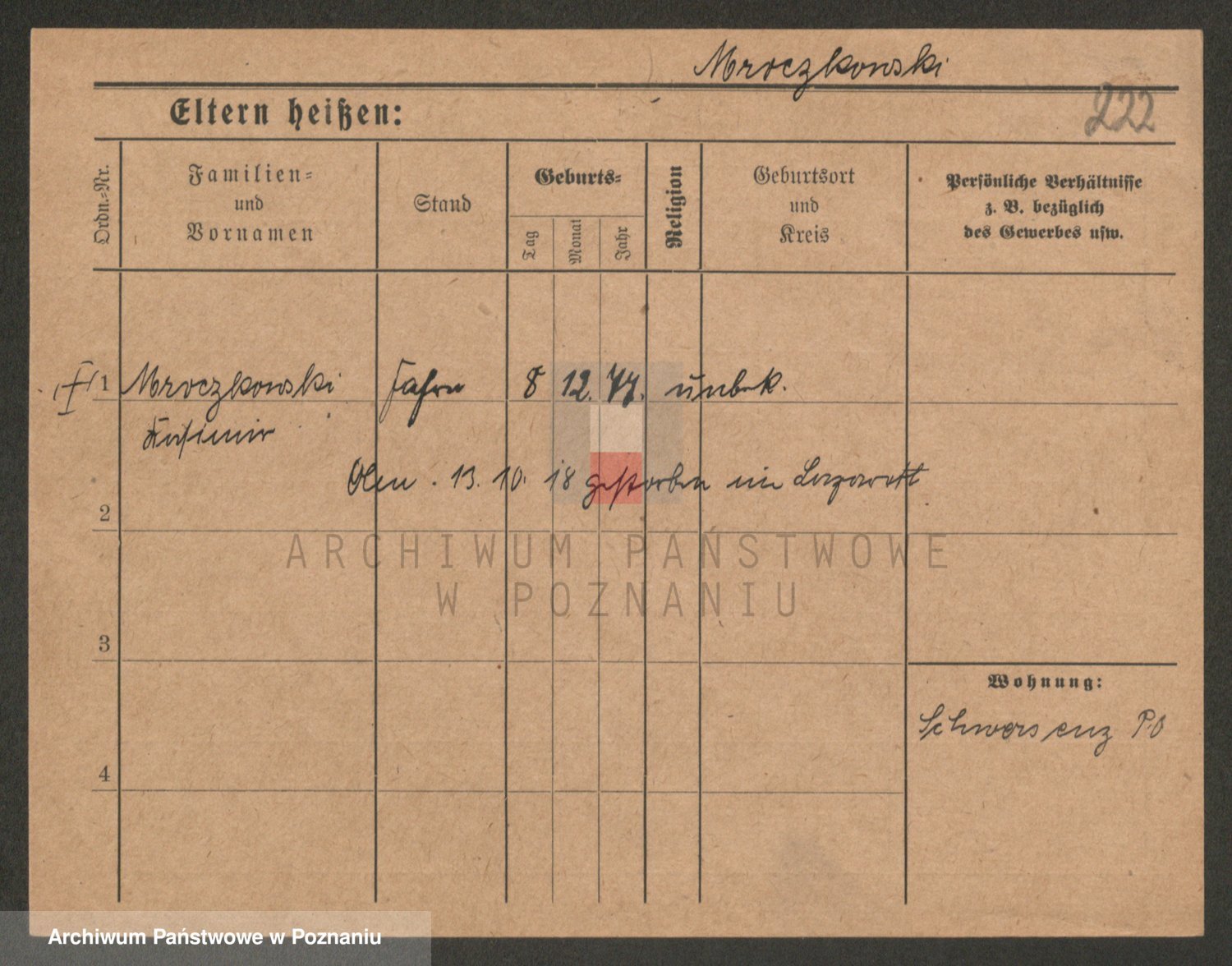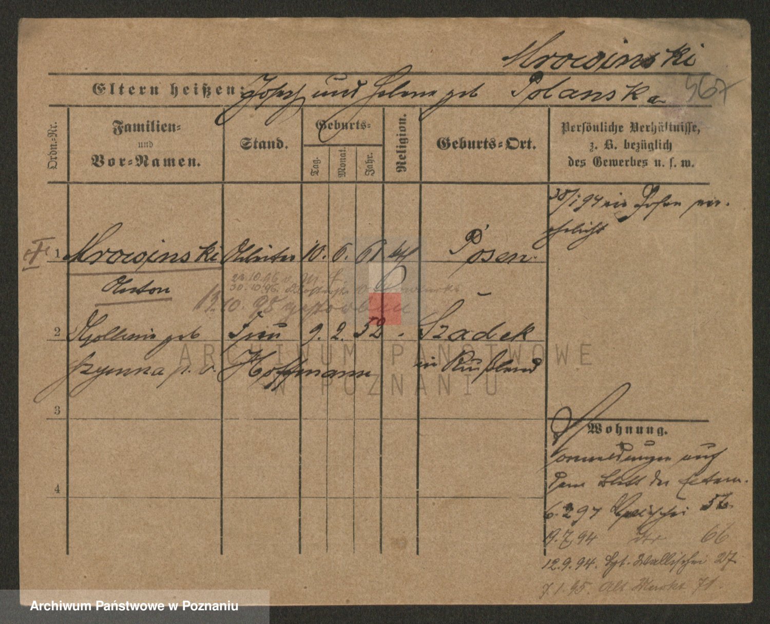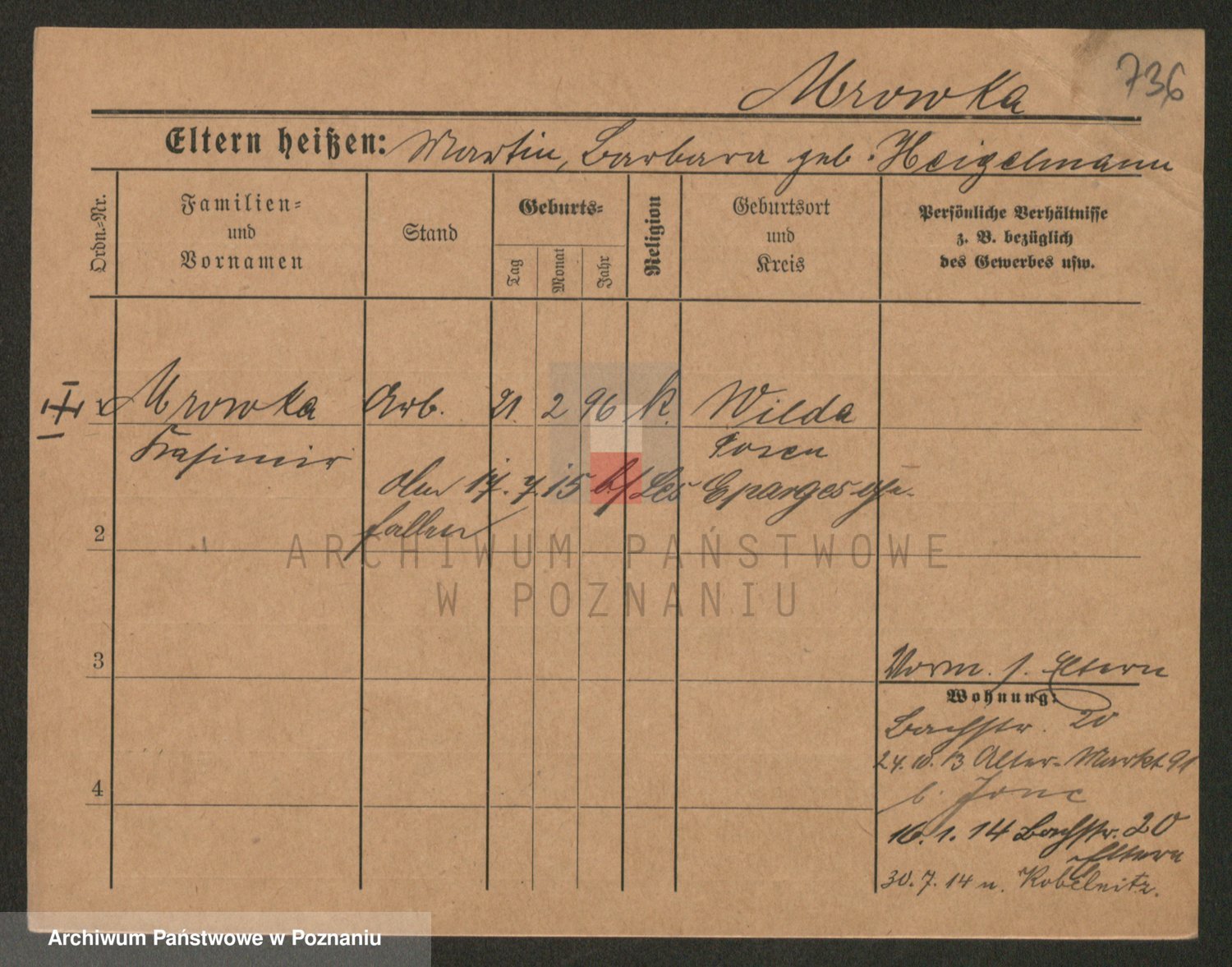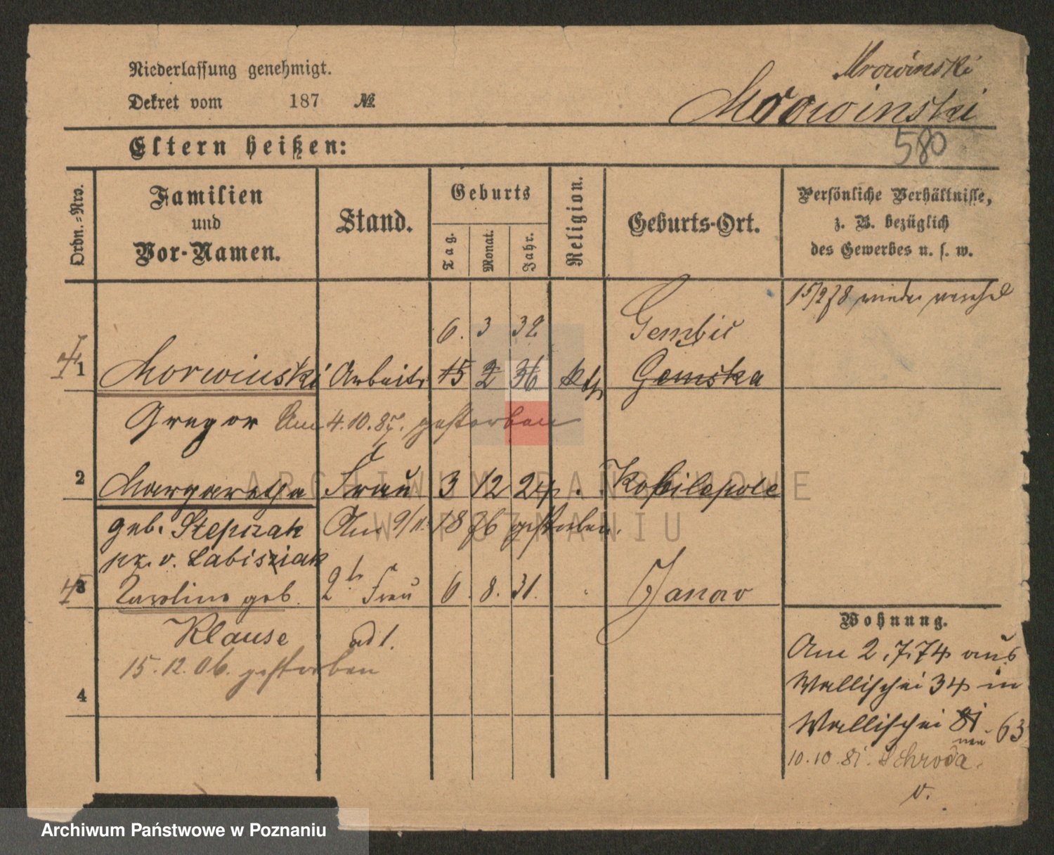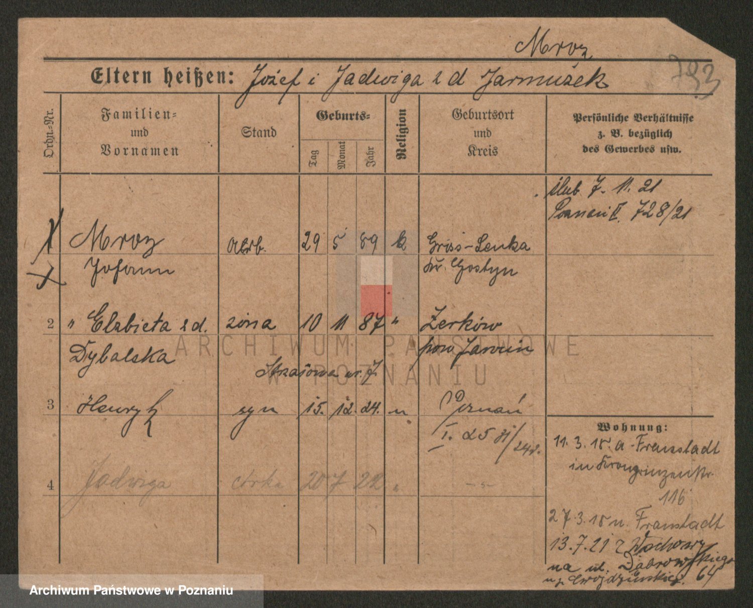 Podgląd karty osobowej dostępny jest po kliknięciu na nazwisko lub ikonkę karty. Można dokonywać powiększenia (ikony na górze) lub przechodzić między kolejnymi skanami (strzałki po bokach).