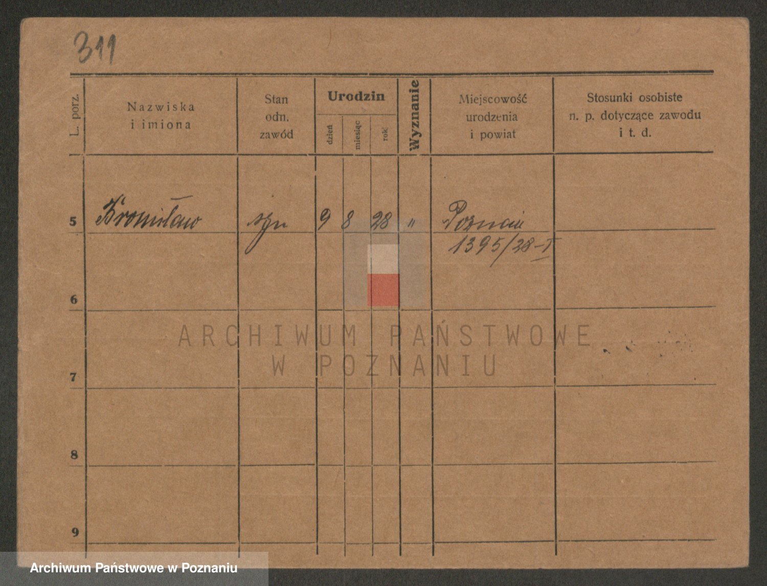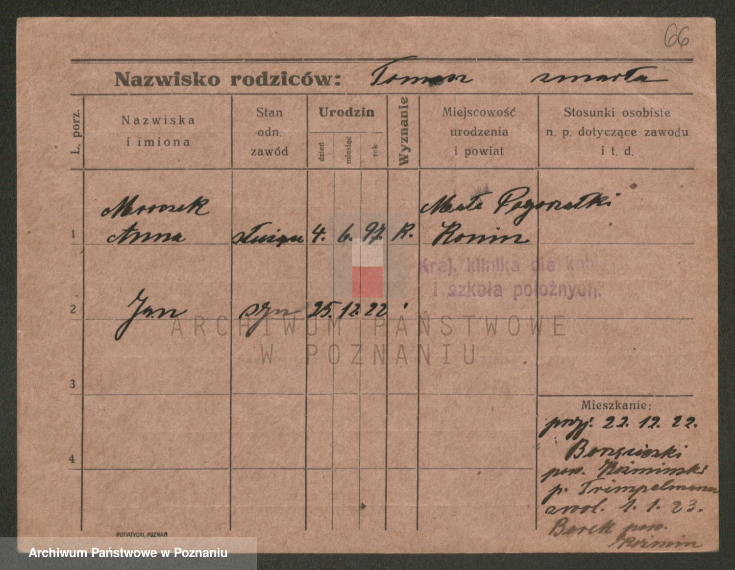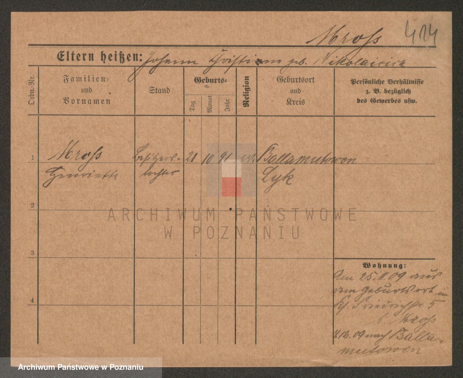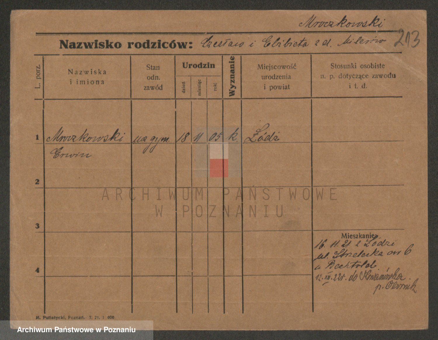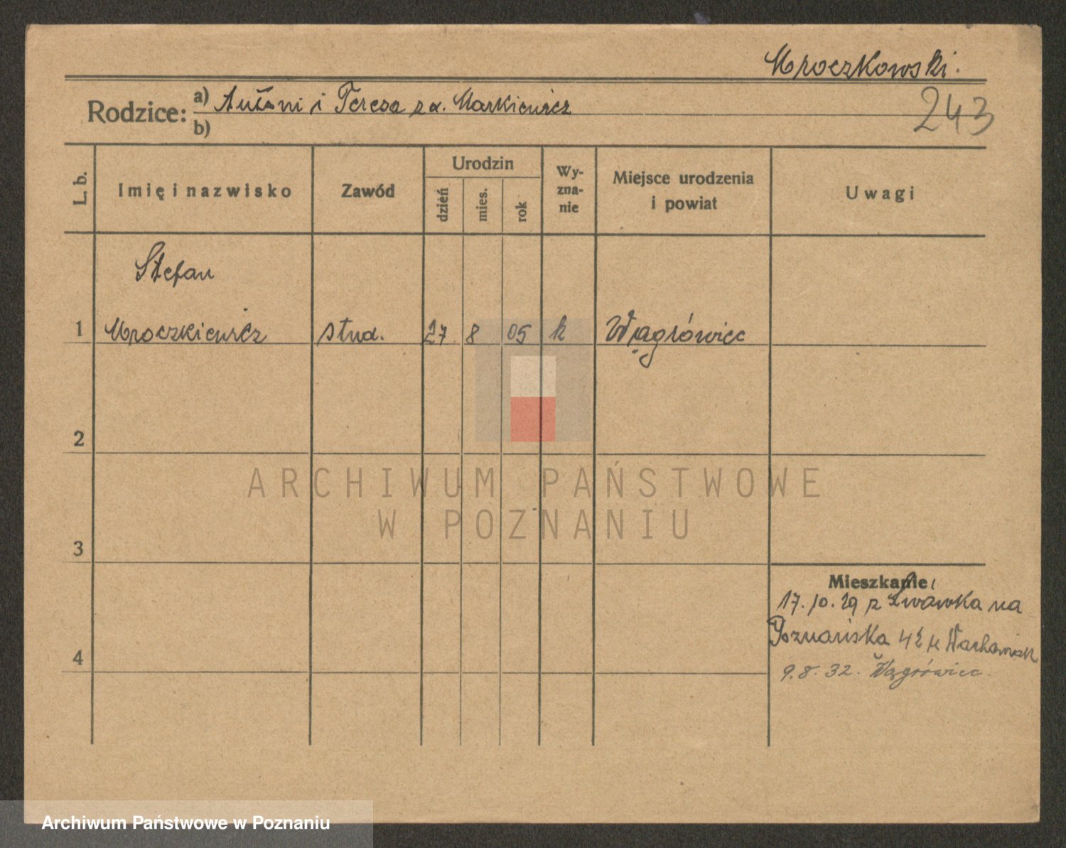 Podgląd karty osobowej dostępny jest po kliknięciu na nazwisko lub ikonkę karty. Można dokonywać powiększenia (ikony na górze) lub przechodzić między kolejnymi skanami (strzałki po bokach).