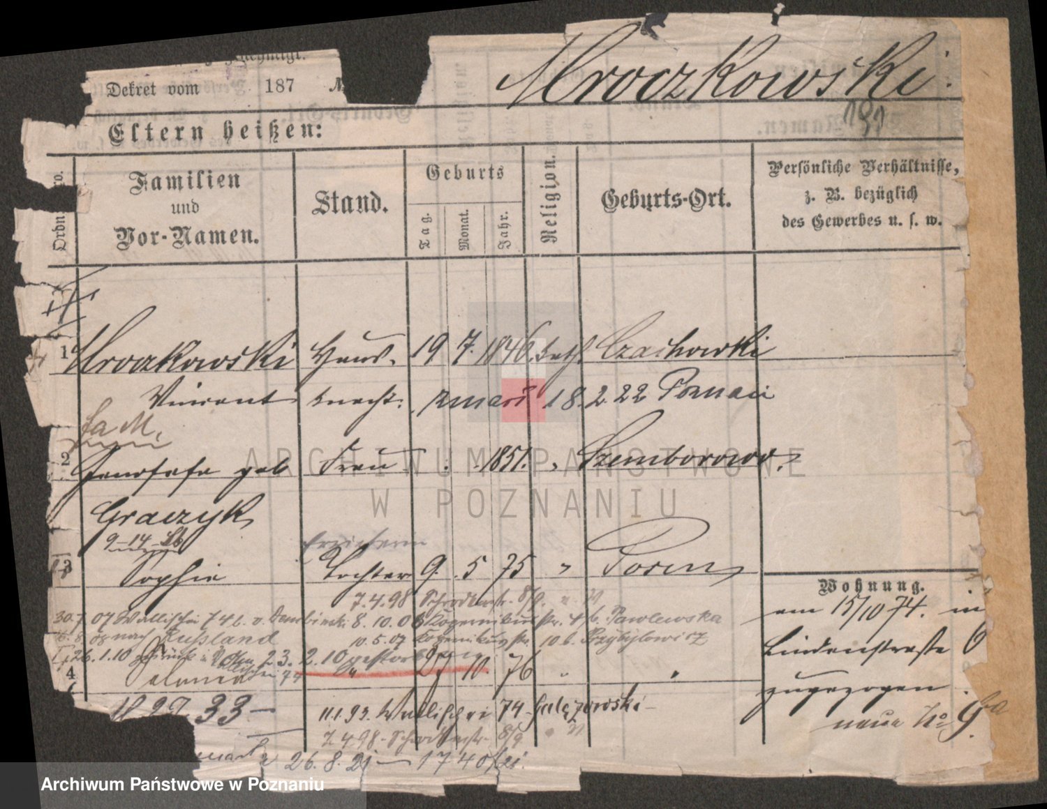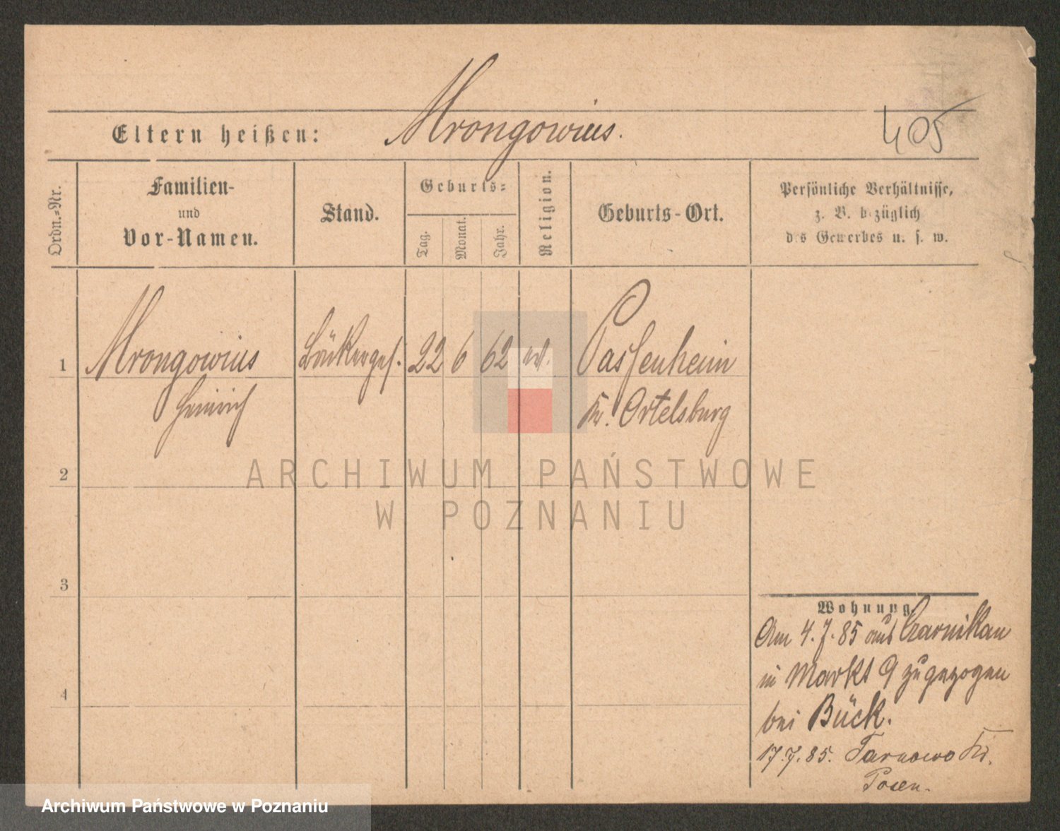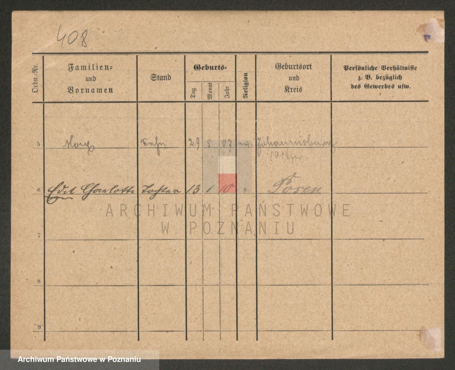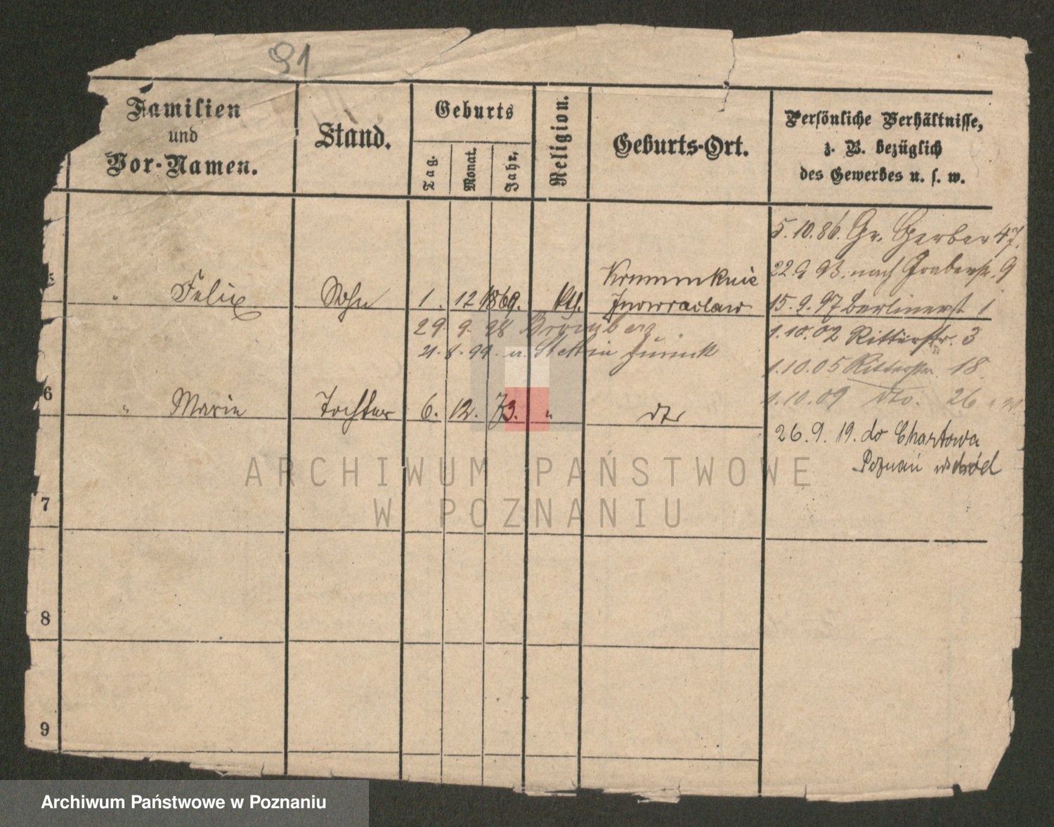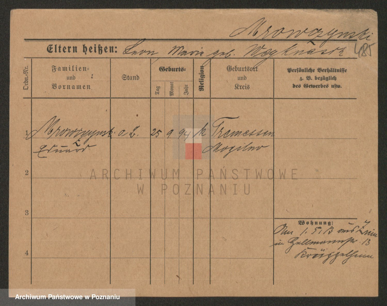 Podgląd karty osobowej dostępny jest po kliknięciu na nazwisko lub ikonkę karty. Można dokonywać powiększenia (ikony na górze) lub przechodzić między kolejnymi skanami (strzałki po bokach).