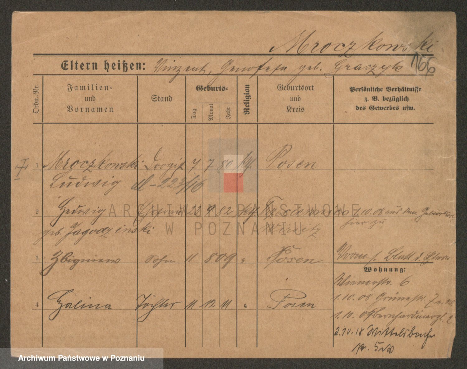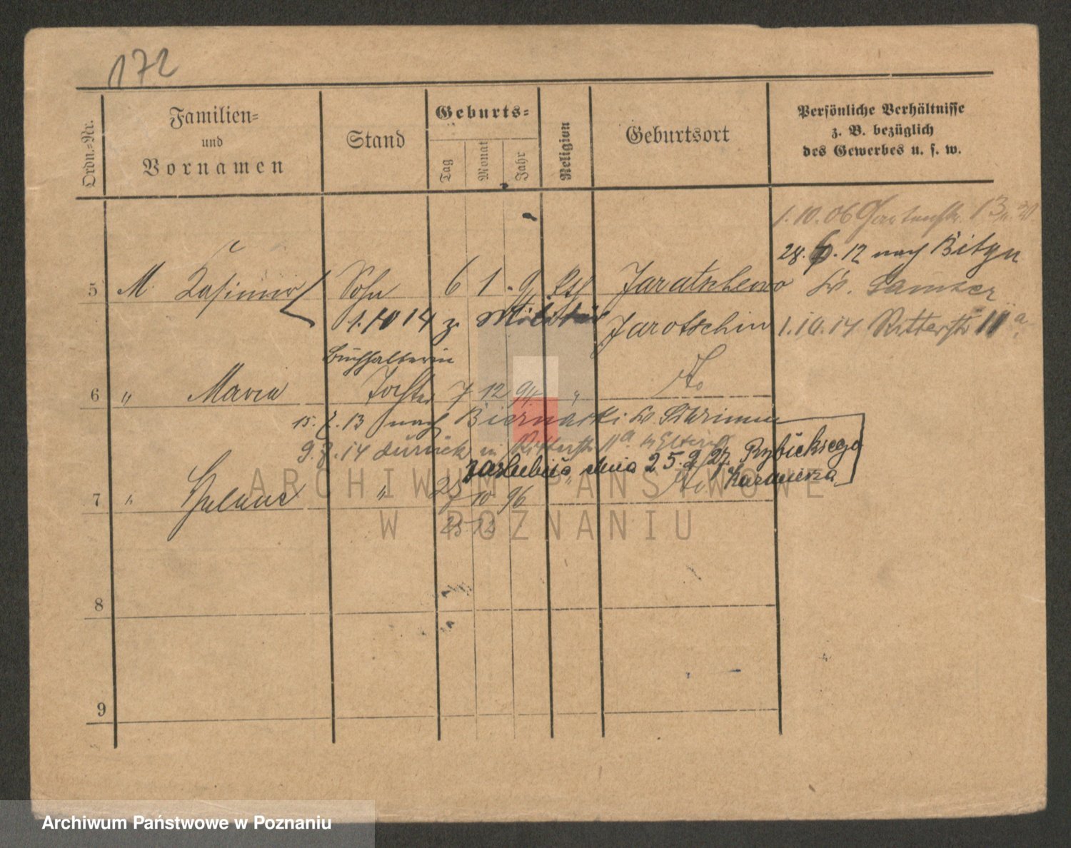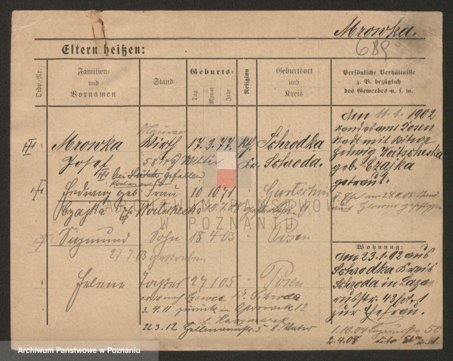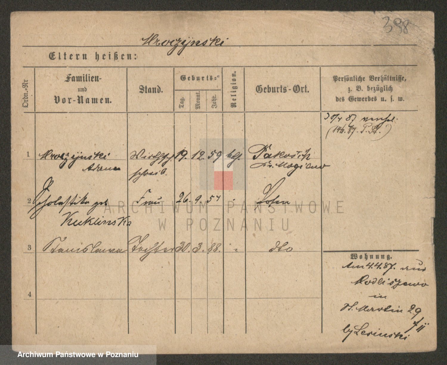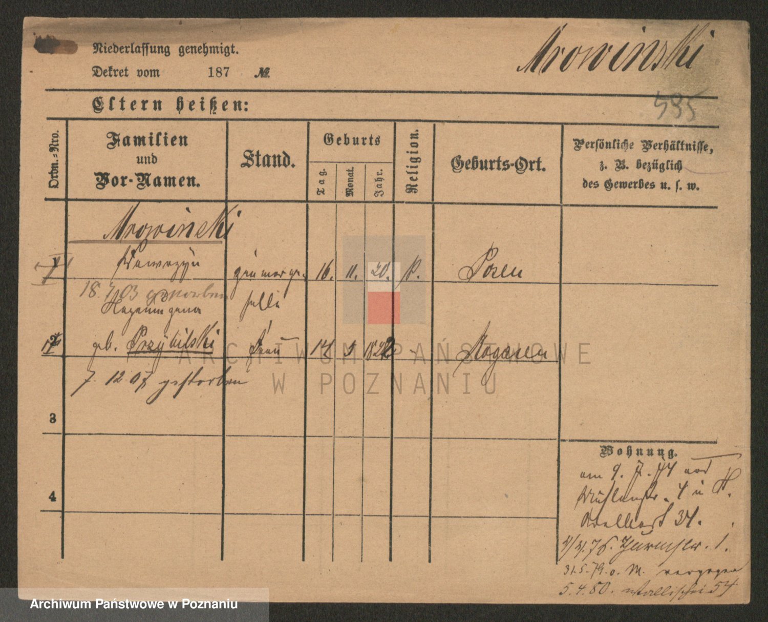 Podgląd karty osobowej dostępny jest po kliknięciu na nazwisko lub ikonkę karty. Można dokonywać powiększenia (ikony na górze) lub przechodzić między kolejnymi skanami (strzałki po bokach).