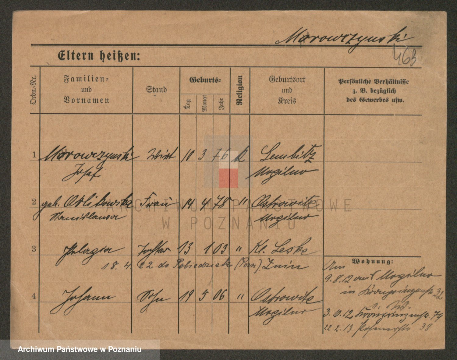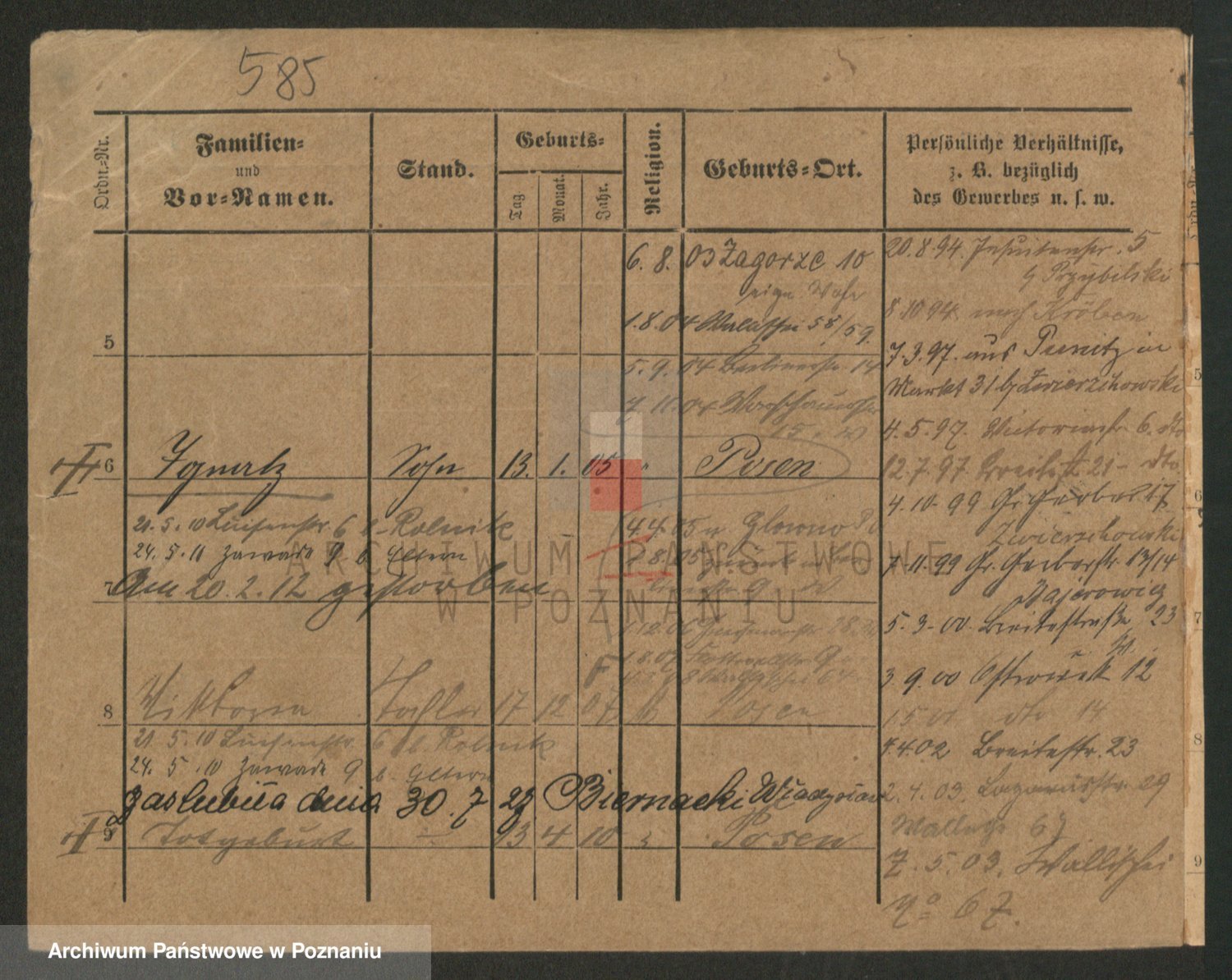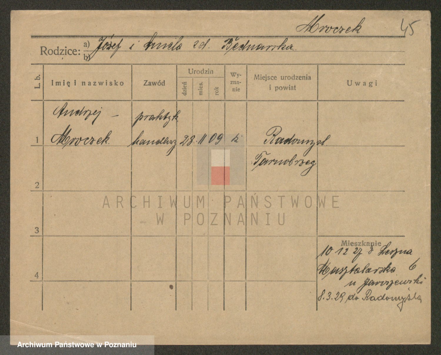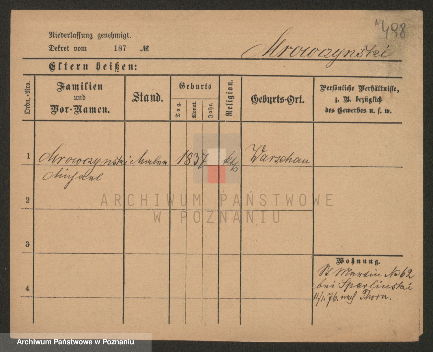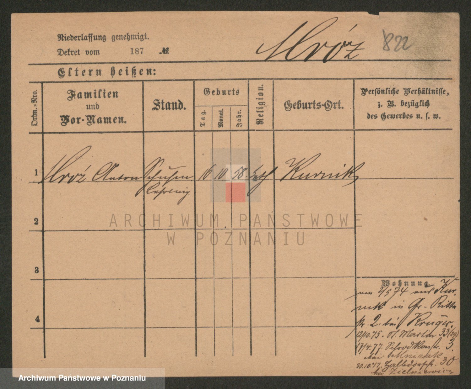 Podgląd karty osobowej dostępny jest po kliknięciu na nazwisko lub ikonkę karty. Można dokonywać powiększenia (ikony na górze) lub przechodzić między kolejnymi skanami (strzałki po bokach).
