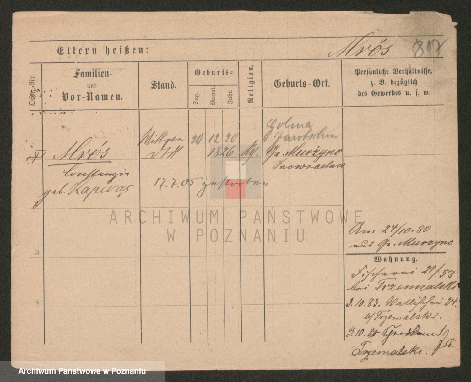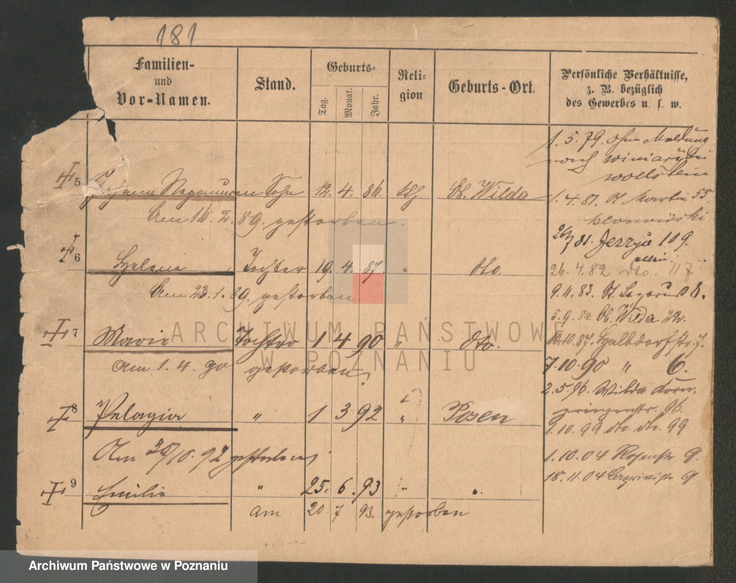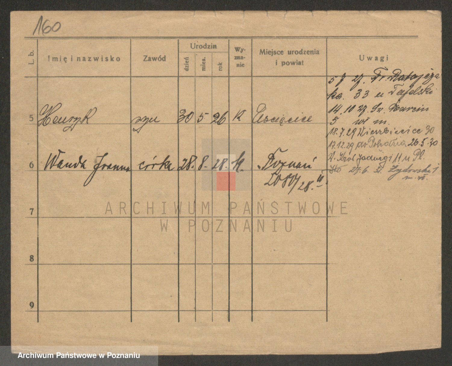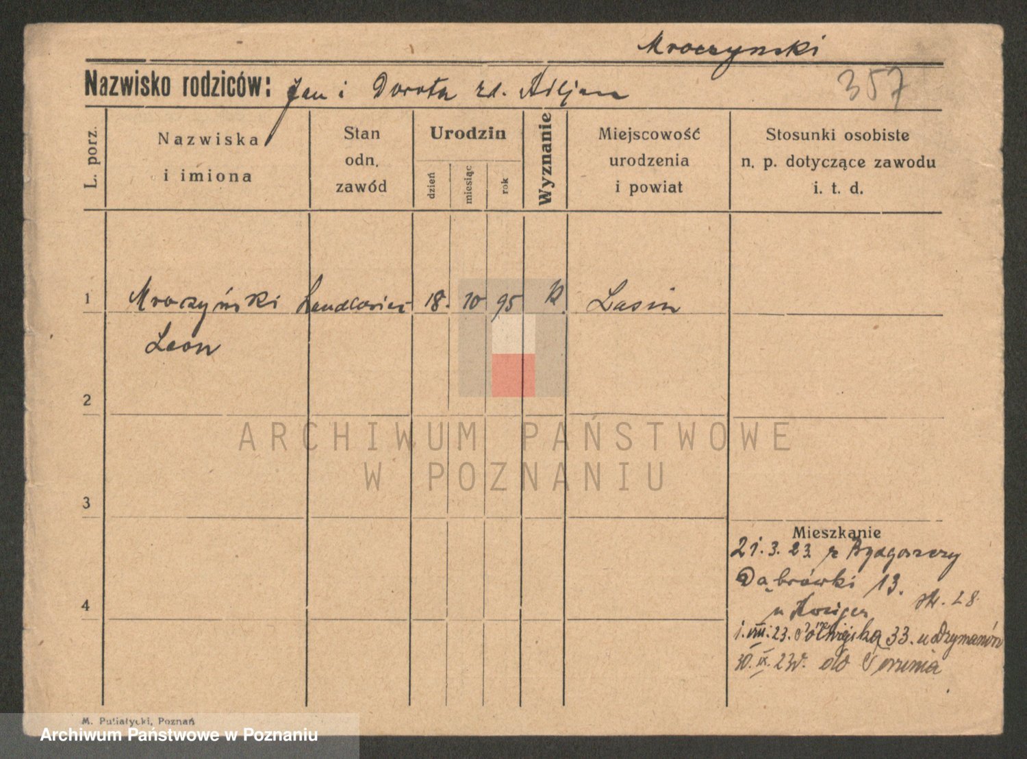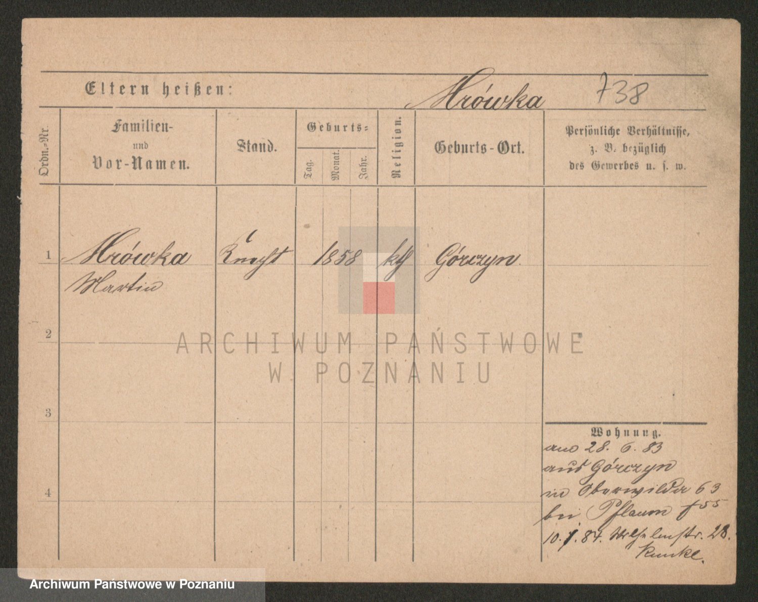 Podgląd karty osobowej dostępny jest po kliknięciu na nazwisko lub ikonkę karty. Można dokonywać powiększenia (ikony na górze) lub przechodzić między kolejnymi skanami (strzałki po bokach).