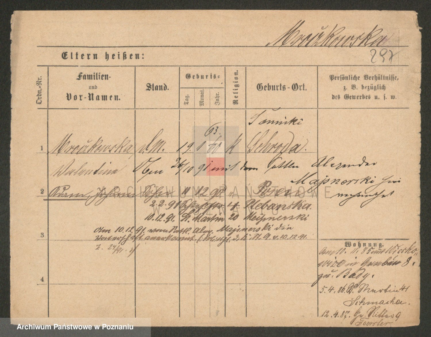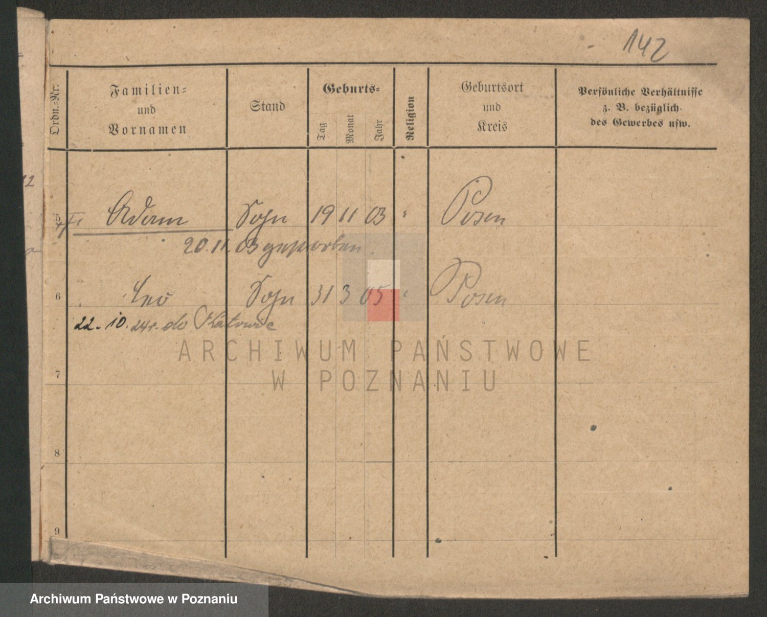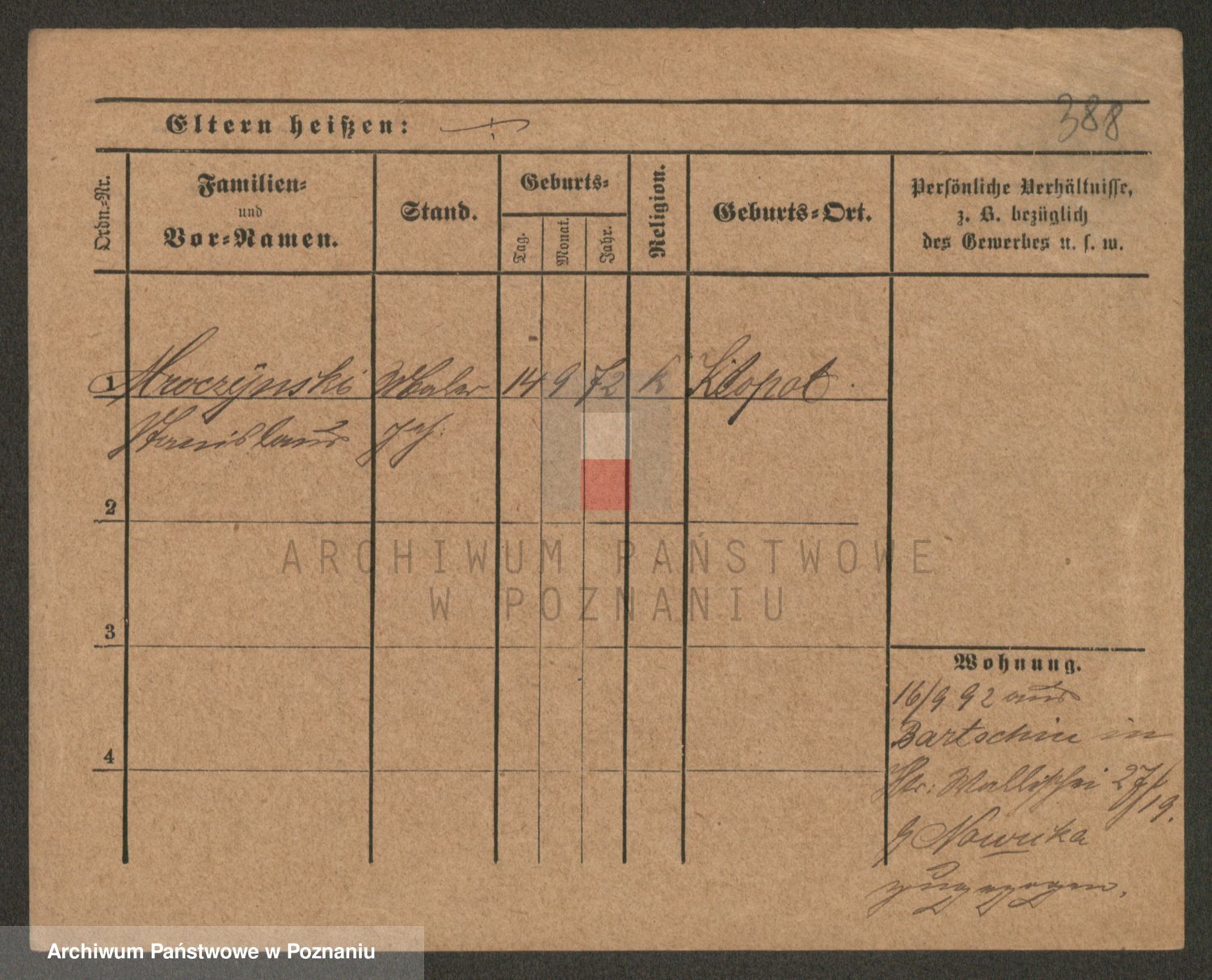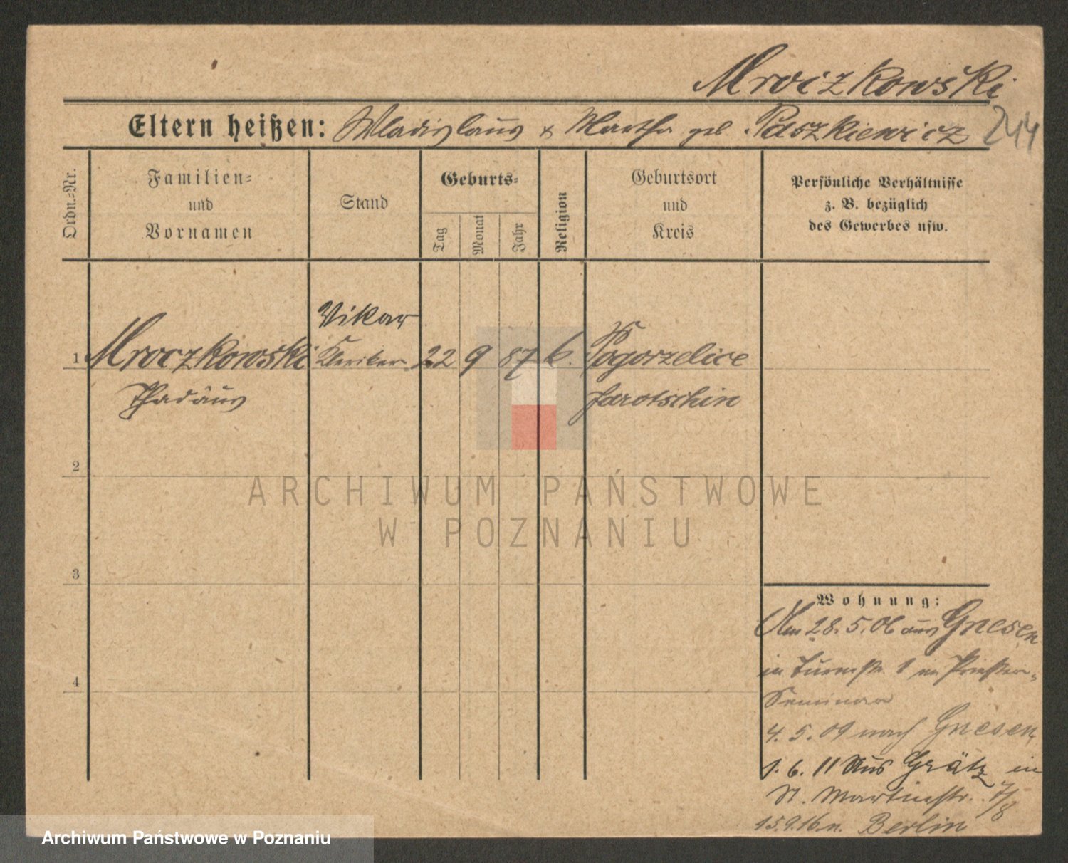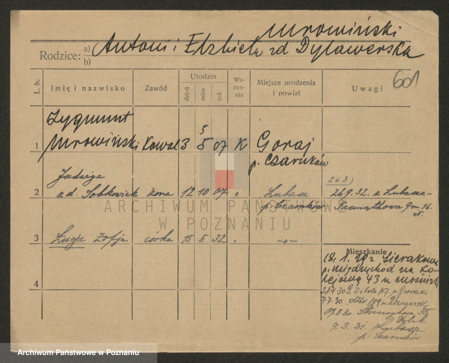 Podgląd karty osobowej dostępny jest po kliknięciu na nazwisko lub ikonkę karty. Można dokonywać powiększenia (ikony na górze) lub przechodzić między kolejnymi skanami (strzałki po bokach).