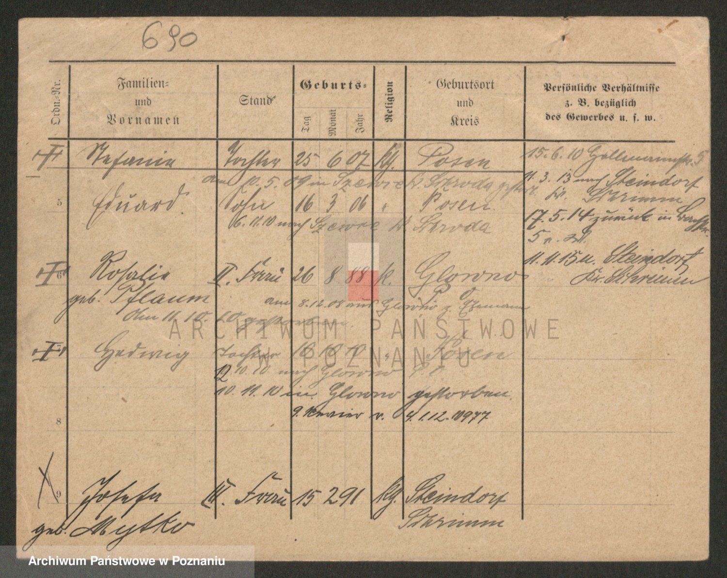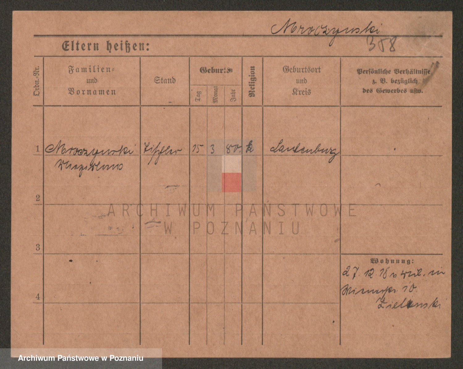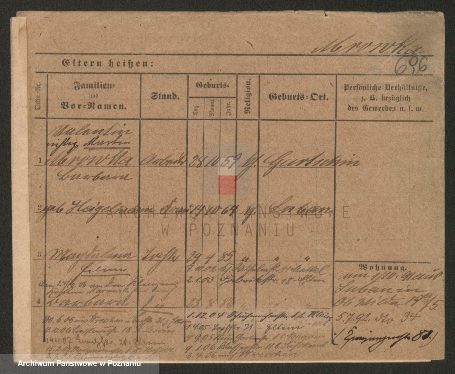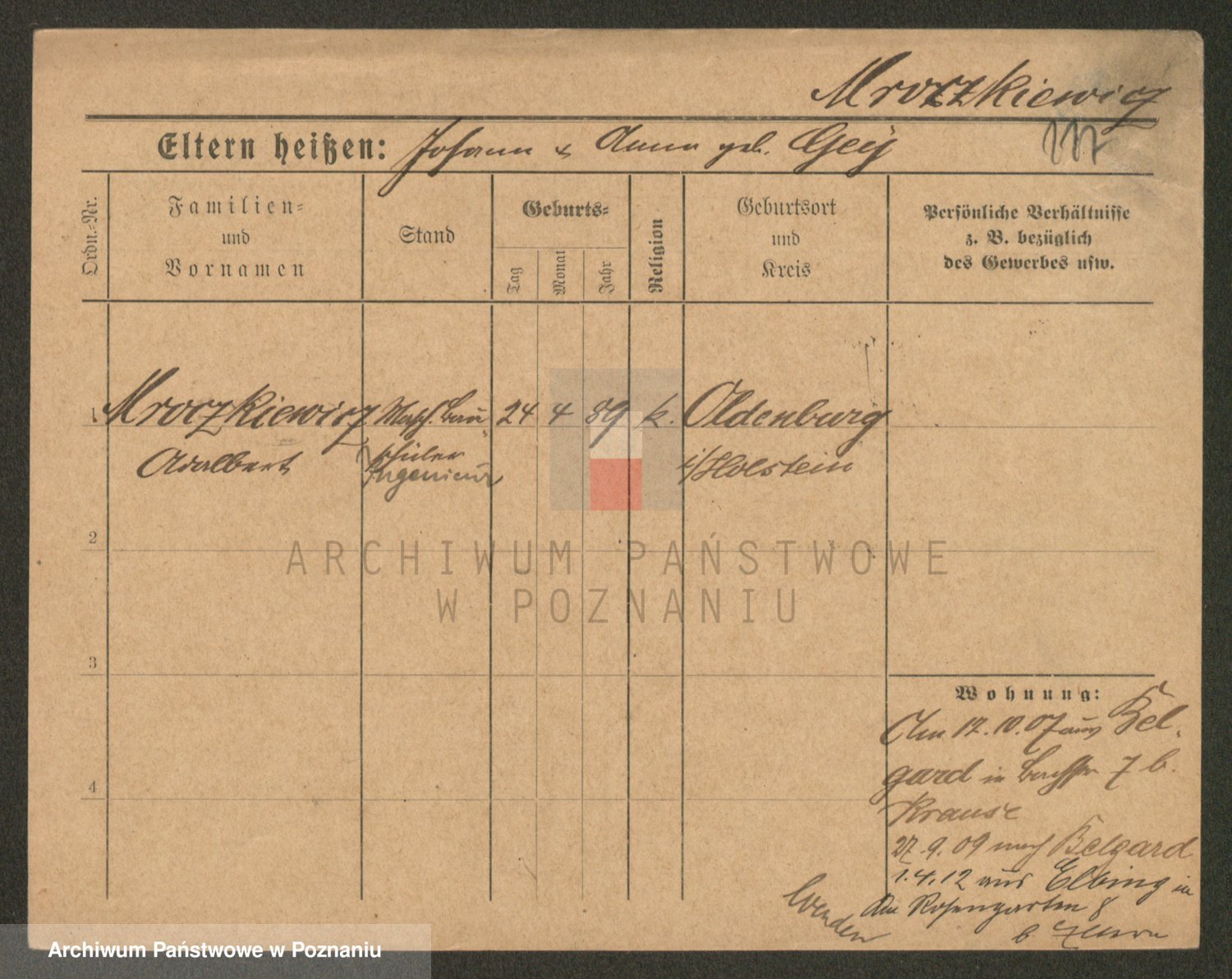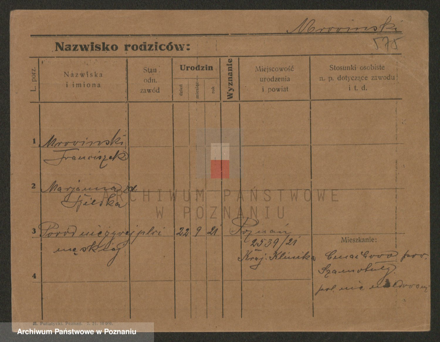 Podgląd karty osobowej dostępny jest po kliknięciu na nazwisko lub ikonkę karty. Można dokonywać powiększenia (ikony na górze) lub przechodzić między kolejnymi skanami (strzałki po bokach).