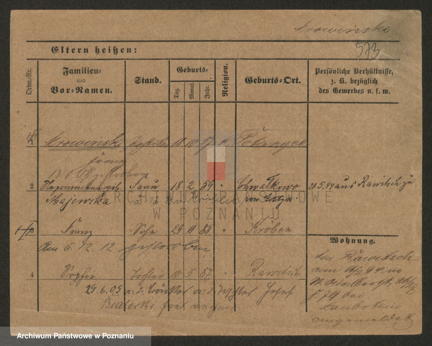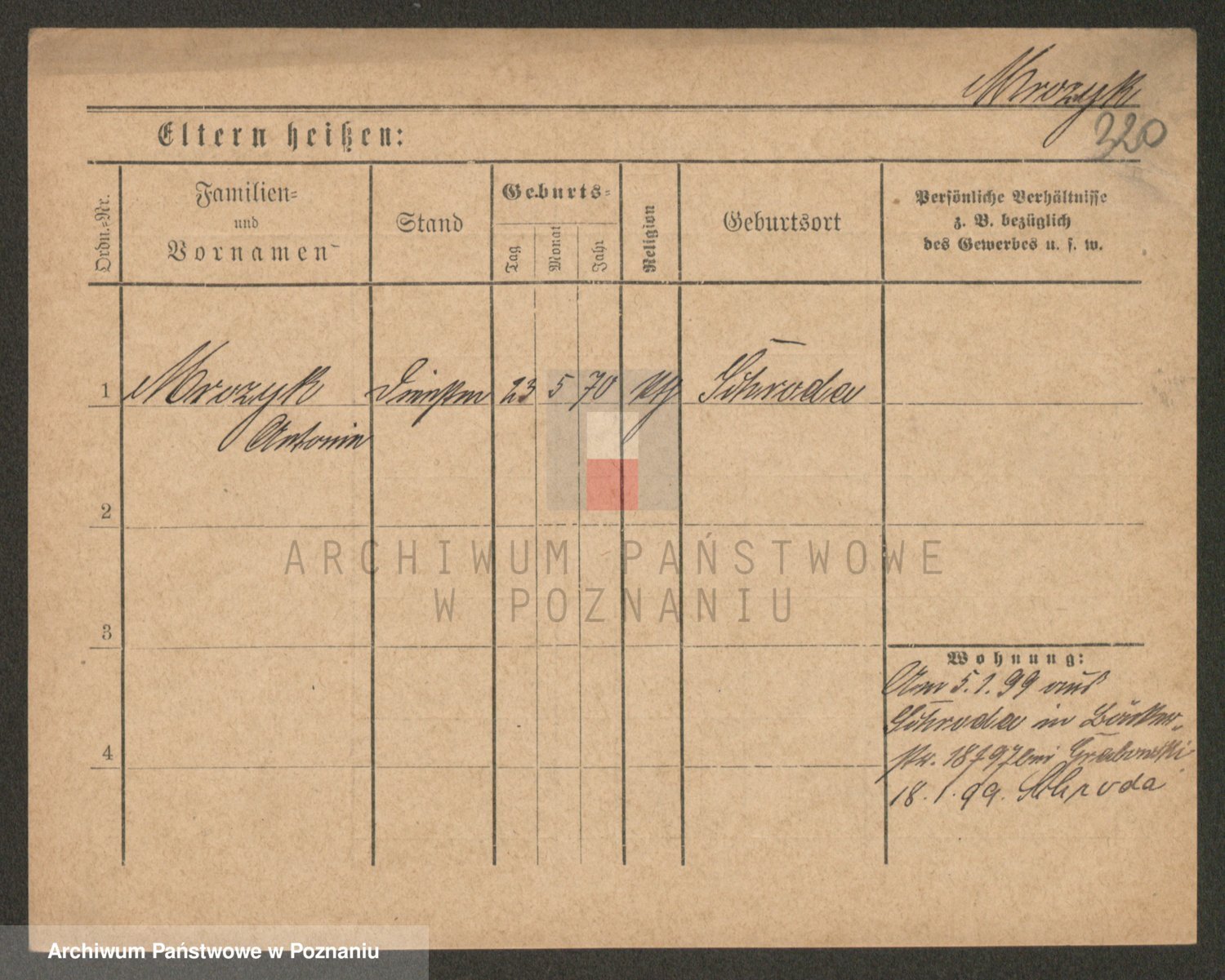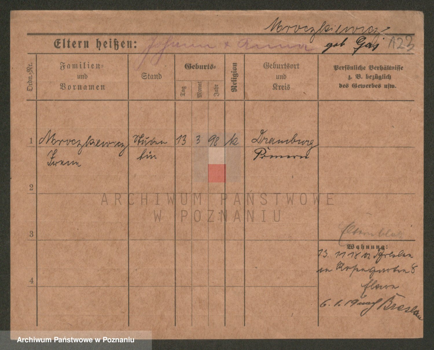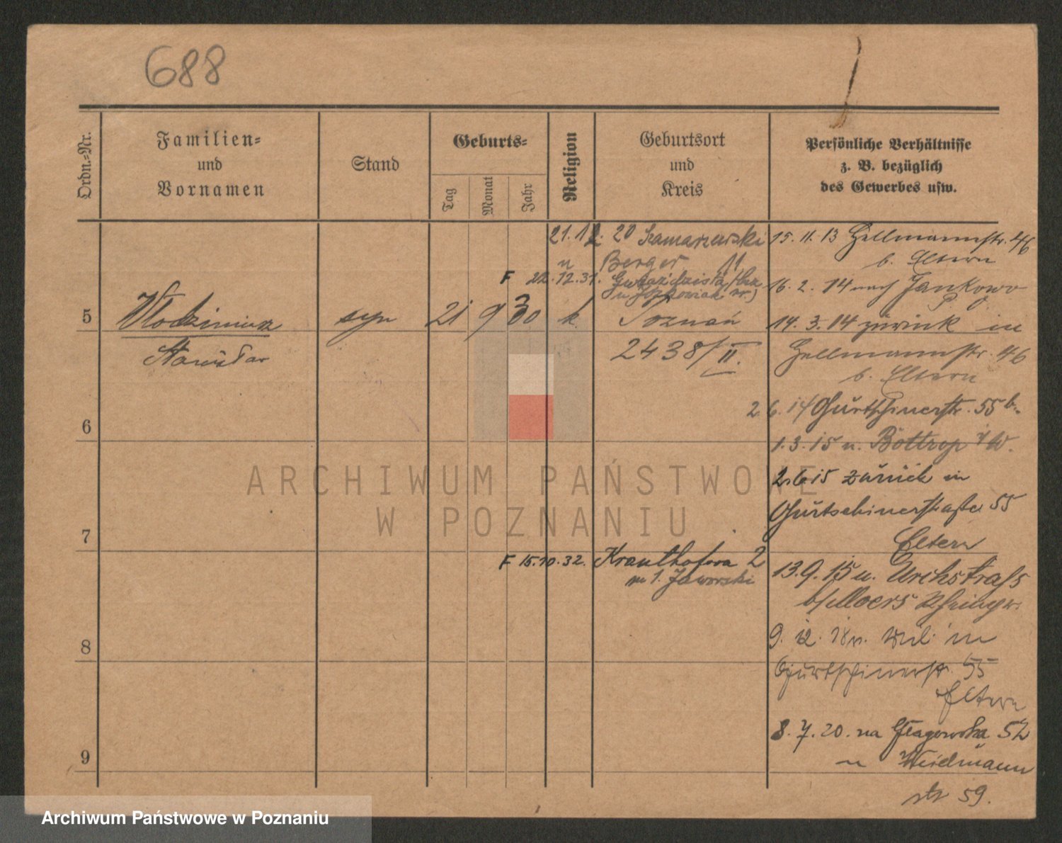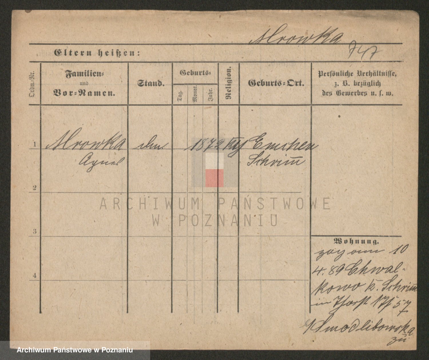 Podgląd karty osobowej dostępny jest po kliknięciu na nazwisko lub ikonkę karty. Można dokonywać powiększenia (ikony na górze) lub przechodzić między kolejnymi skanami (strzałki po bokach).