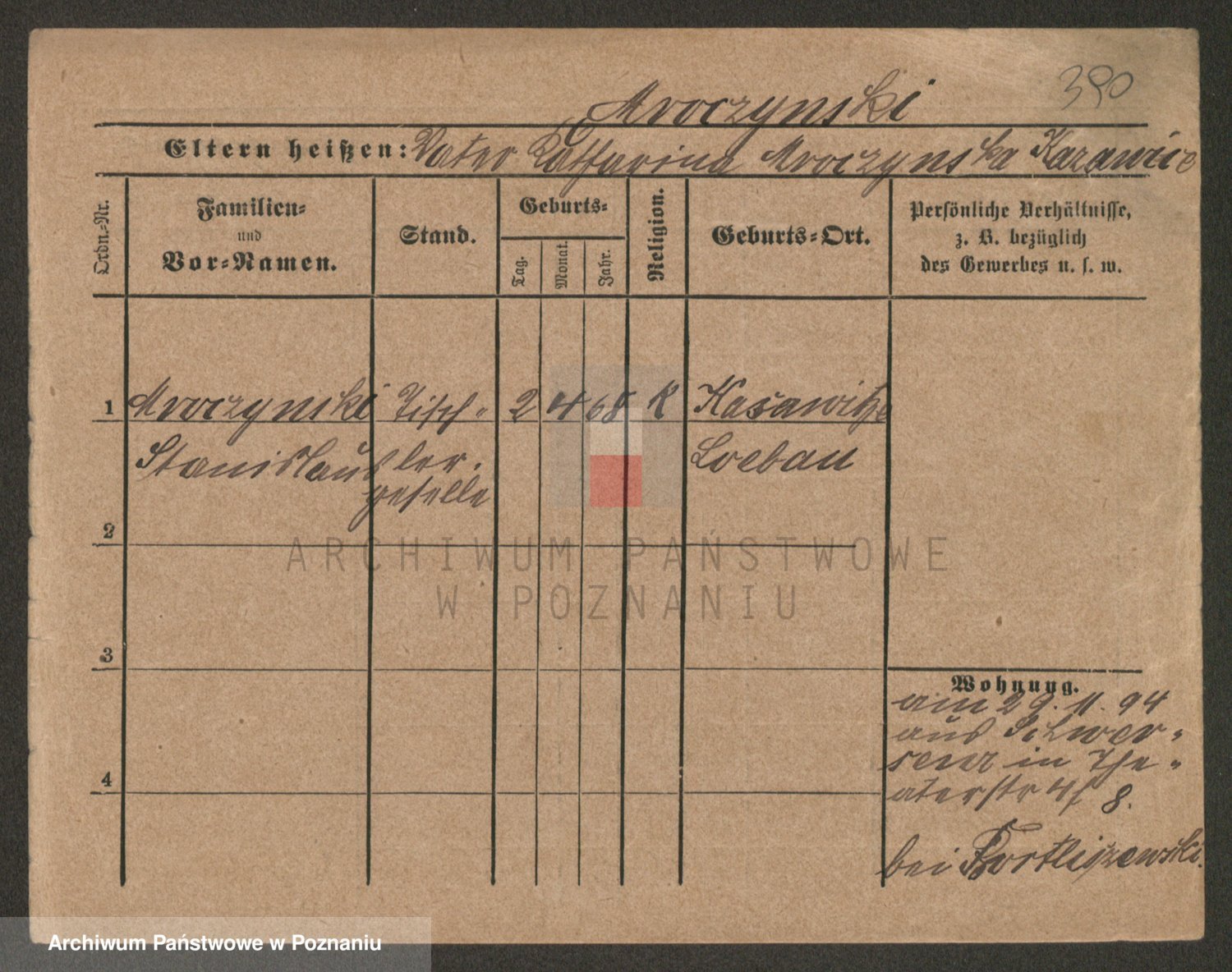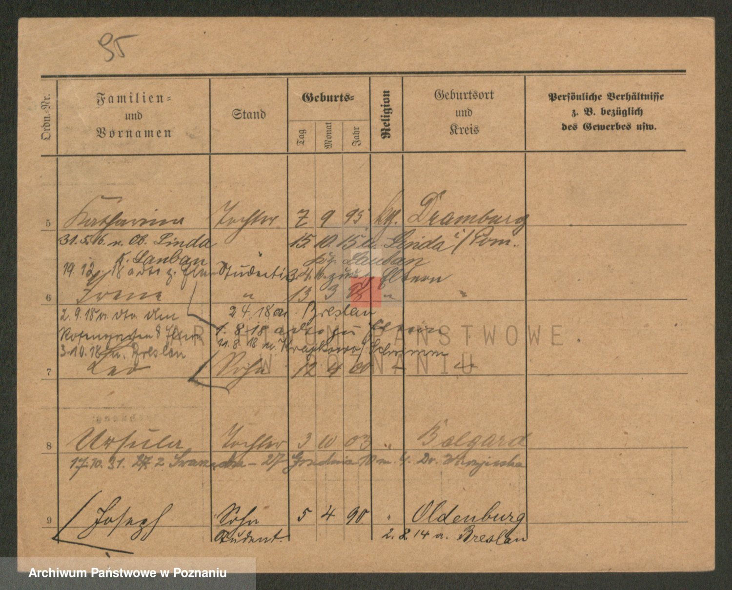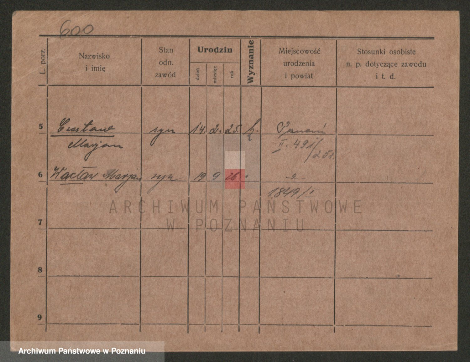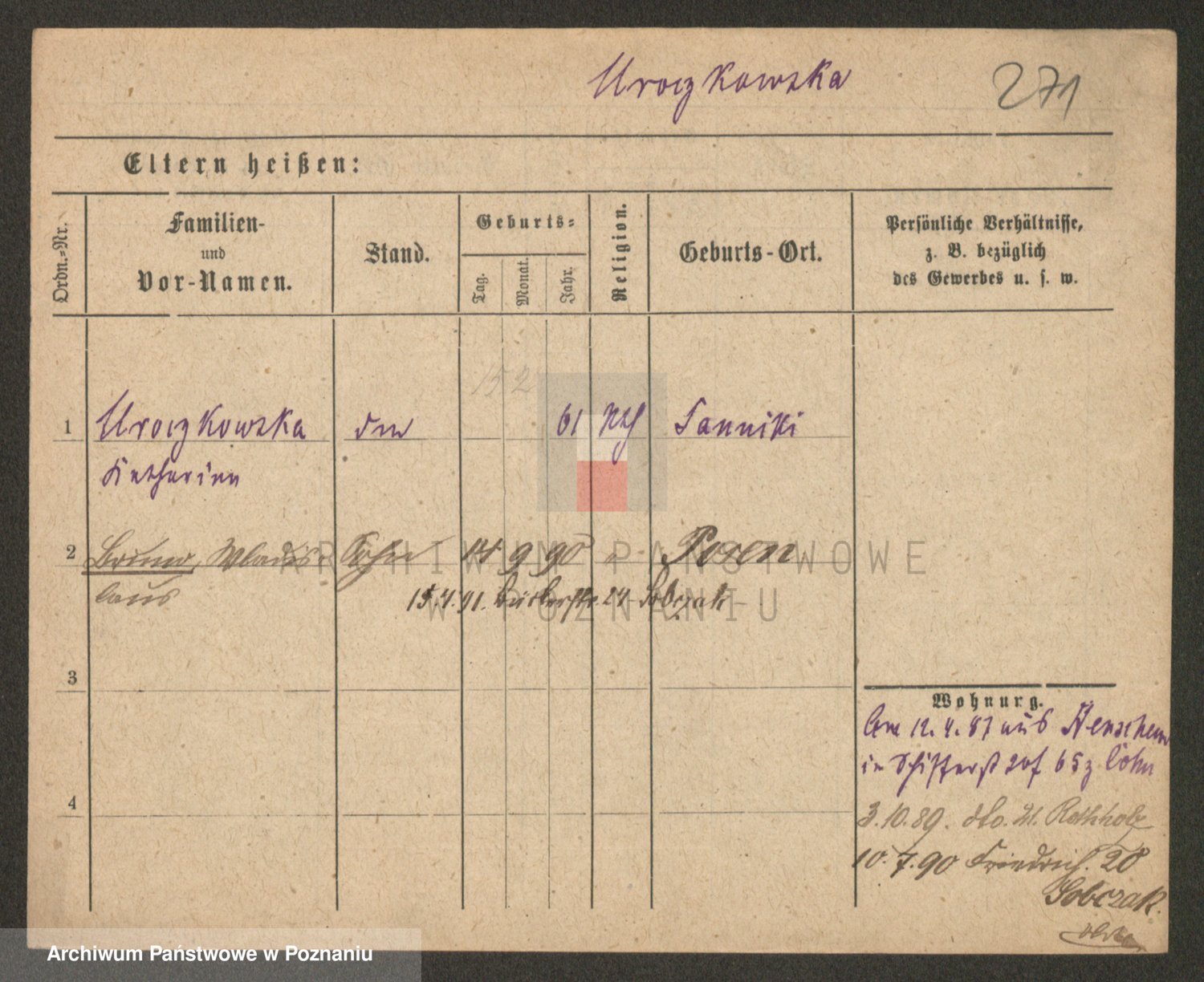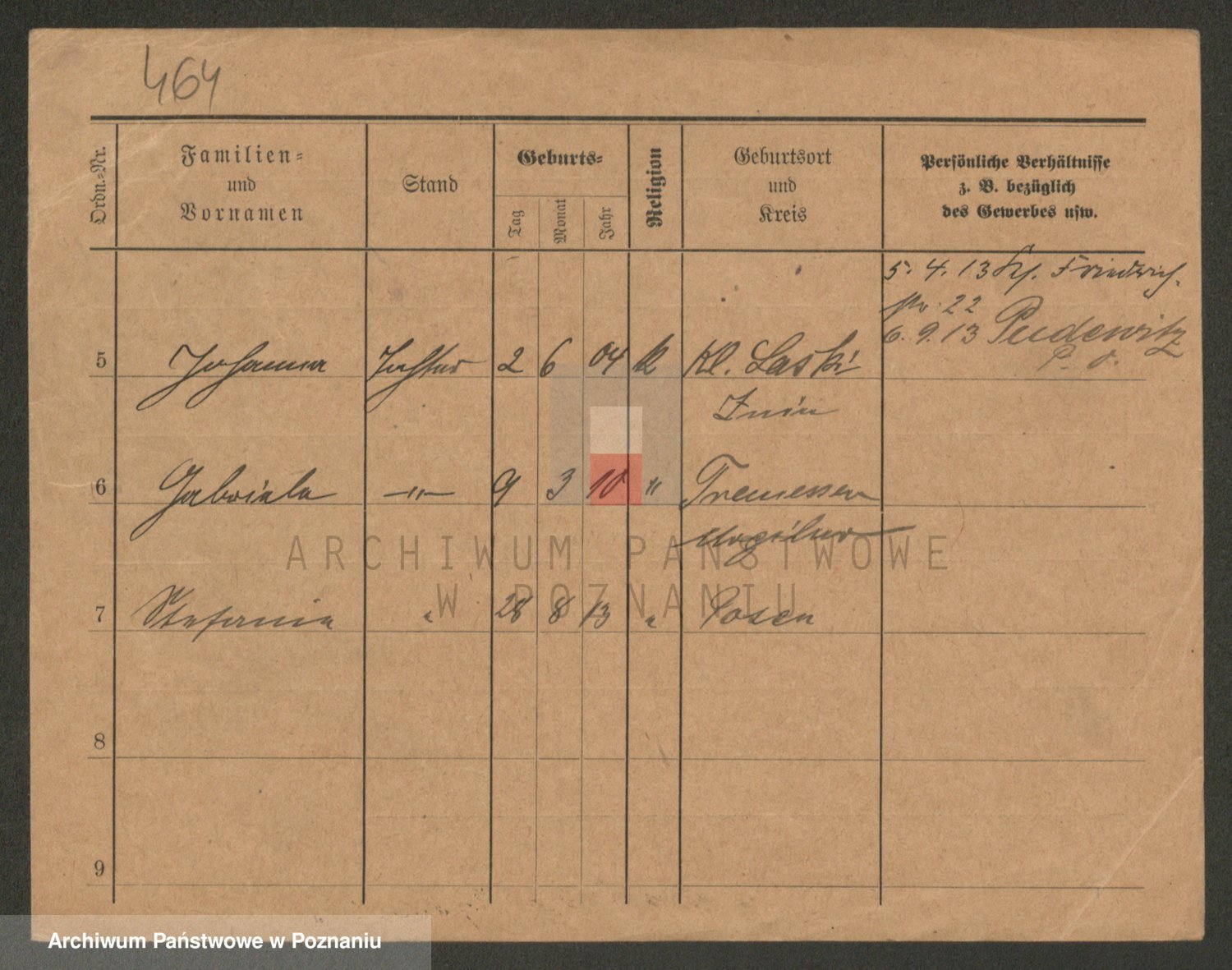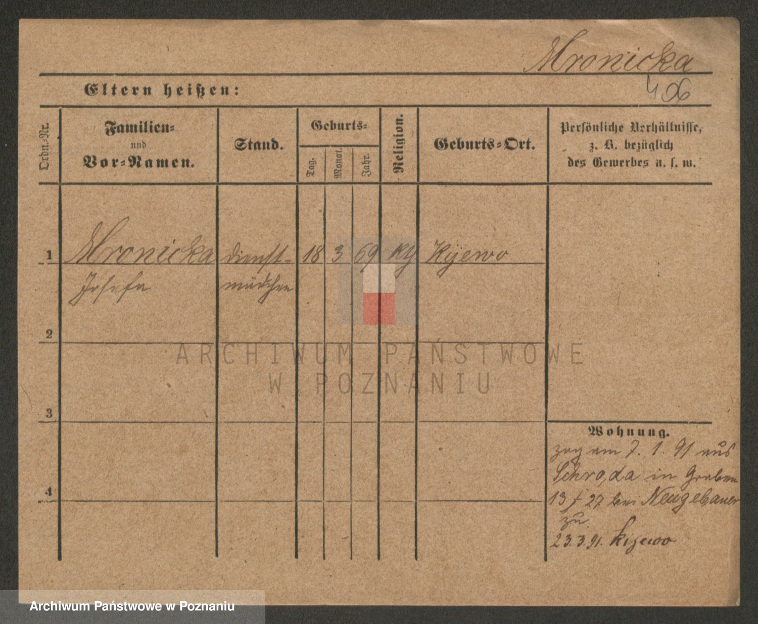 Podgląd karty osobowej dostępny jest po kliknięciu na nazwisko lub ikonkę karty. Można dokonywać powiększenia (ikony na górze) lub przechodzić między kolejnymi skanami (strzałki po bokach).