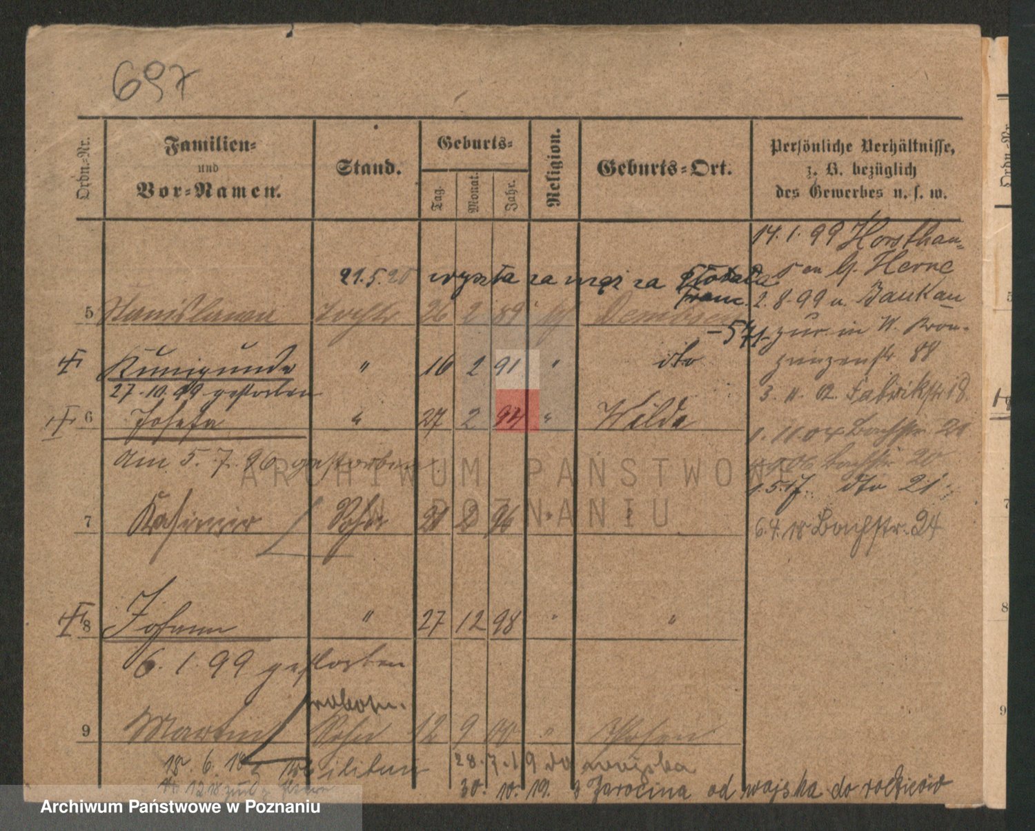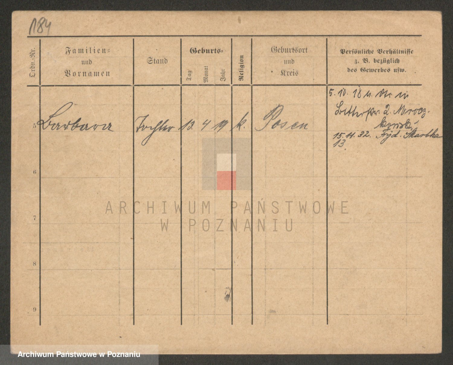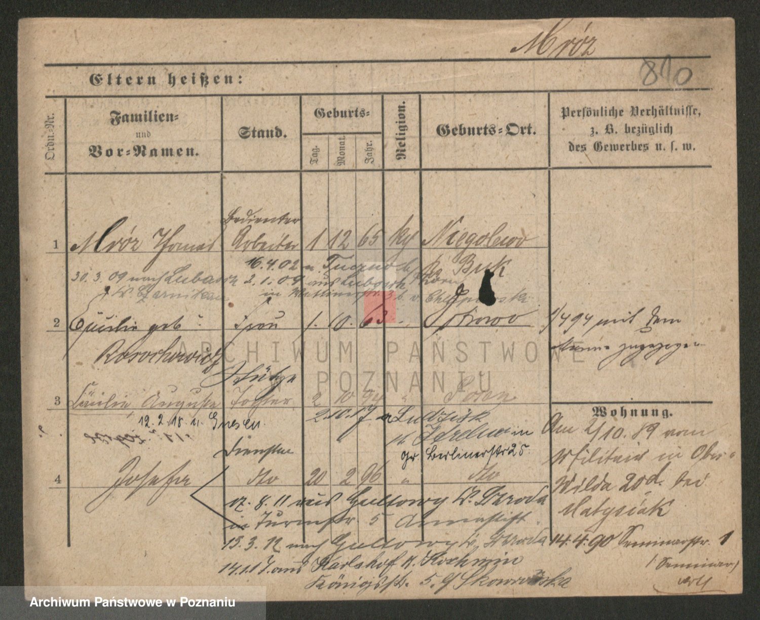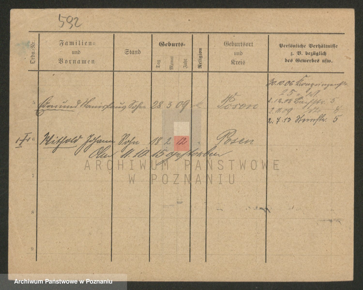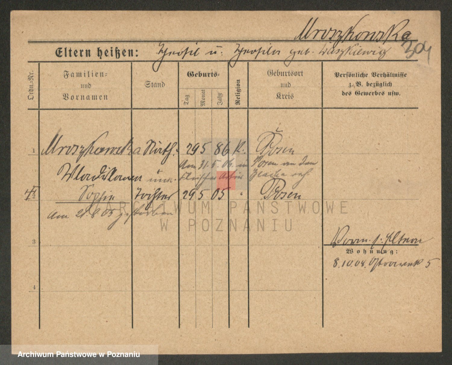 Podgląd karty osobowej dostępny jest po kliknięciu na nazwisko lub ikonkę karty. Można dokonywać powiększenia (ikony na górze) lub przechodzić między kolejnymi skanami (strzałki po bokach).