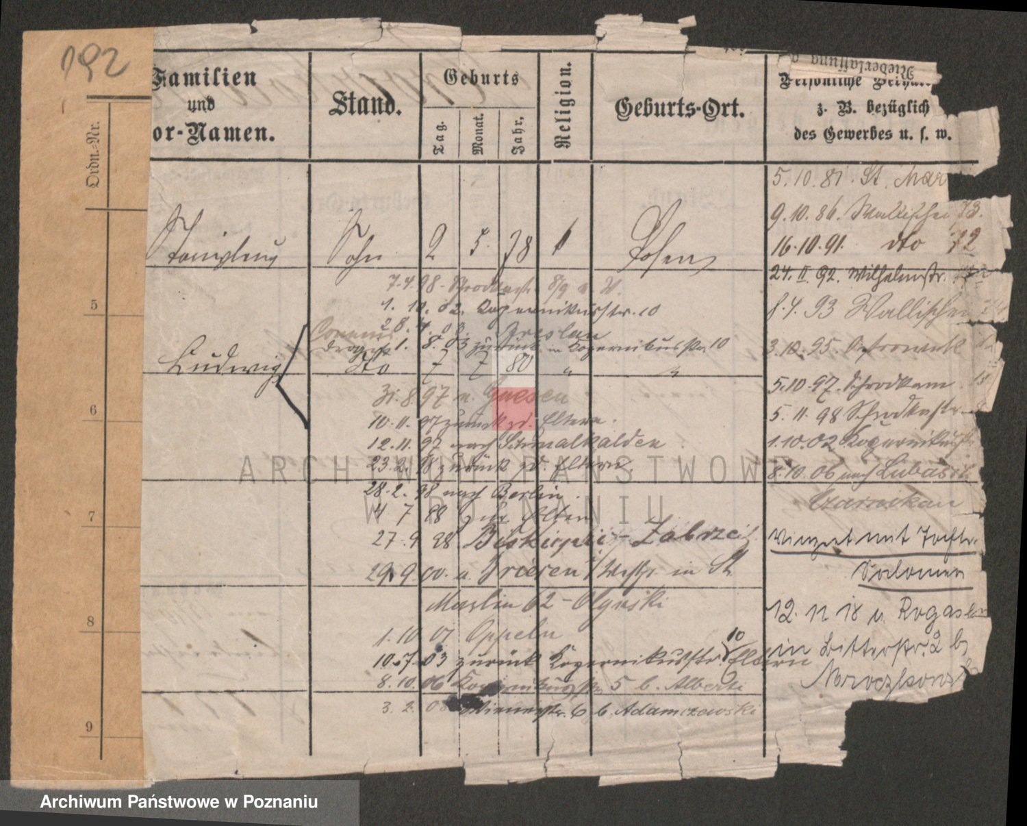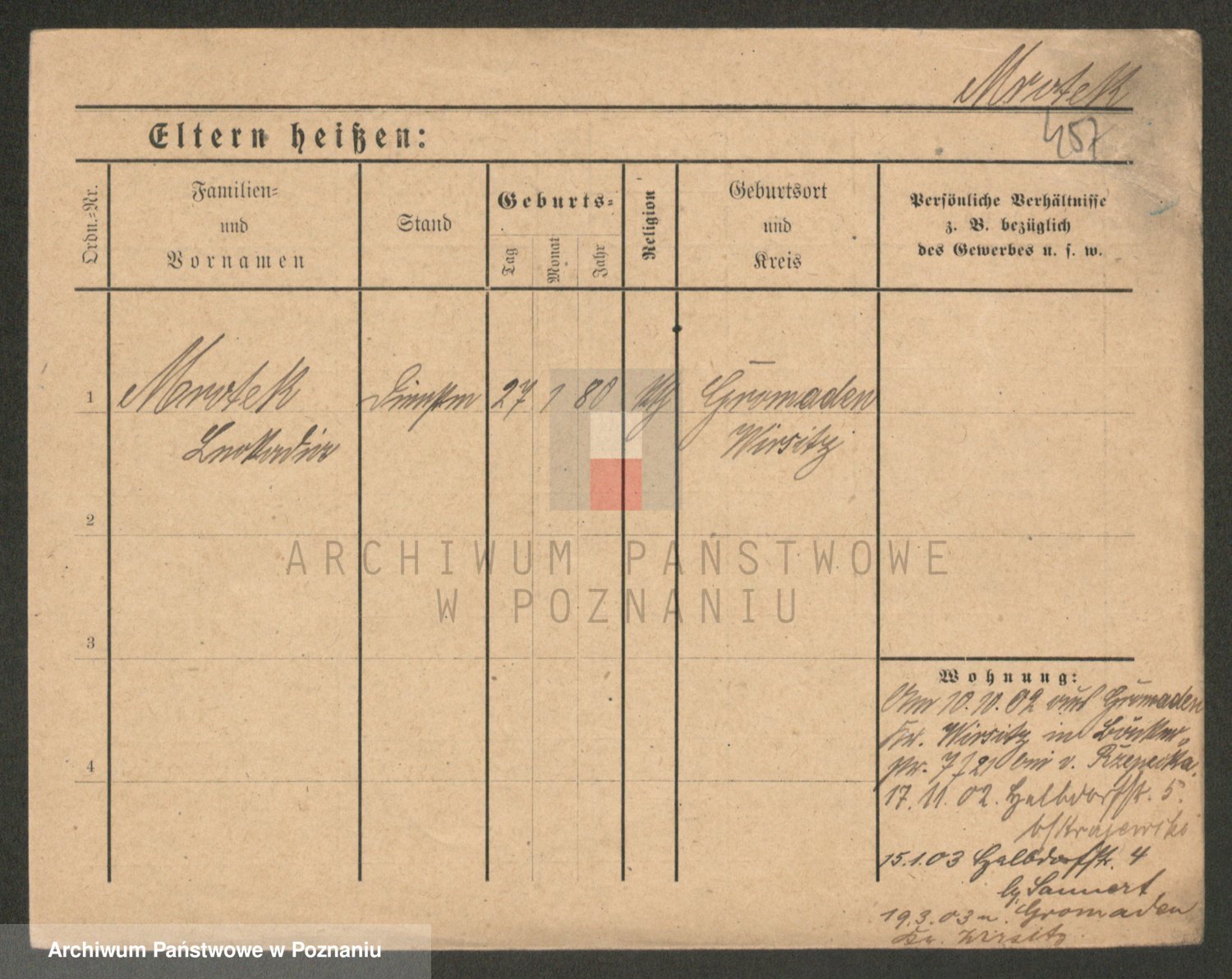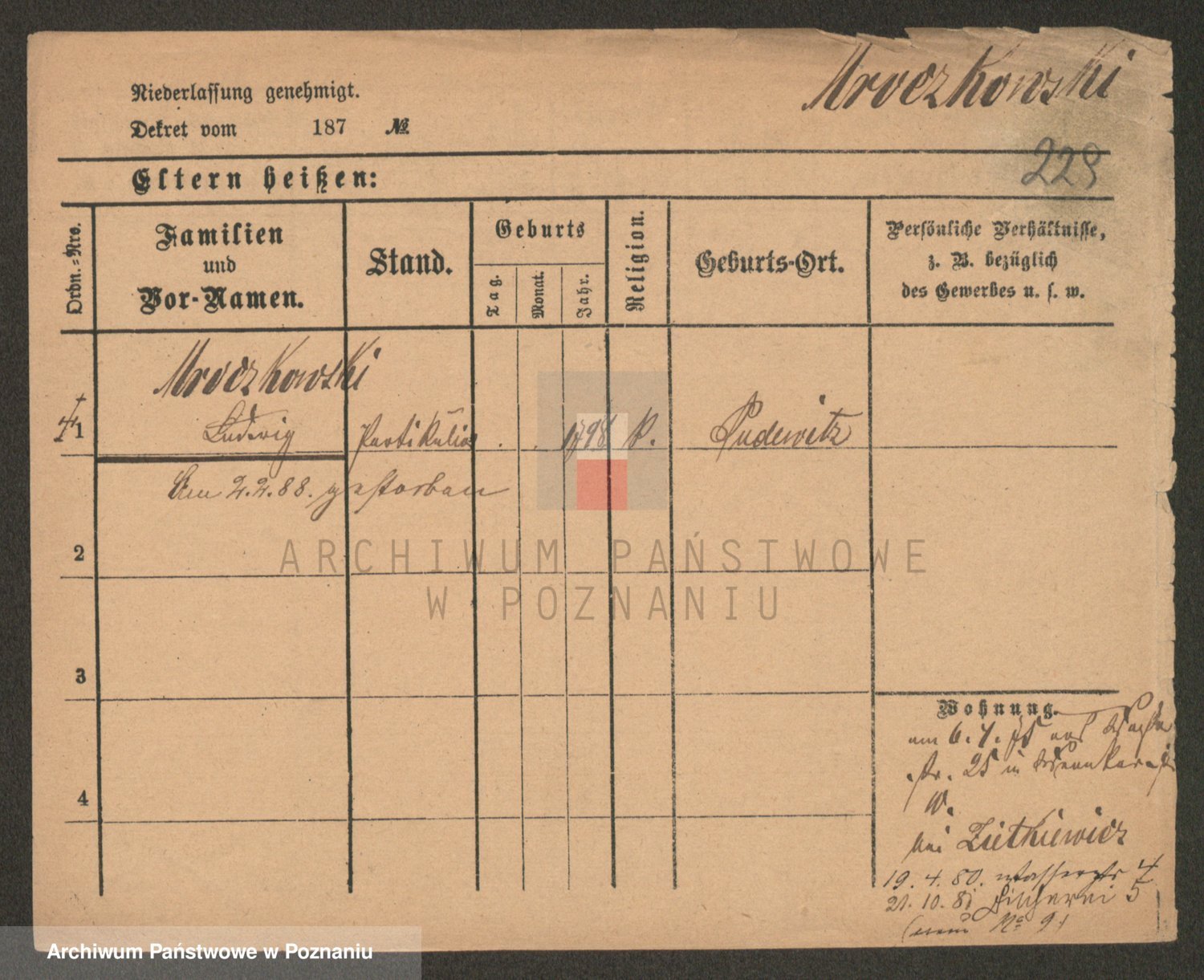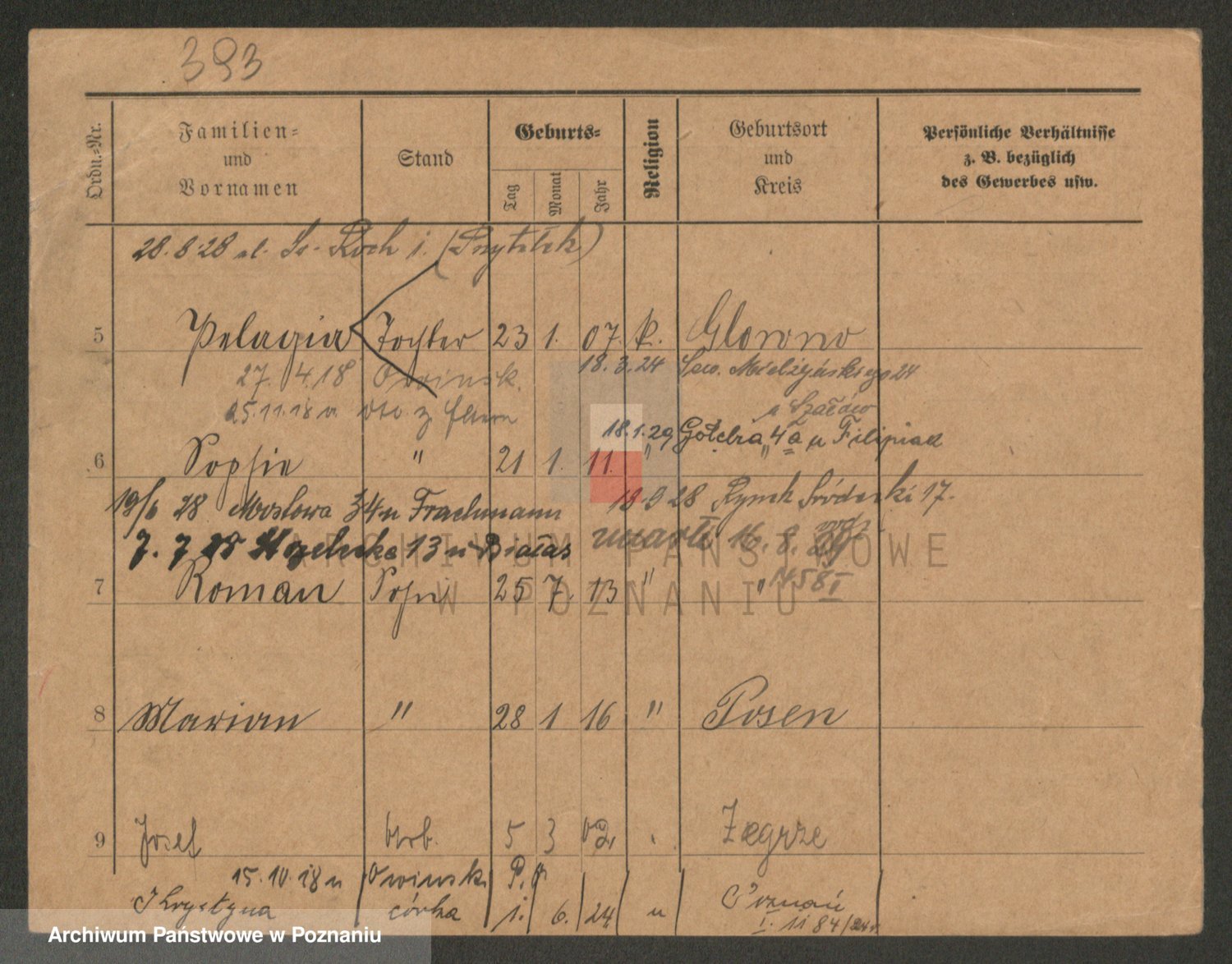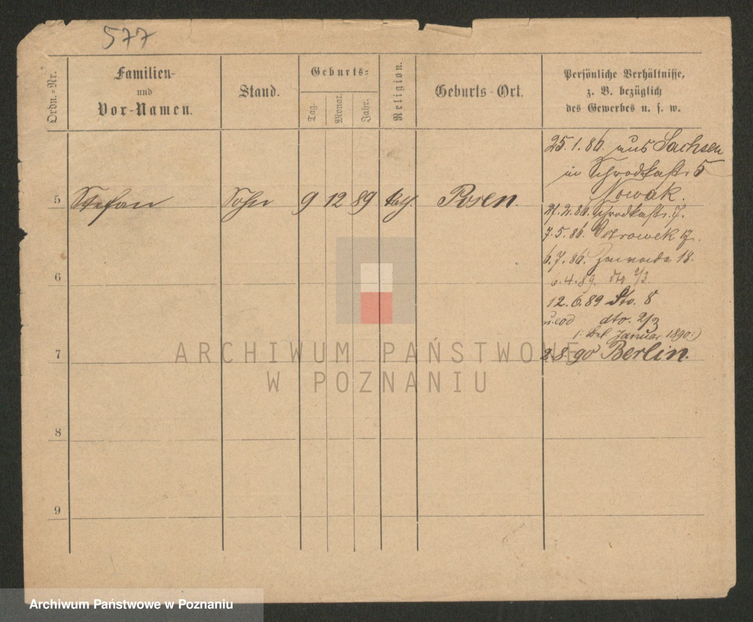 Podgląd karty osobowej dostępny jest po kliknięciu na nazwisko lub ikonkę karty. Można dokonywać powiększenia (ikony na górze) lub przechodzić między kolejnymi skanami (strzałki po bokach).