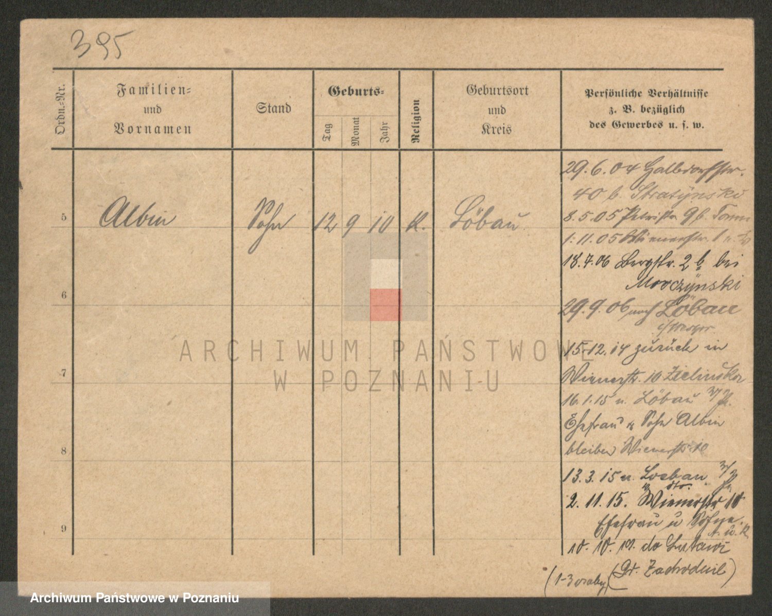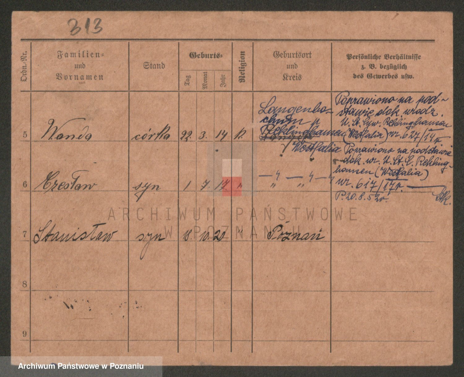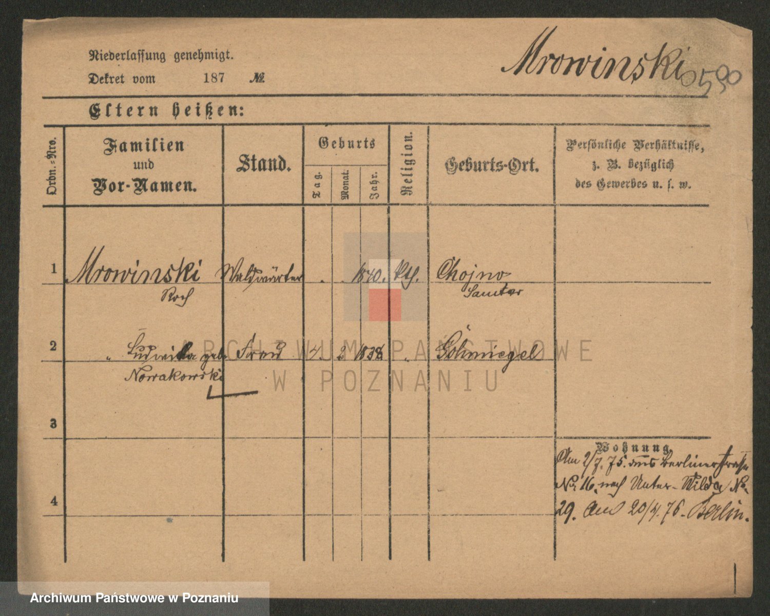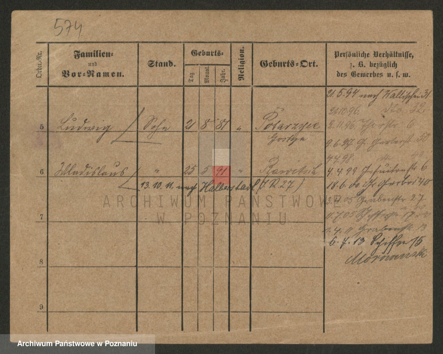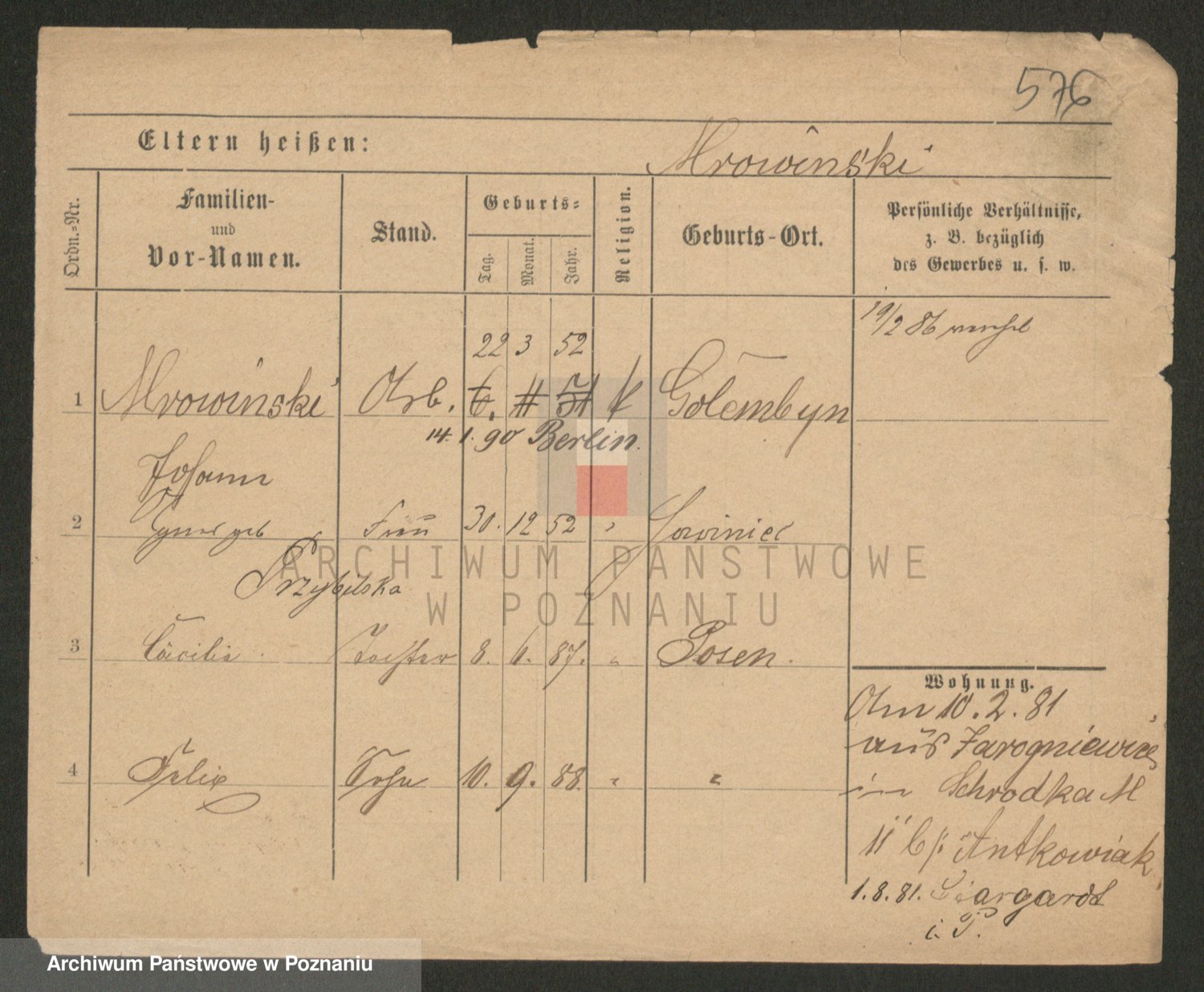 Podgląd karty osobowej dostępny jest po kliknięciu na nazwisko lub ikonkę karty. Można dokonywać powiększenia (ikony na górze) lub przechodzić między kolejnymi skanami (strzałki po bokach).