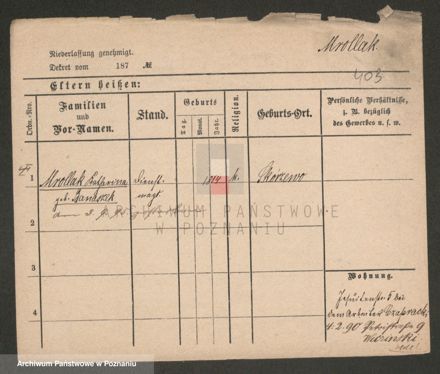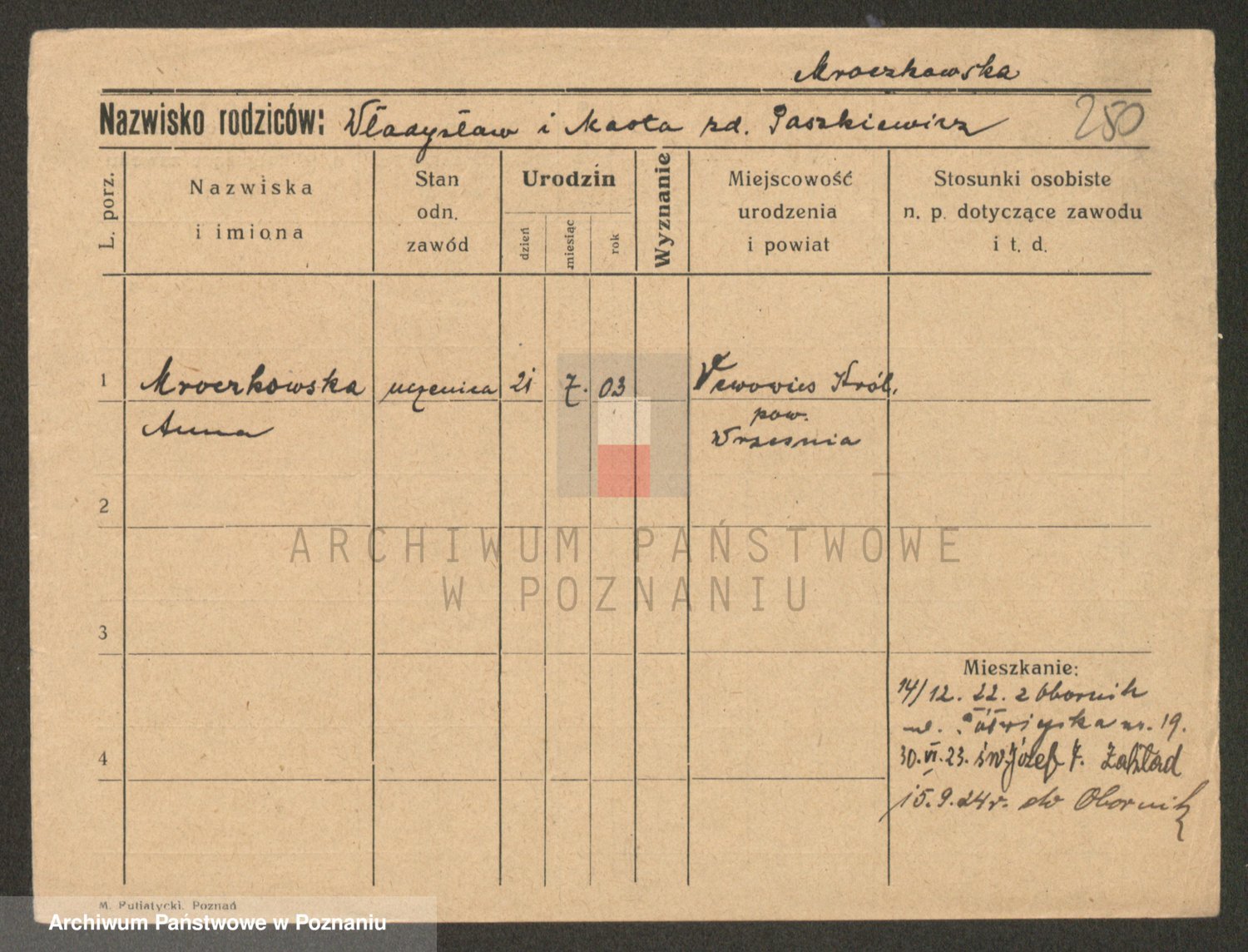 Mroczek zd. Połaszewska, Franciszka