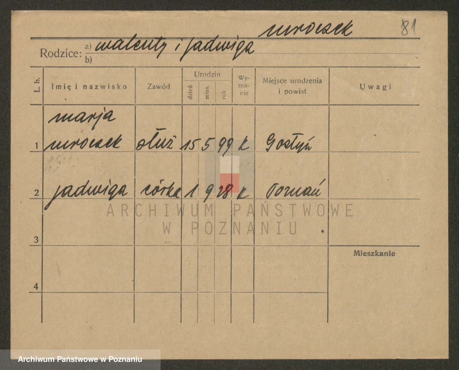 Mreńca (Mareńca) zd. Walusiak, Marja